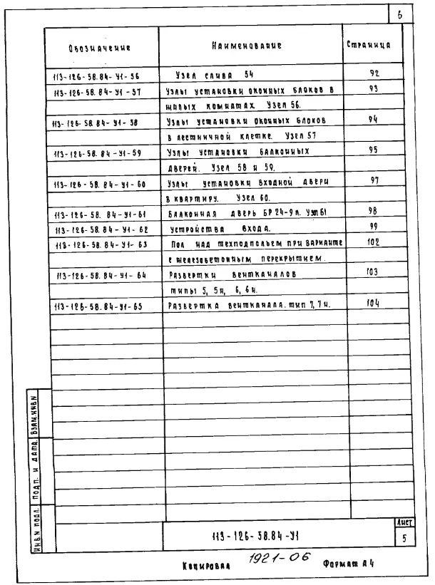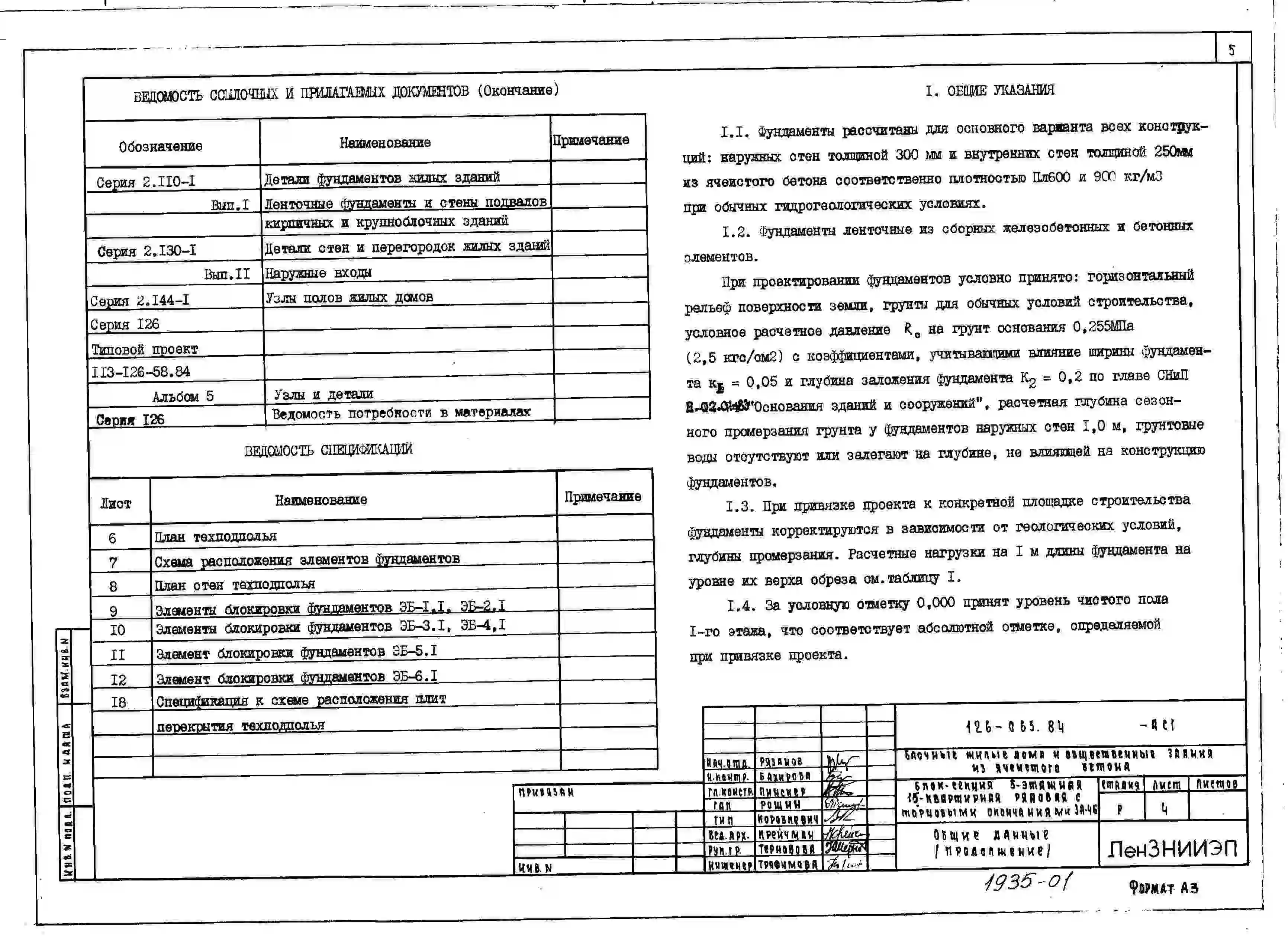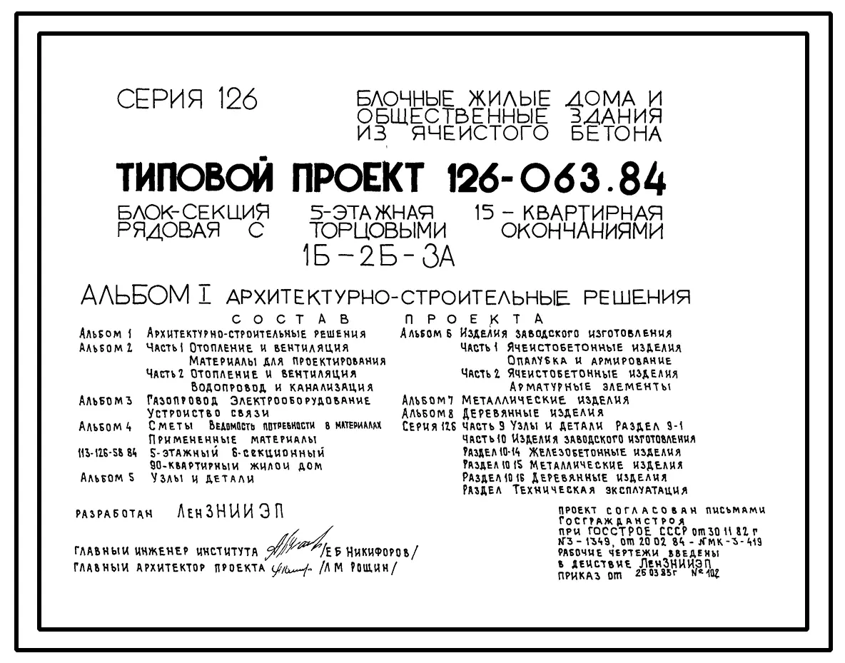 Типовой проект 126-063.84 Пятиэтажная блок-секция рядовая с торцевыми окончаниями на 15 квартир. Для строительства в городах и поселках городского типа