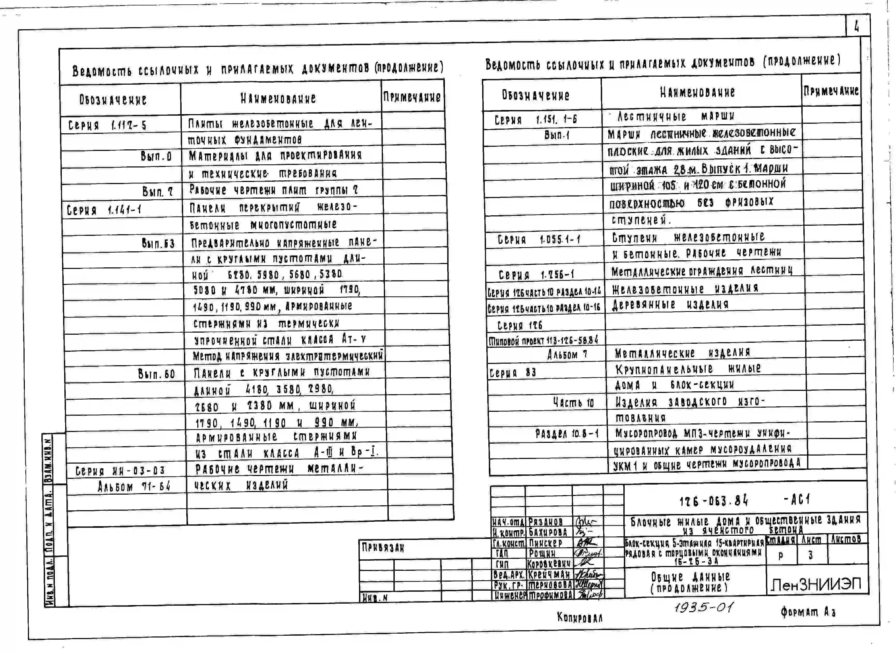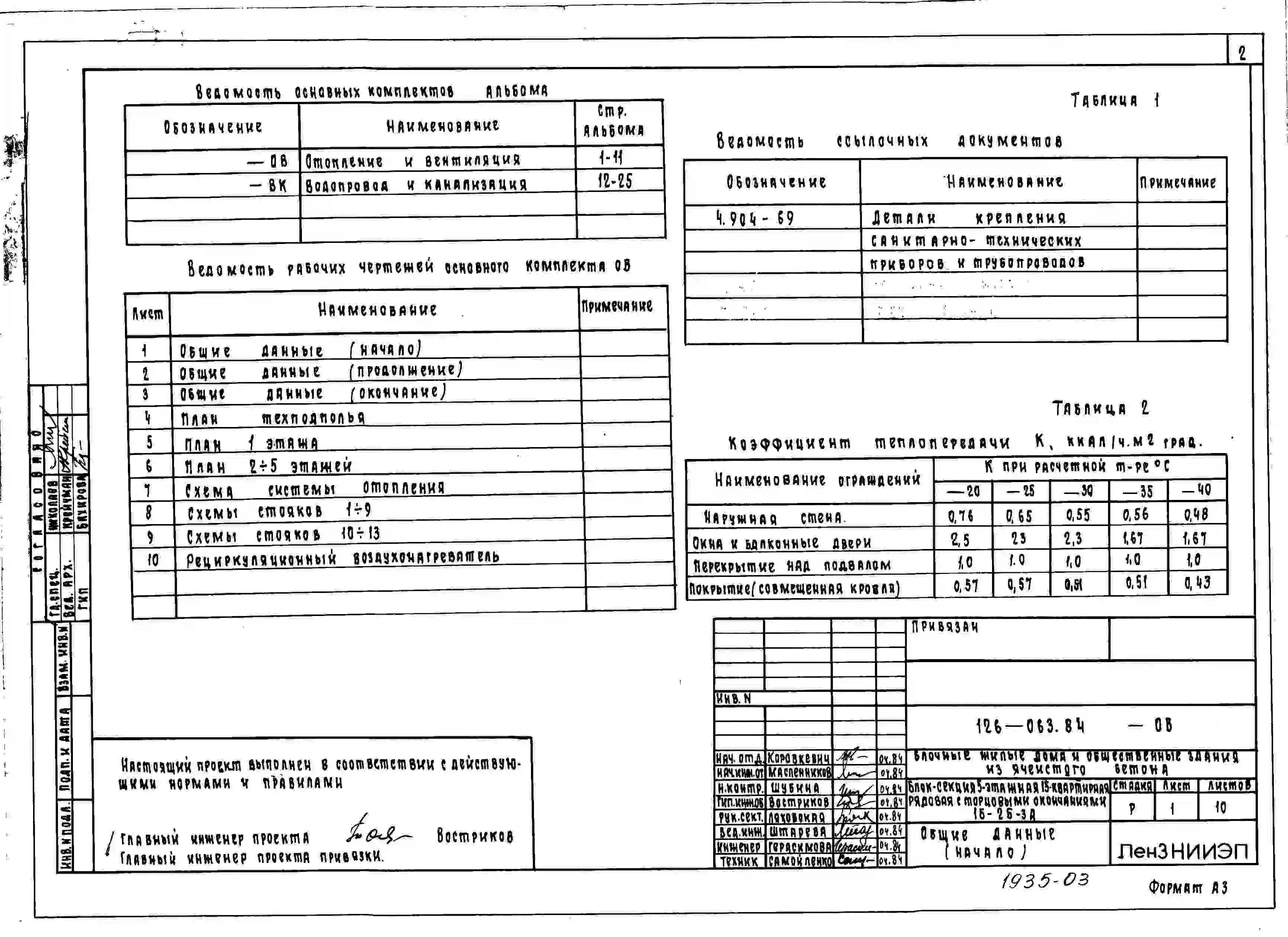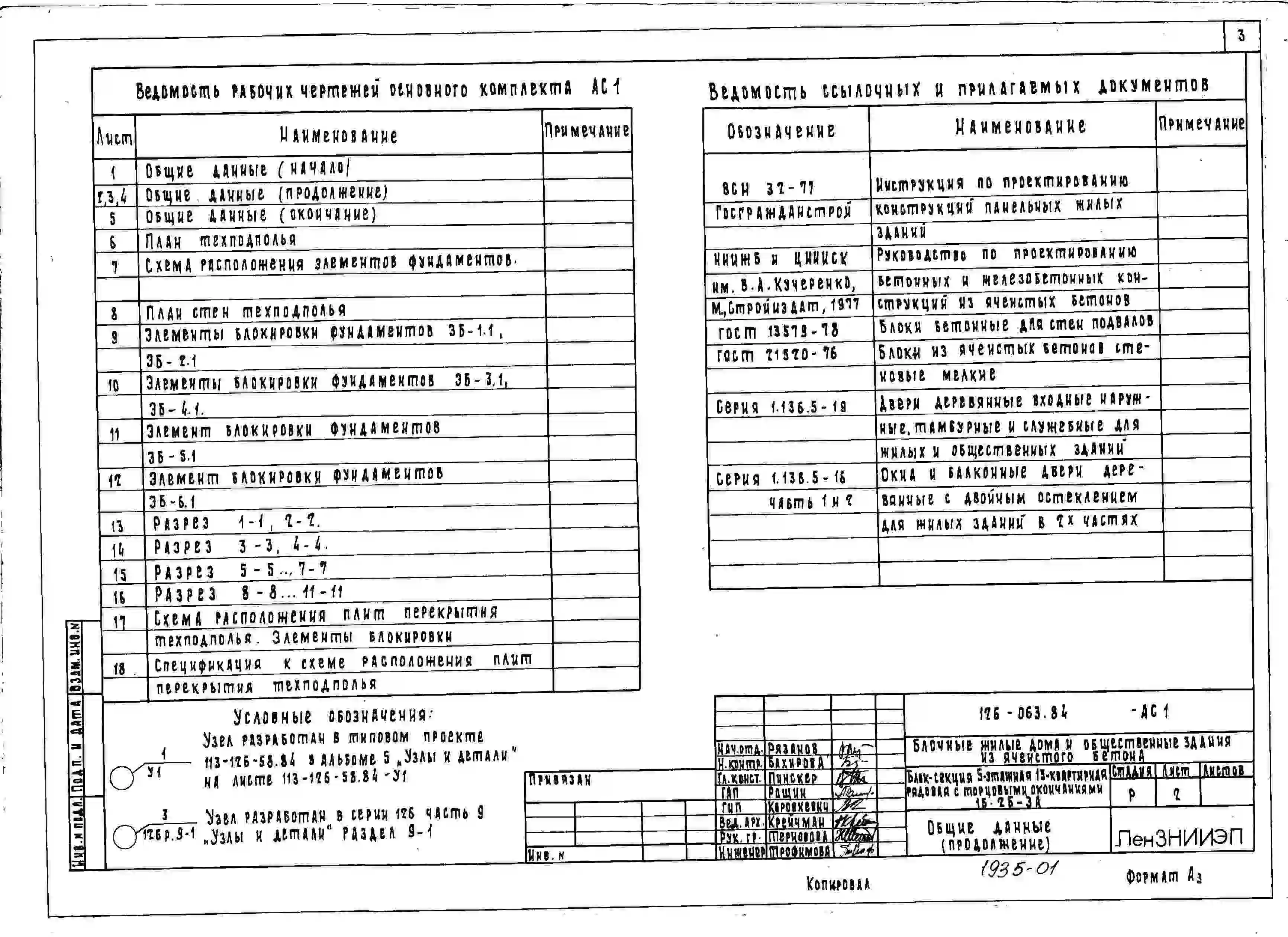 Типовой проект 126-063.84 Пятиэтажная блок-секция рядовая с торцевыми окончаниями на 15 квартир. Для строительства в городах и поселках городского типа