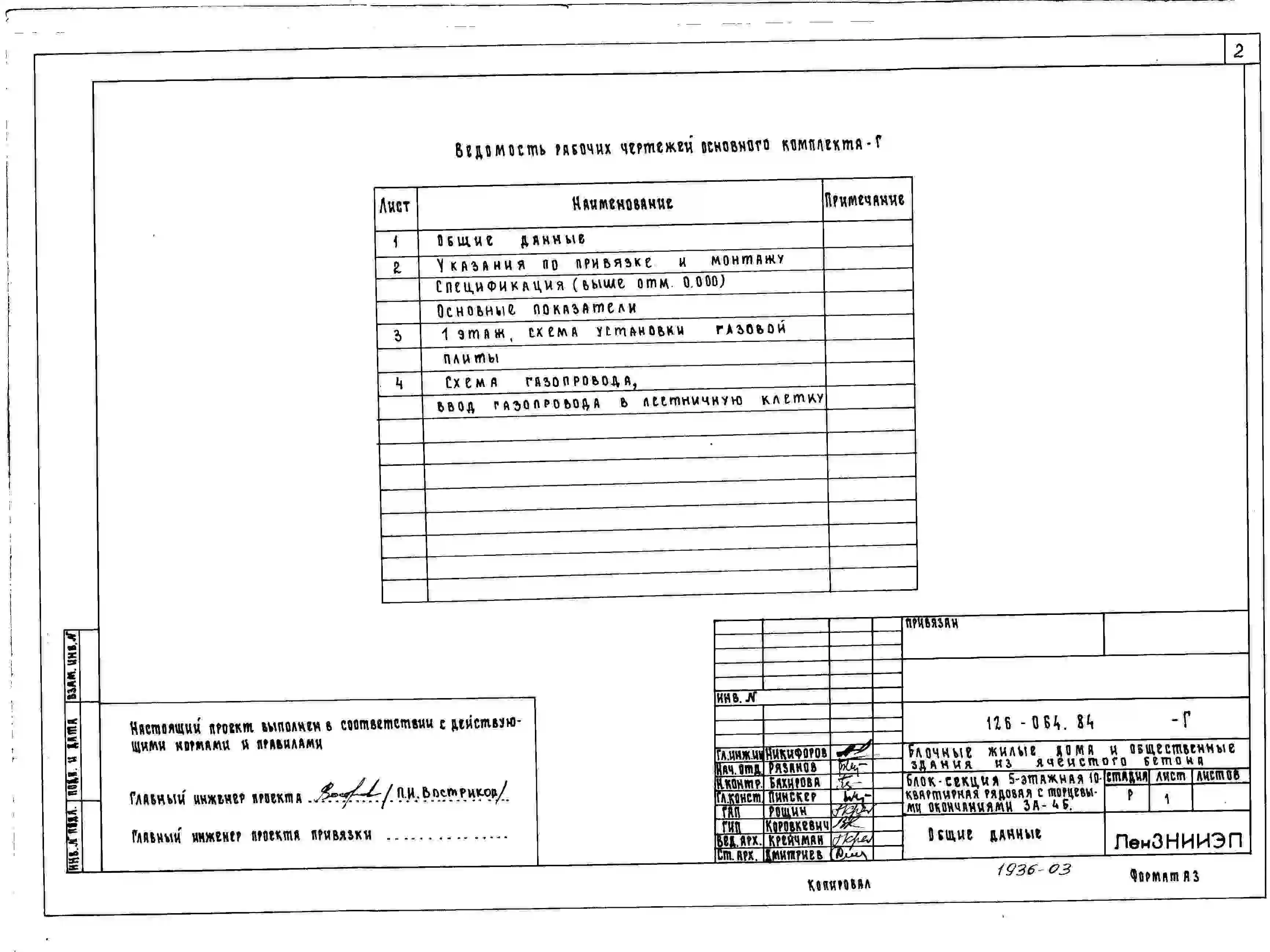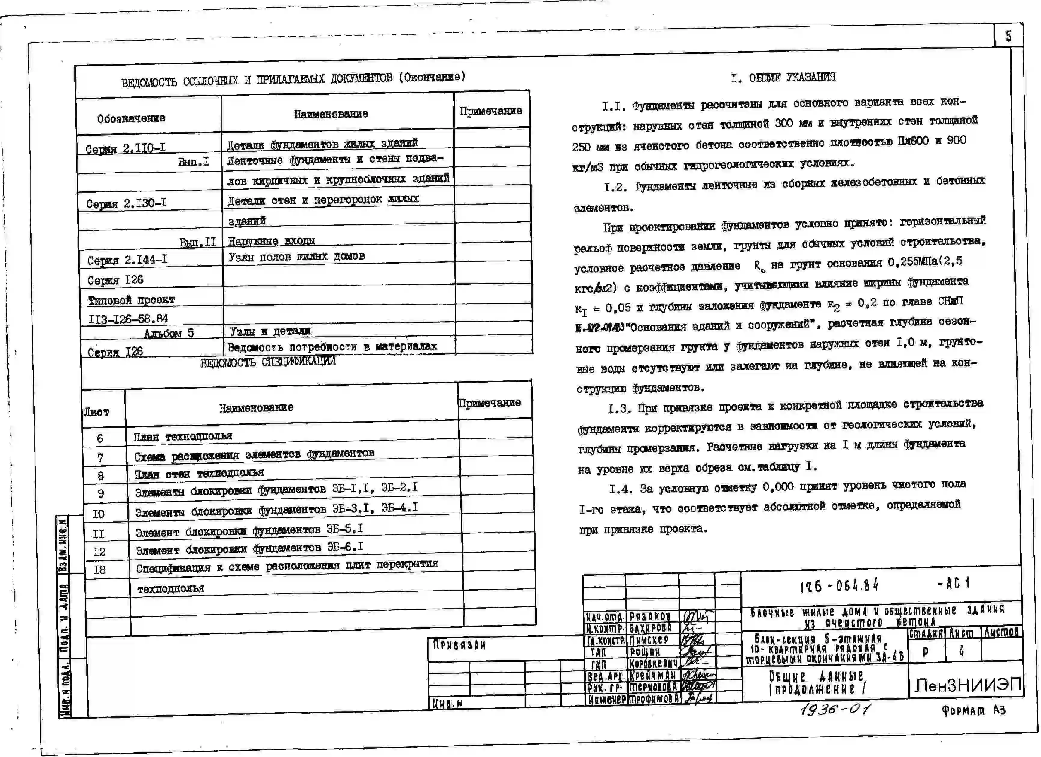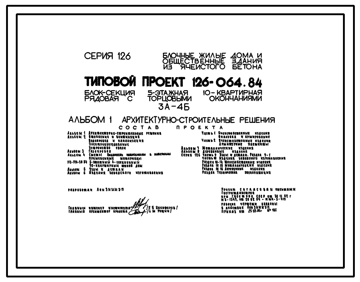 Типовой проект 126-064.84 Пятиэтажная блок-секция рядовая с торцевыми окончаниями на 10 квартир. Для строительства в городах и поселках городского типа