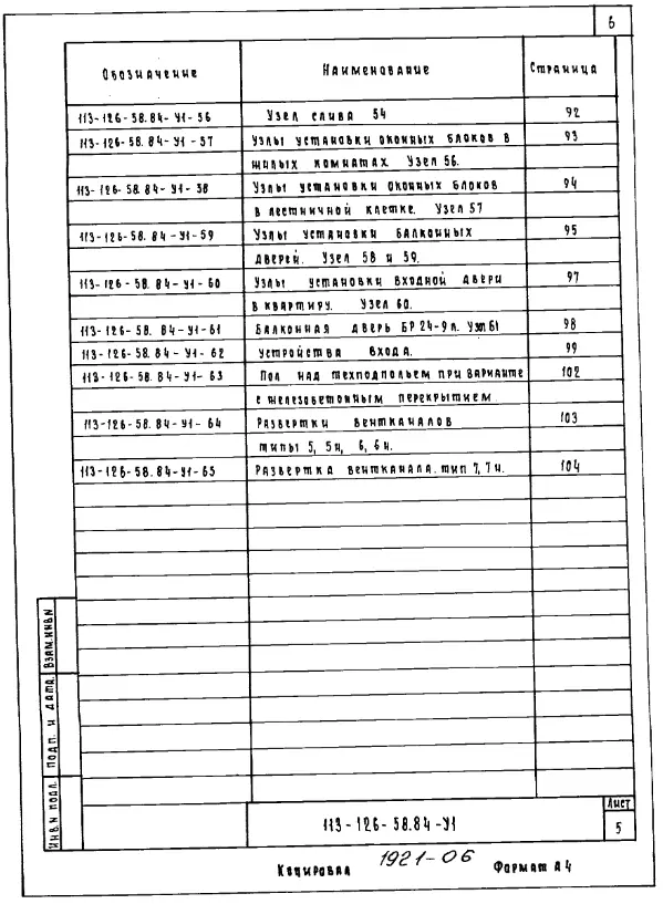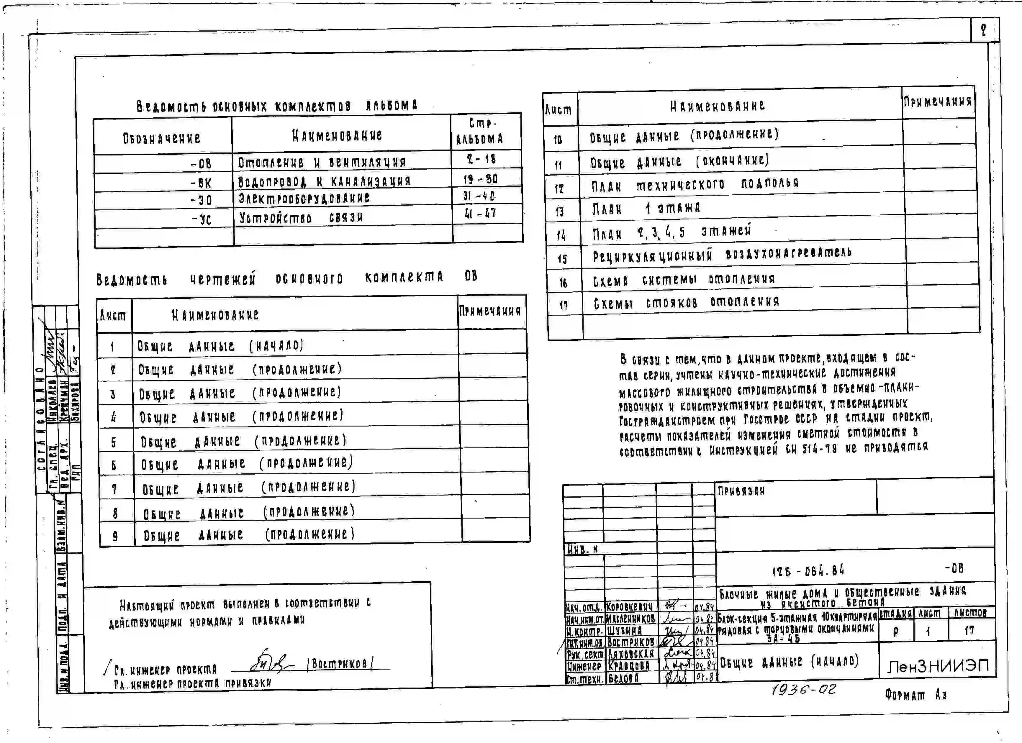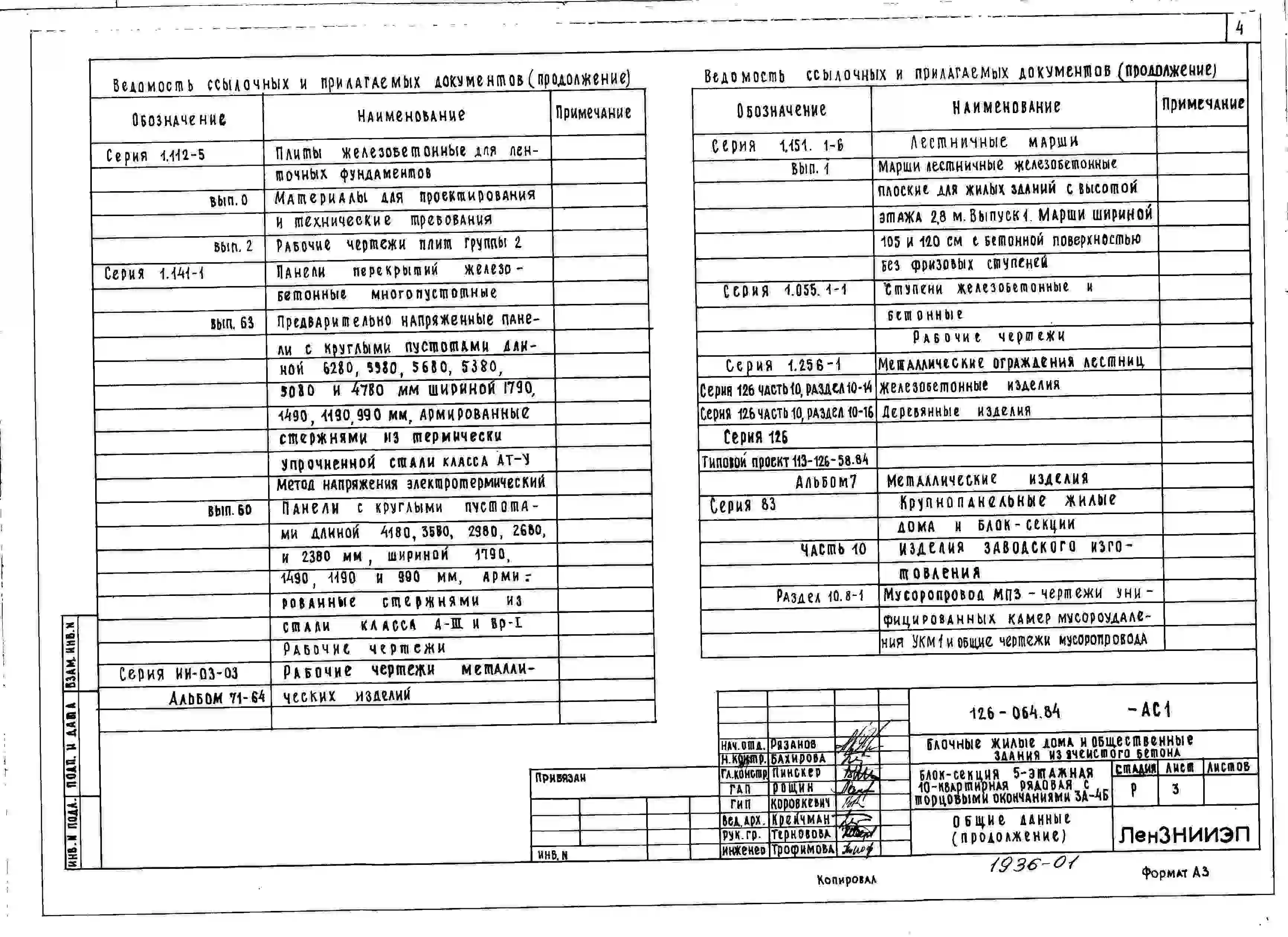 Типовой проект 126-064.84 Пятиэтажная блок-секция рядовая с торцевыми окончаниями на 10 квартир. Для строительства в городах и поселках городского типа