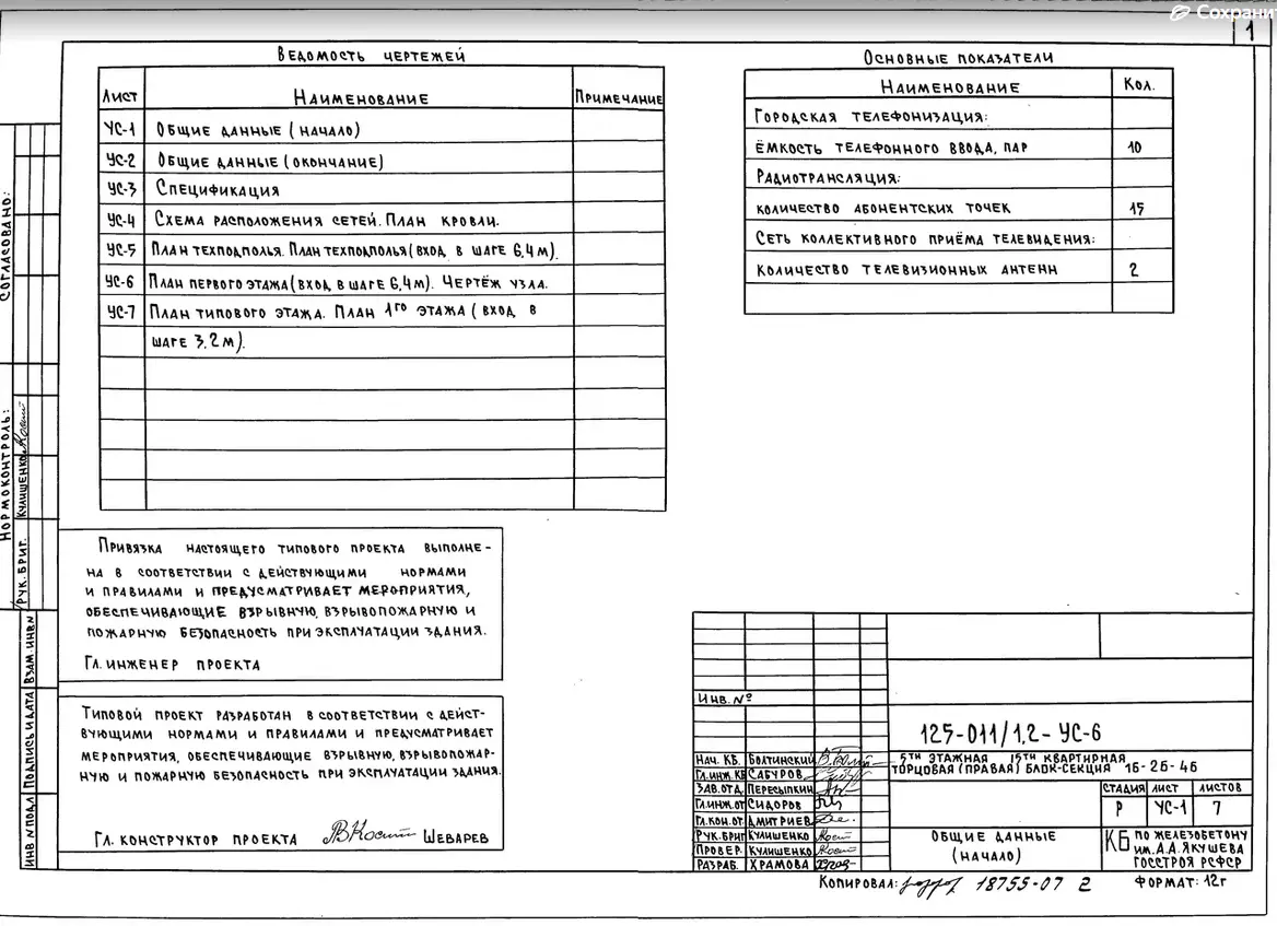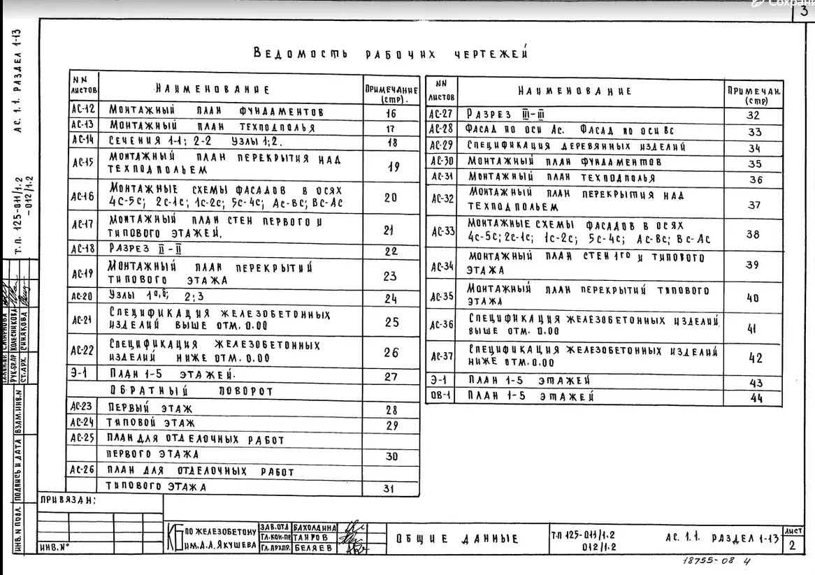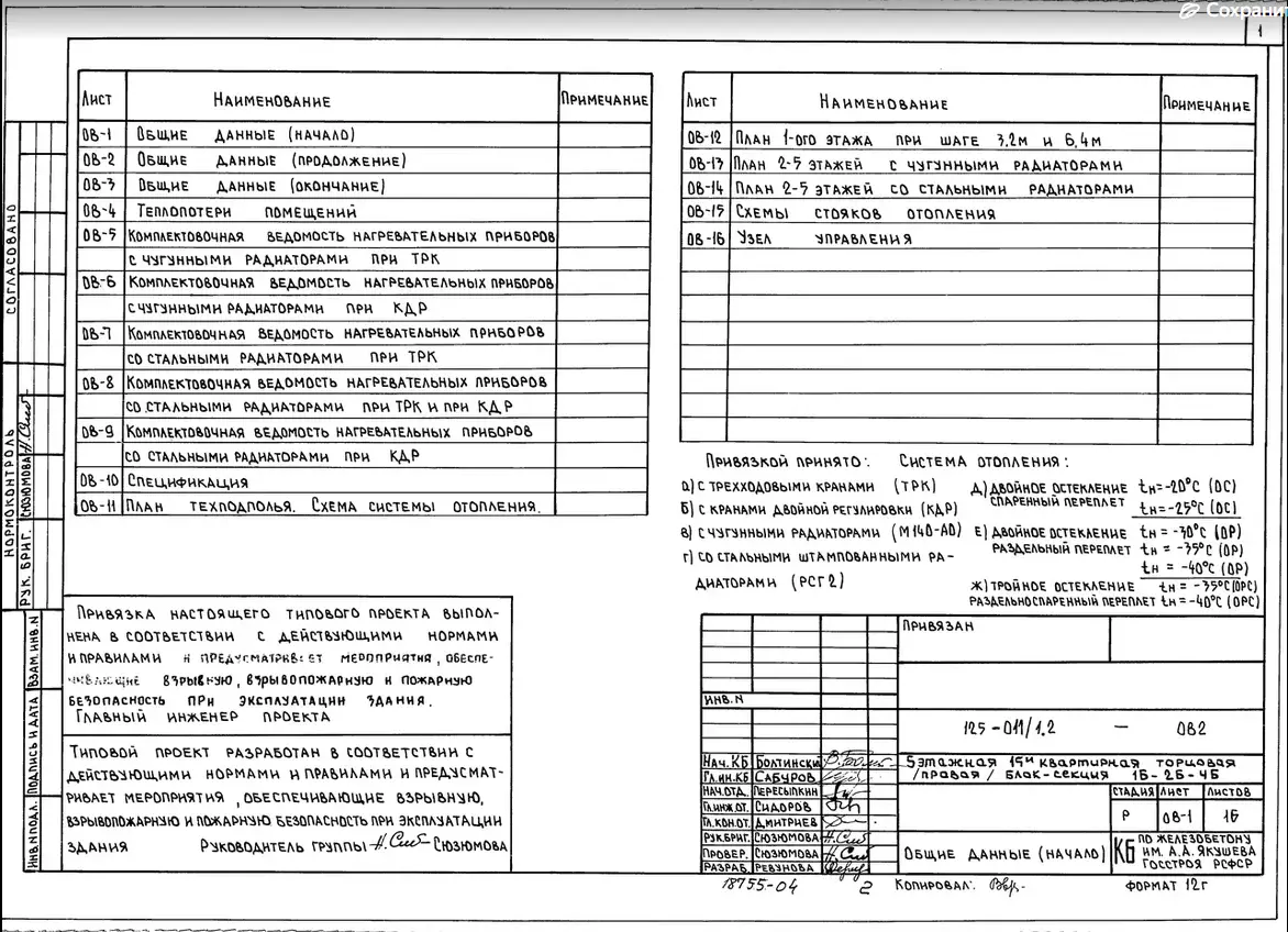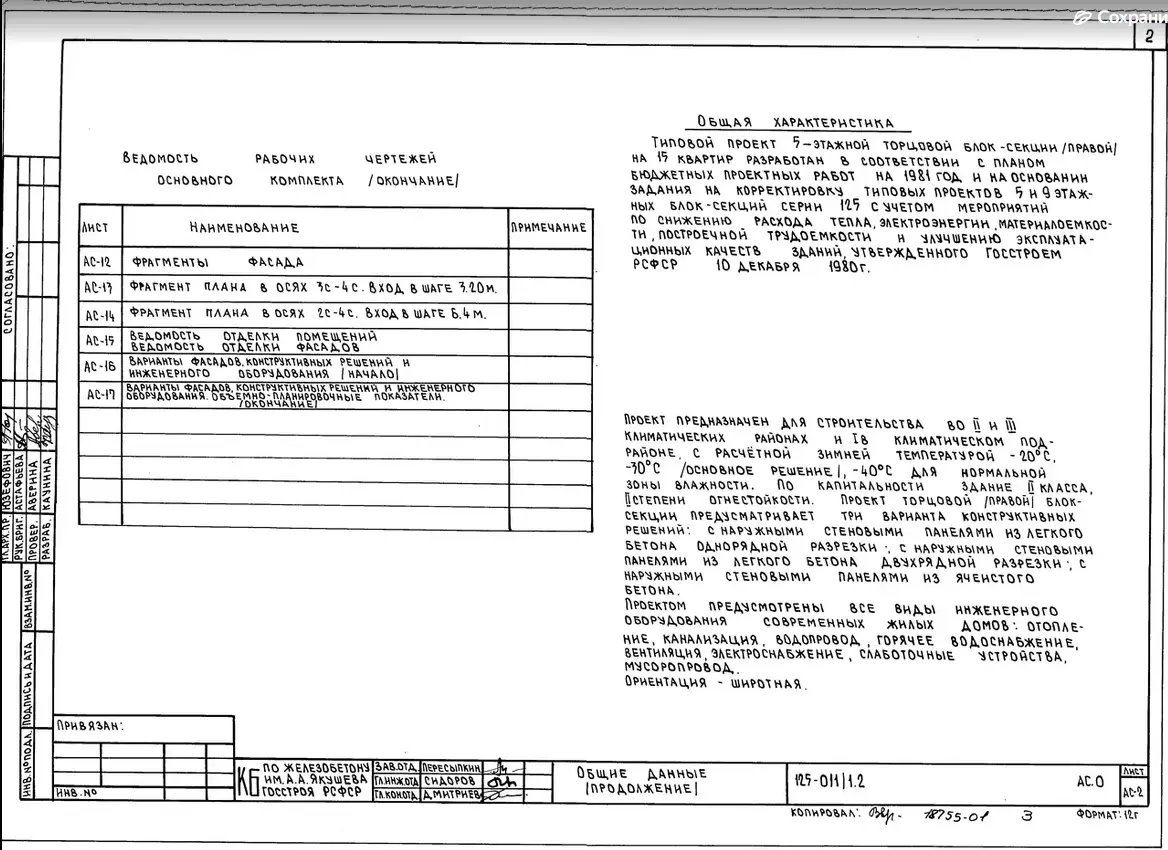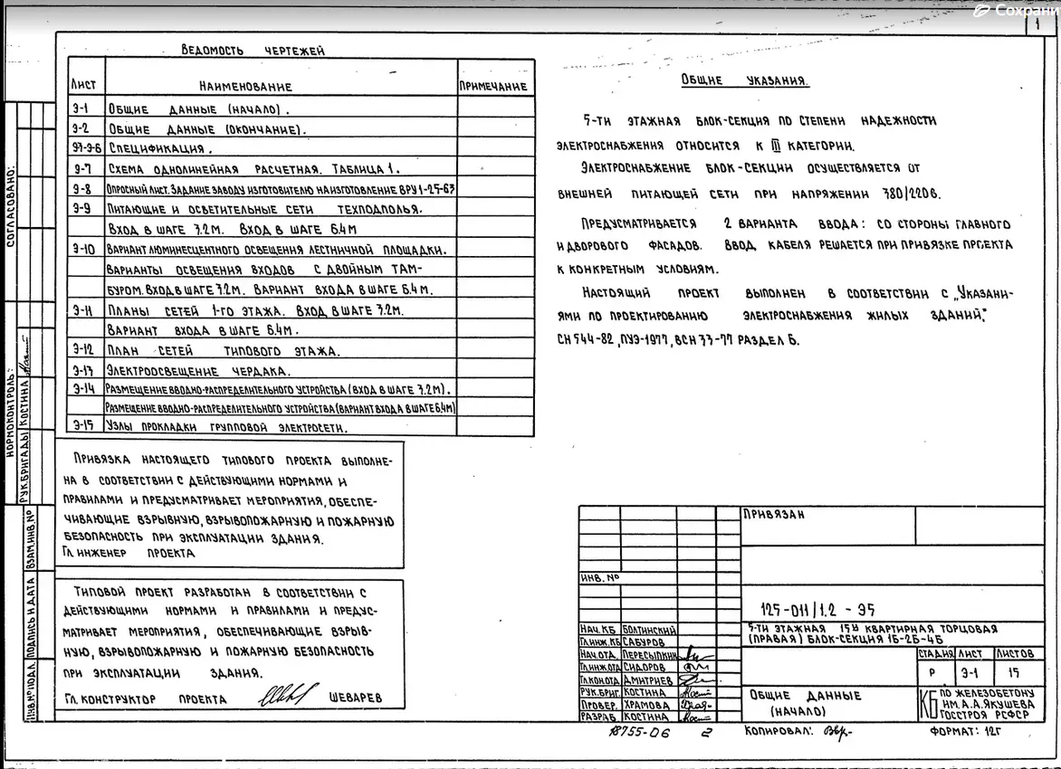 Типовой проект 125-011/1.2 5-ти этажная 15-ти квартирная торцовая (правая) блок-секция 1-Б 2-Б 4-Б. Чертежи (формат TIF)