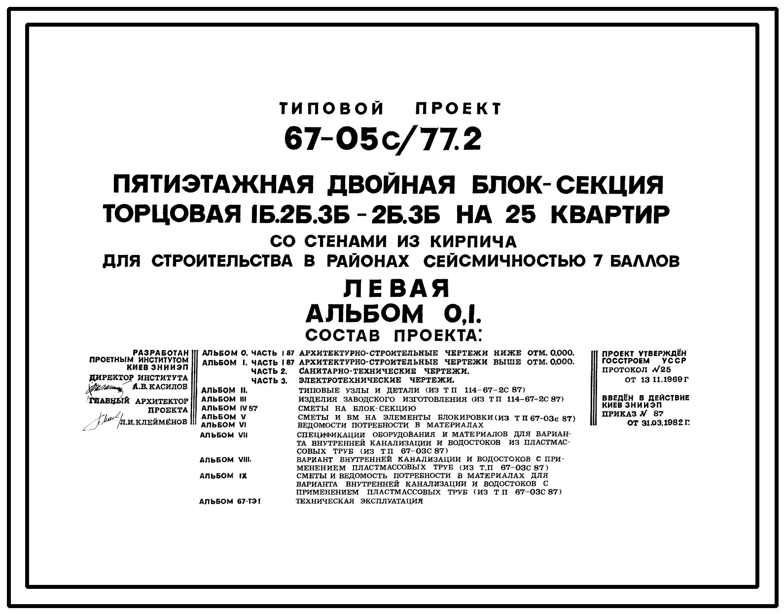 Типовой проект 67-05с/77.2 Пятиэтажная двойная блок-секция торцовая 1Б, 2Б, 3Б-2Б, 3Б на 25 квартир. Паспорт проекта (формат PDF) Чертежи (формат TIF)
