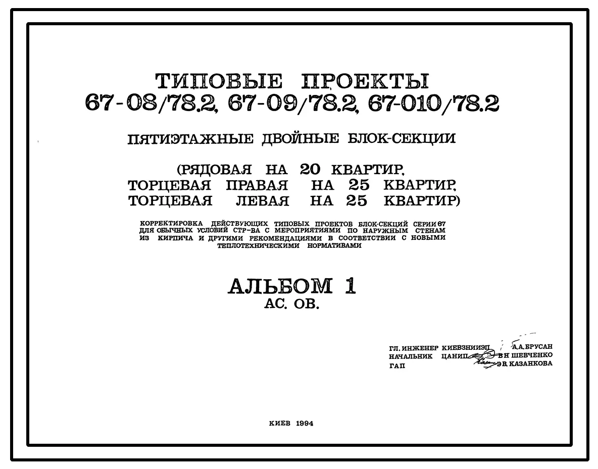 Типовой проект 67-010/78.2 Двойная блок-секция торцовая 5-этажная 25-квартирная 1Б, 2Б, 3Б-2Б, 3Б (левая). Паспорт проекта (формат PDF) Чертежи (формат TIF)