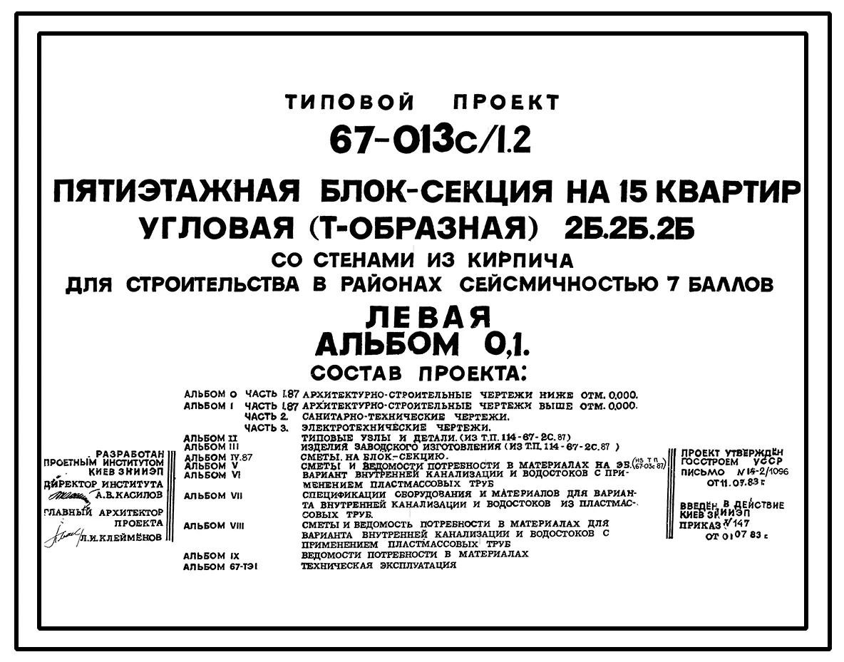 Типовой проект 67-013с/1.2 Пятиэтажная блок-секция на 15 квартир угловая (Т-образная) 2Б, 2Б,2Б (левая). Паспорт проекта (формат PDF) Чертежи (формат TIF)