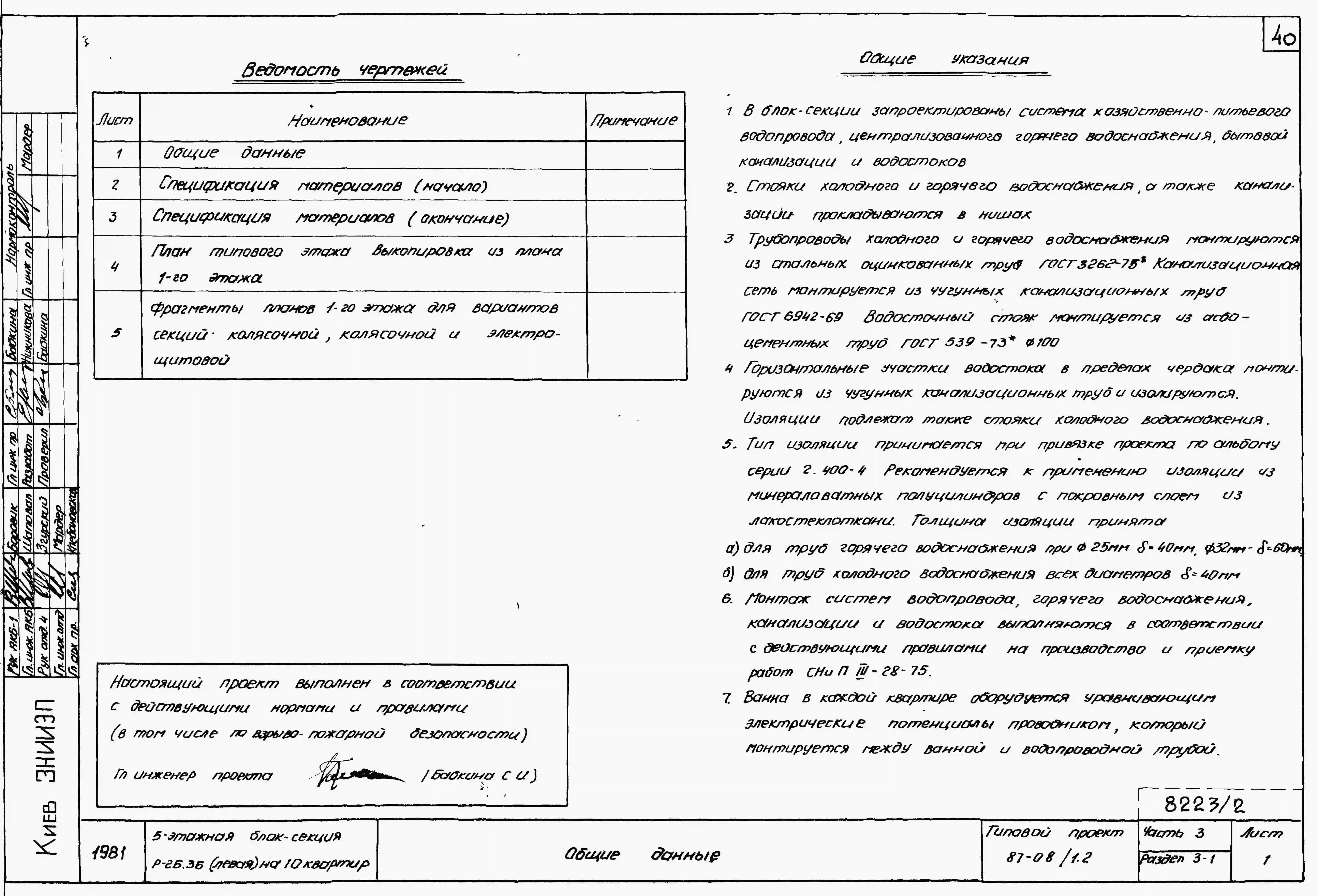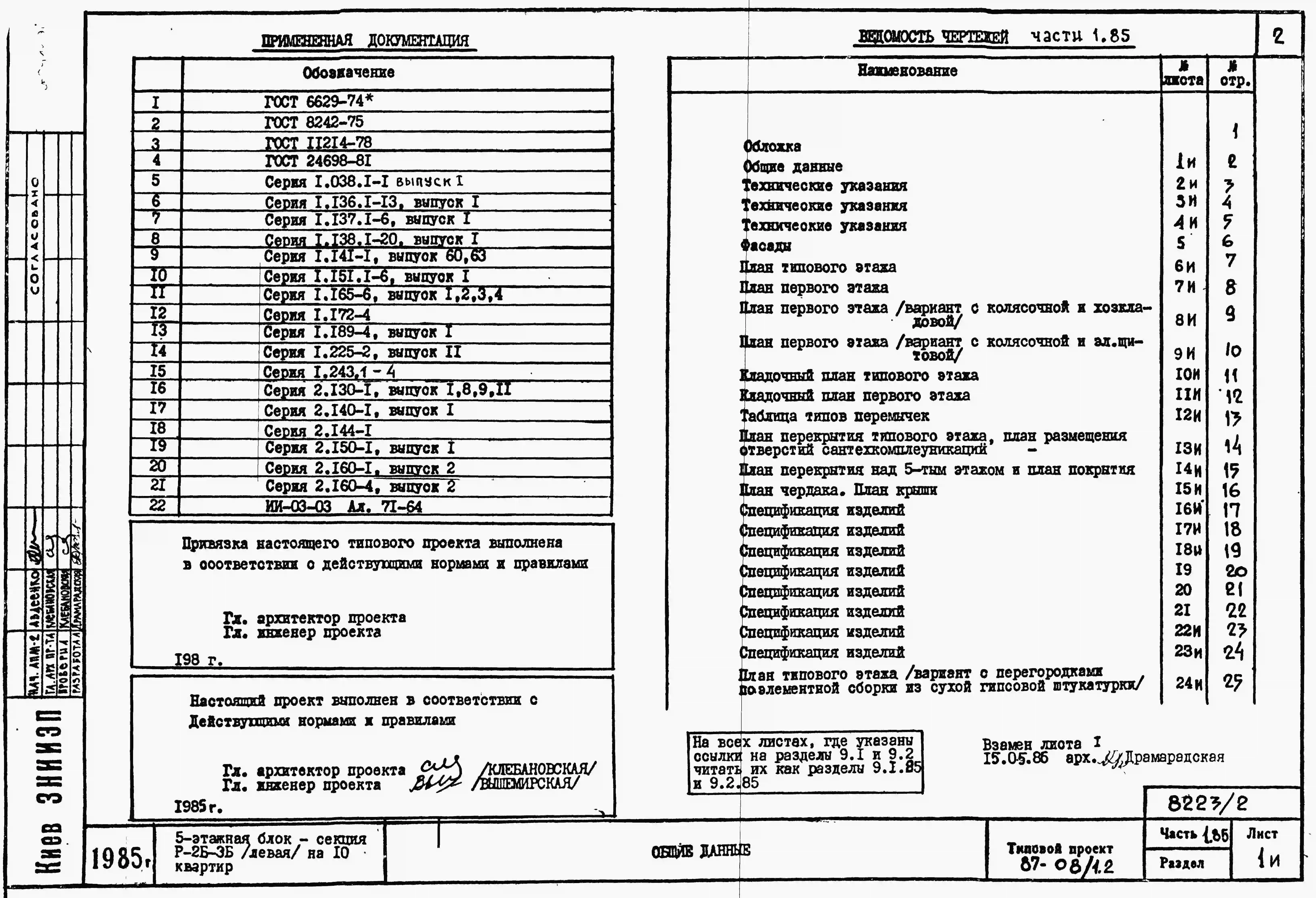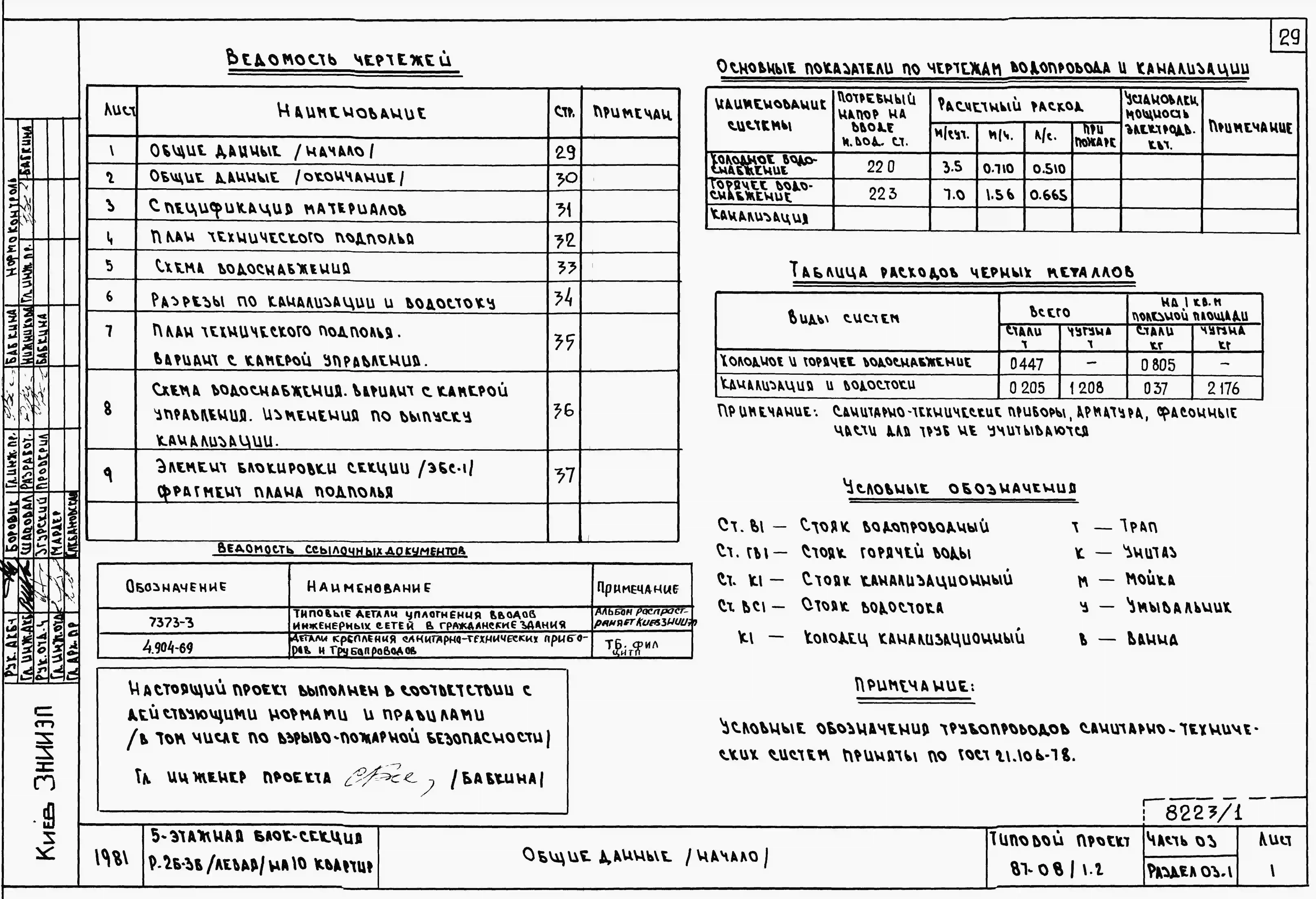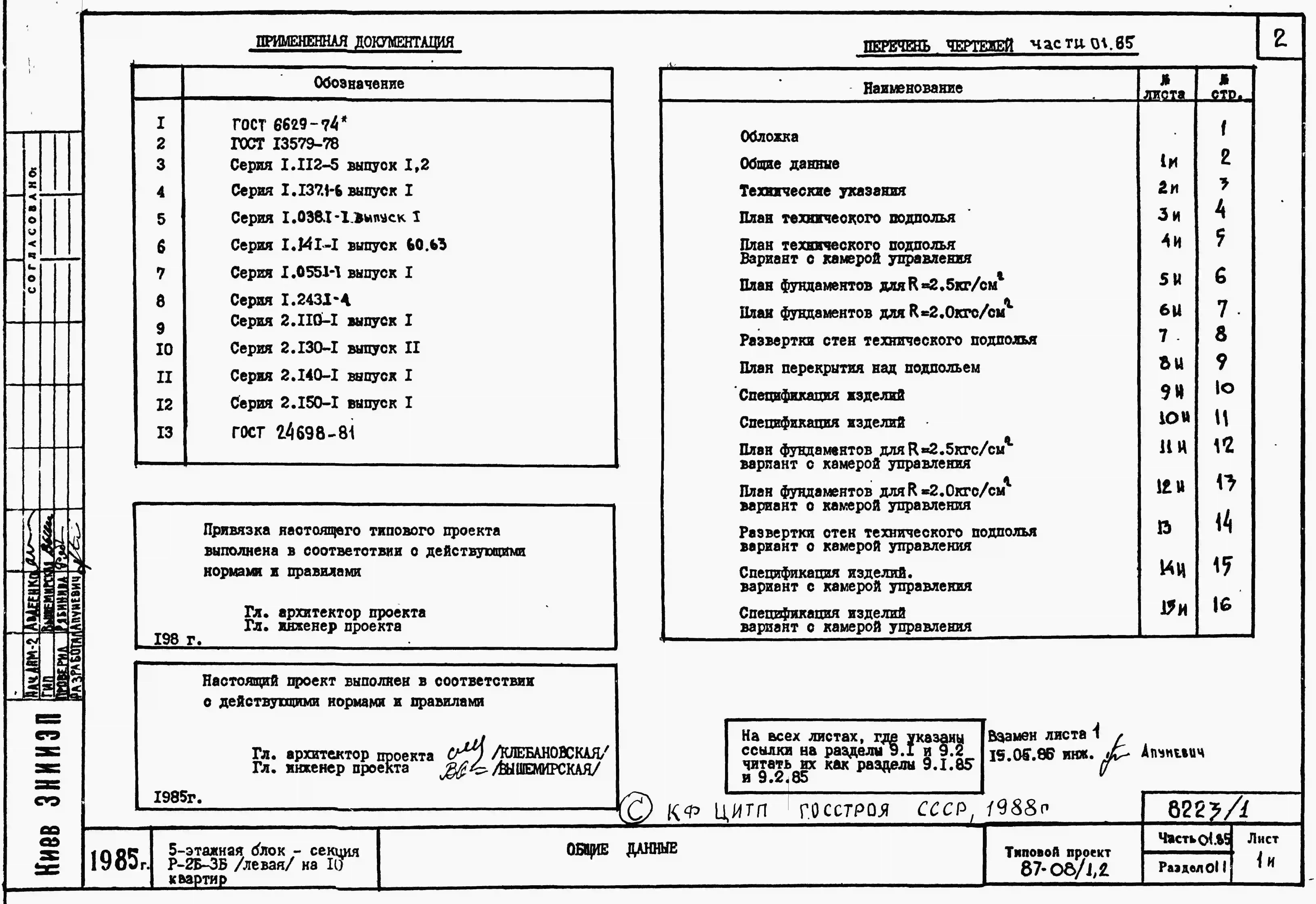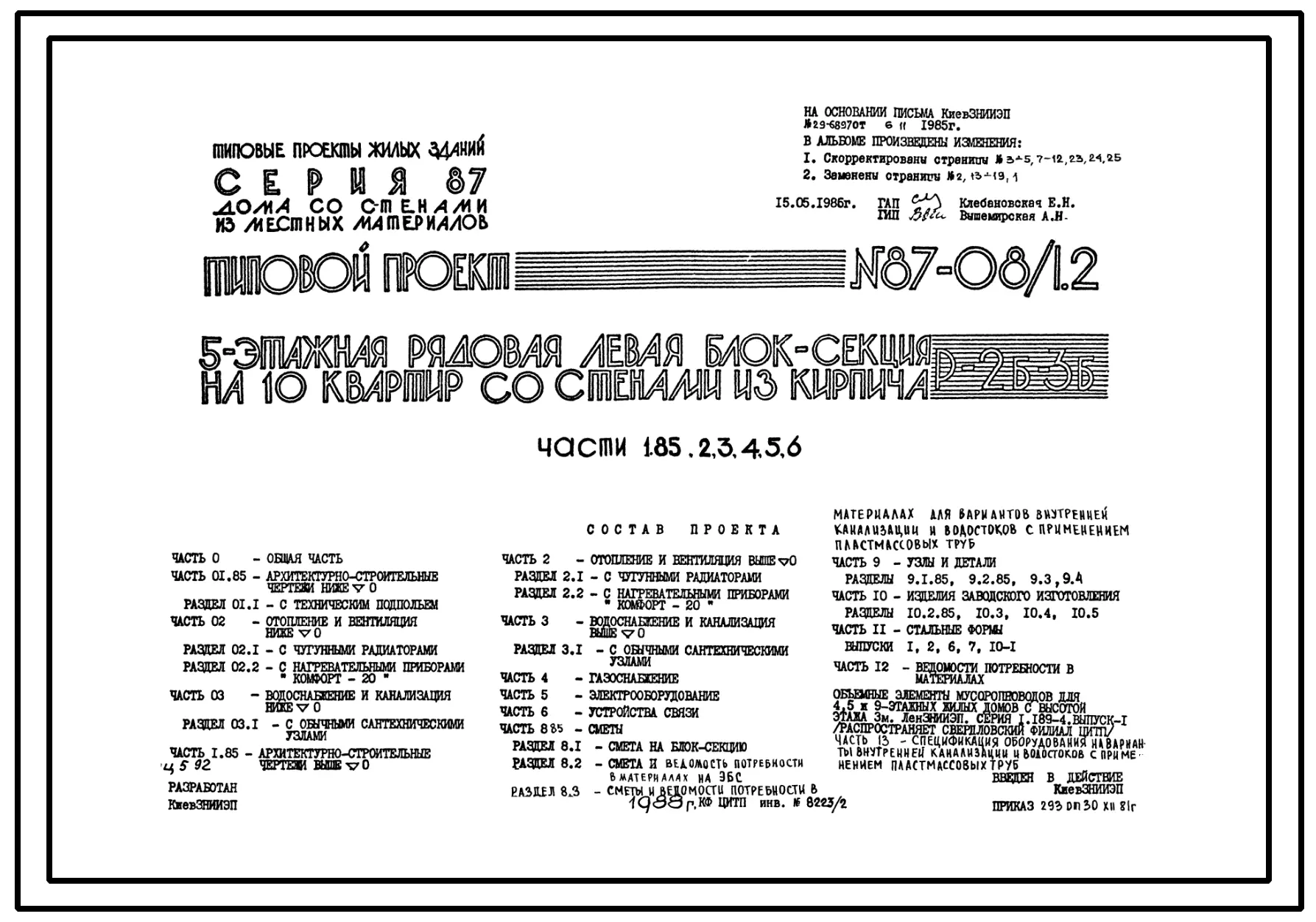 Типовой проект 87-08/1.2 Пятиэтажная рядовая левая блок-секция на 10 квартир Р-2Б-3Б. Паспорт проекта (формат PDF) Чертежи (формат TIF)