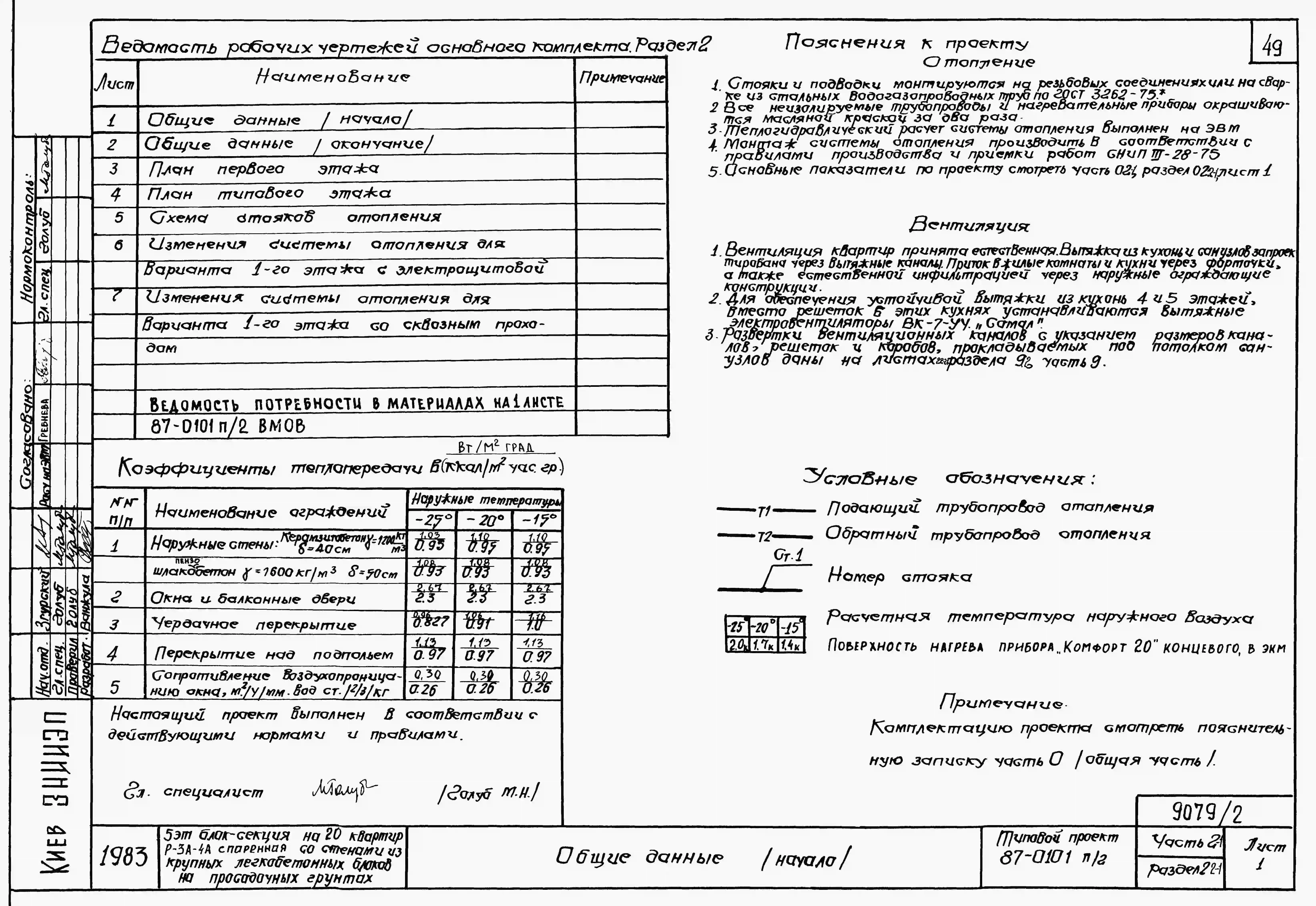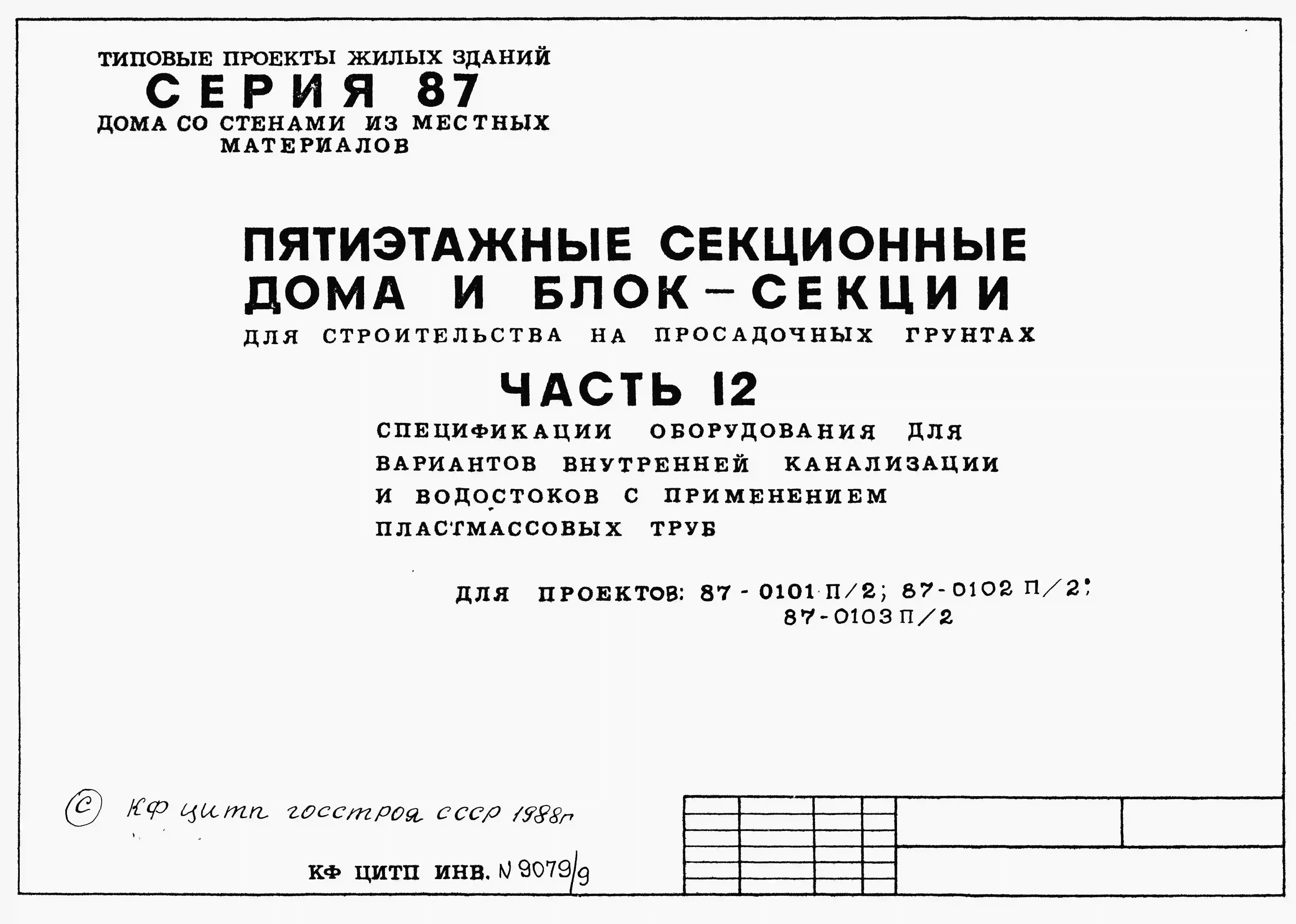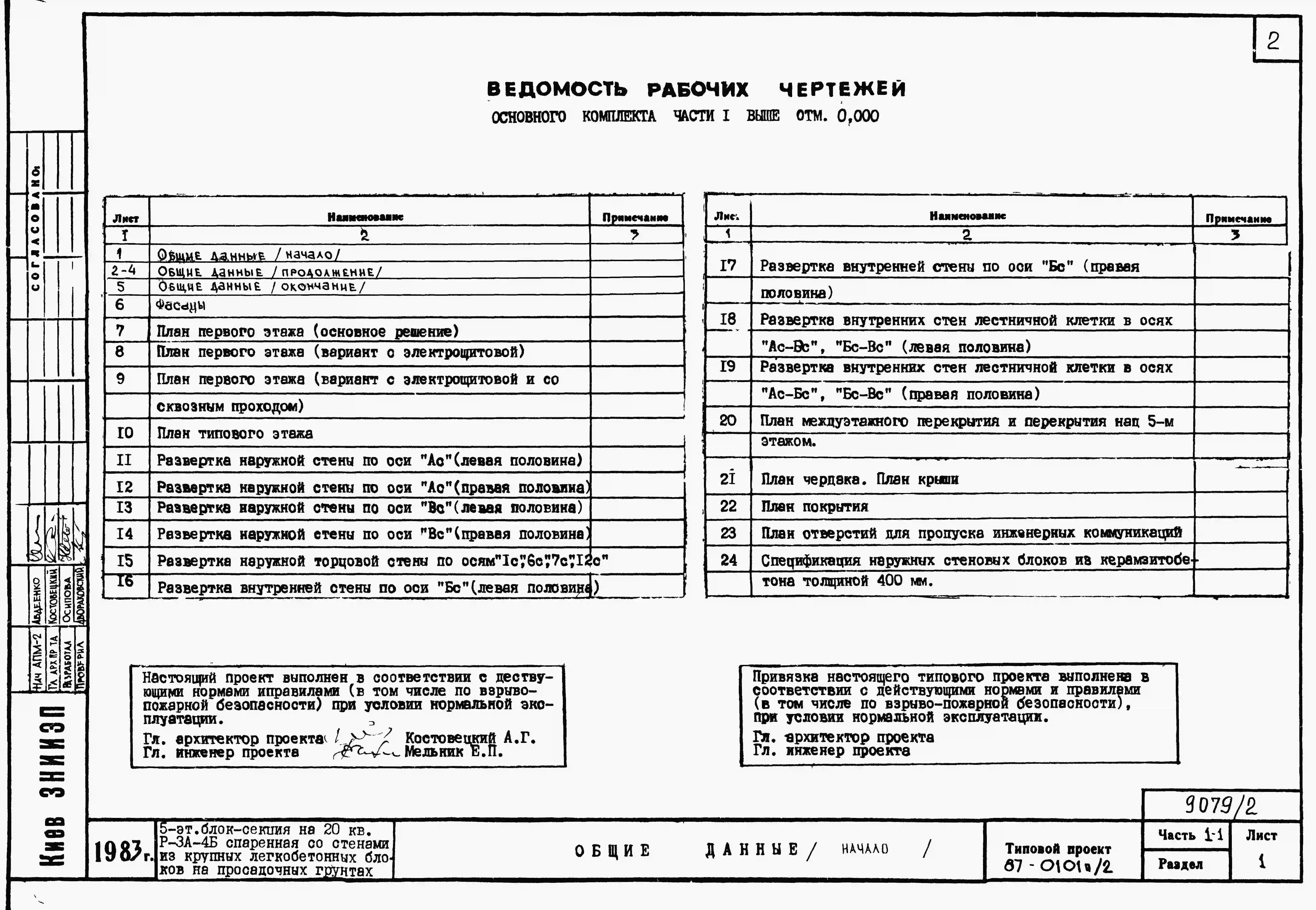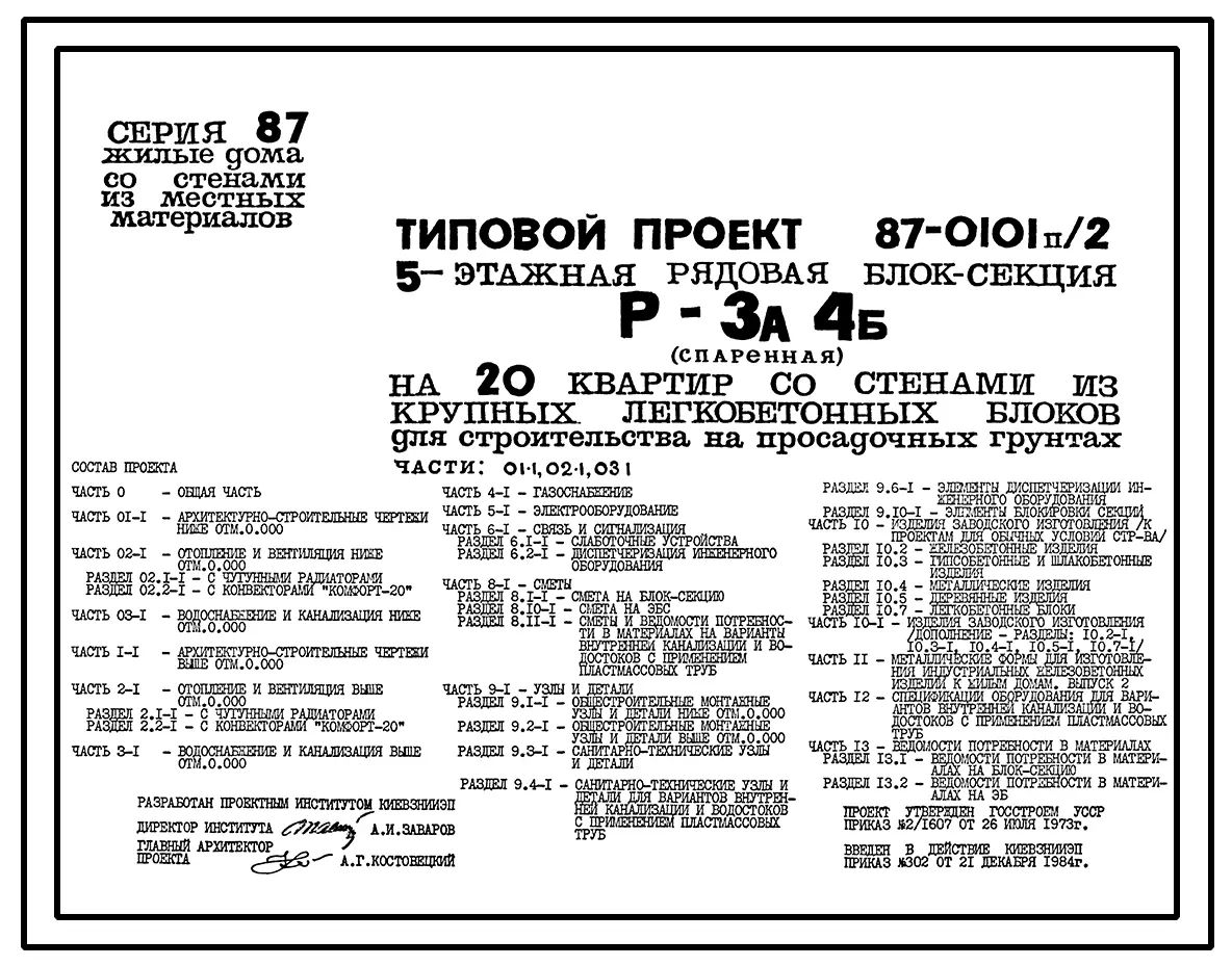 Типовой проект 87-0101п/2 Блок-секция рядовая 5-этажная 20-квартирная Р-3А-4Б /спаренная/