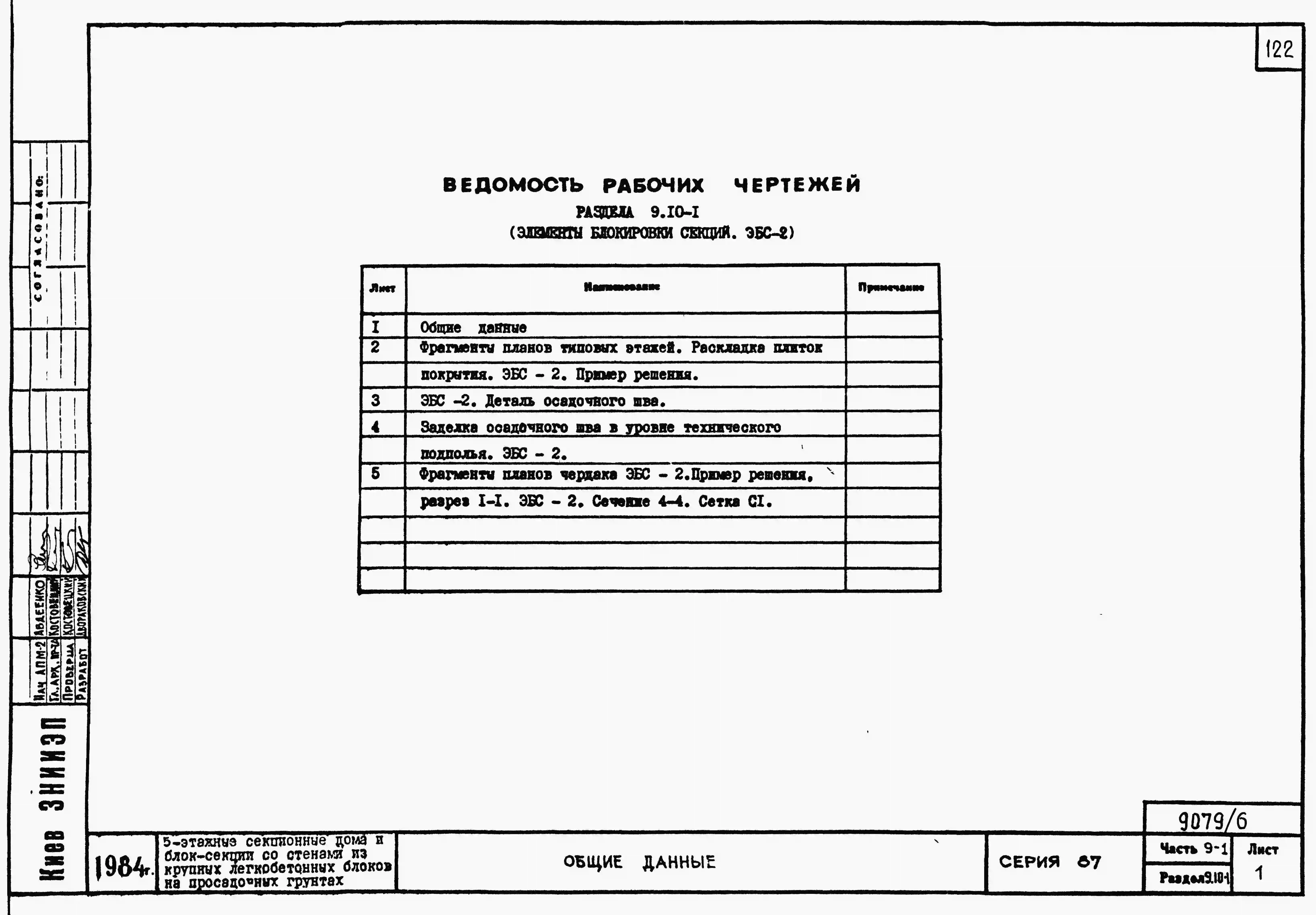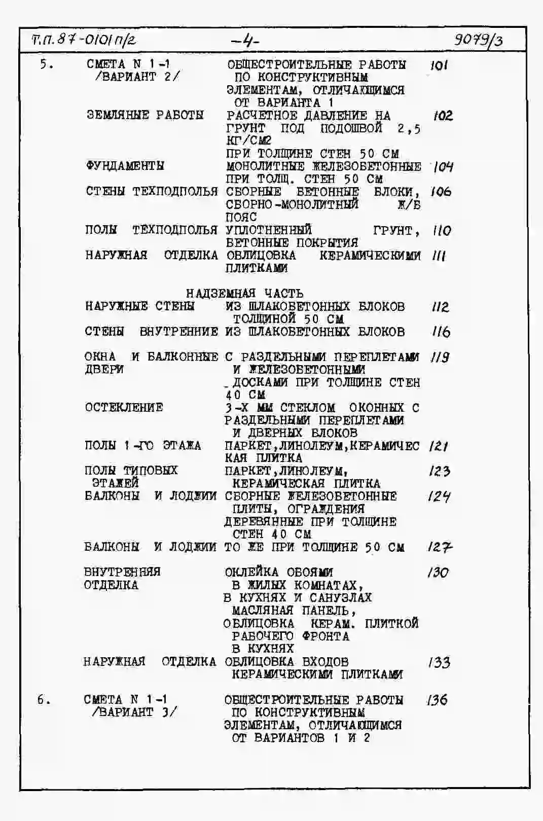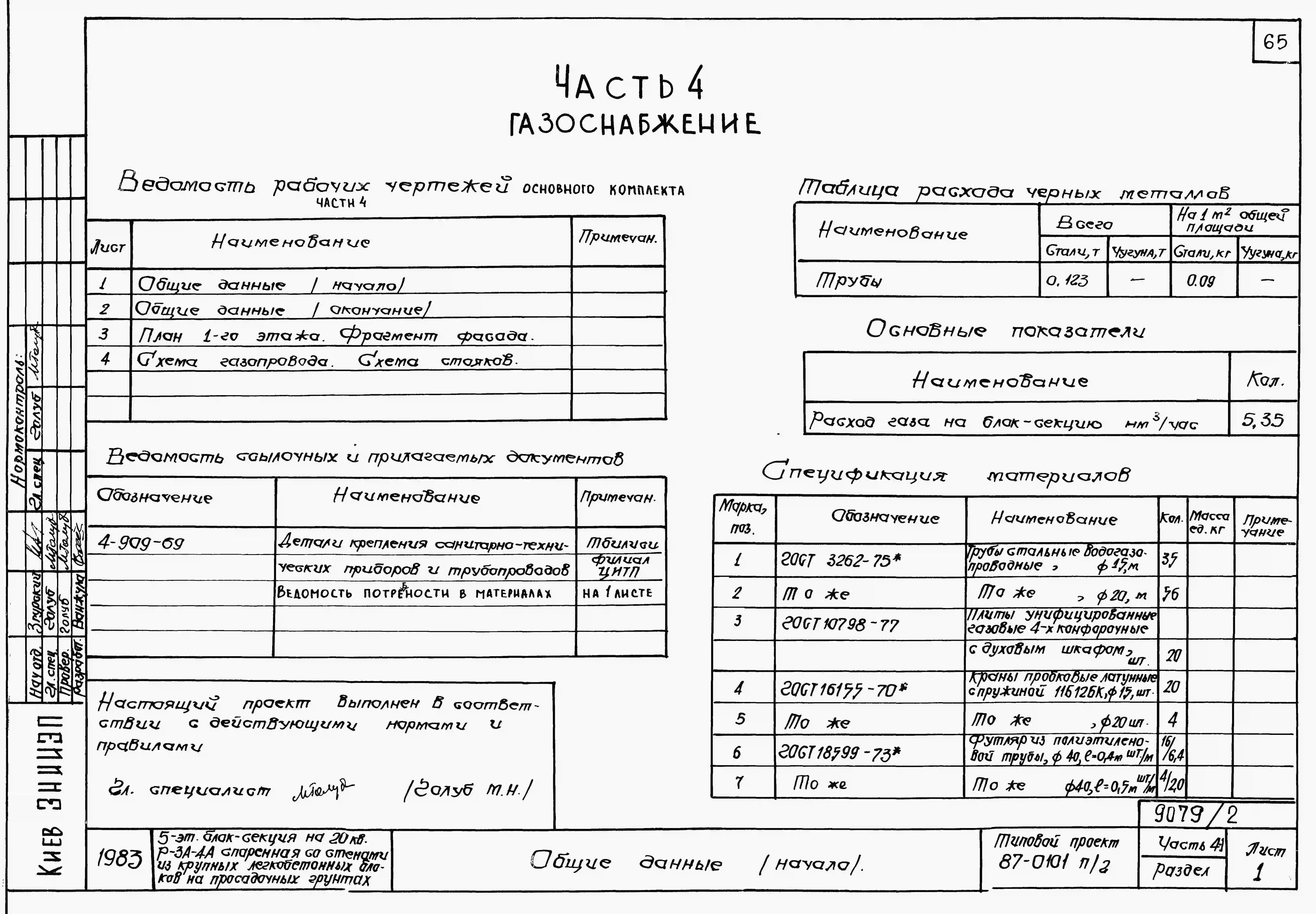 Типовой проект 87-0101п/2 Блок-секция рядовая 5-этажная 20-квартирная Р-3А-4Б /спаренная/