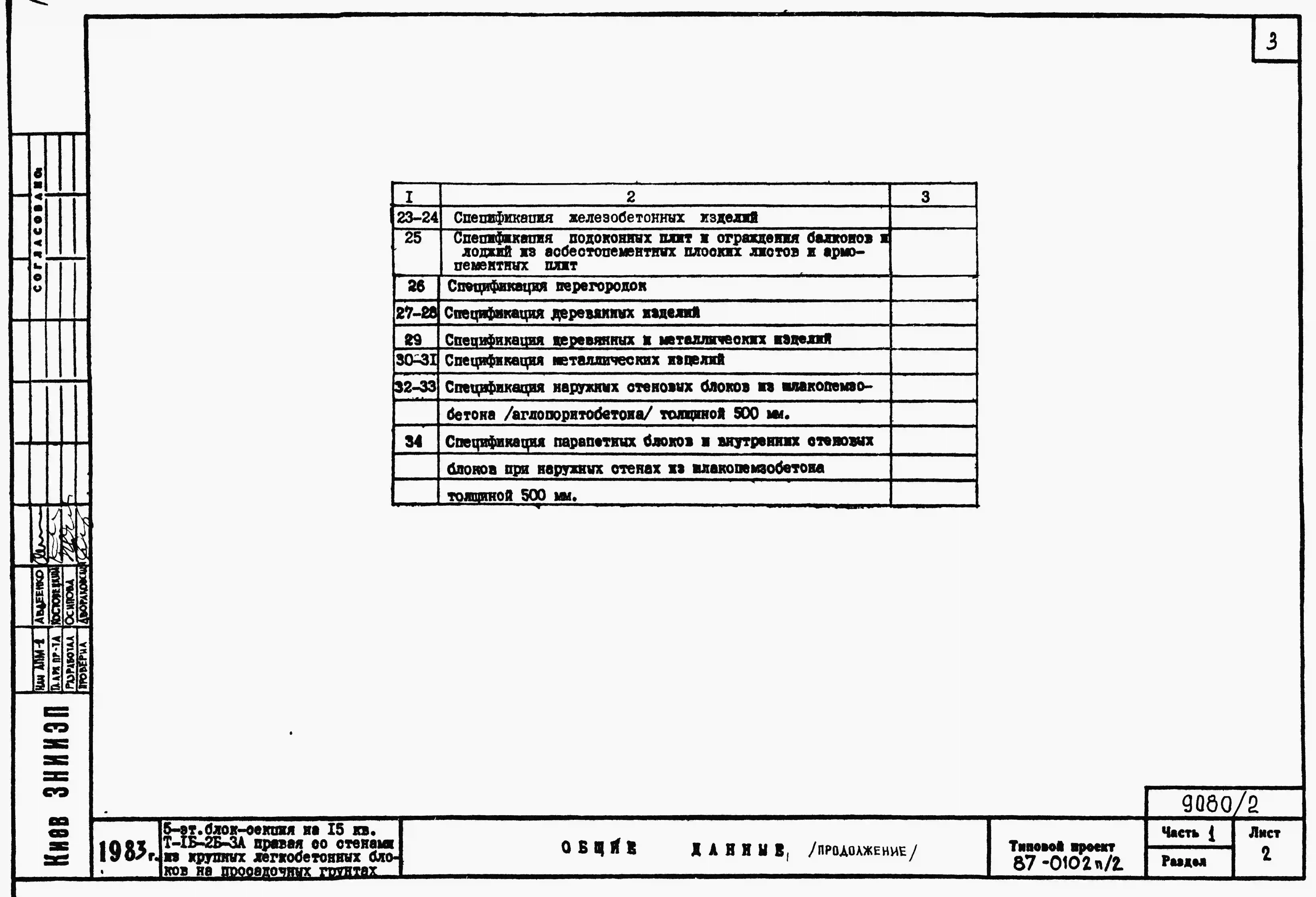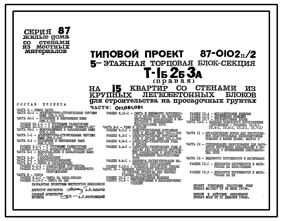 Типовой проект 87-0102п/2 Блок-секция торцовая правая 5-этажная 15-квартирная Т-1Б-2Б-3А