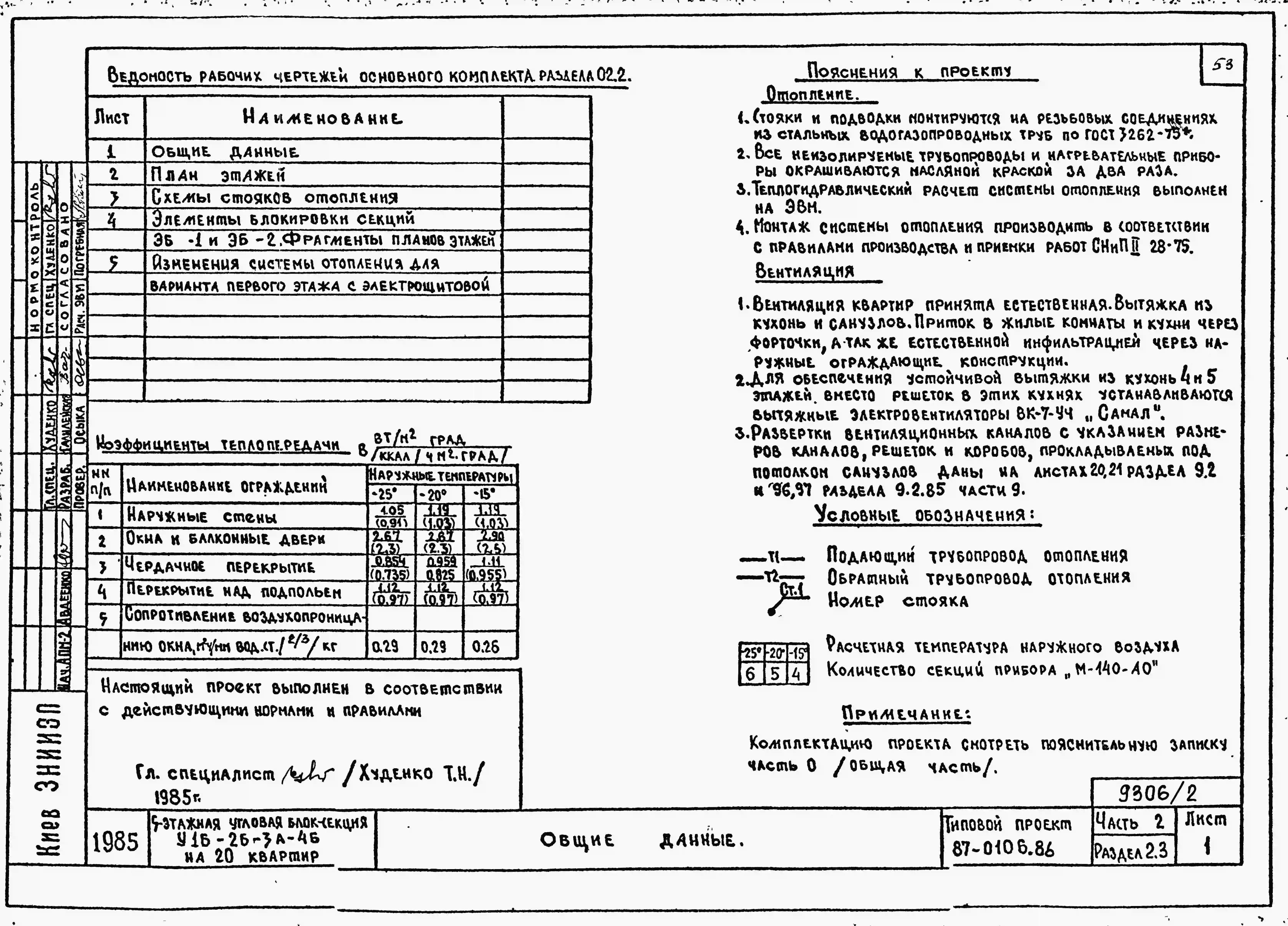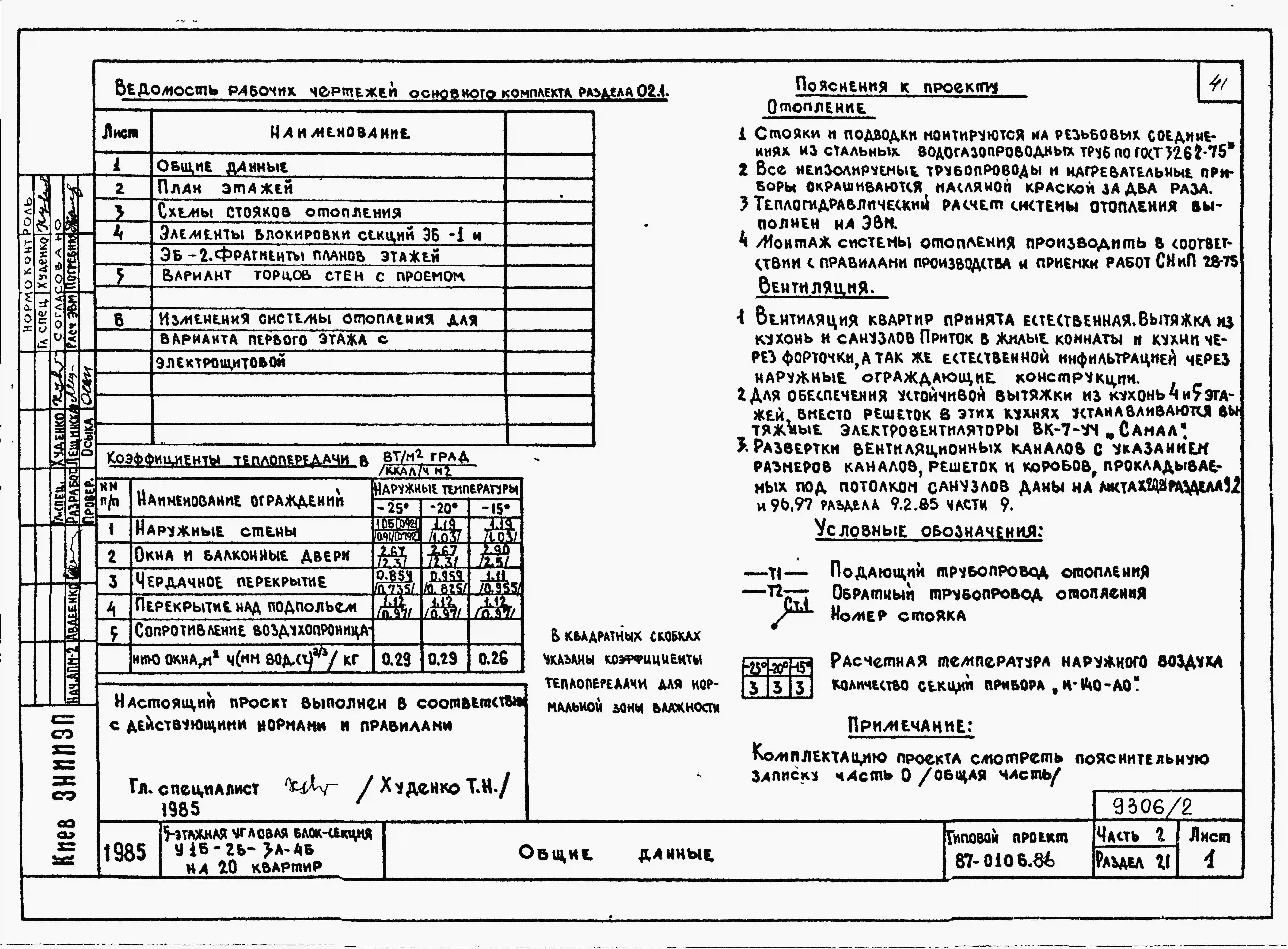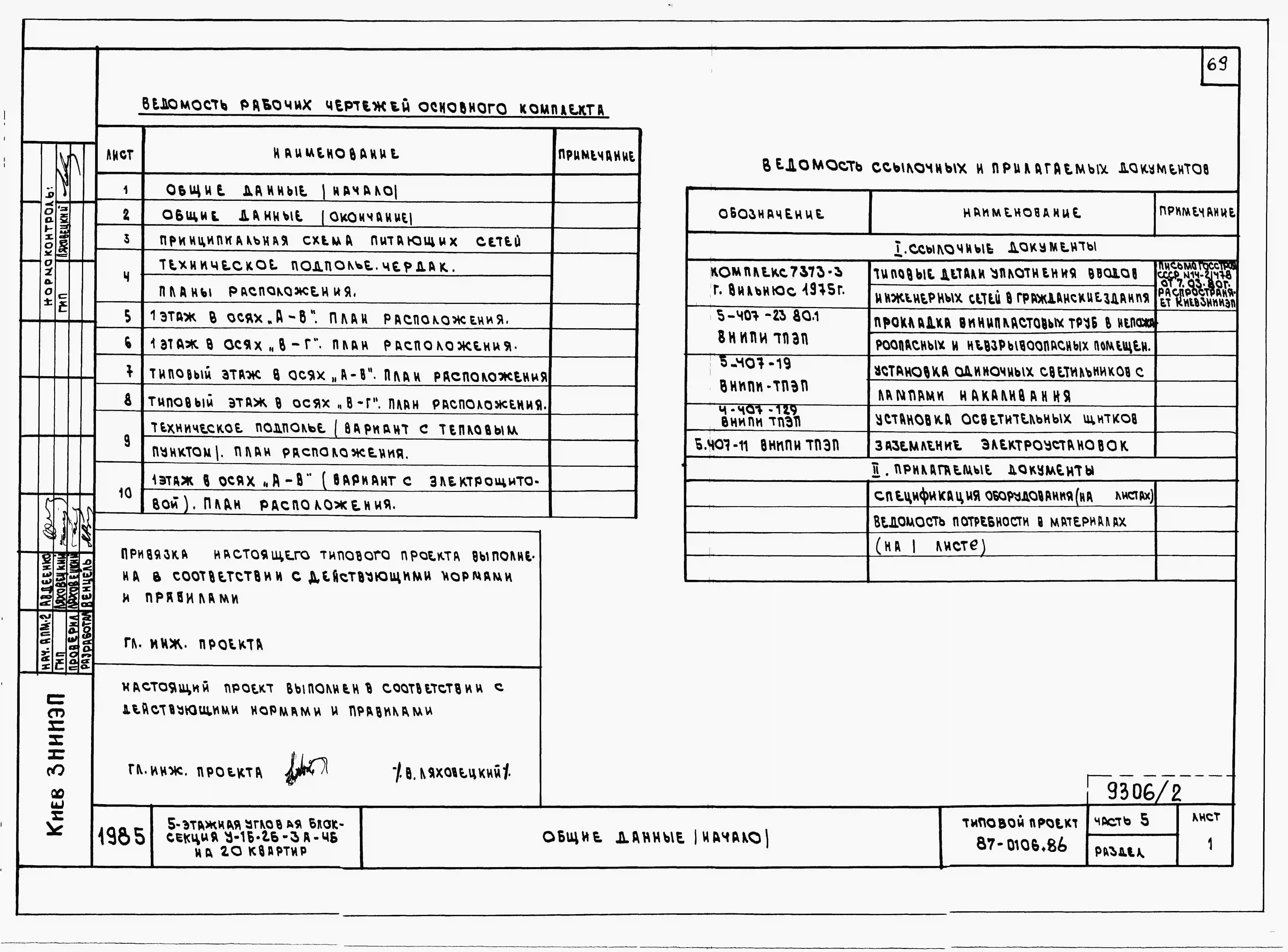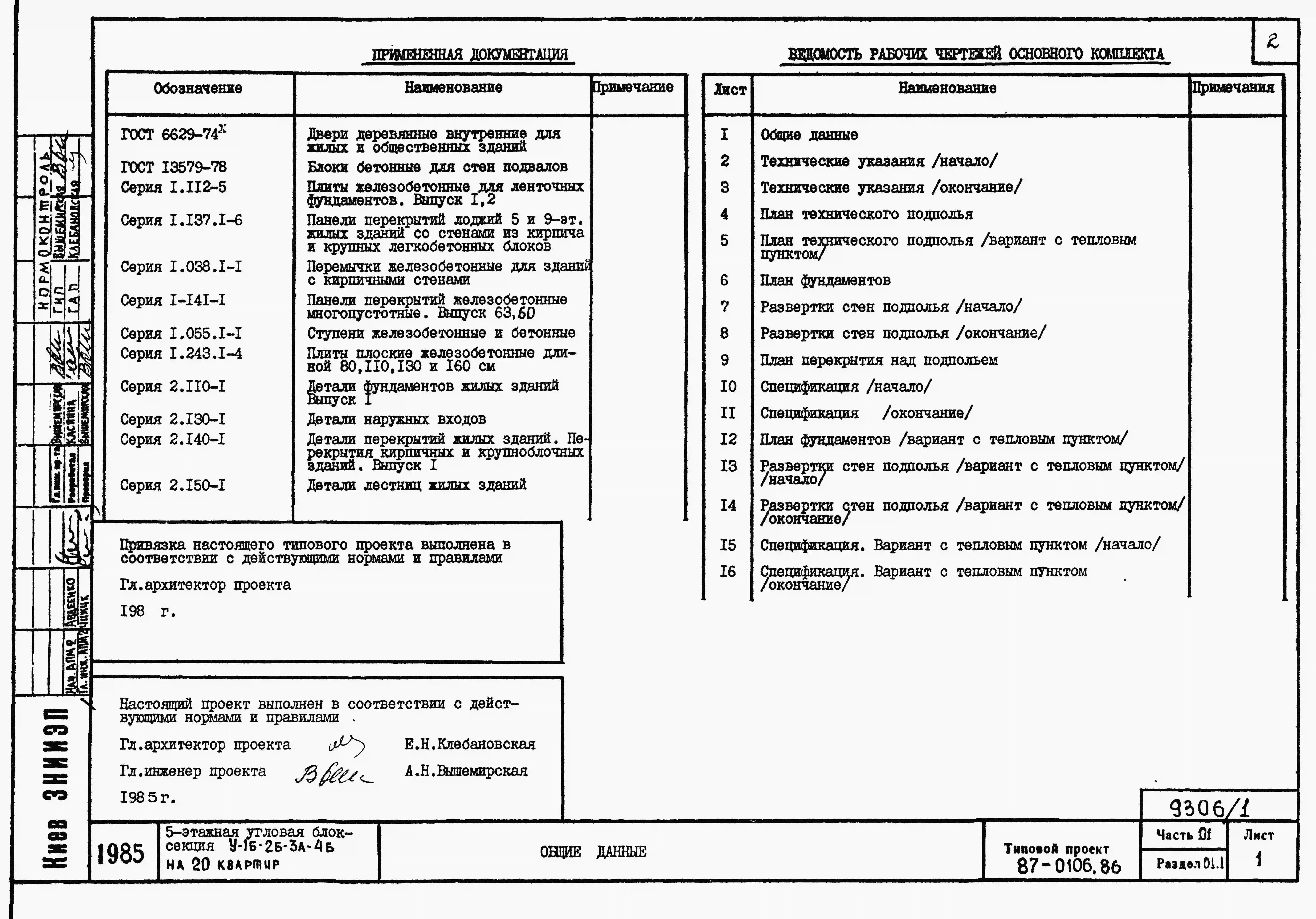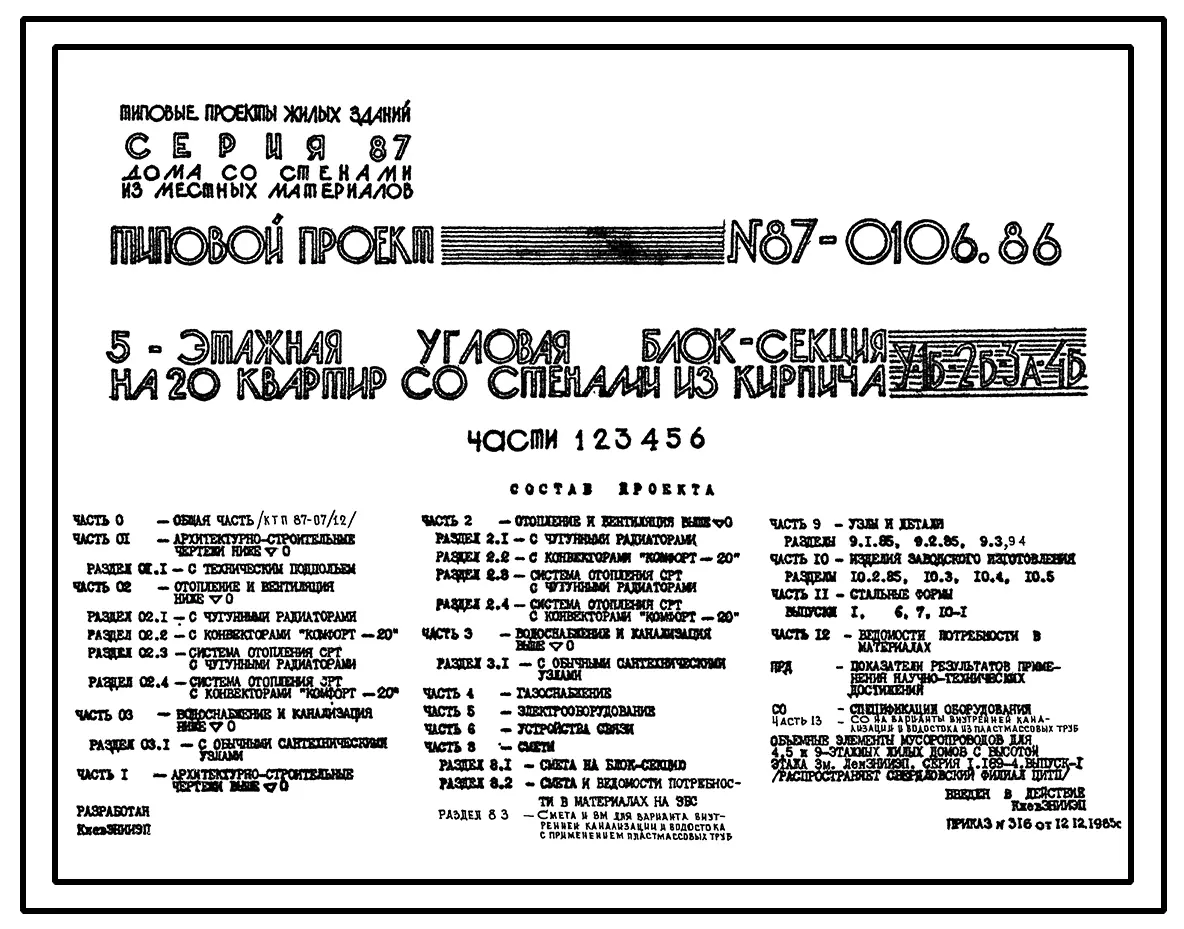 Типовой проект 87-0106.86 Пятиэтажная угловая блок-секция на 20 квартир У-1Б-2Б-3А-4Б
