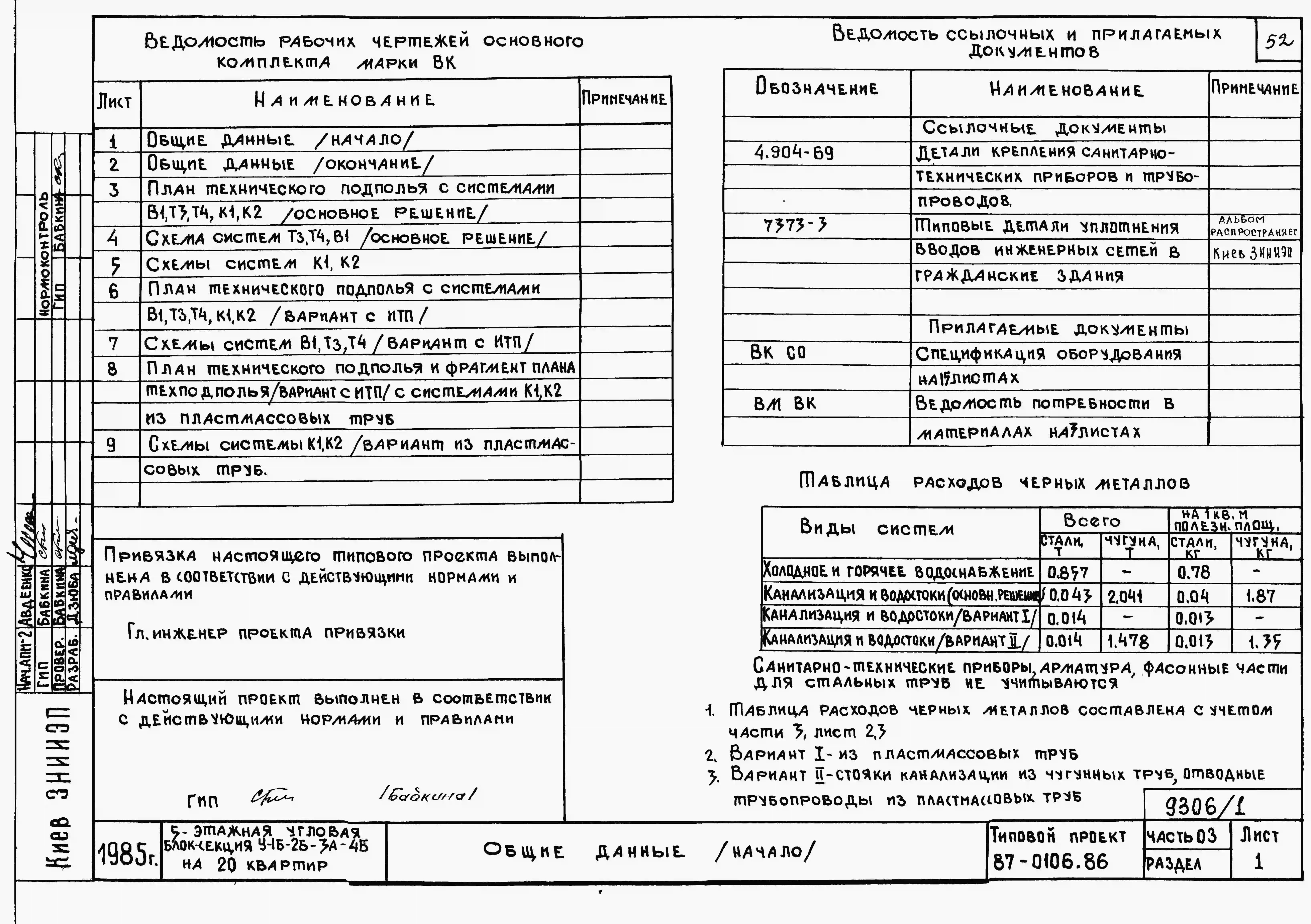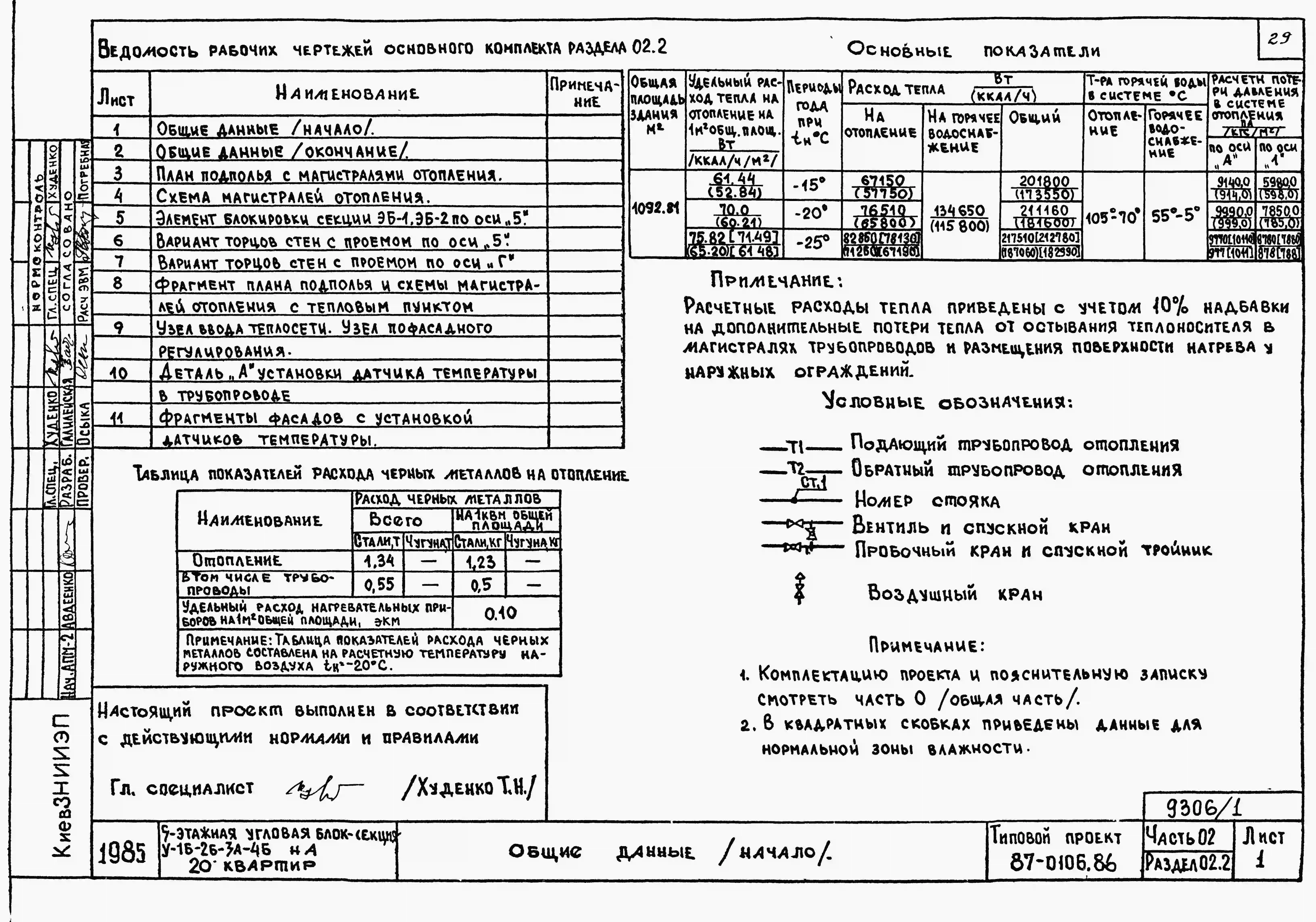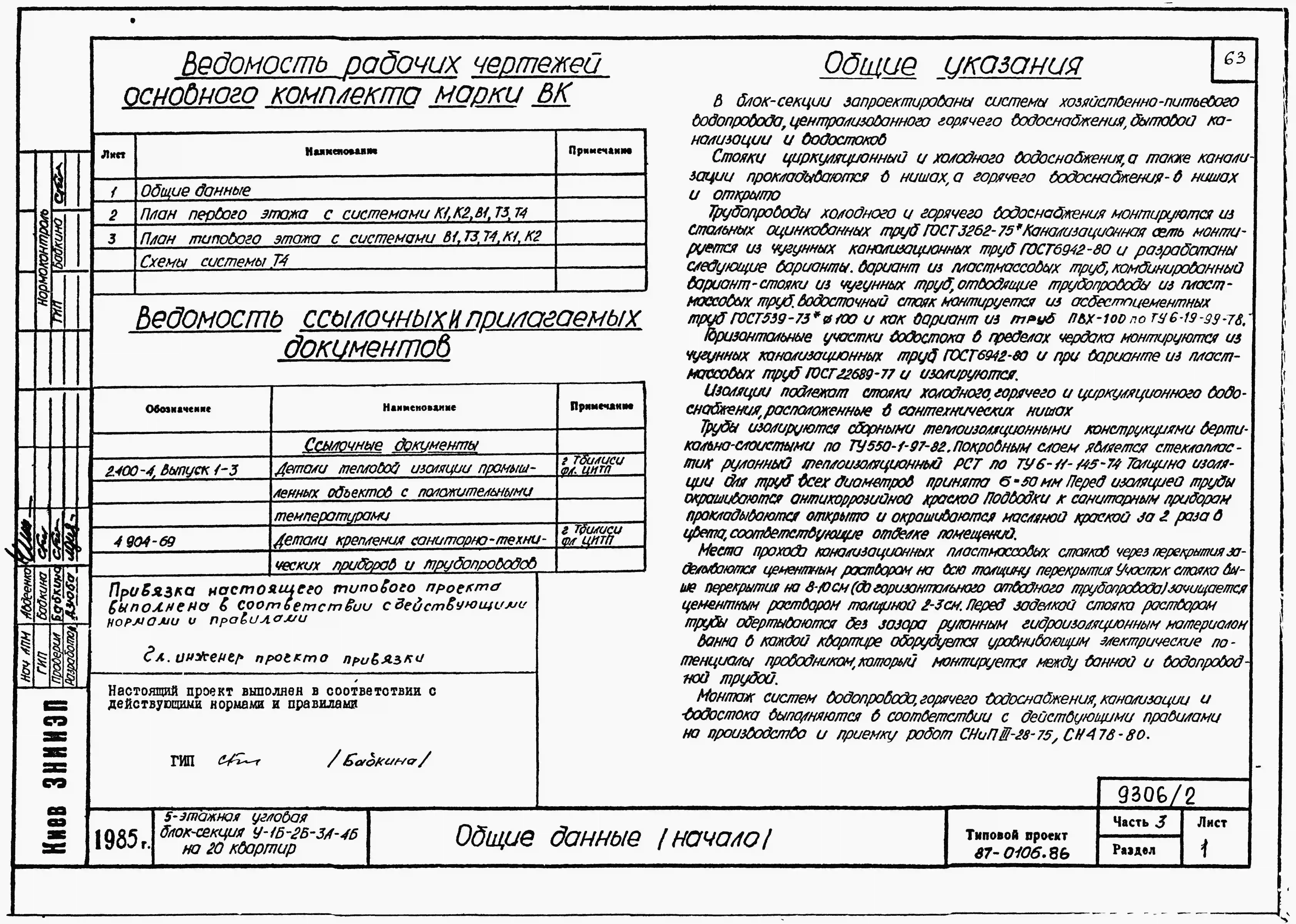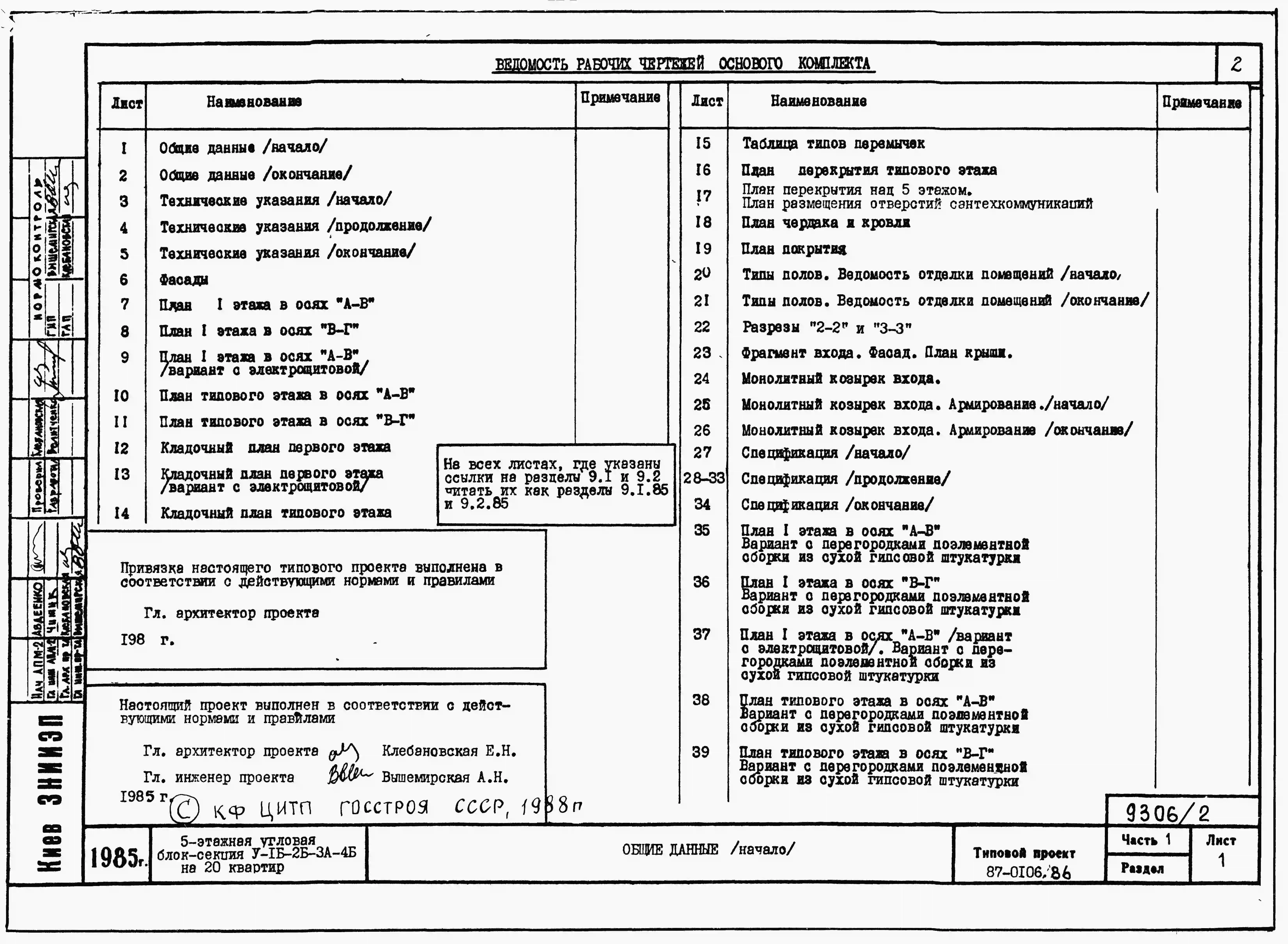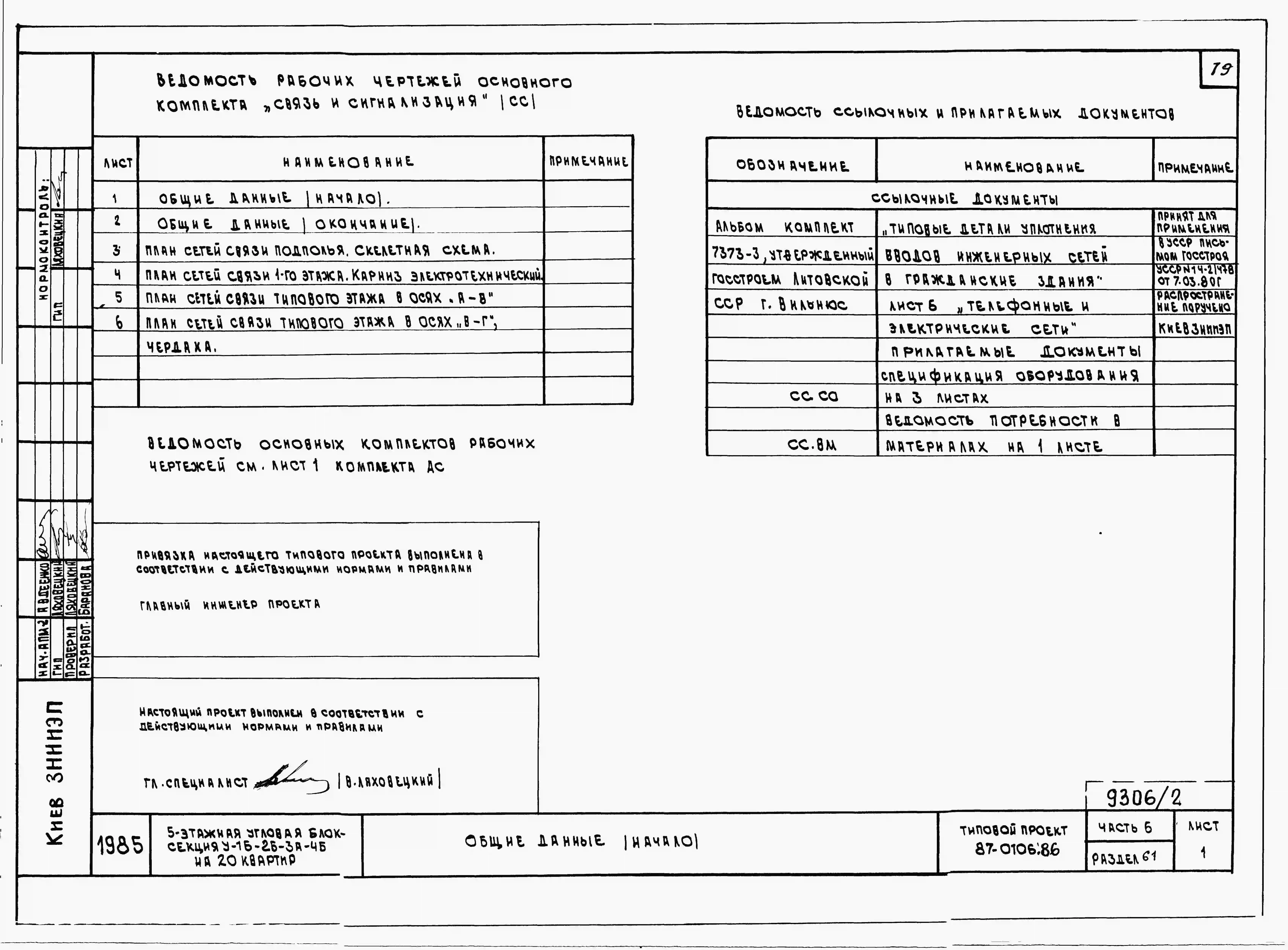 Типовой проект 87-0106.86 Пятиэтажная угловая блок-секция на 20 квартир У-1Б-2Б-3А-4Б