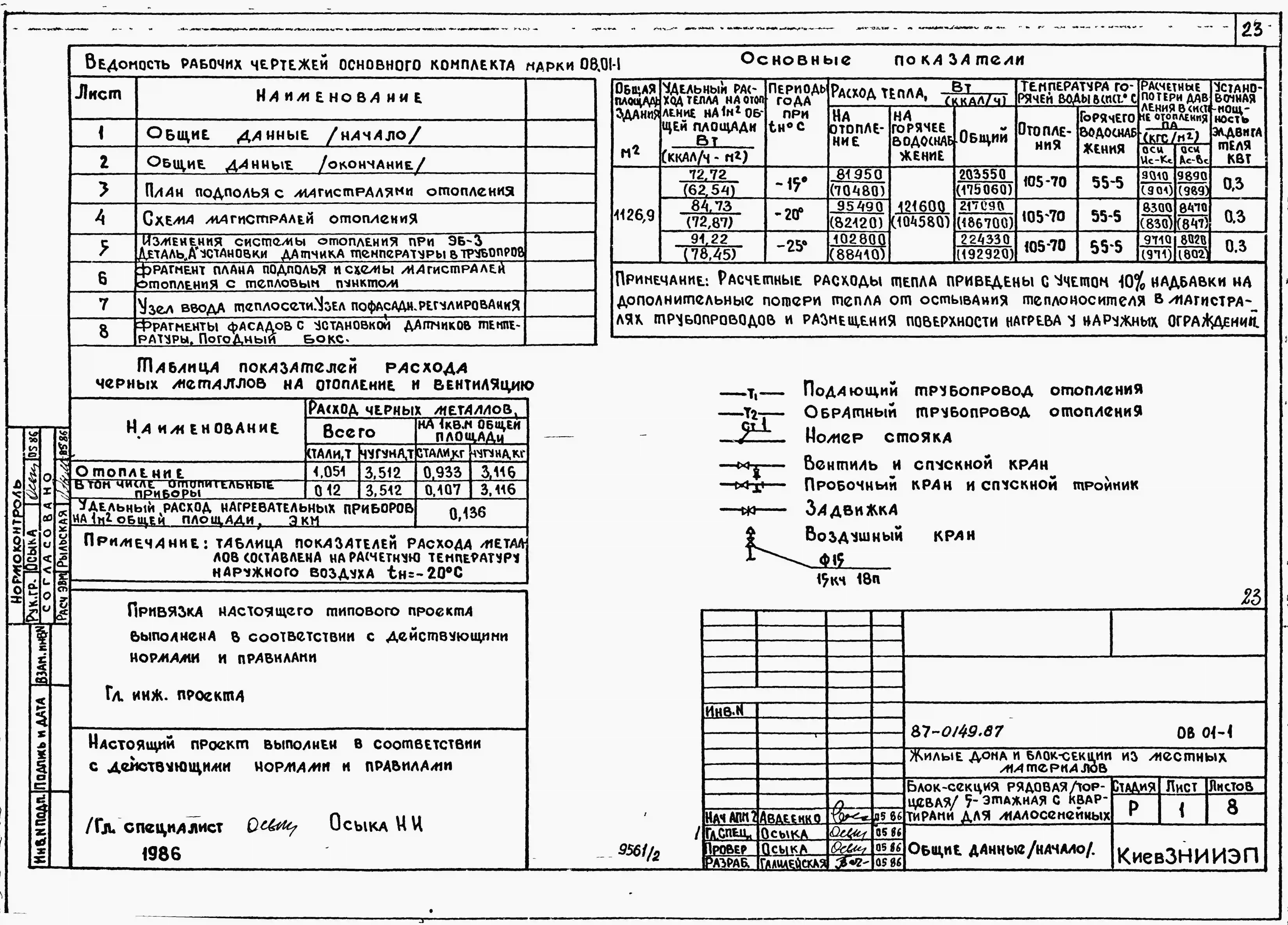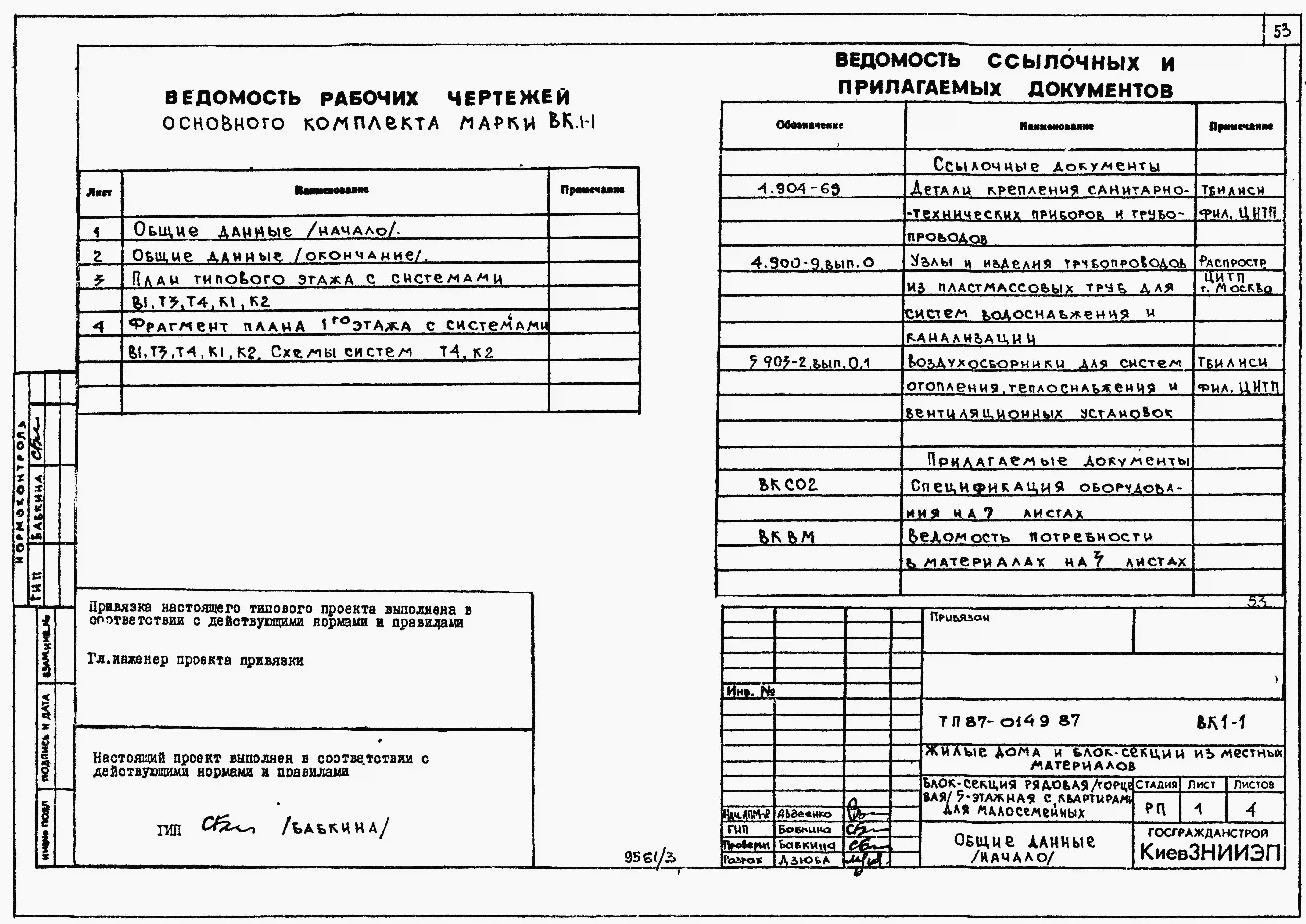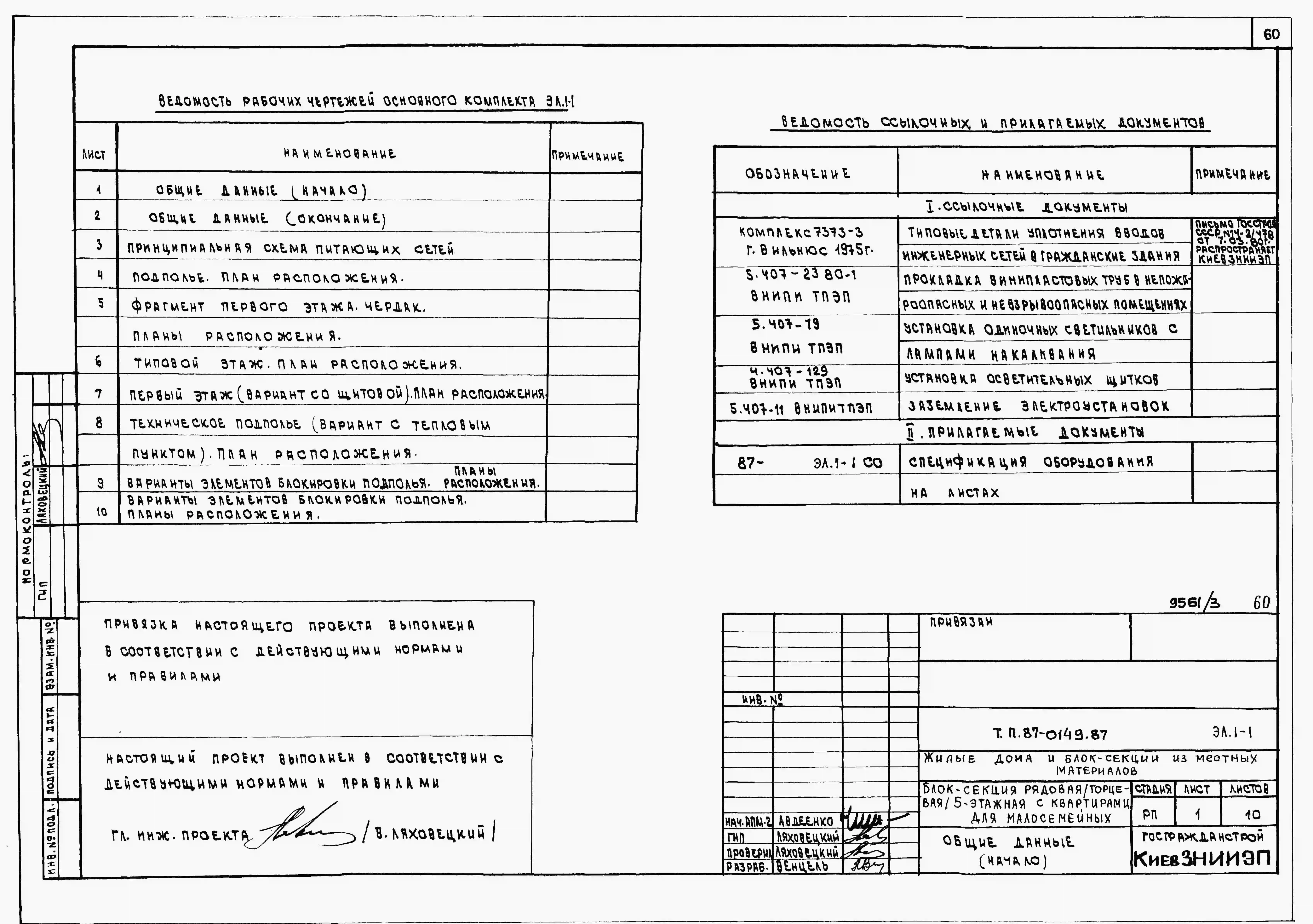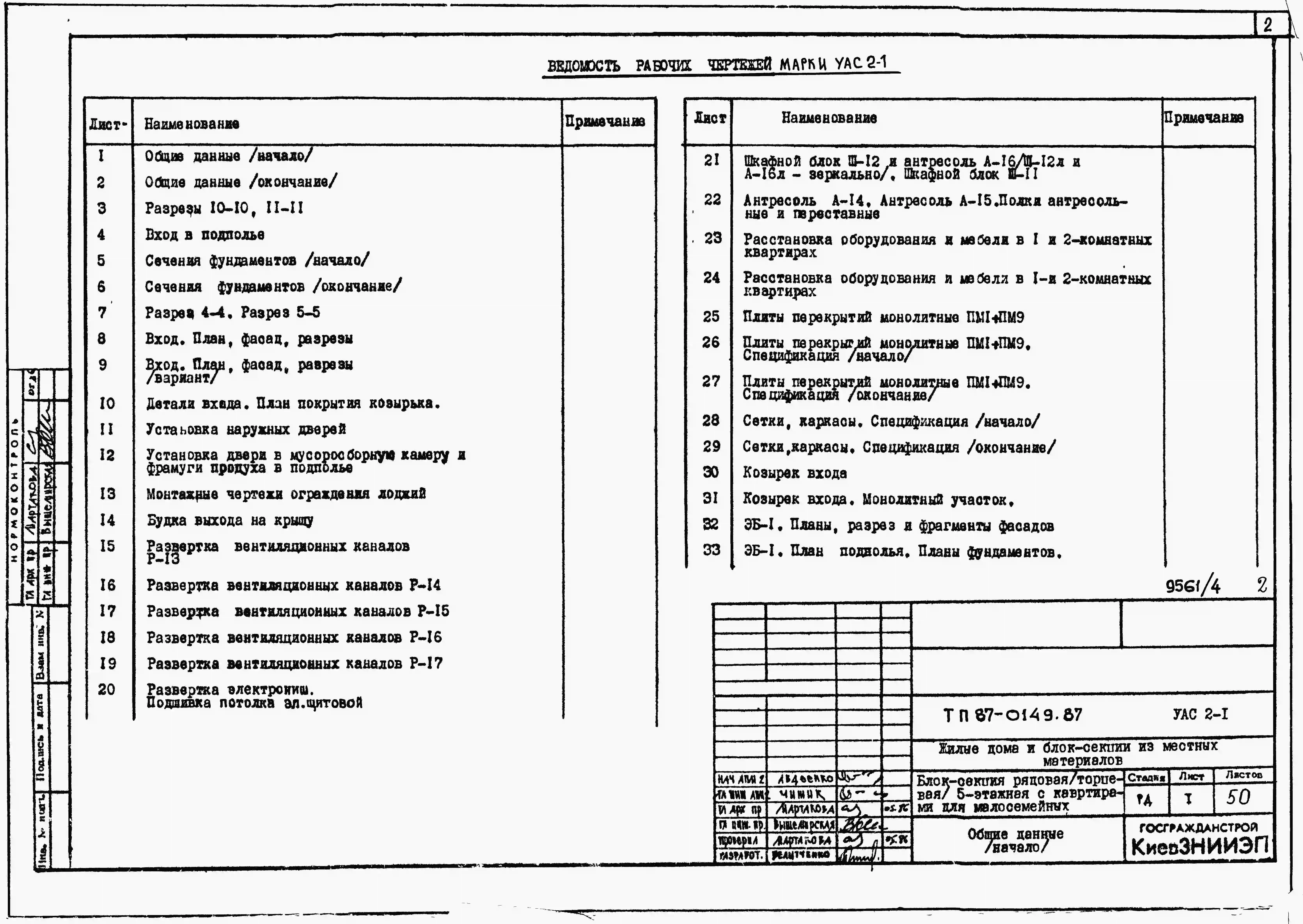 Типовой проект 87-0149.87 5-этажная рядовая /торцовая/ блок-секция на 30 квартир для малосемейных Р/Т/ 1А-1Б-1Б-1Б-2А-2А