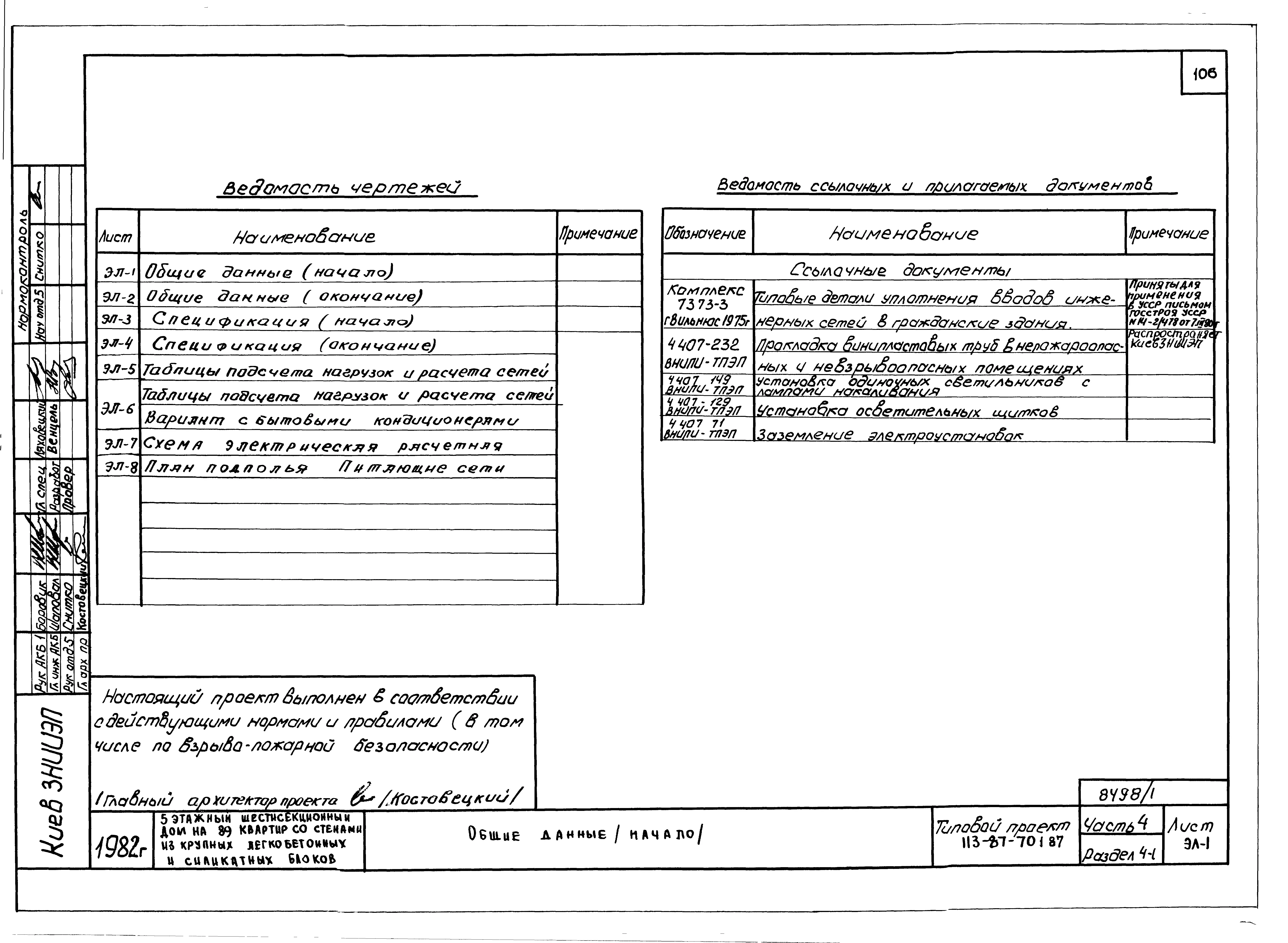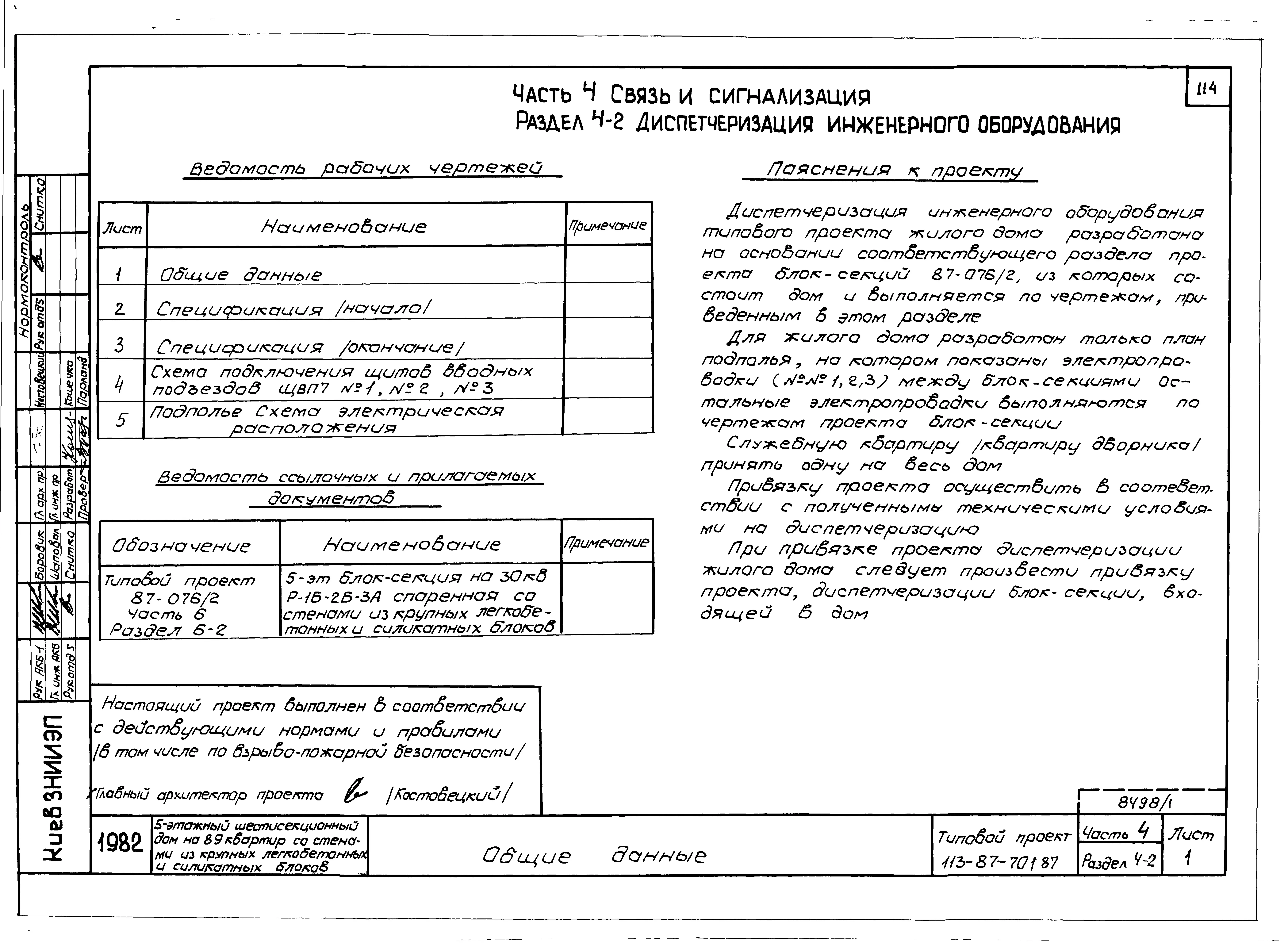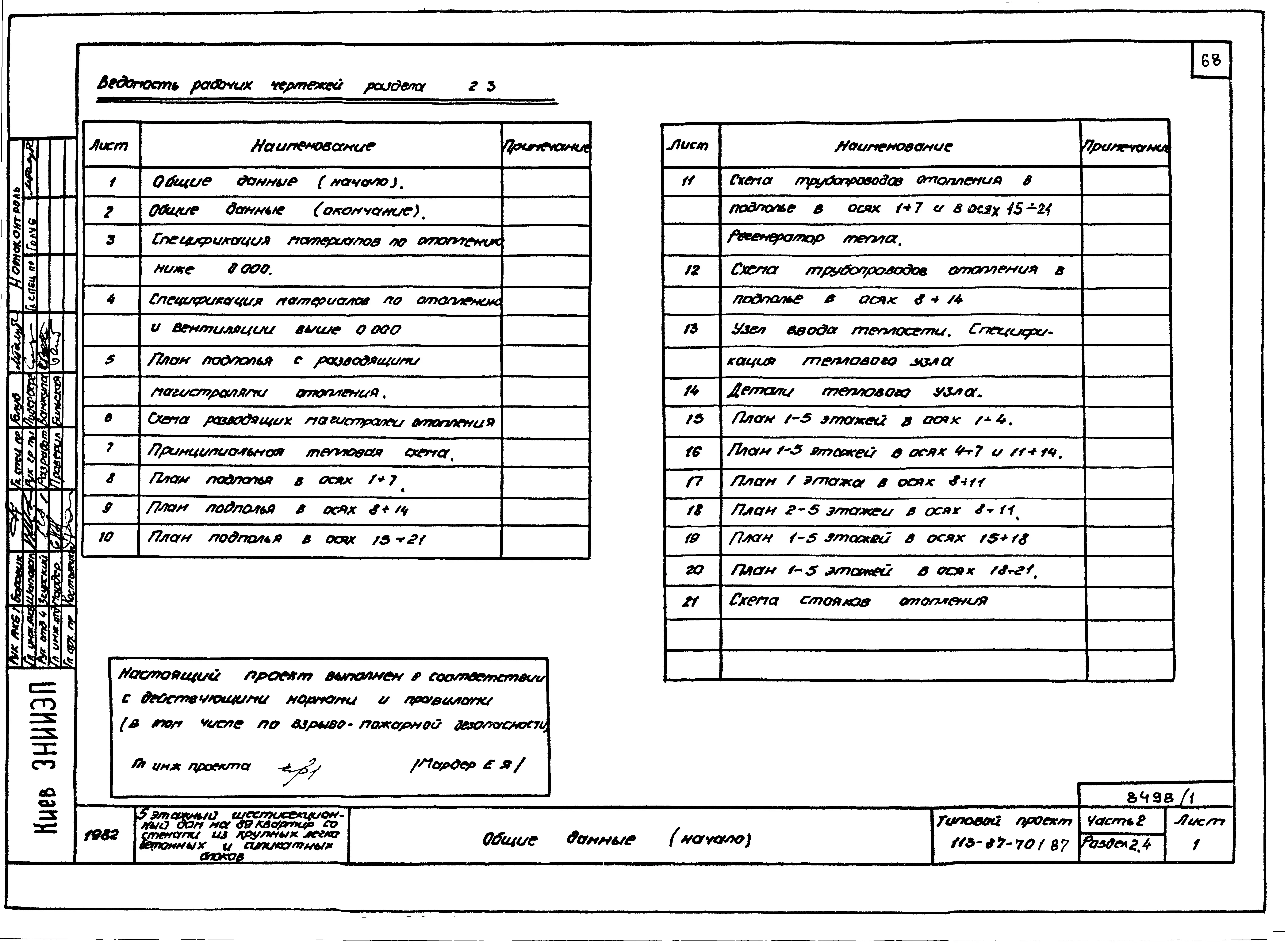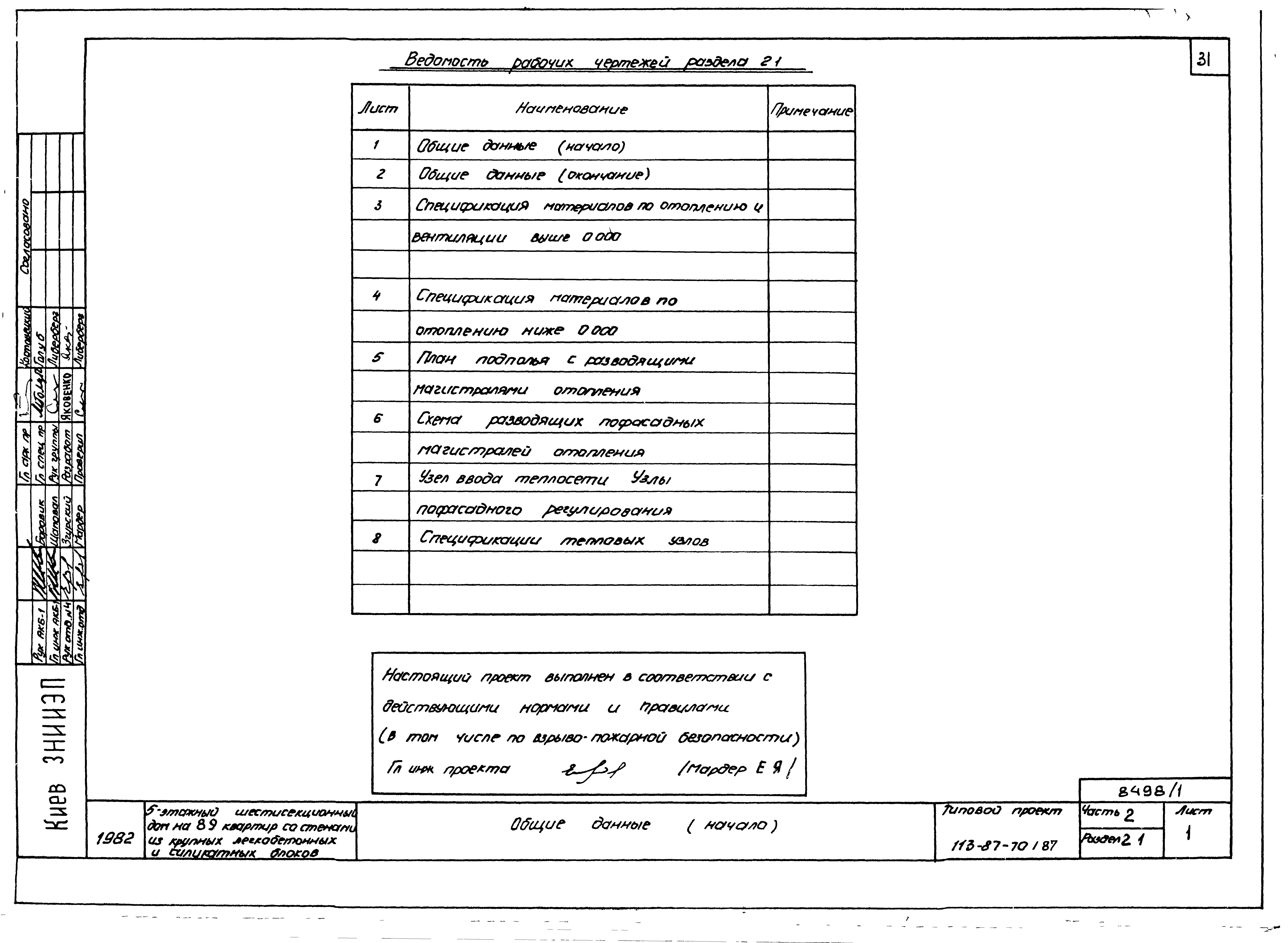 Типовой проект 113-87-70.1.87 Пятиэтажный шестисекционный жилой дом на 89 квартир /вариант проекта с подвалом на отм. -3,040, т.п. 113-87-70.2.87