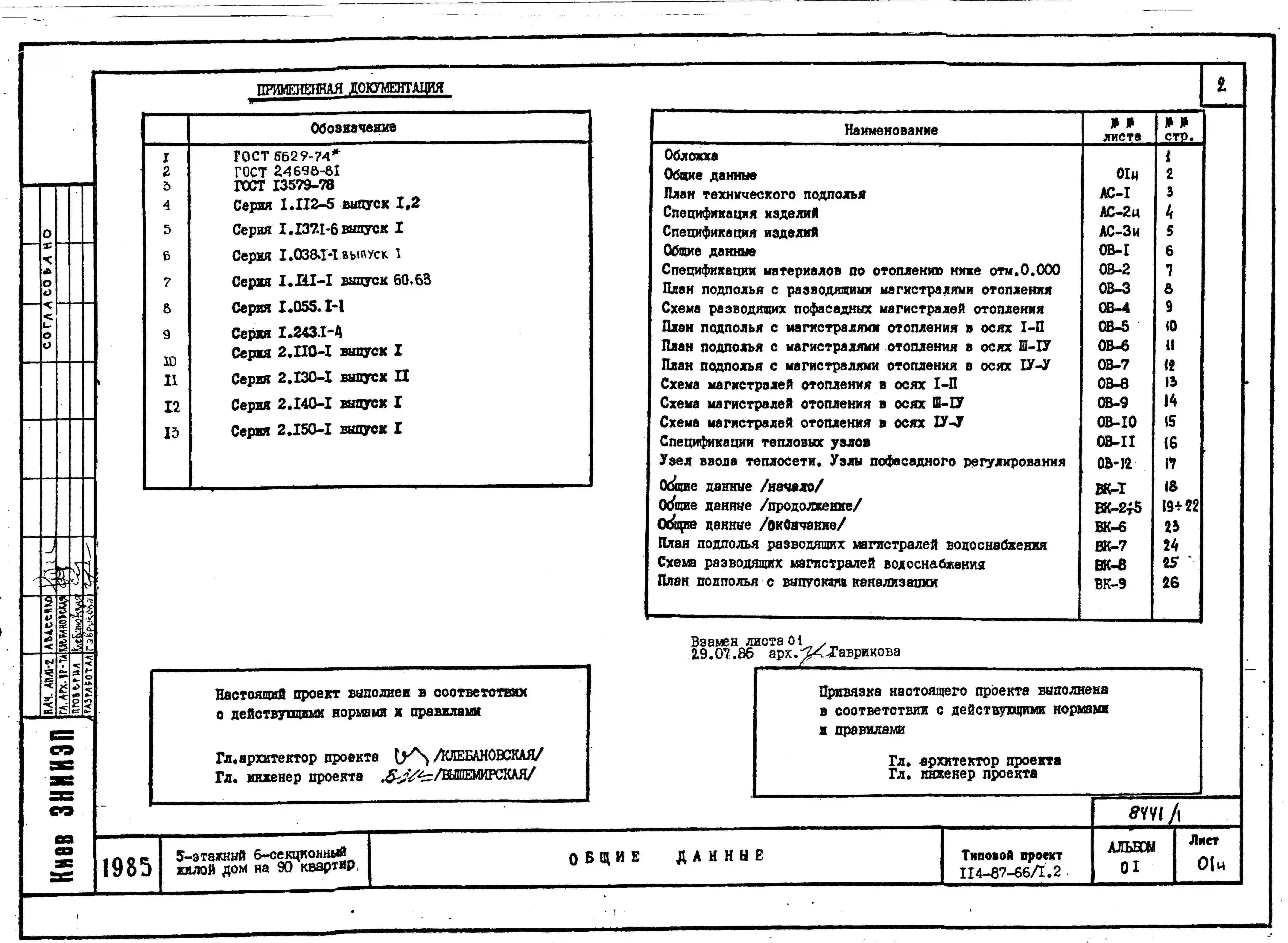 Типовой проект 114-87-66/1.2 Пятиэтажный шестисекционный жилой дом на 90 квартир