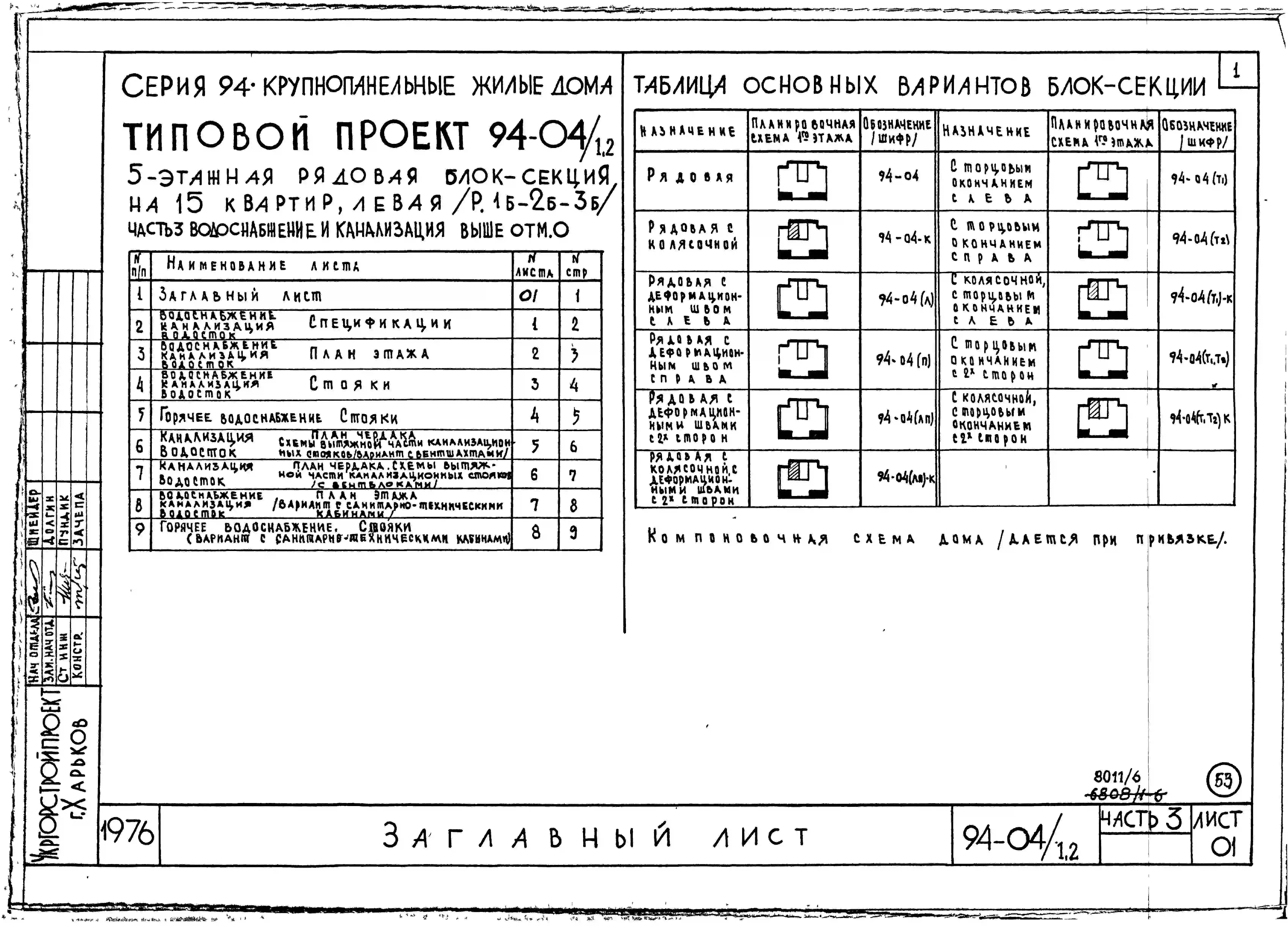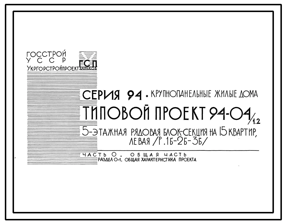 Типовой проект 94-04/1.2 Блок-секция рядовая левая 5-этажная 15-квартирная 1Б-2Б-3Б
