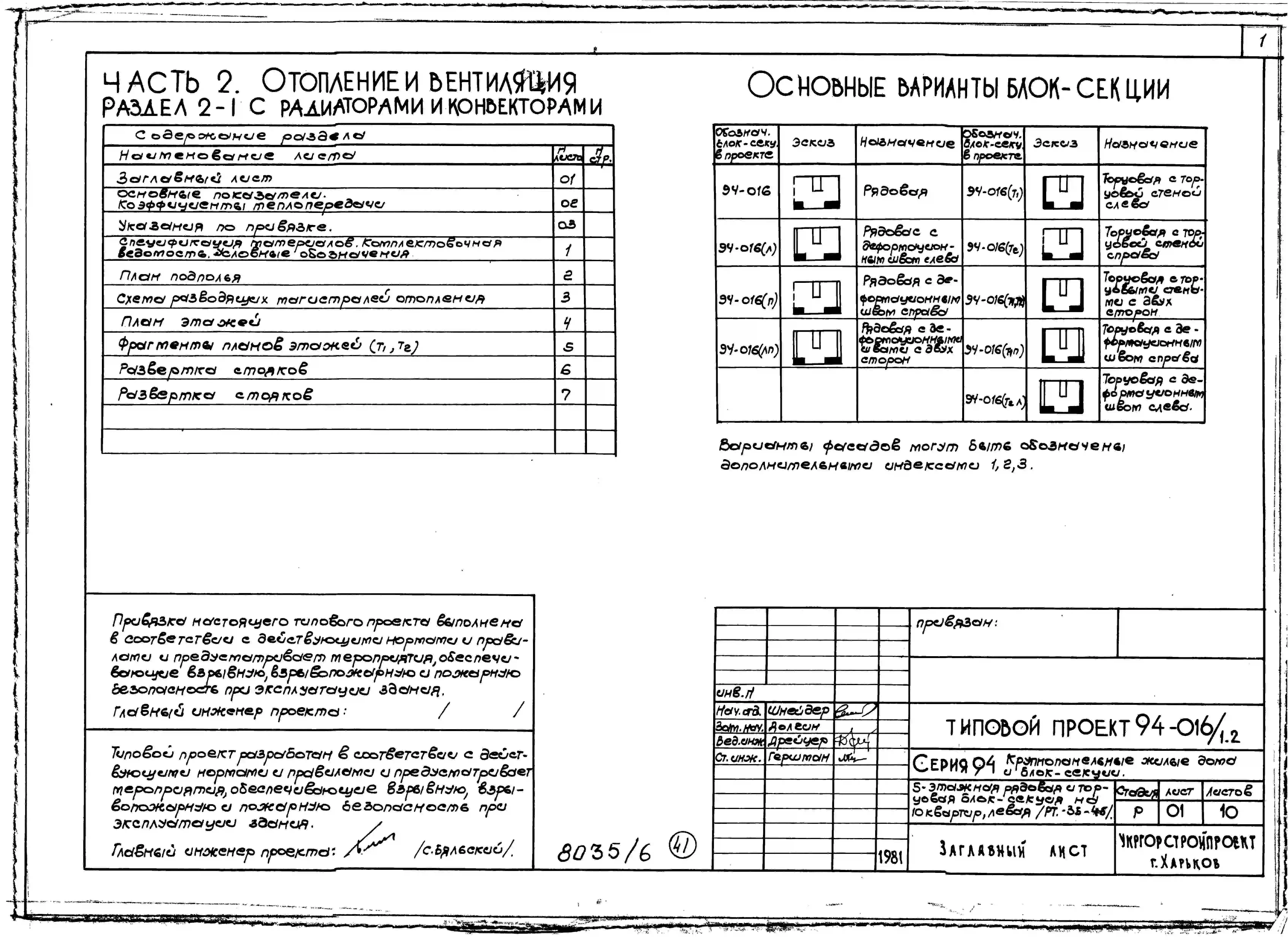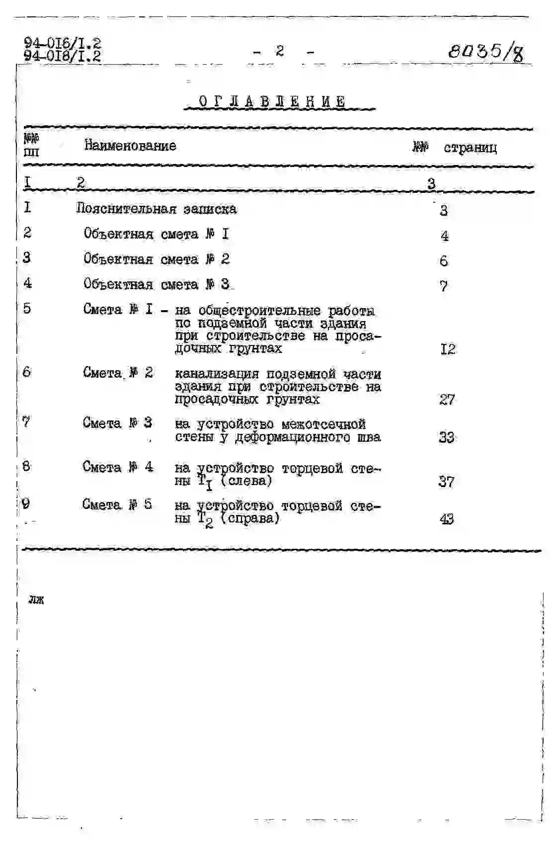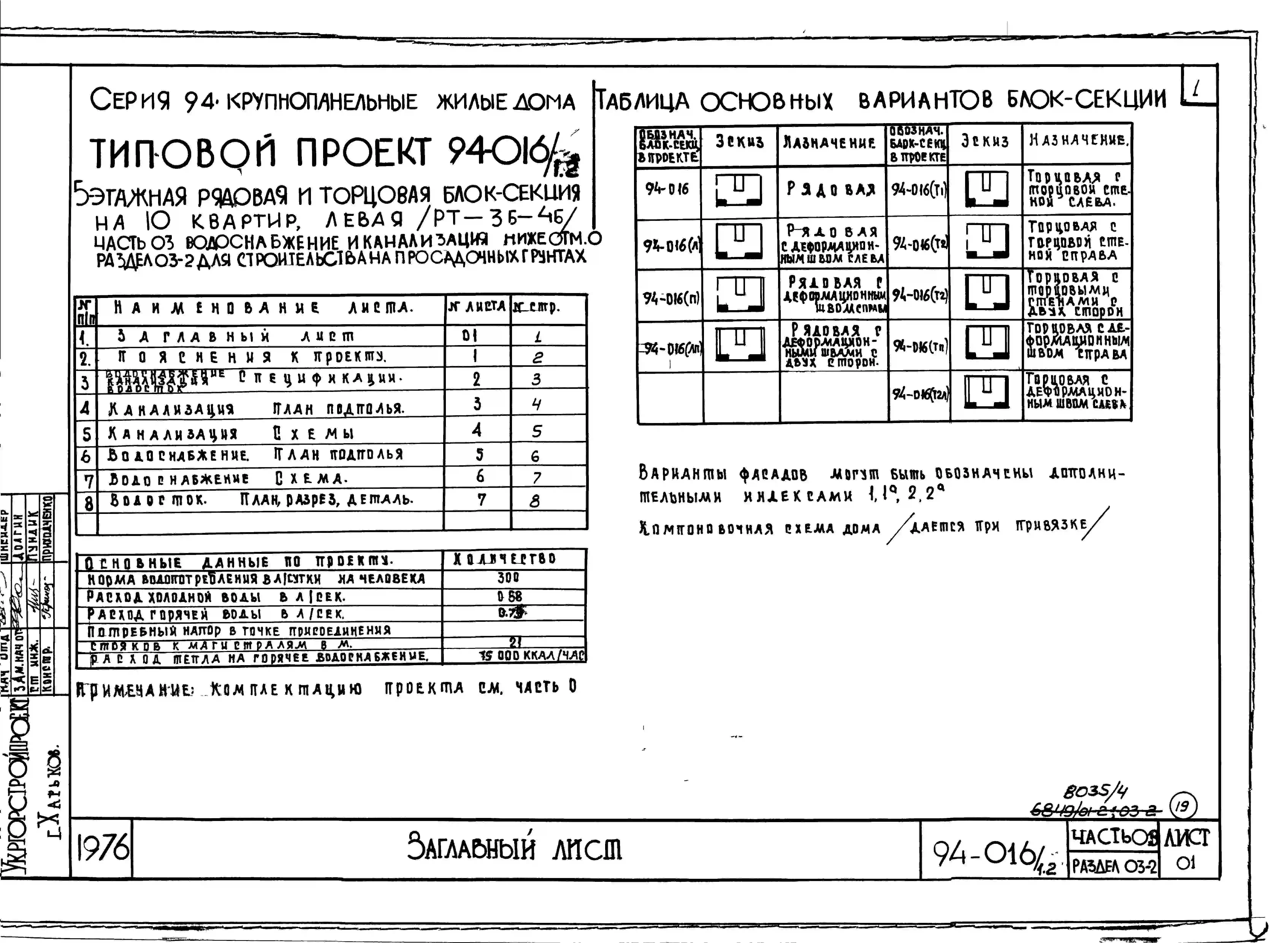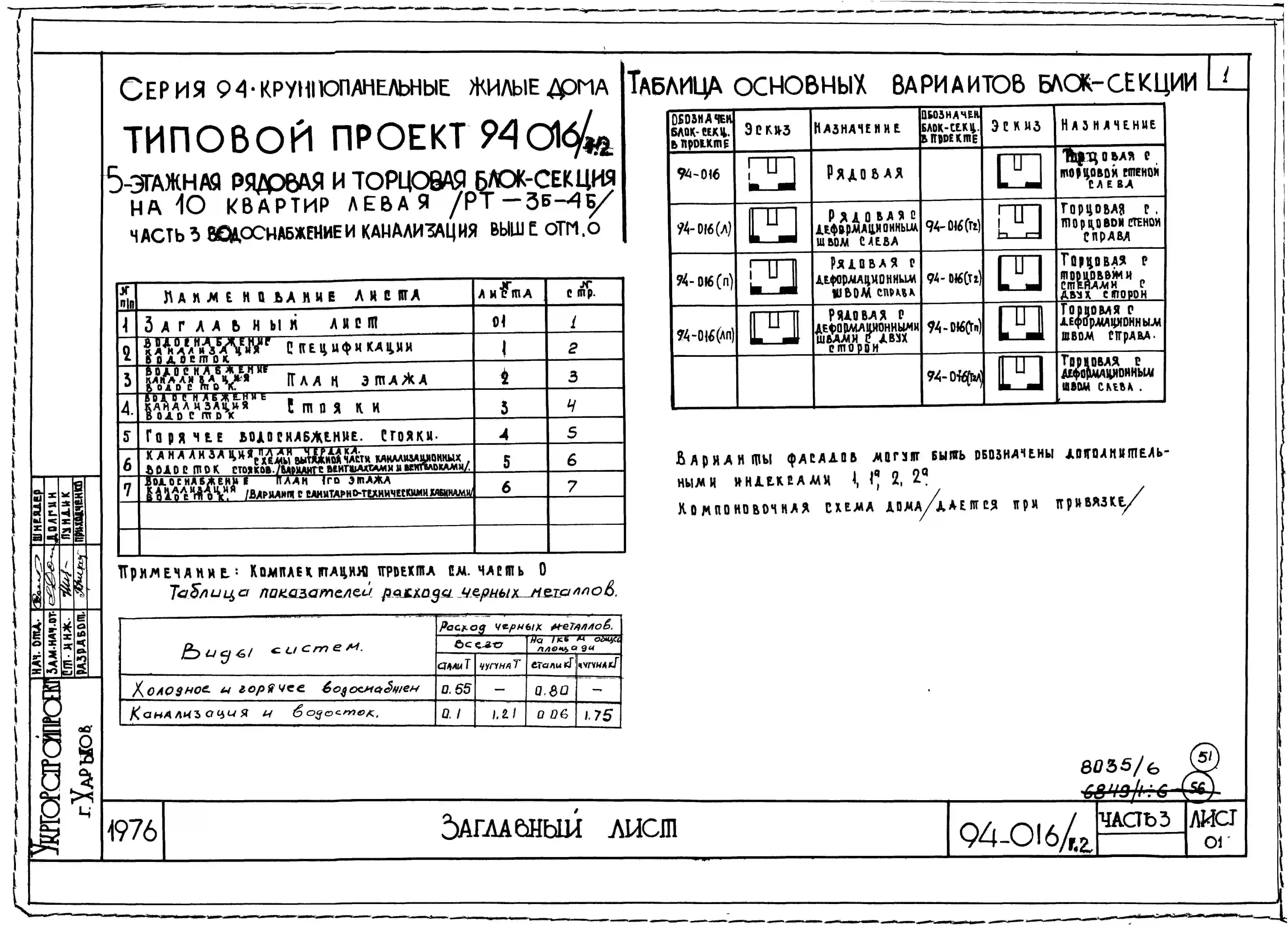 Типовой проект 94-016/1.2 5-этажная рядовая и торцовая блок-секция на 10 квартир левая 3Б-4Б. Паспорт проекта (формат PDF) Чертежи (формат TIF)