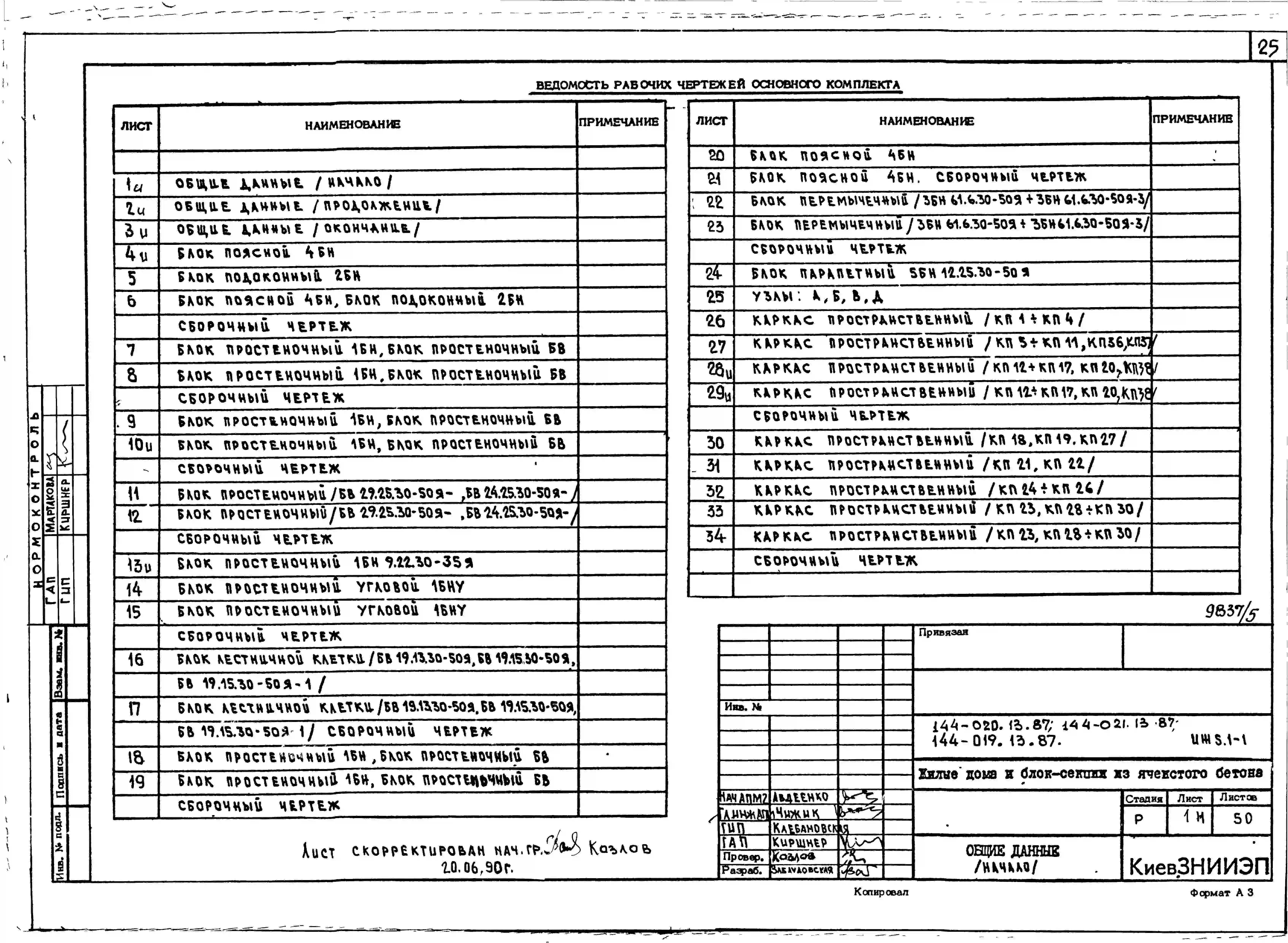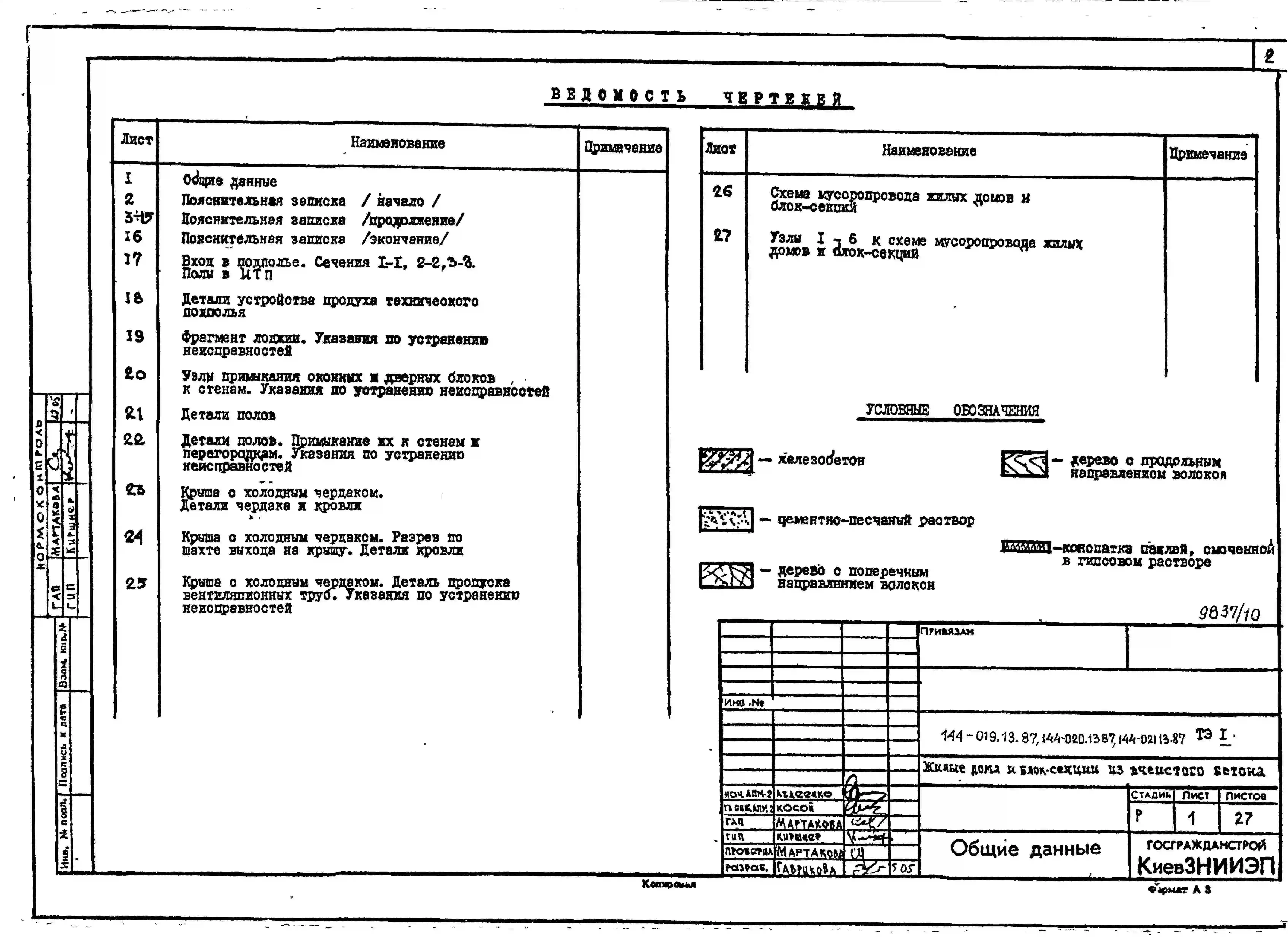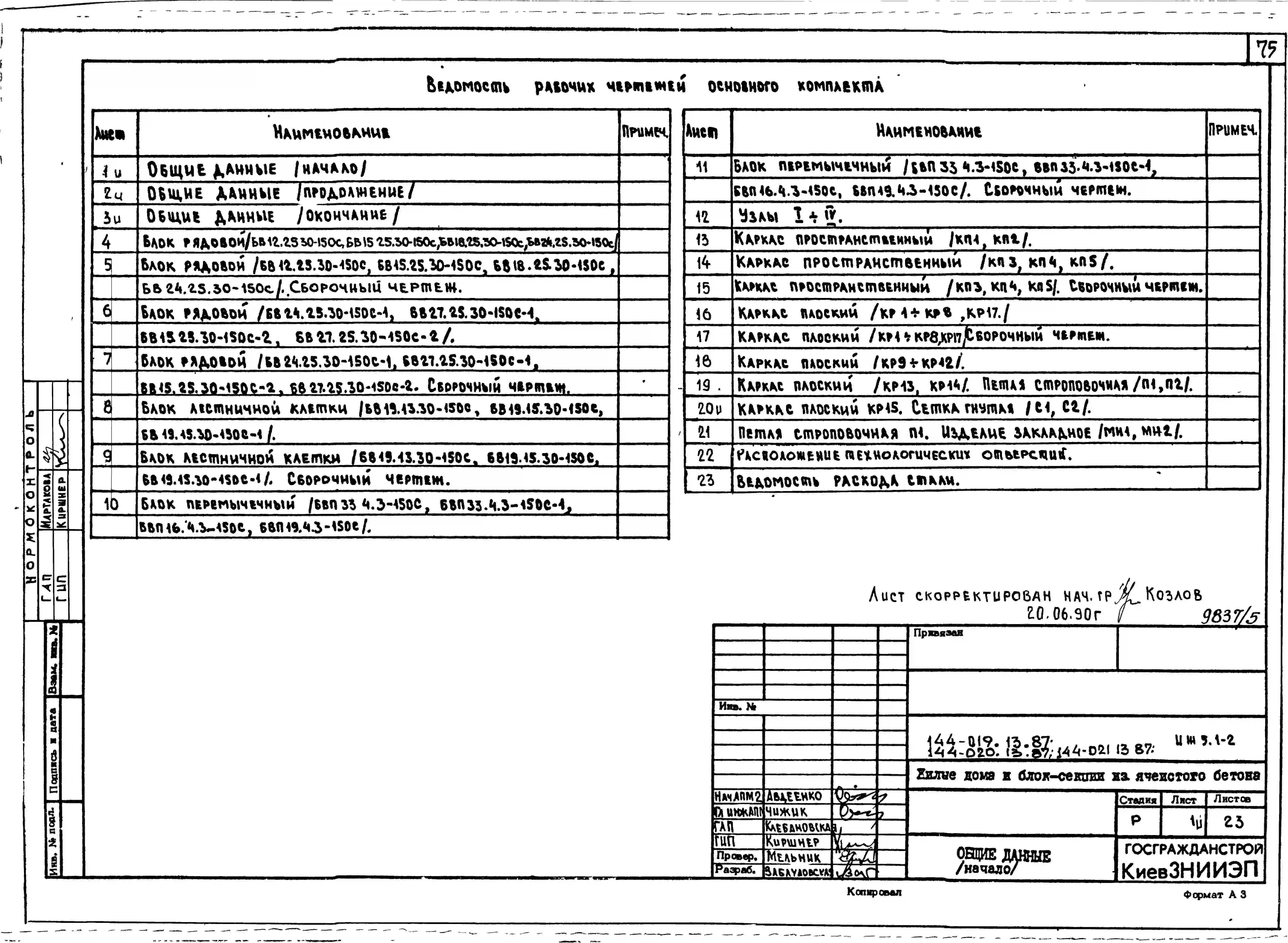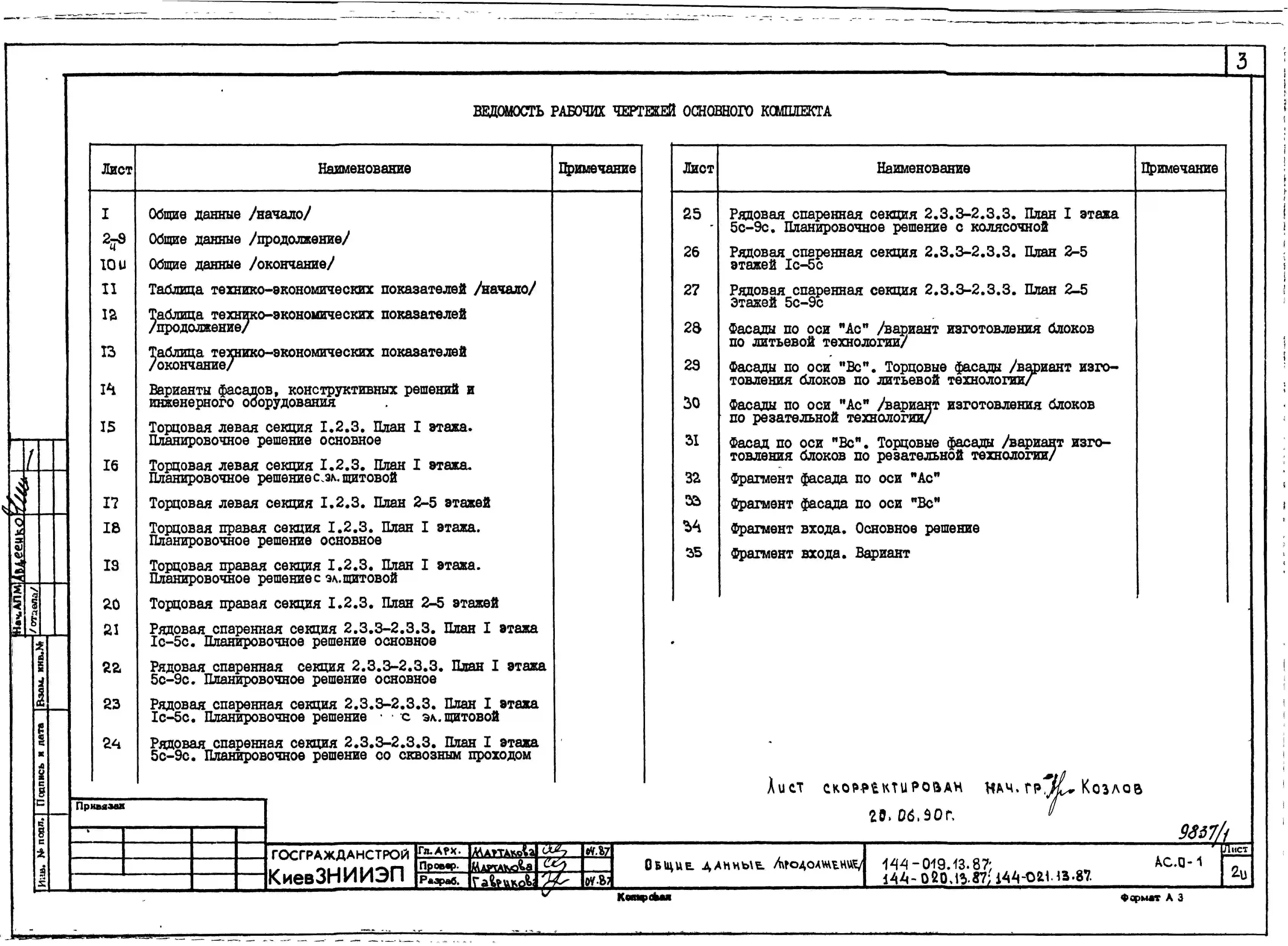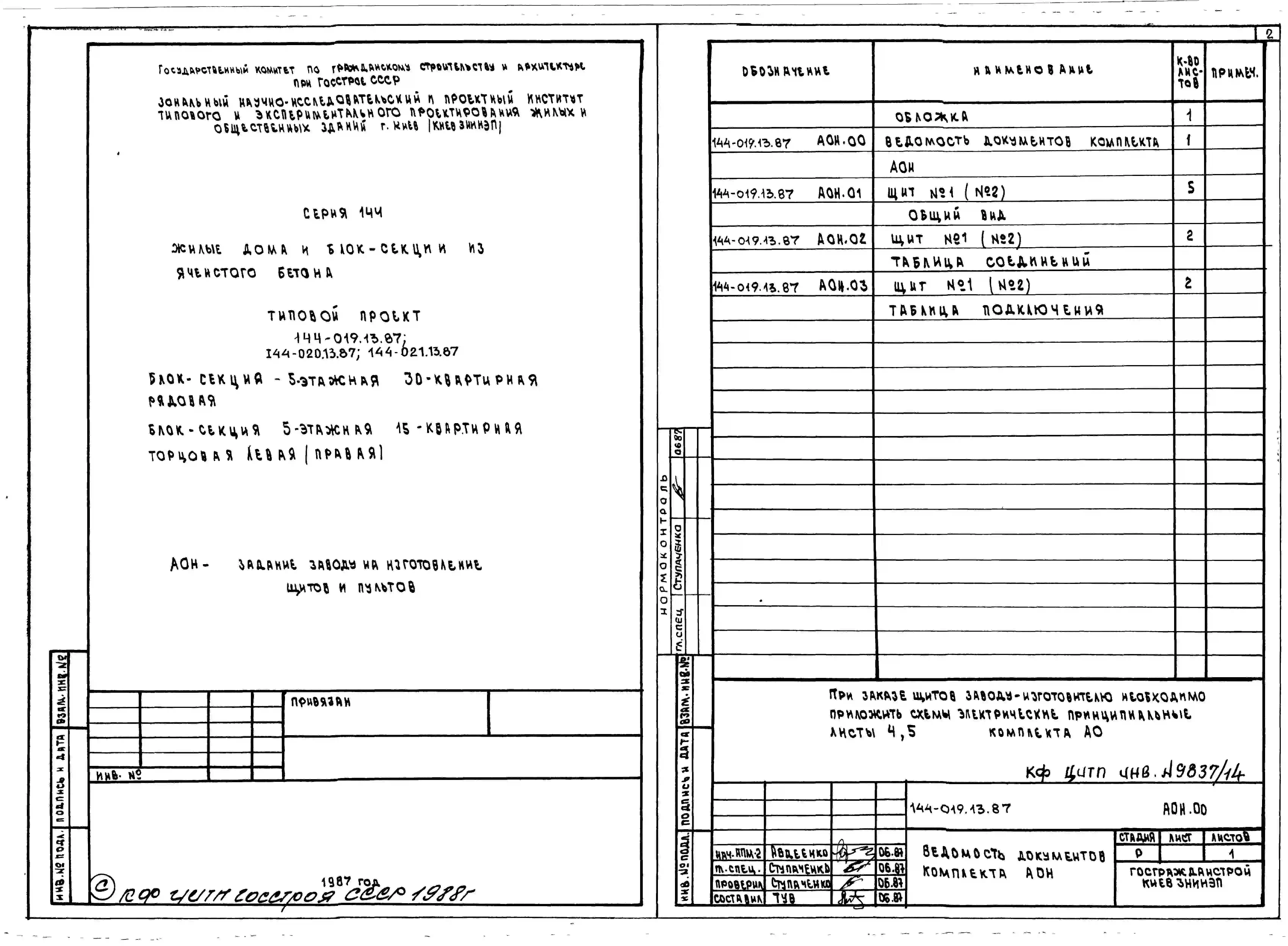Типовой проект 144-020.13.87 Блок-секция 5-этажная 15-квартирная торцовая левая 1-2-3 /для строительства в УССР/