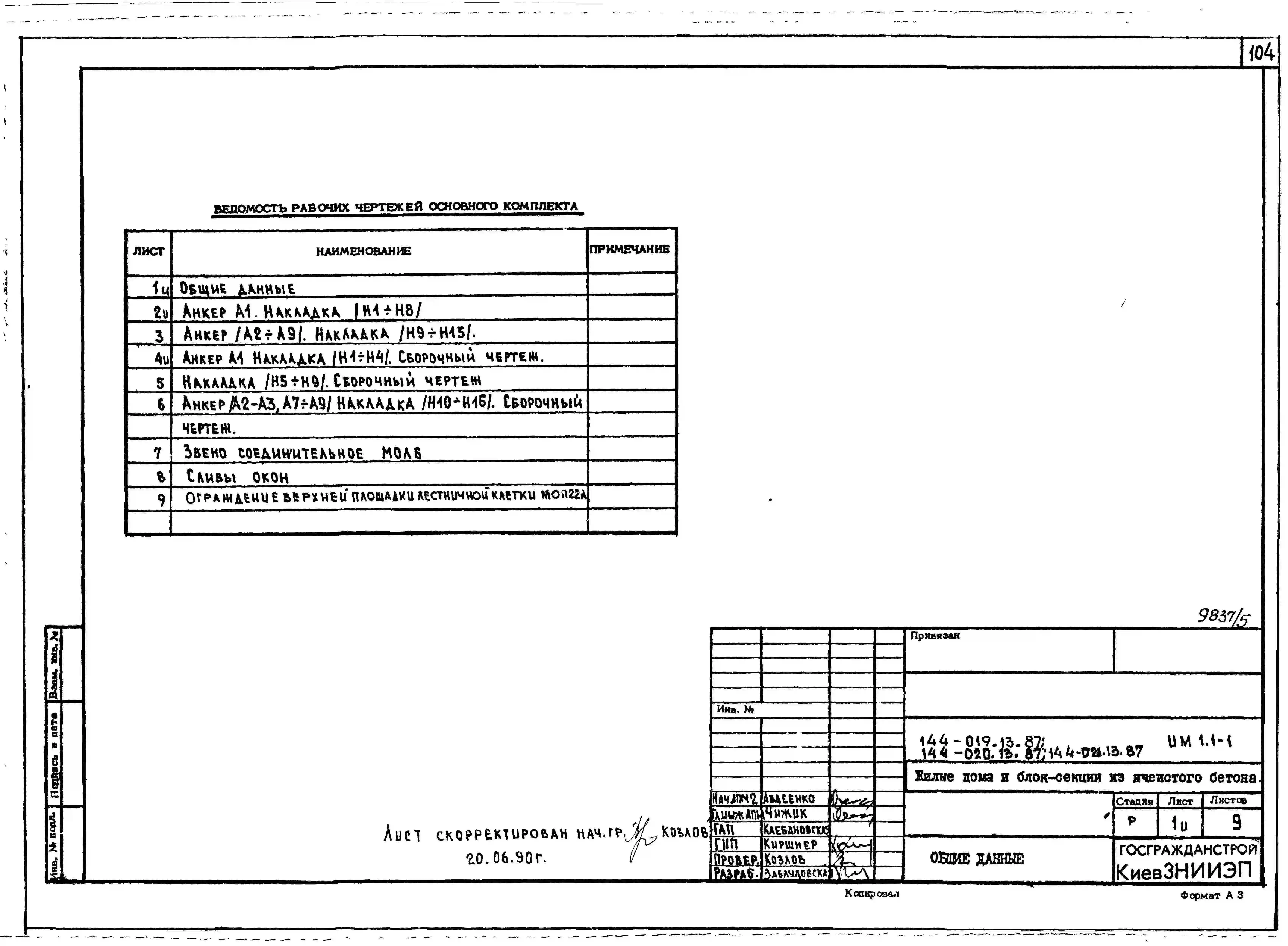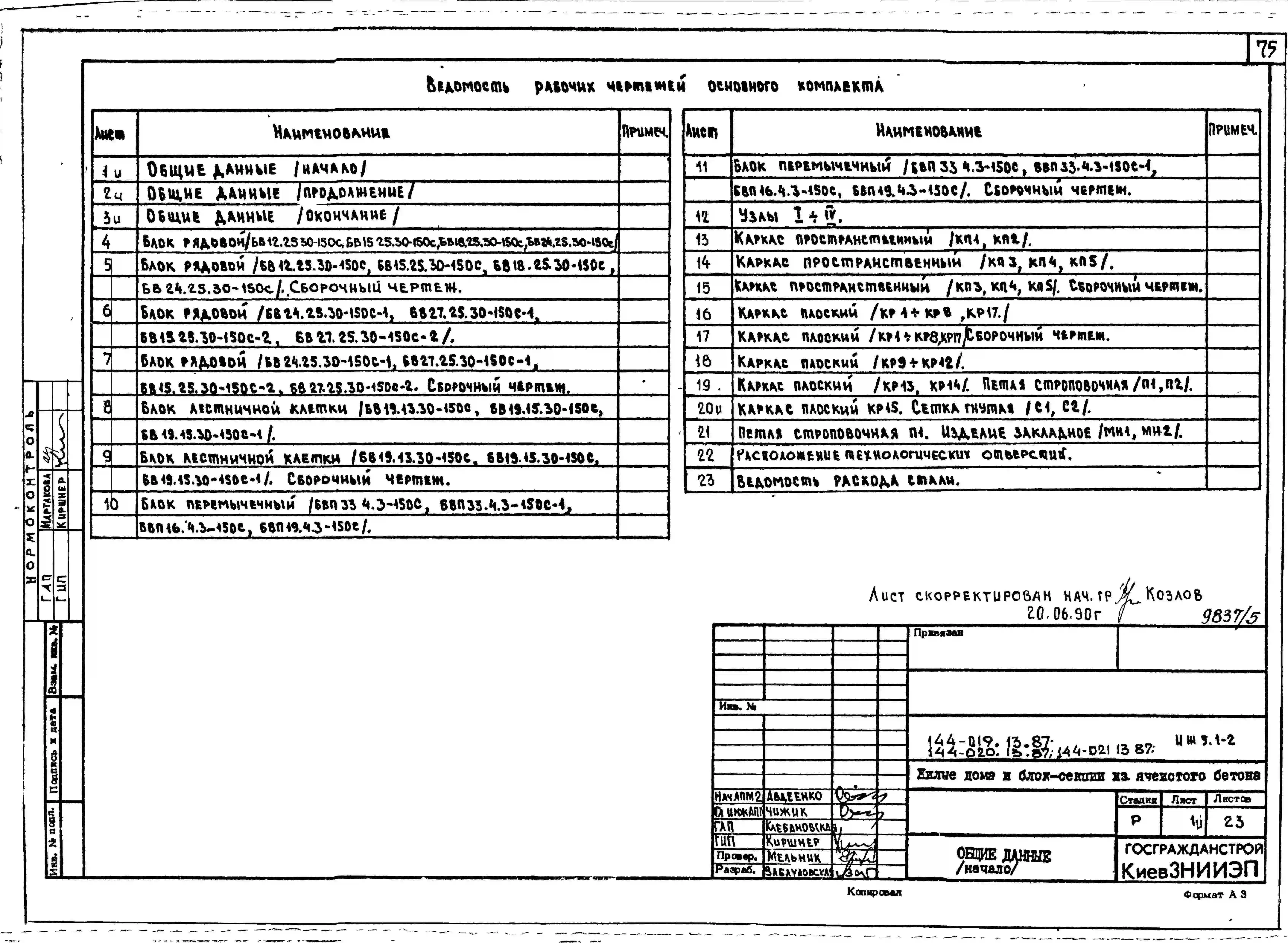 Типовой проект 144-021.13.87 Блок-секция 5-этажная 15-квартирная торцовая правая 1-2-3 /для строительства в УССР/