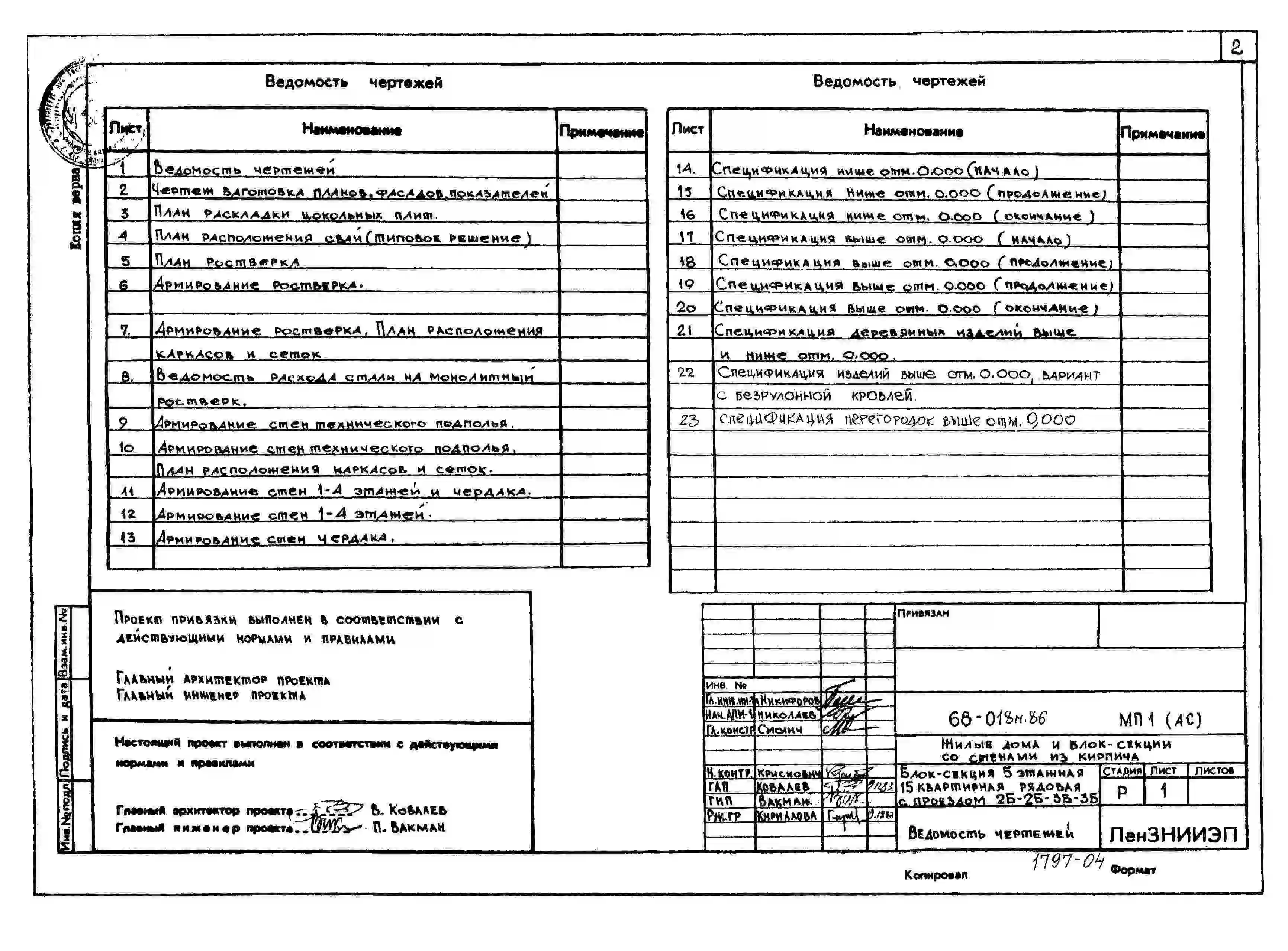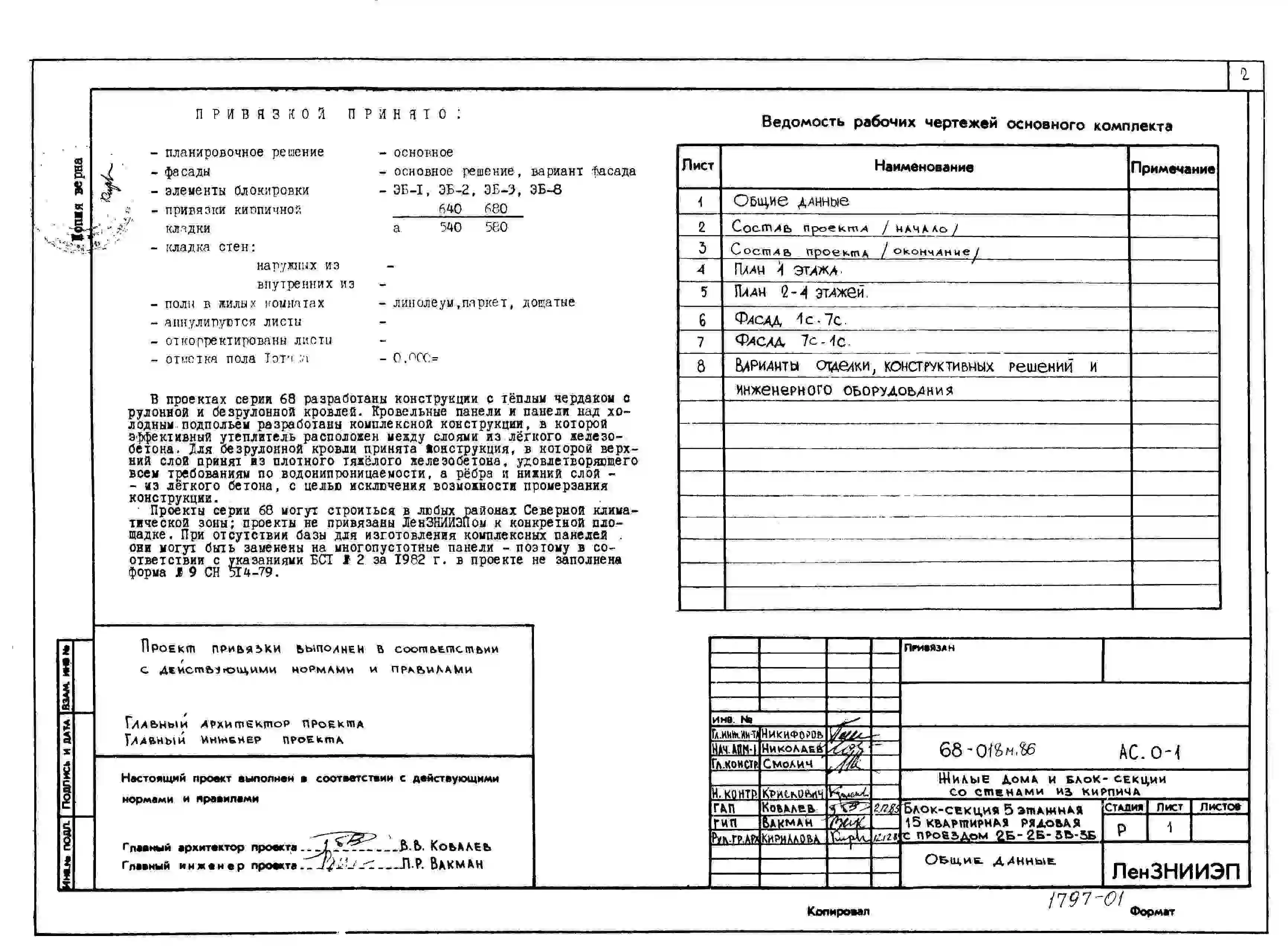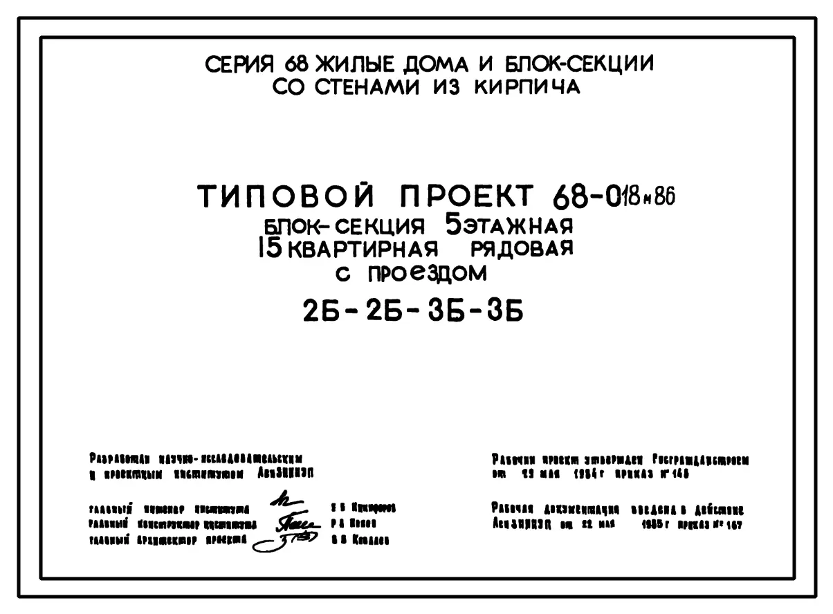 Типовой проект 68-018м.86 Пятиэтажная блок-секция с проездом на 15 квартир
