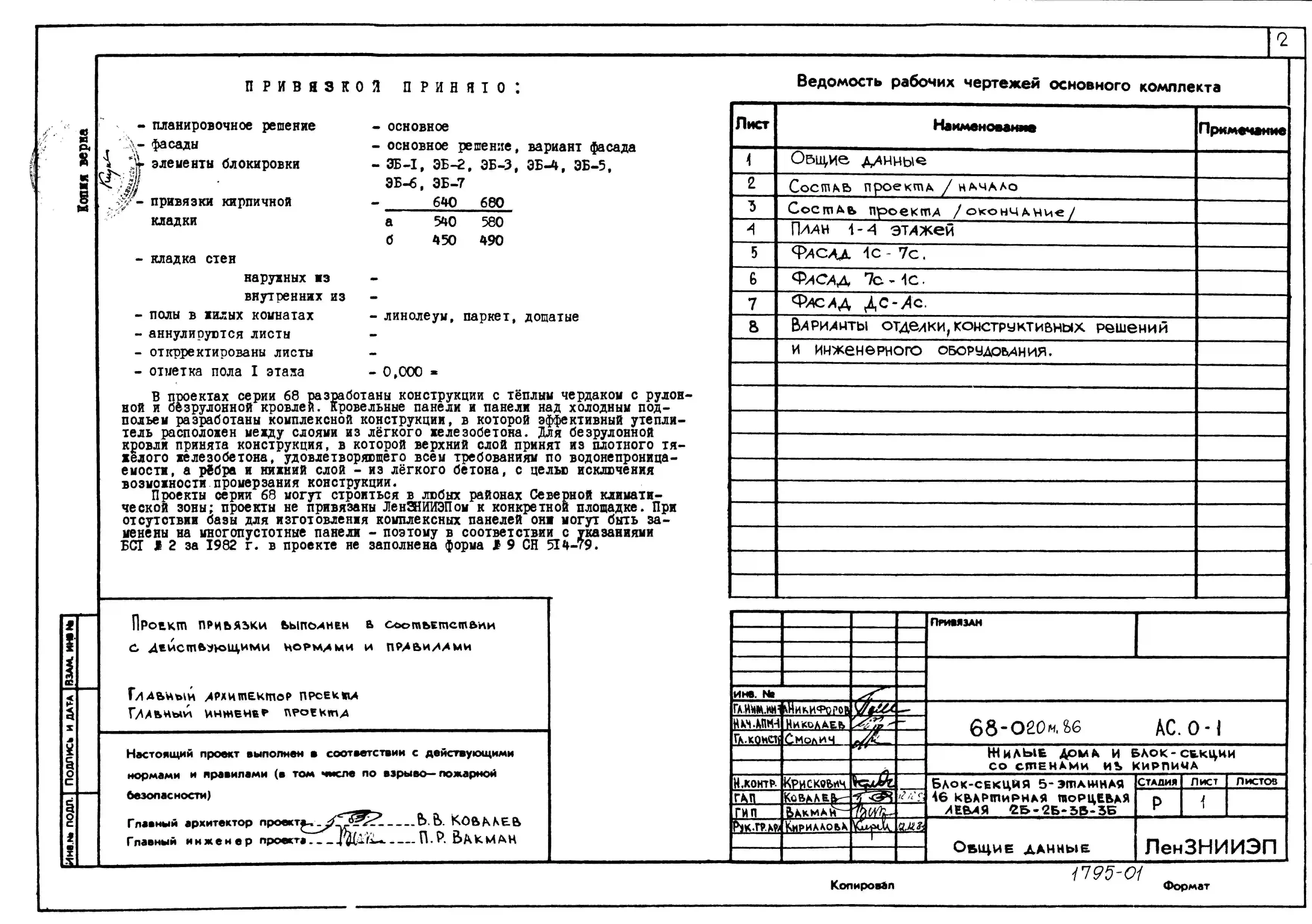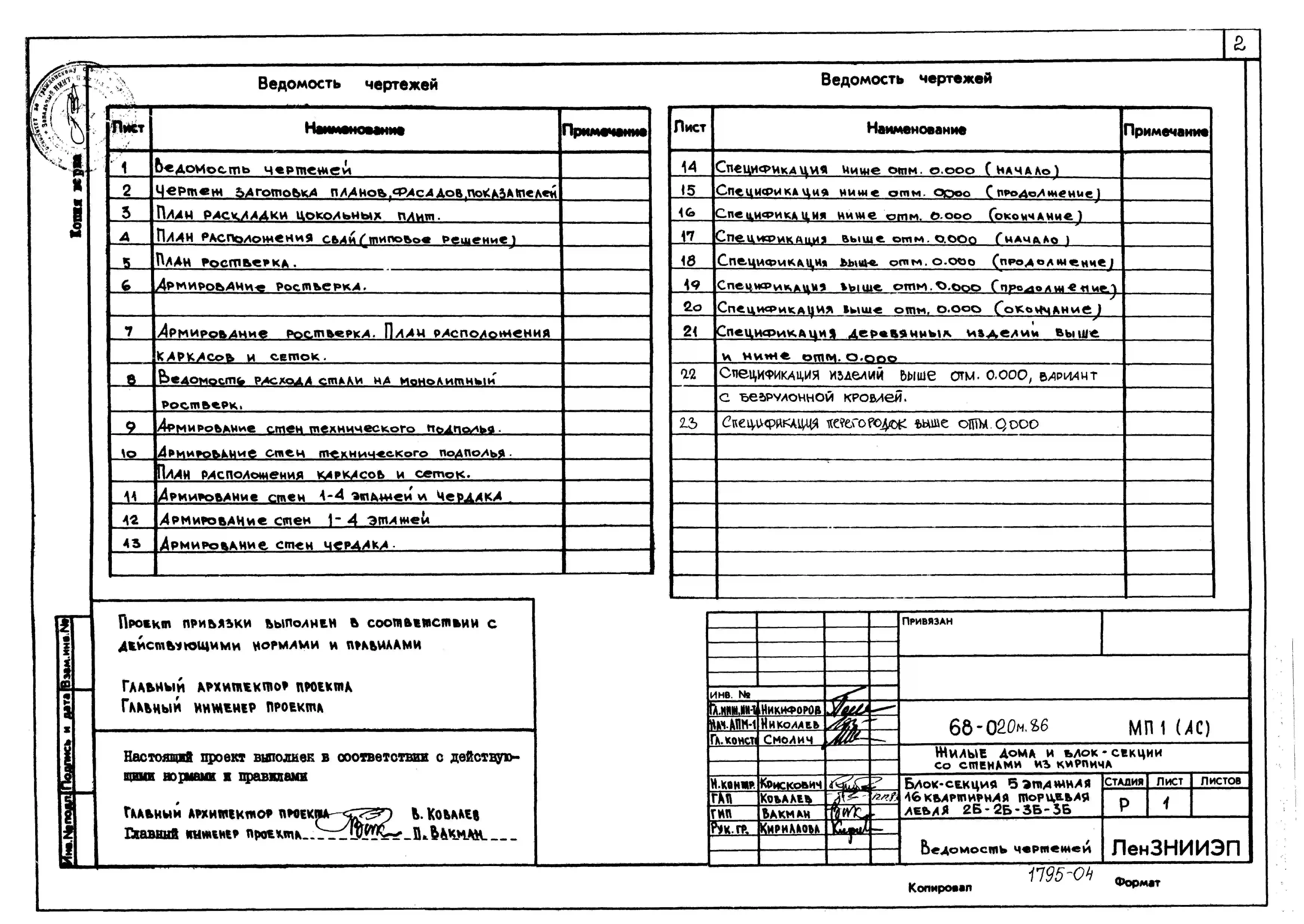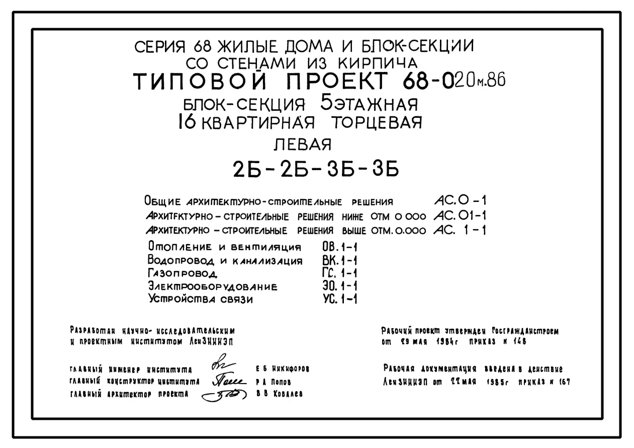 Типовой проект 68-020м.86 Пятиэтажная блок-секция торцевая левая на 16 квартир