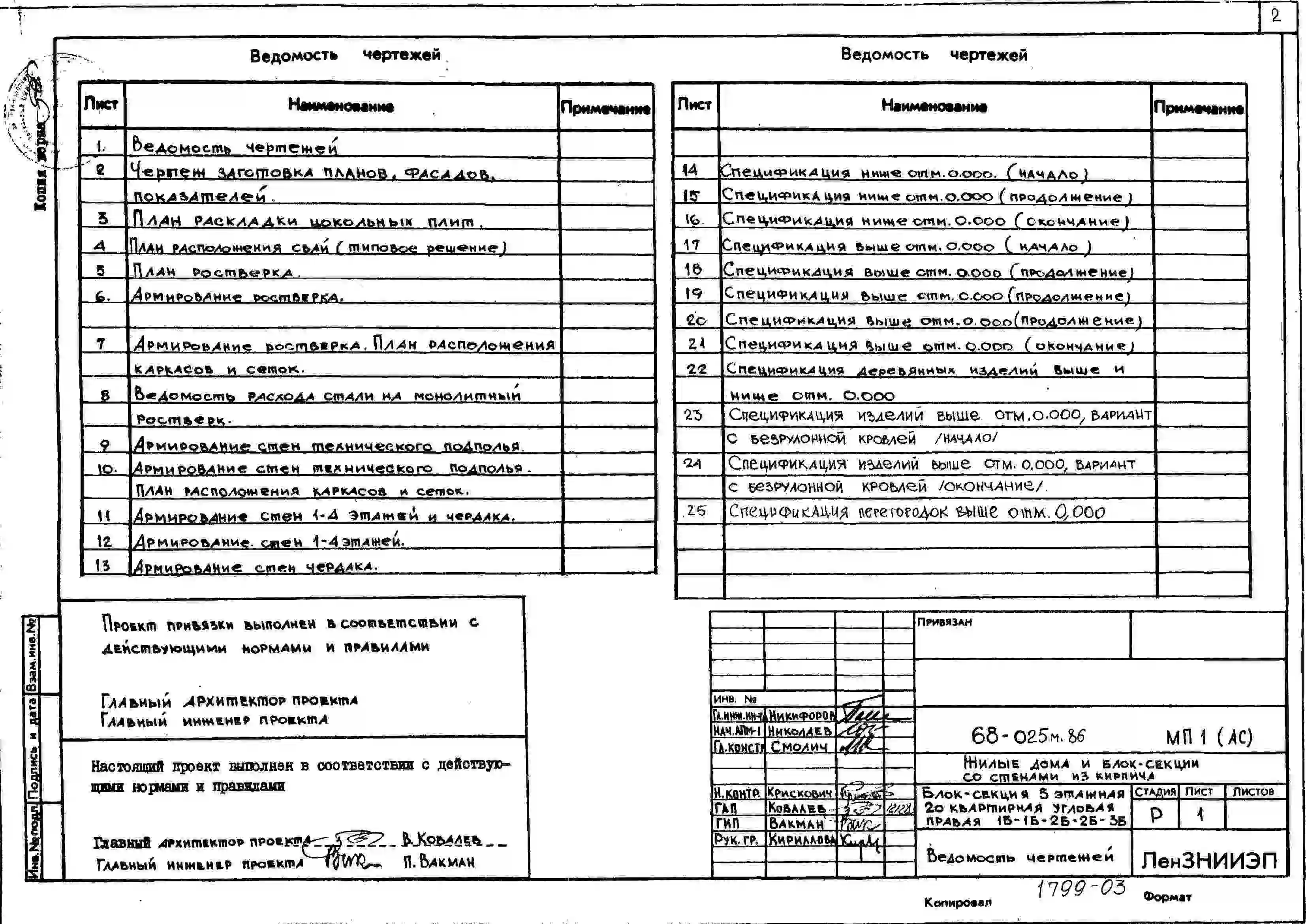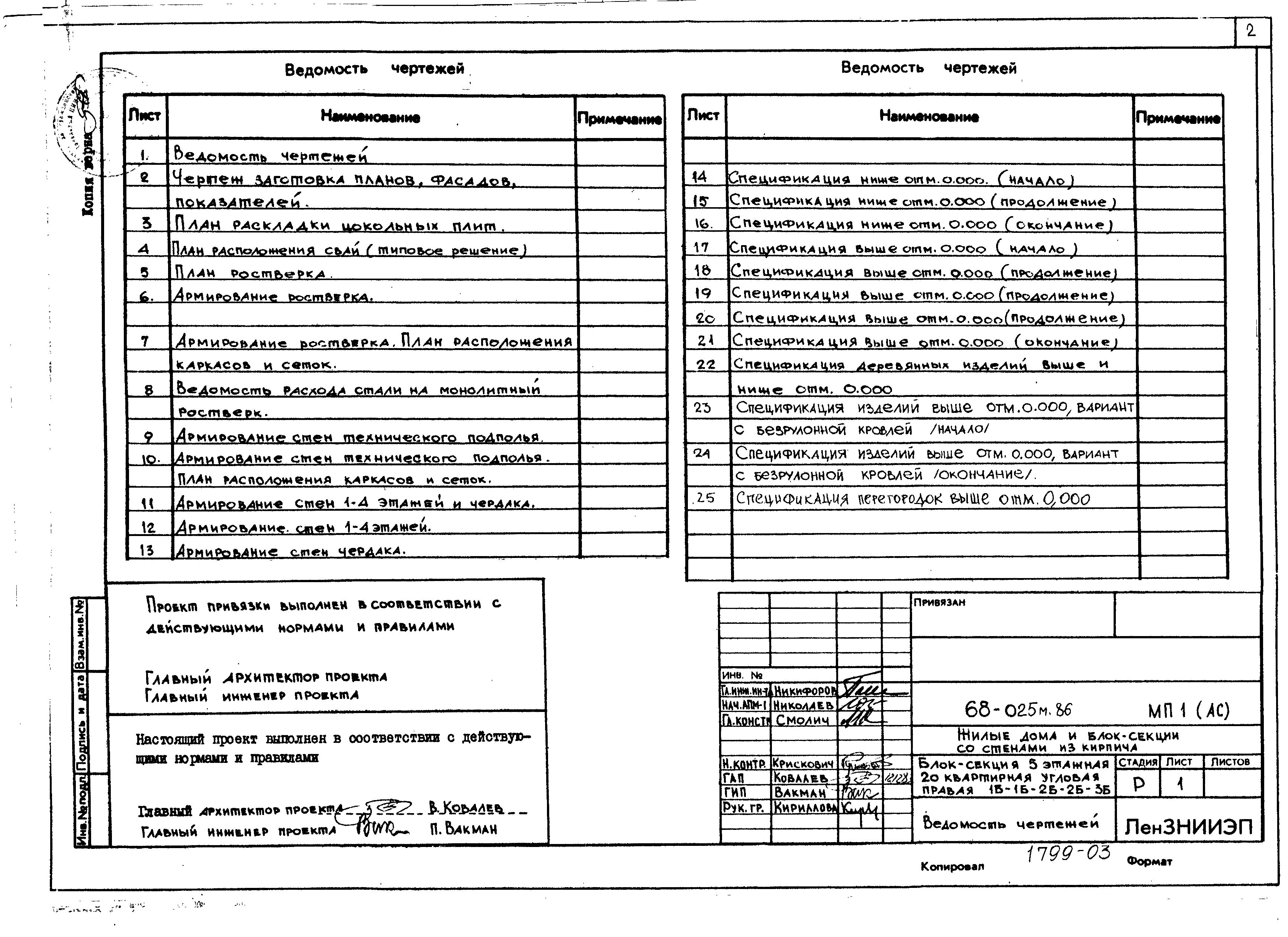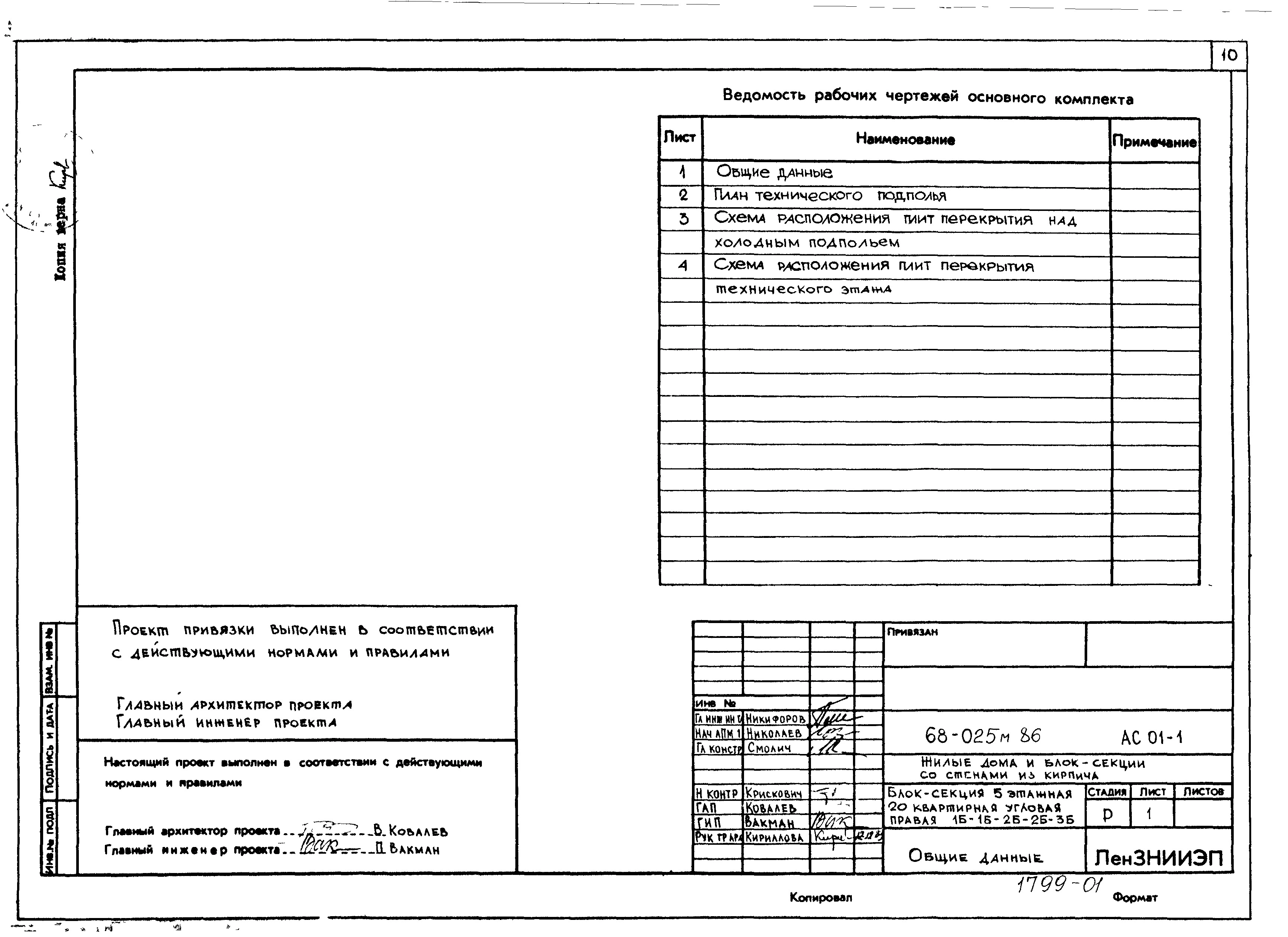 Типовой проект 68-025м.86 Блок-секция 5-этажная 20-квартирная угловая правая 1Б-1Б-2Б-2Б-3Б