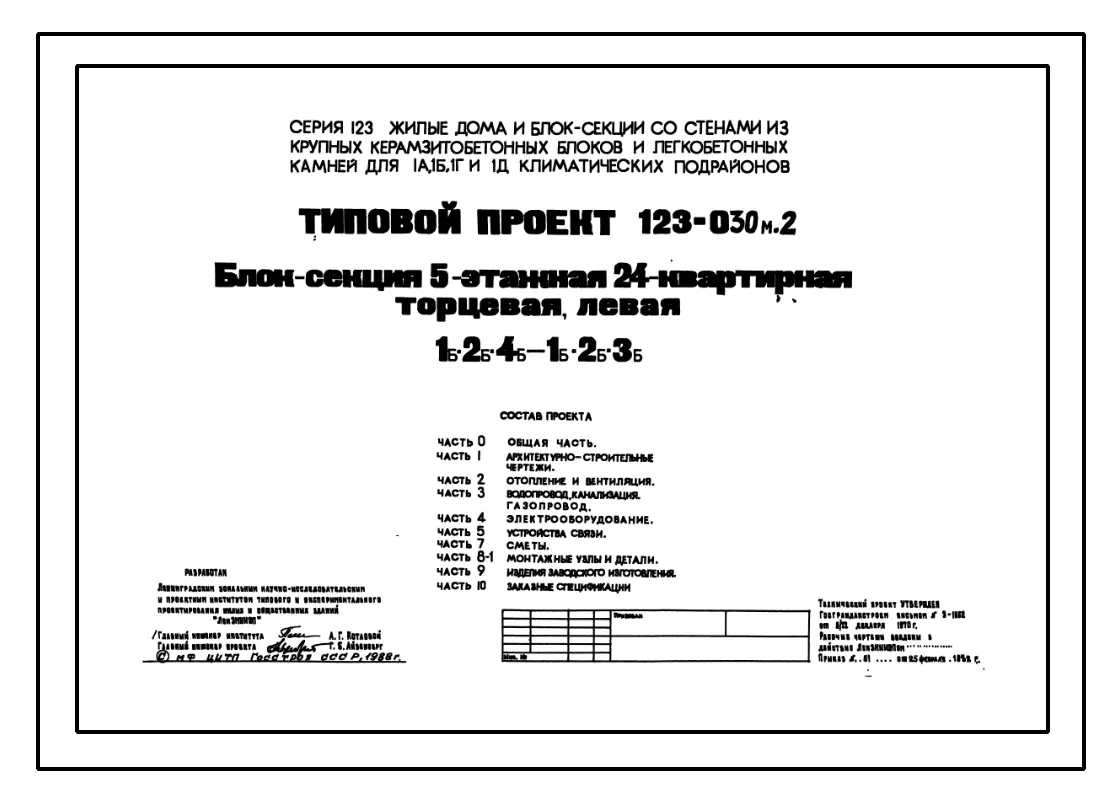 Типовой проект 123-030м.2 Блок-секция 5-этажная 24-квартирная торцевая (левая и правая) 1Б.2Б.4Б - 1Б.2Б.3Б