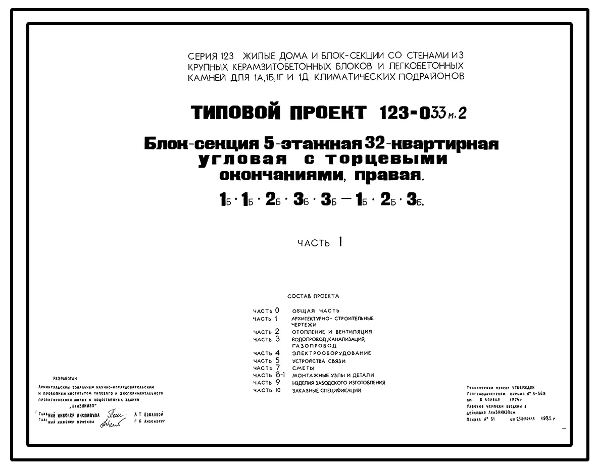 Типовой проект 123-033м.2 Блок-секция 5-этажная 32-квартирная угловая с торцевыми окончаниями (левая и правая) 1Б.1Б.2Б.3Б.3Б.-1Б.2Б.3Б
