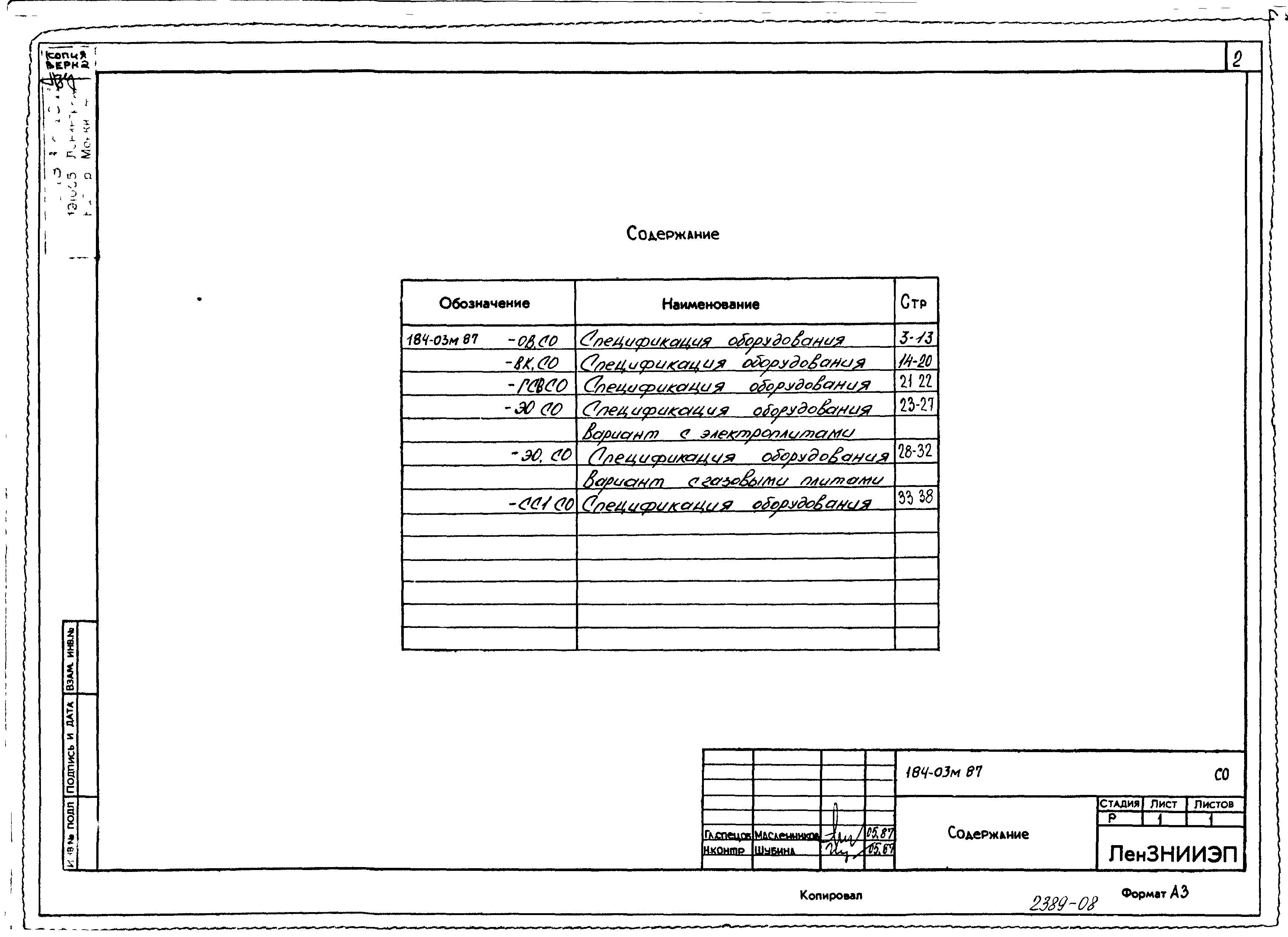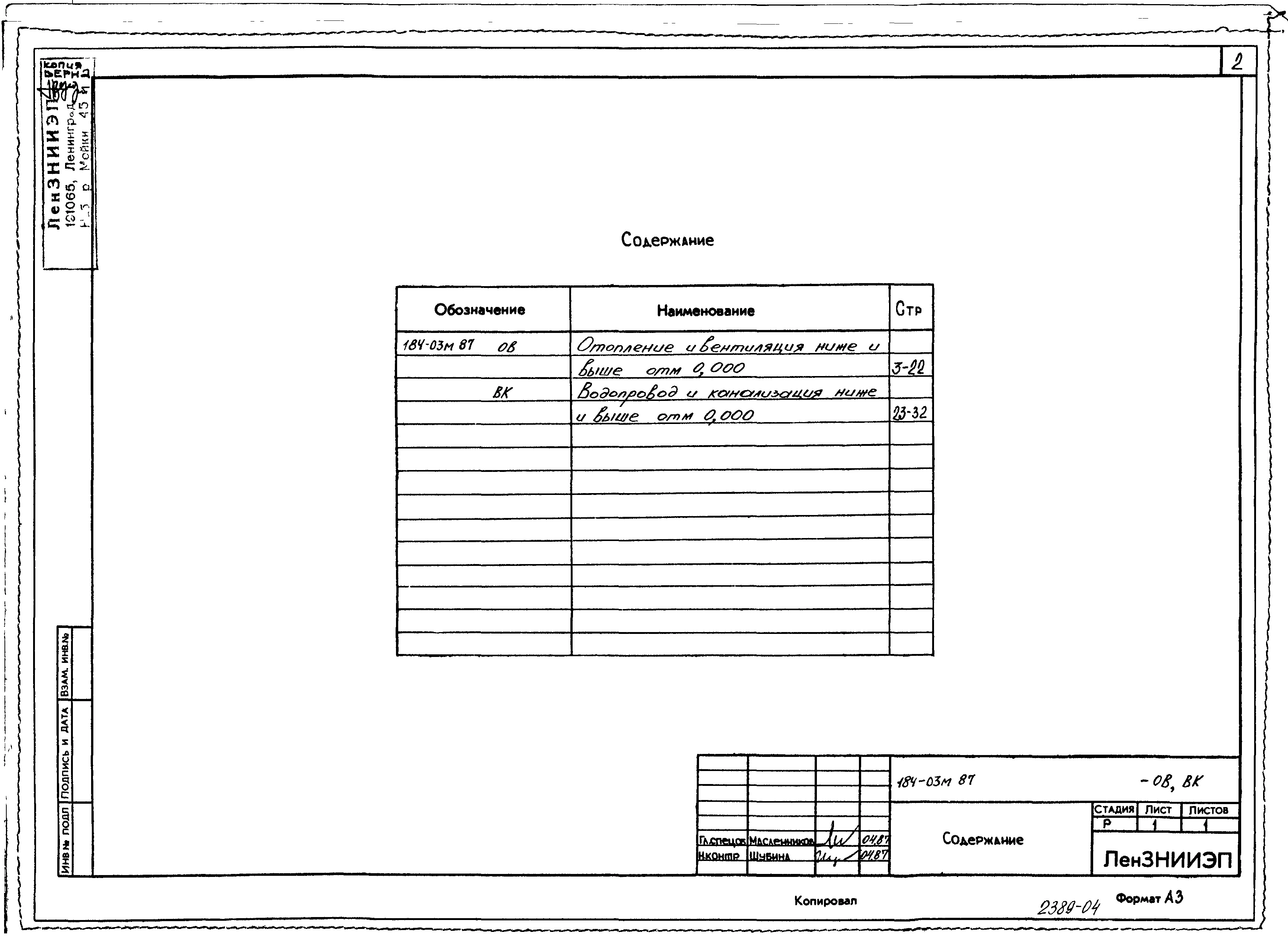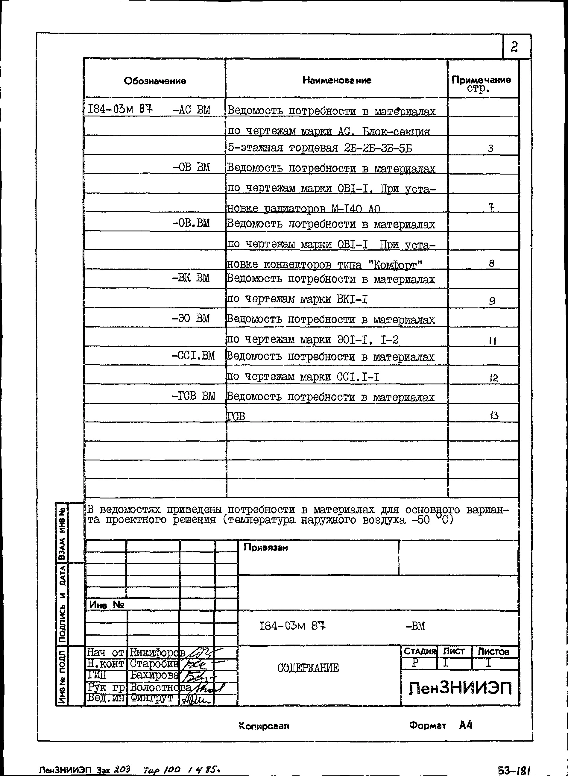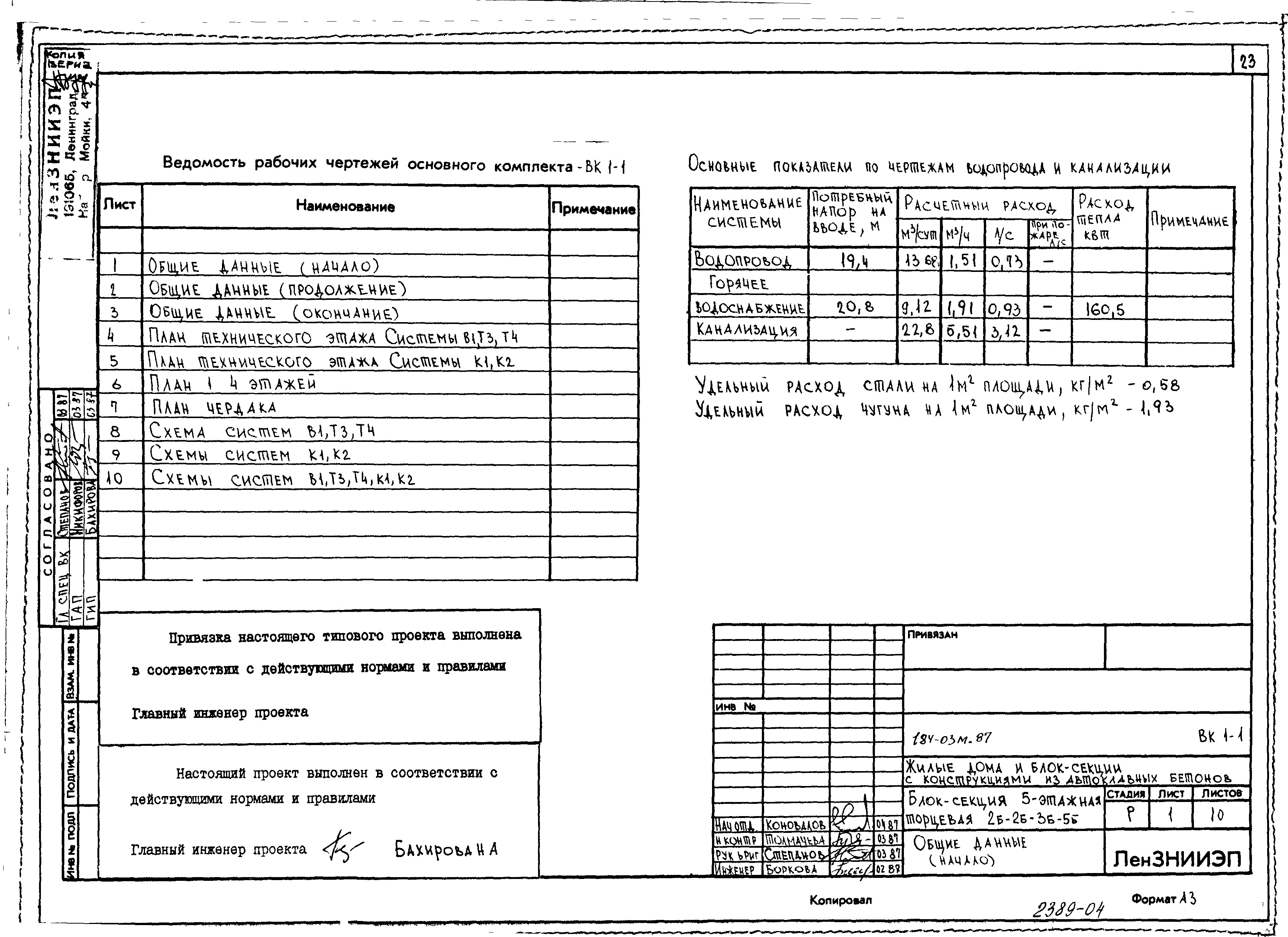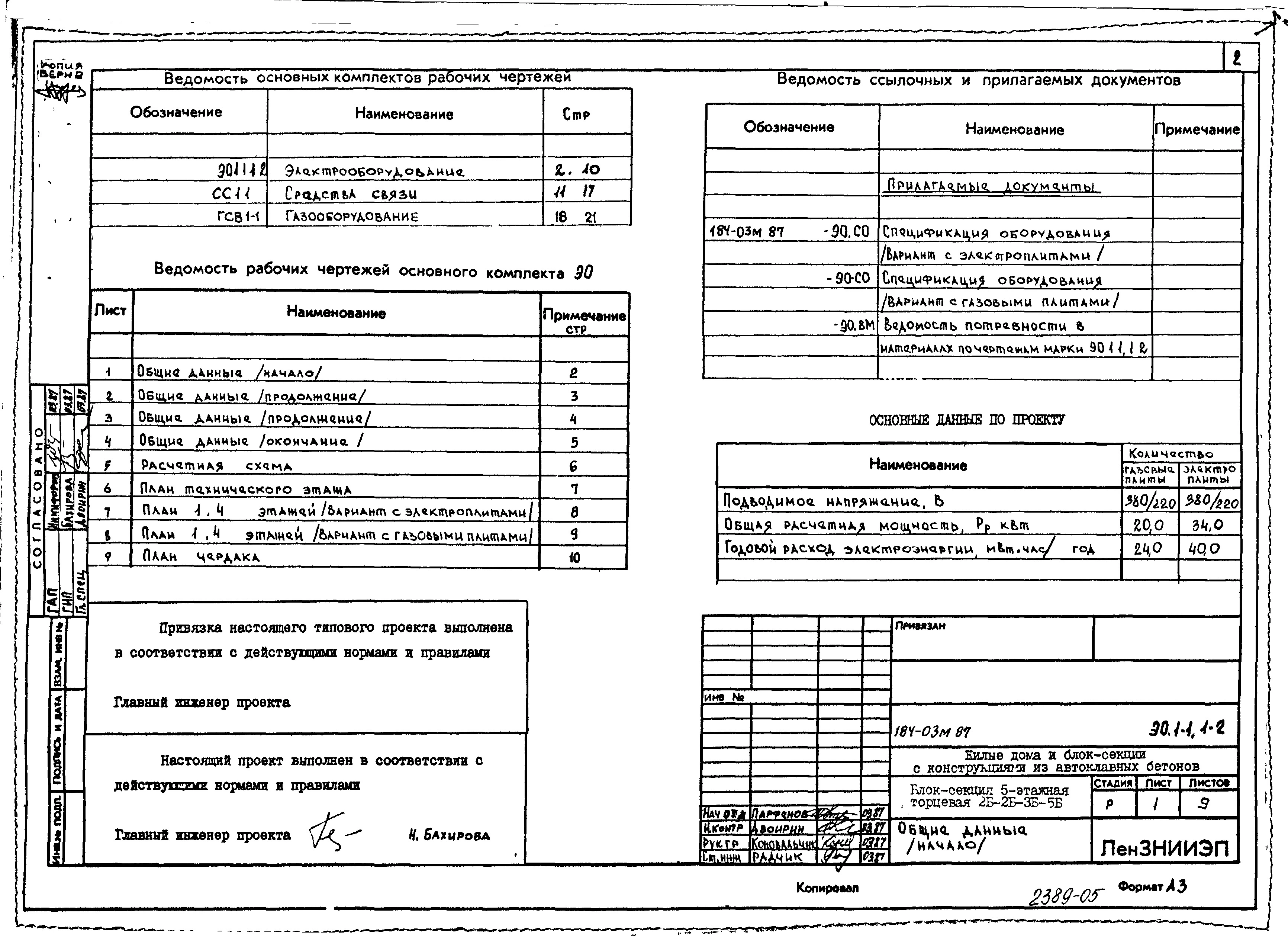 Типовой проект 184-03м.87 Блок-секция 5-этажная торцевая 2-2-3-5.. Паспорт проекта (формат PDF) Чертежи (формат TIF)