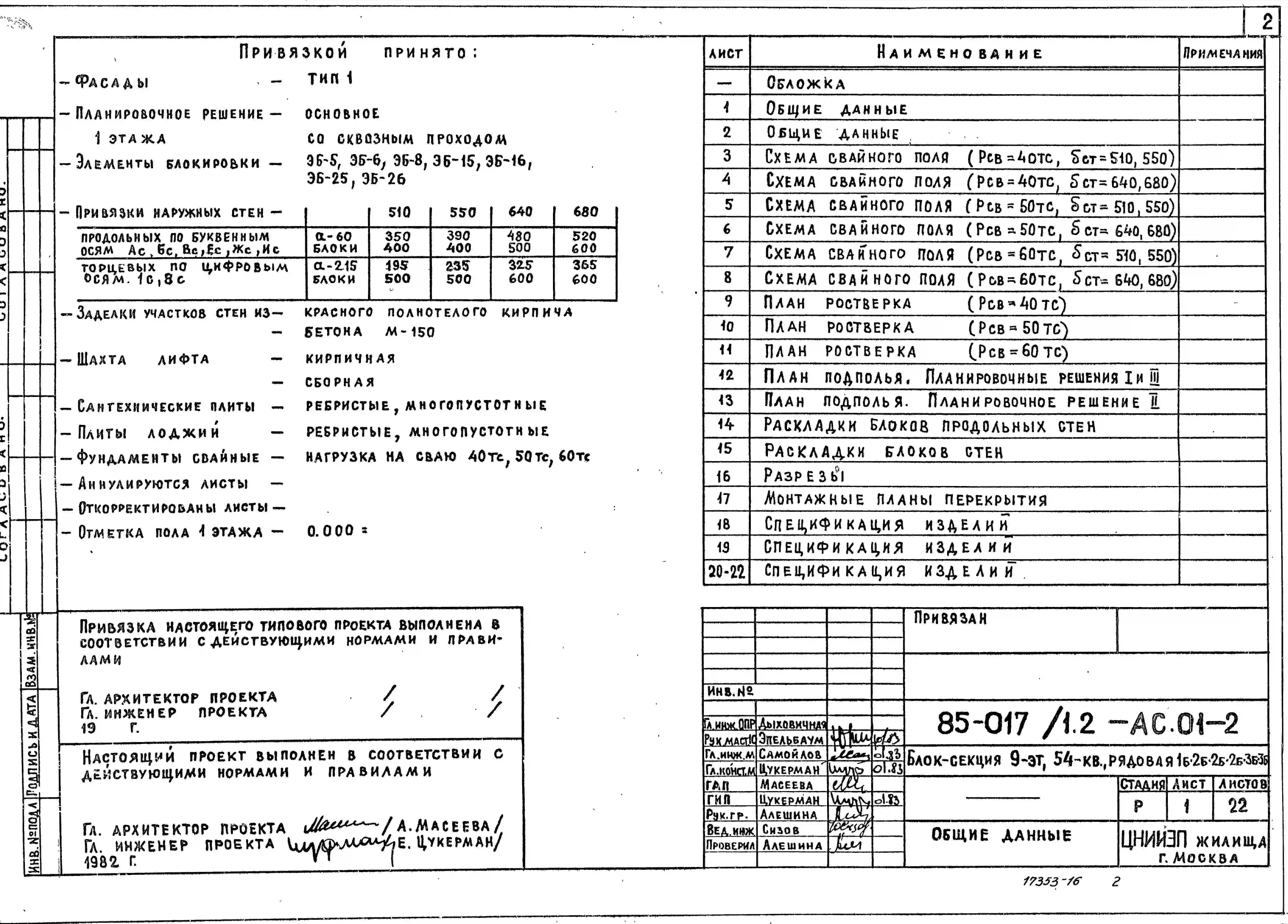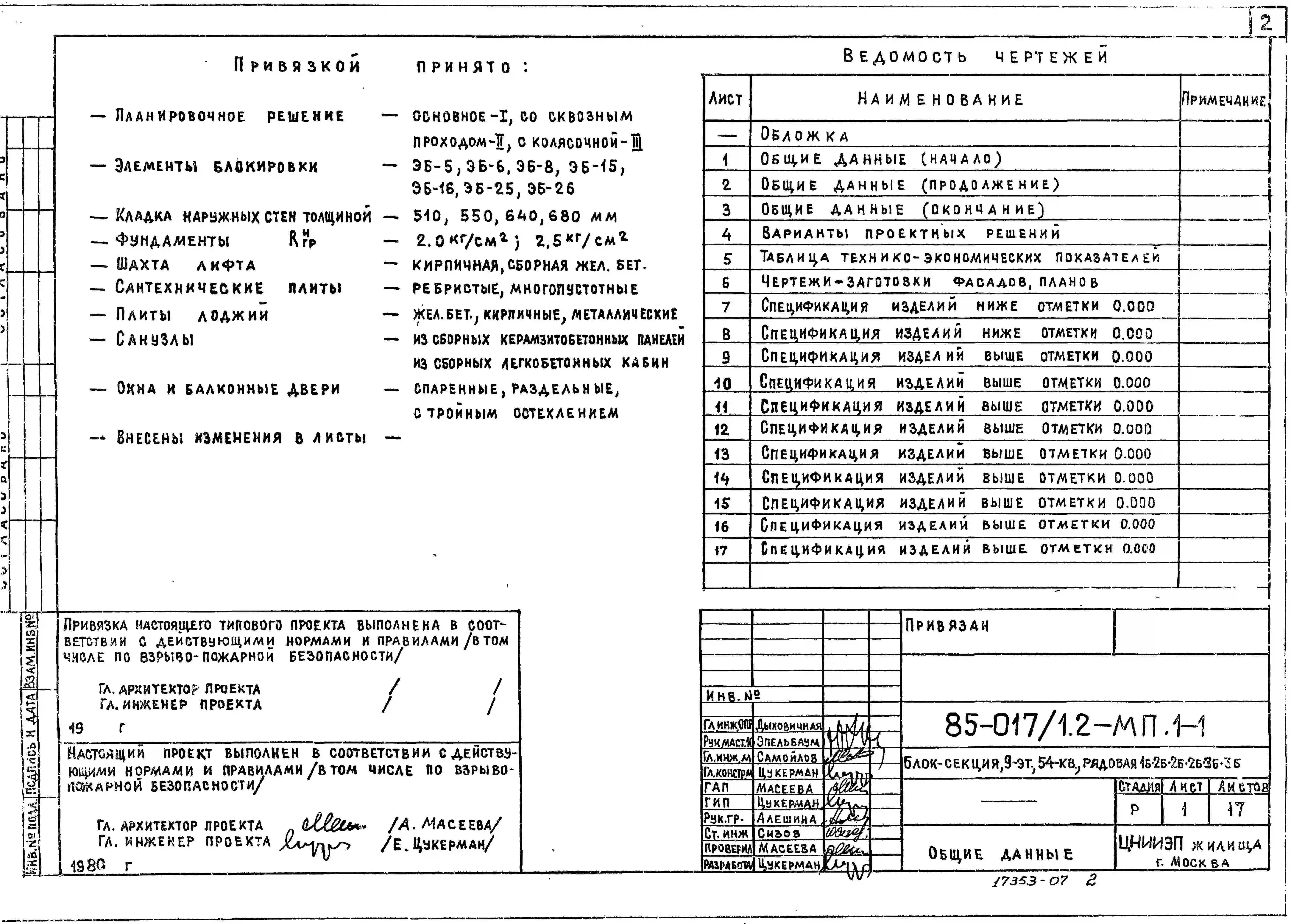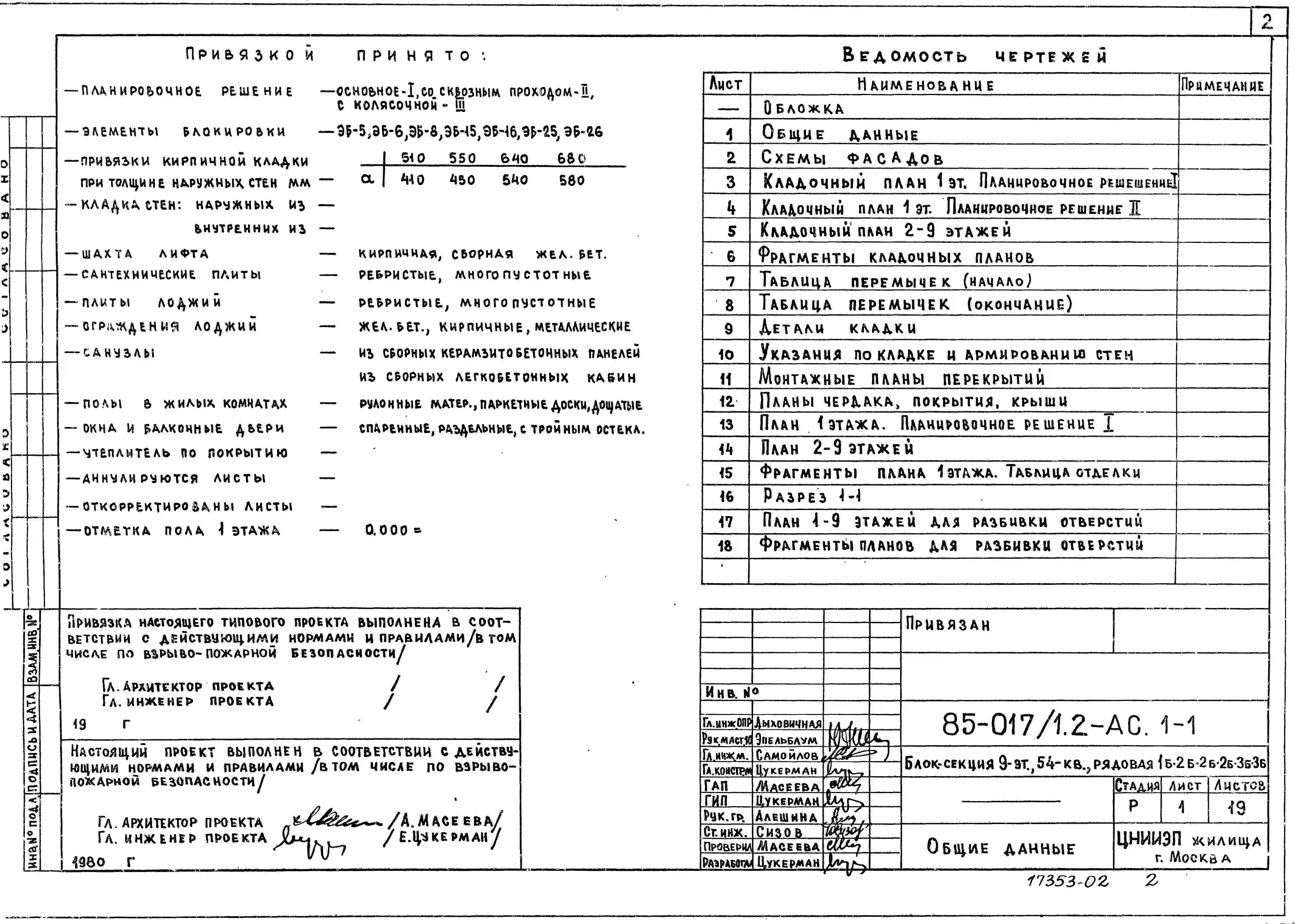 Типовой проект 85-017/1.2 Блок-секция 9-этажная 54-квартирная 1Б.2Б.2Б.2Б.3Б.3Б
