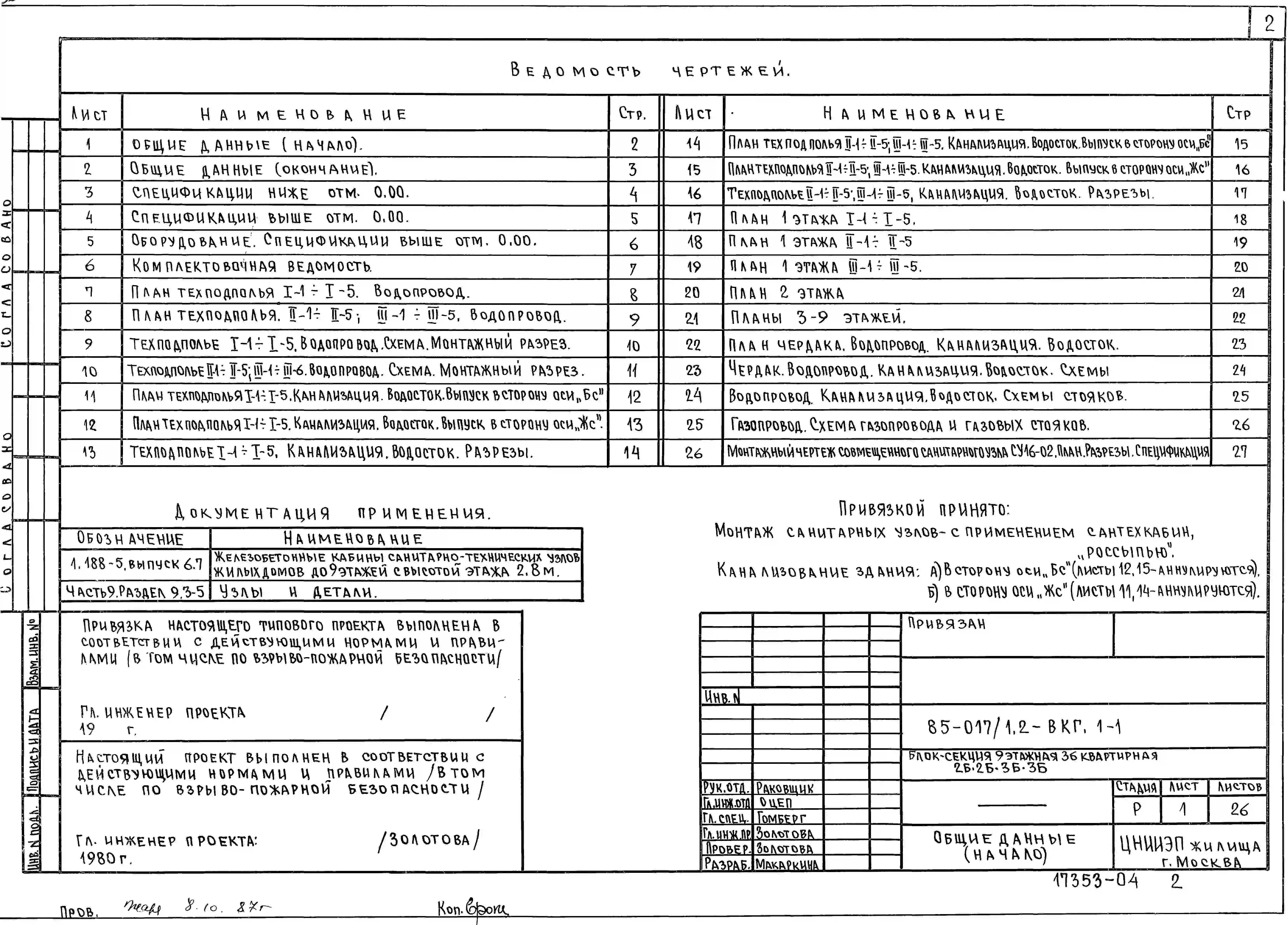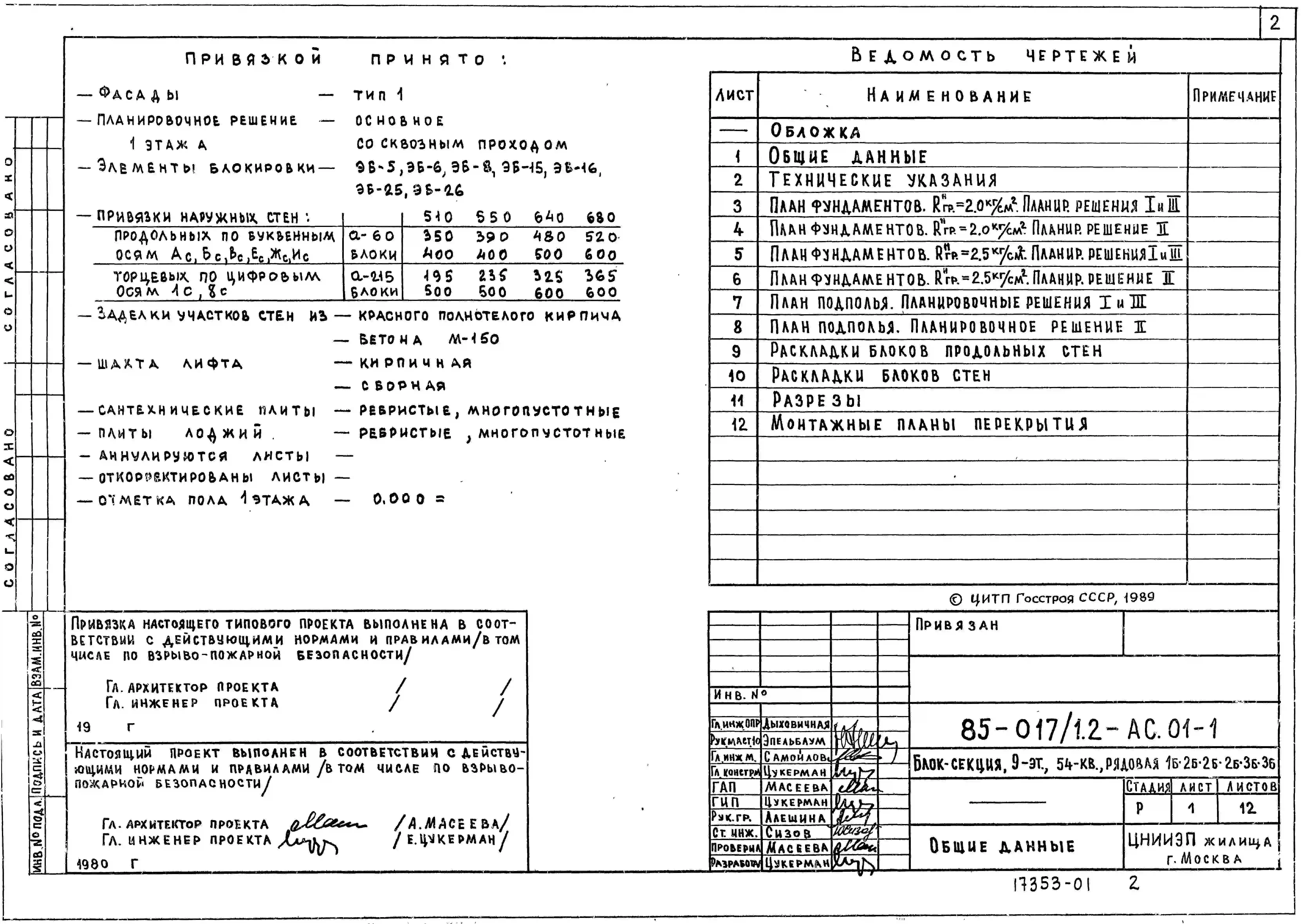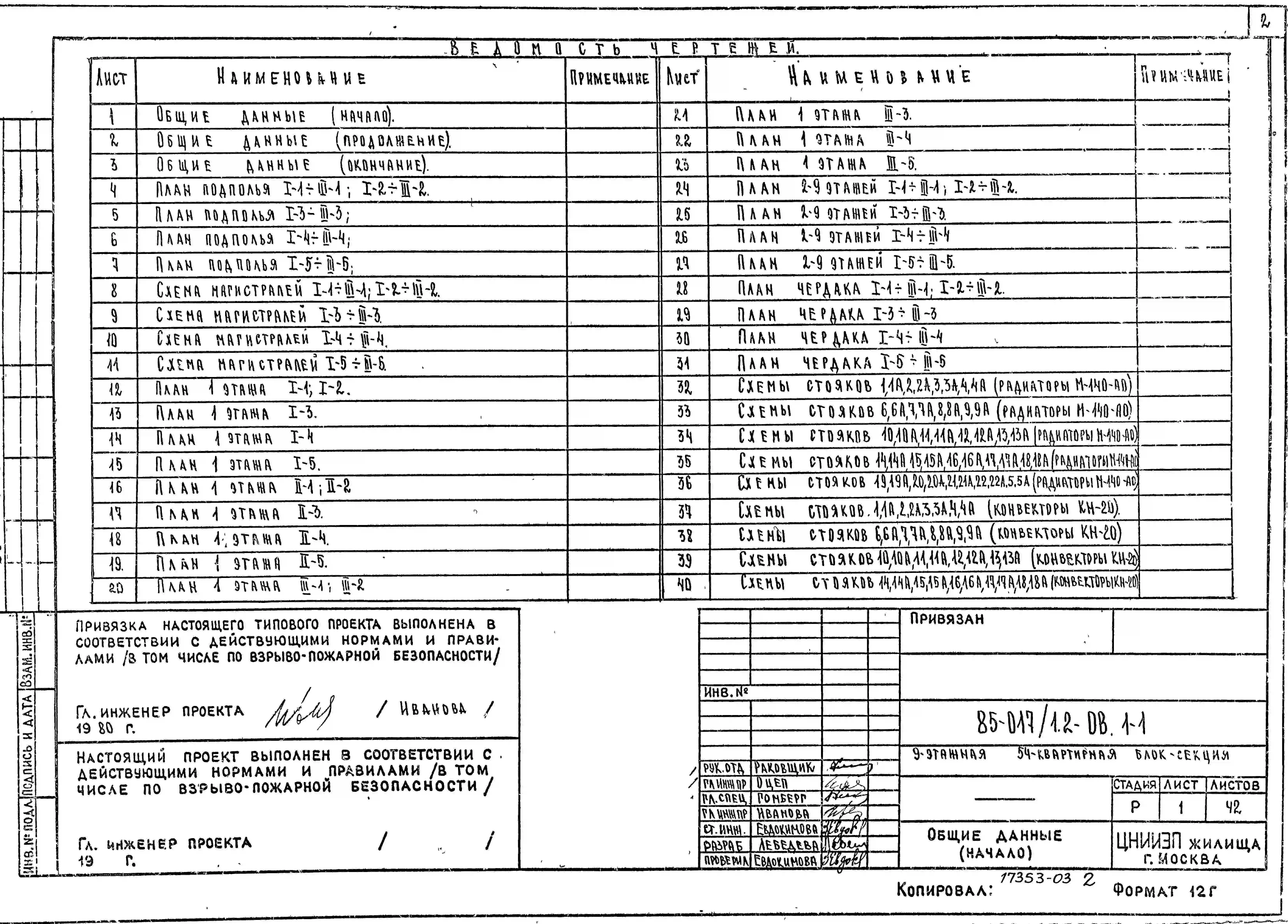 Типовой проект 85-017/1.2 Блок-секция 9-этажная 54-квартирная 1Б.2Б.2Б.2Б.3Б.3Б
