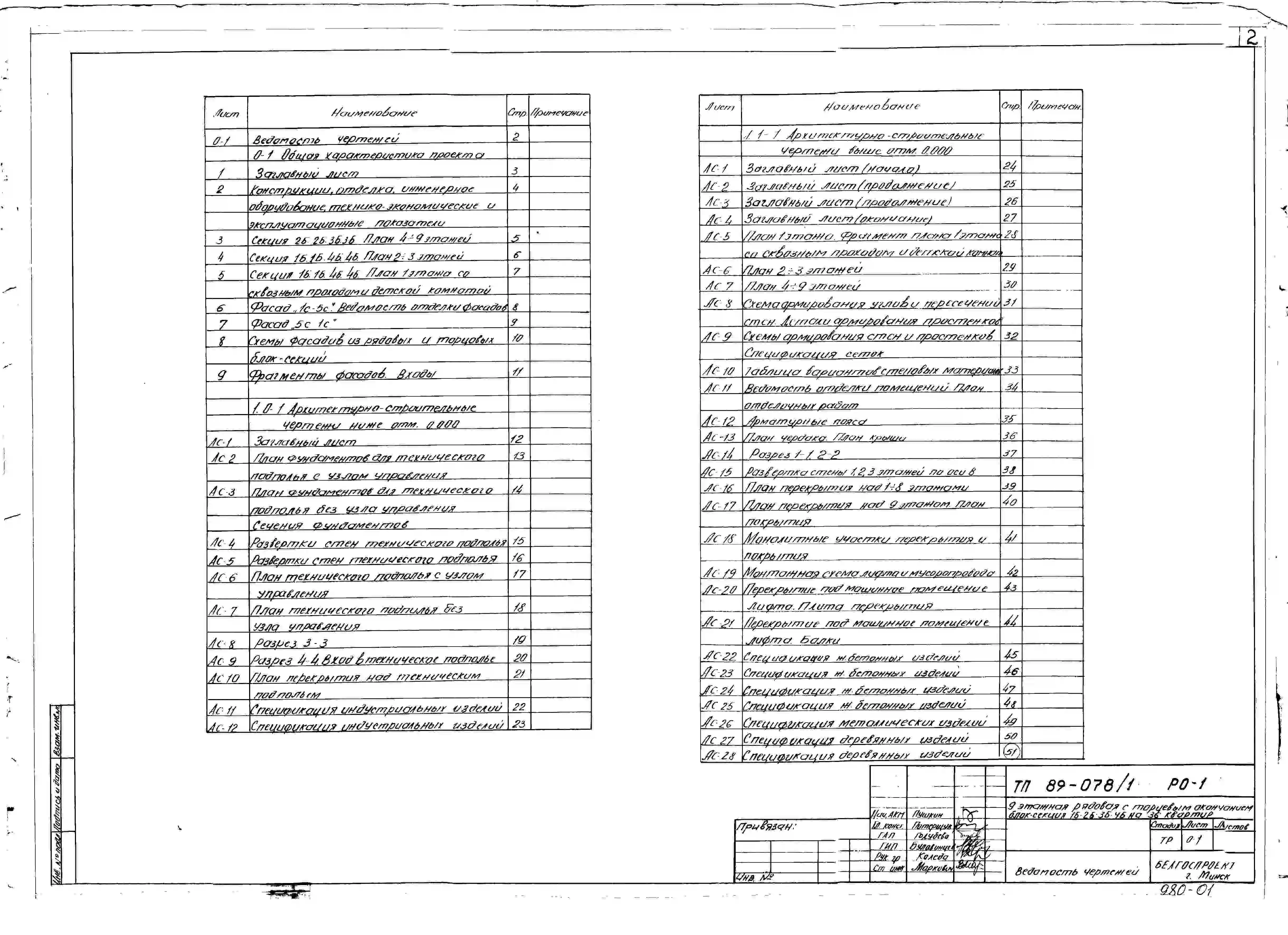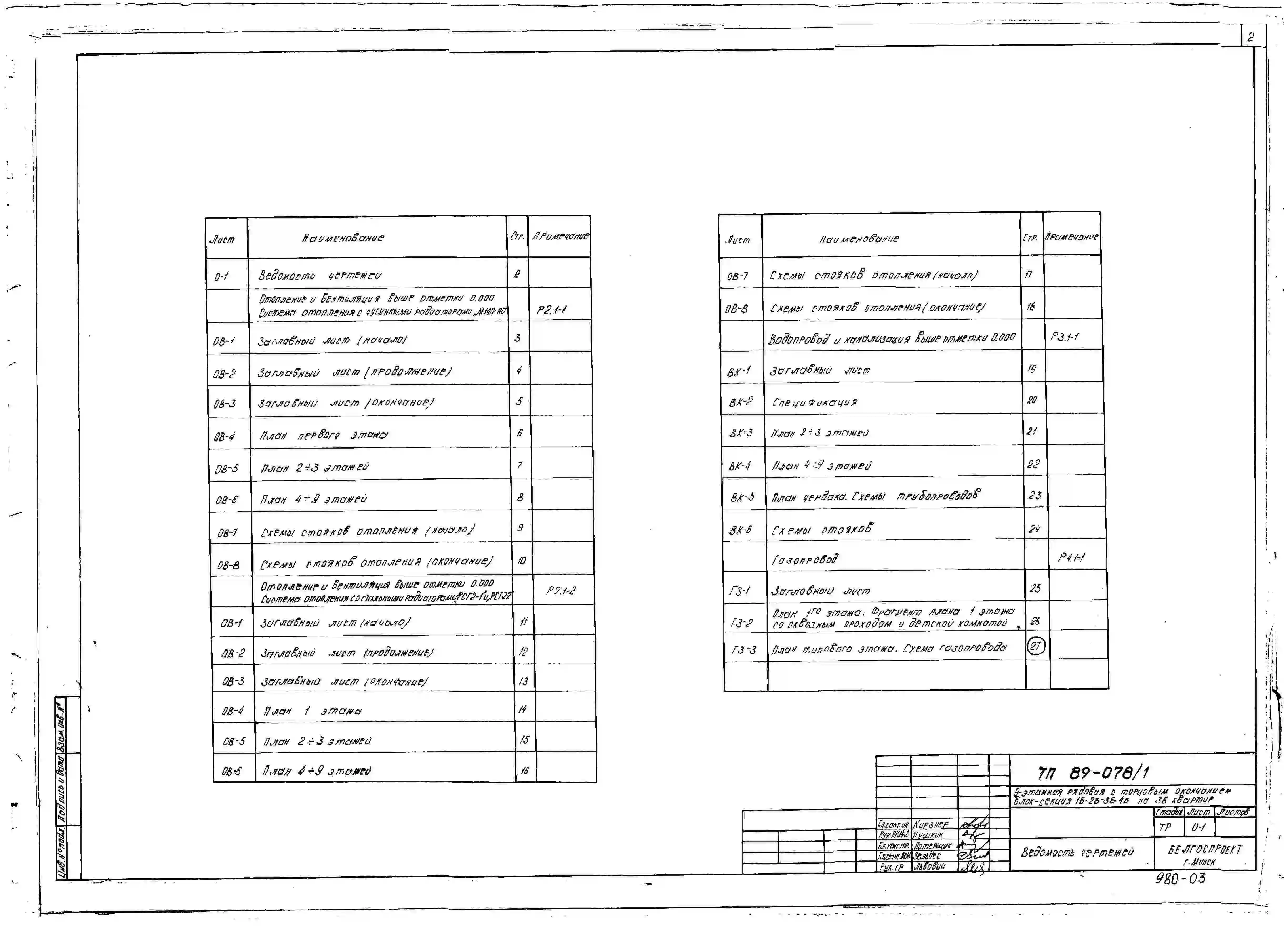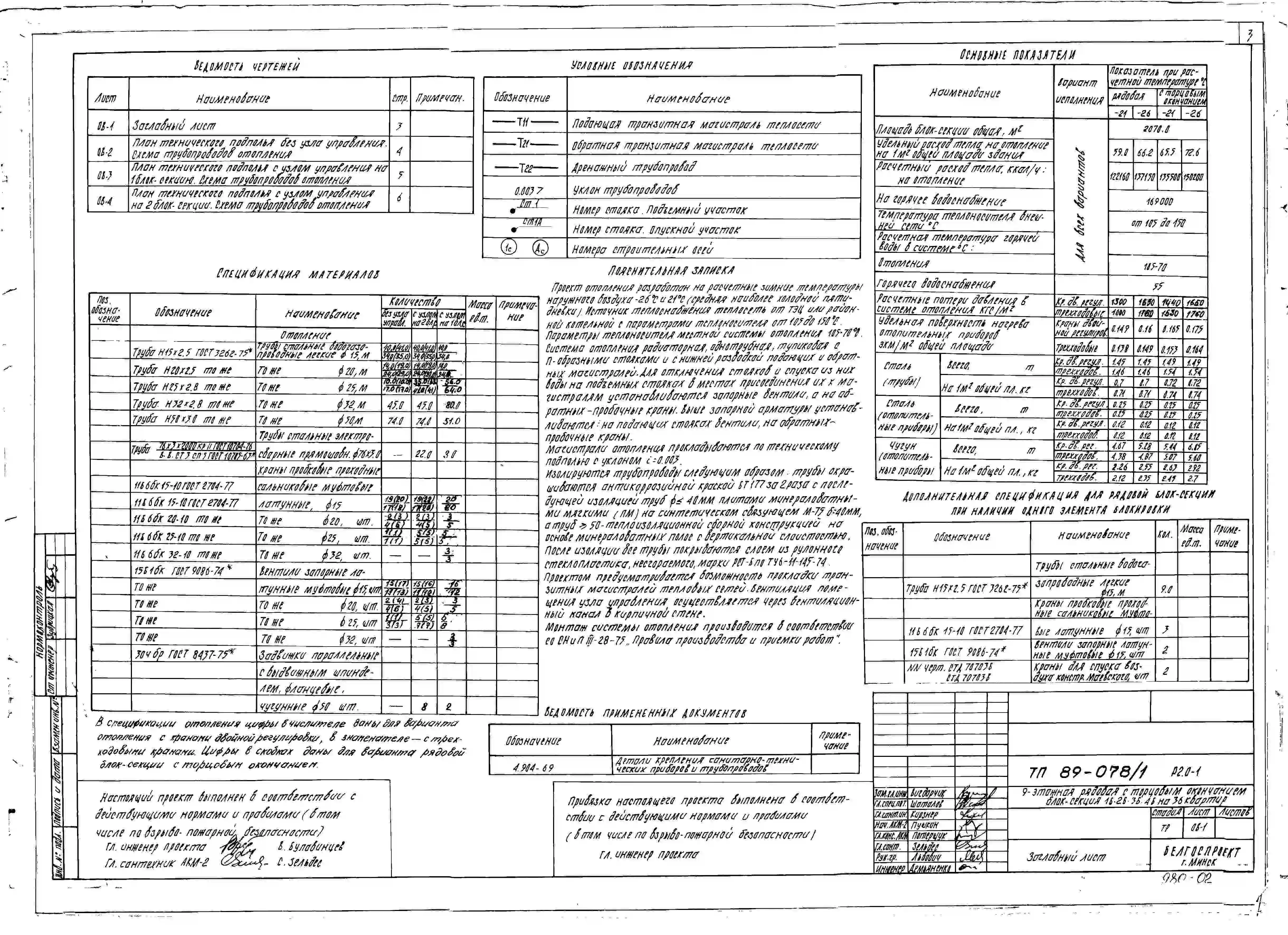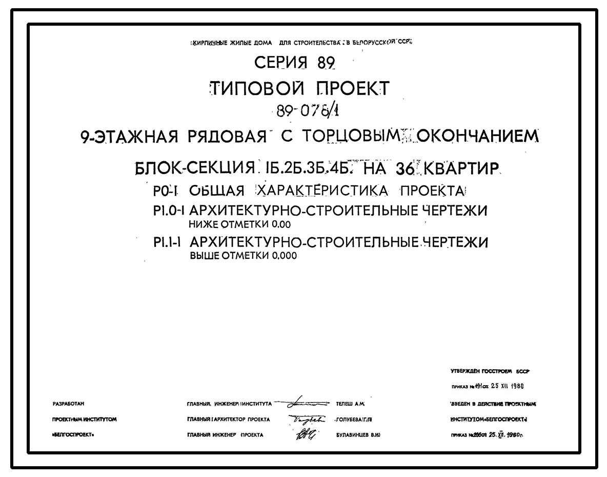 Типовой проект 89-078/1 9-этажная рядовая с торцовым окончанием блок-секция 1Б.2Б.3Б.4Б на 36 квартир