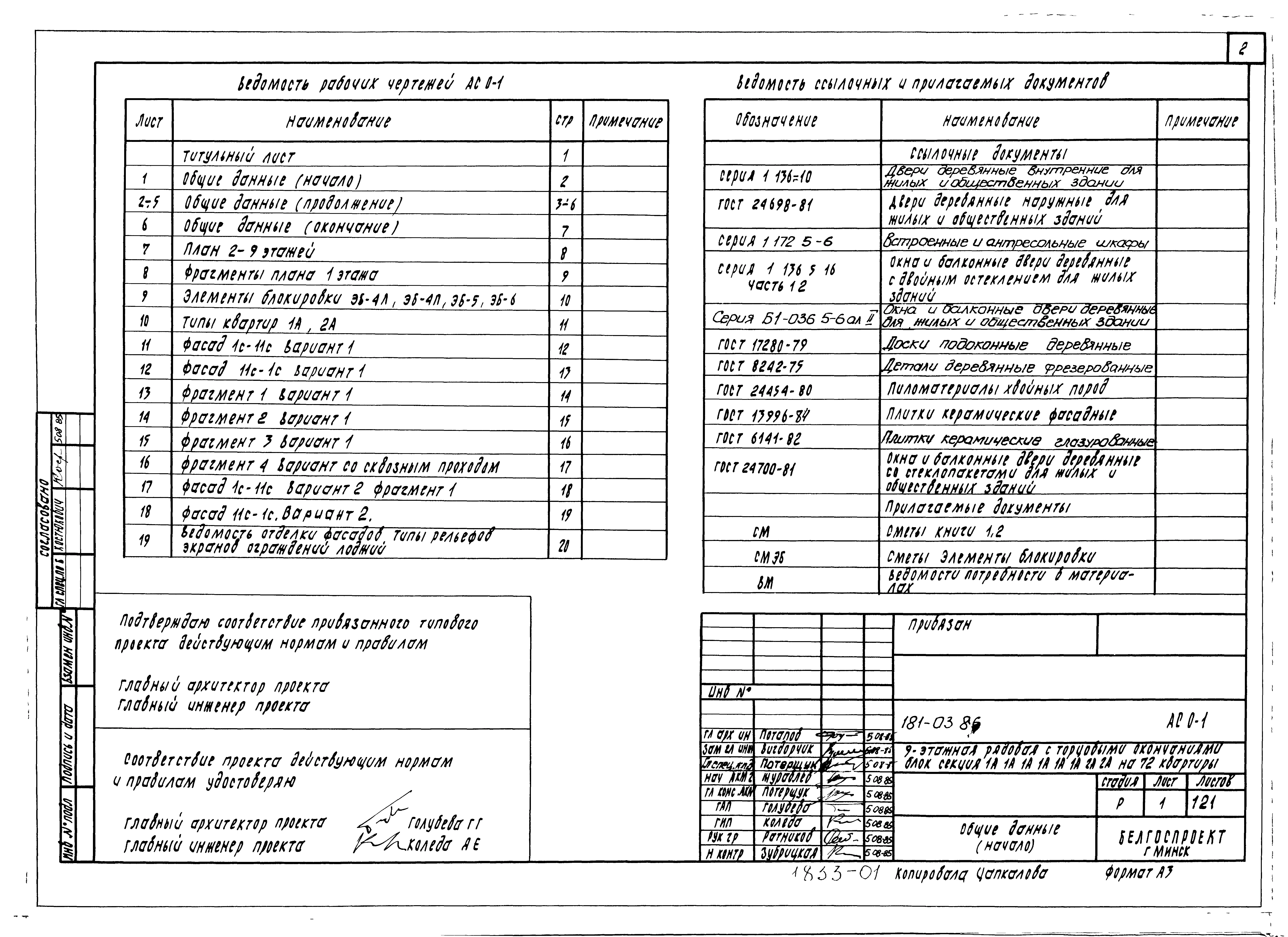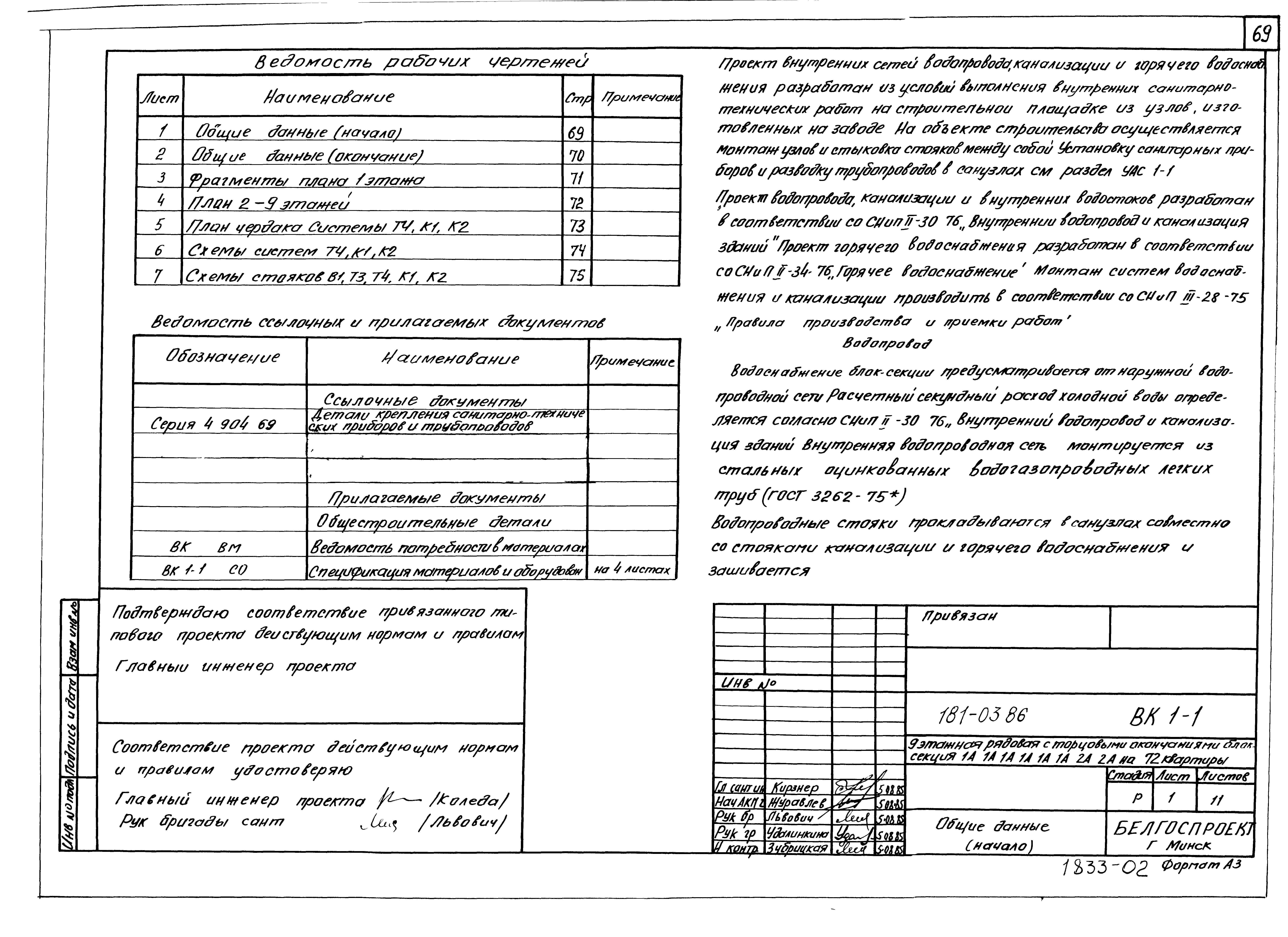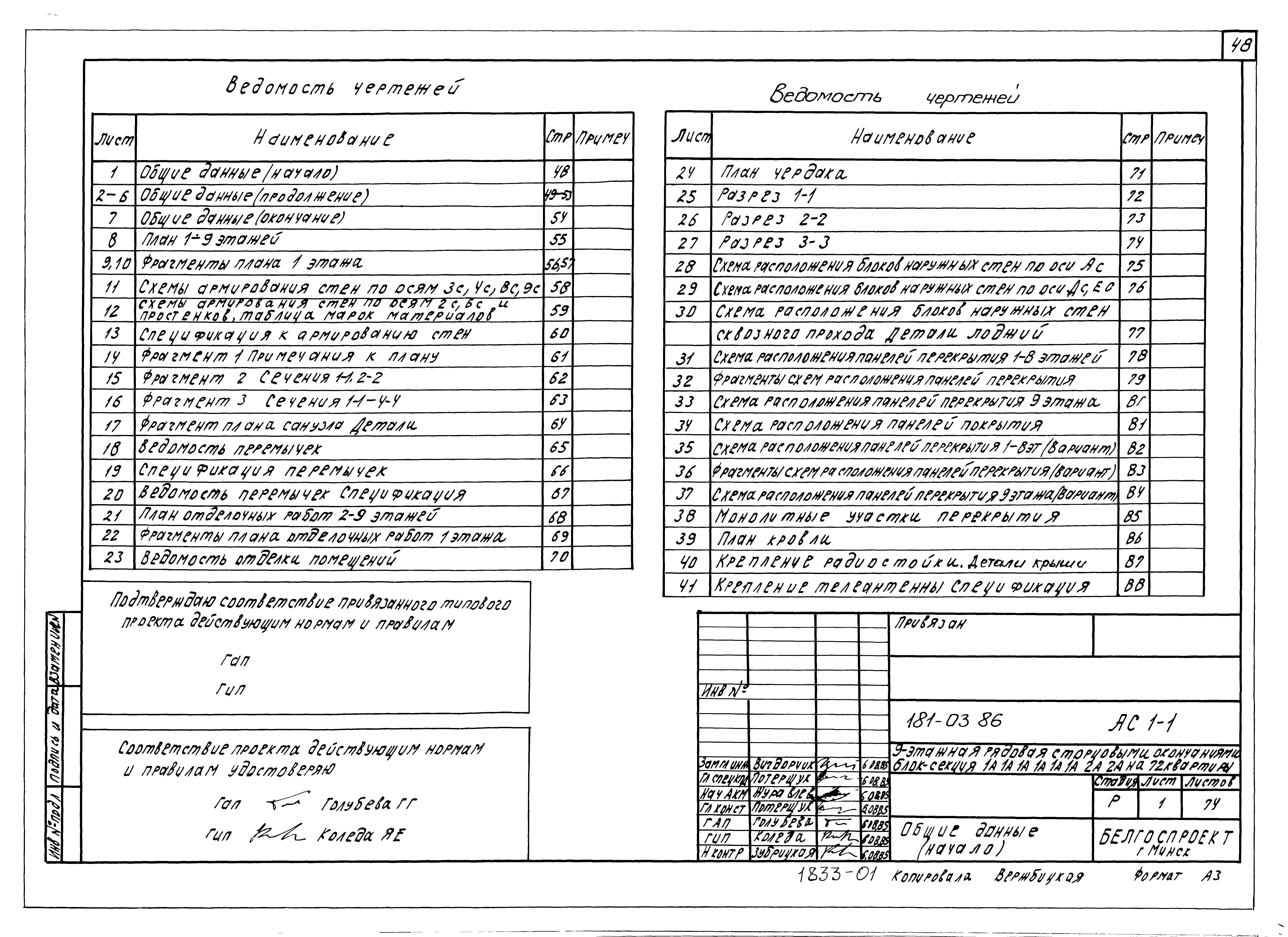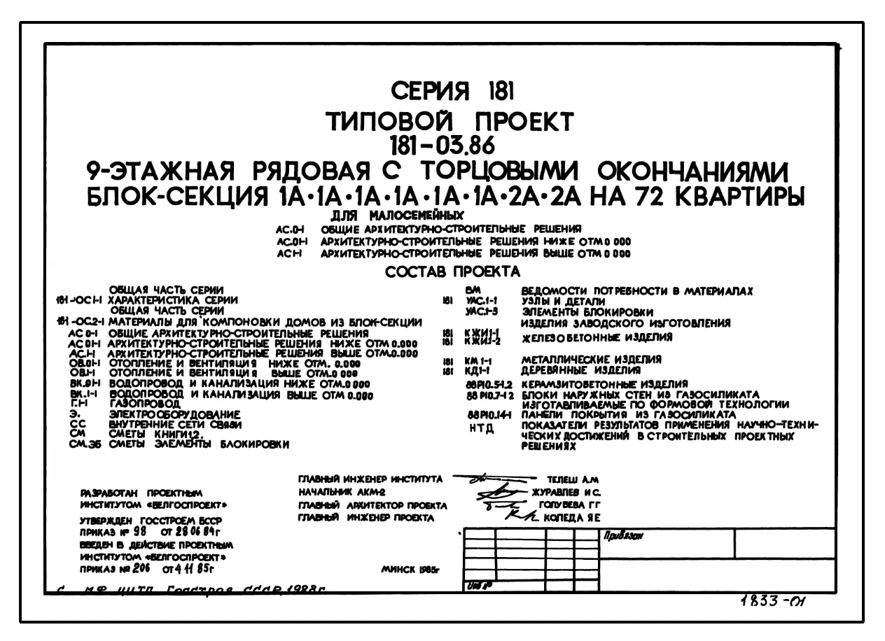 Типовой проект 181-03.86 Девятиэтажная блок-секция рядовая с торцевыми окончаниями для малосемейных на 72 квартиры