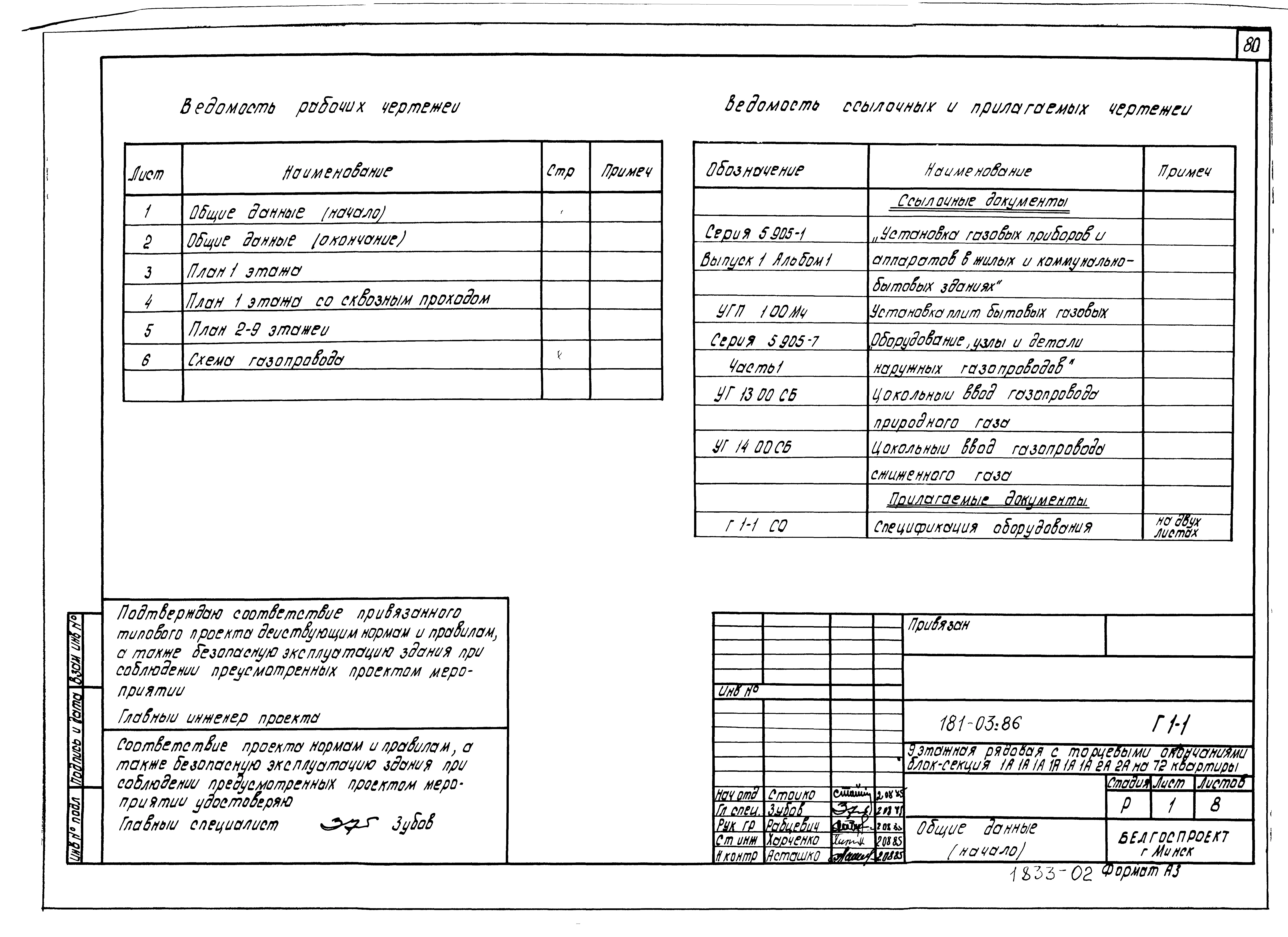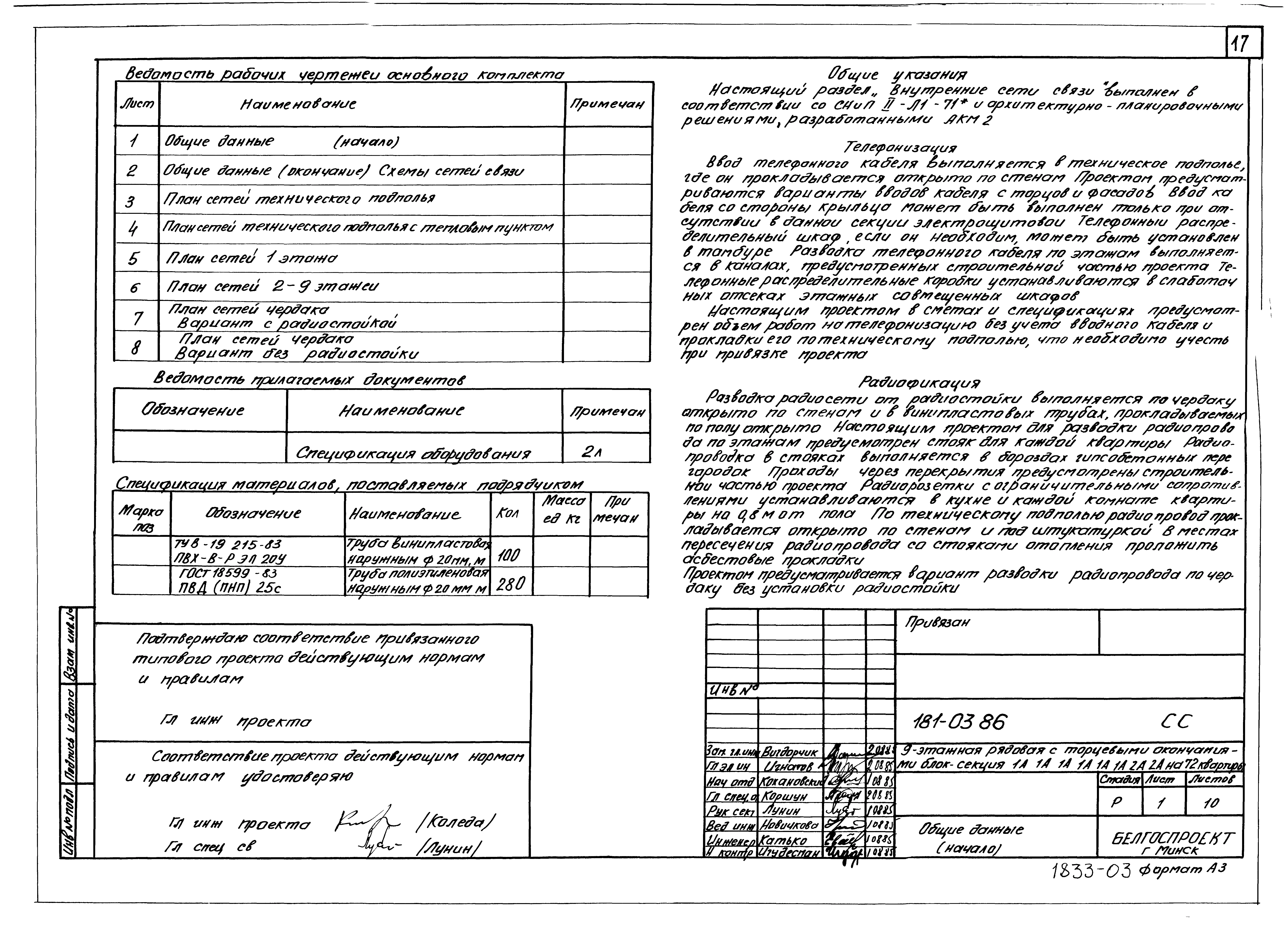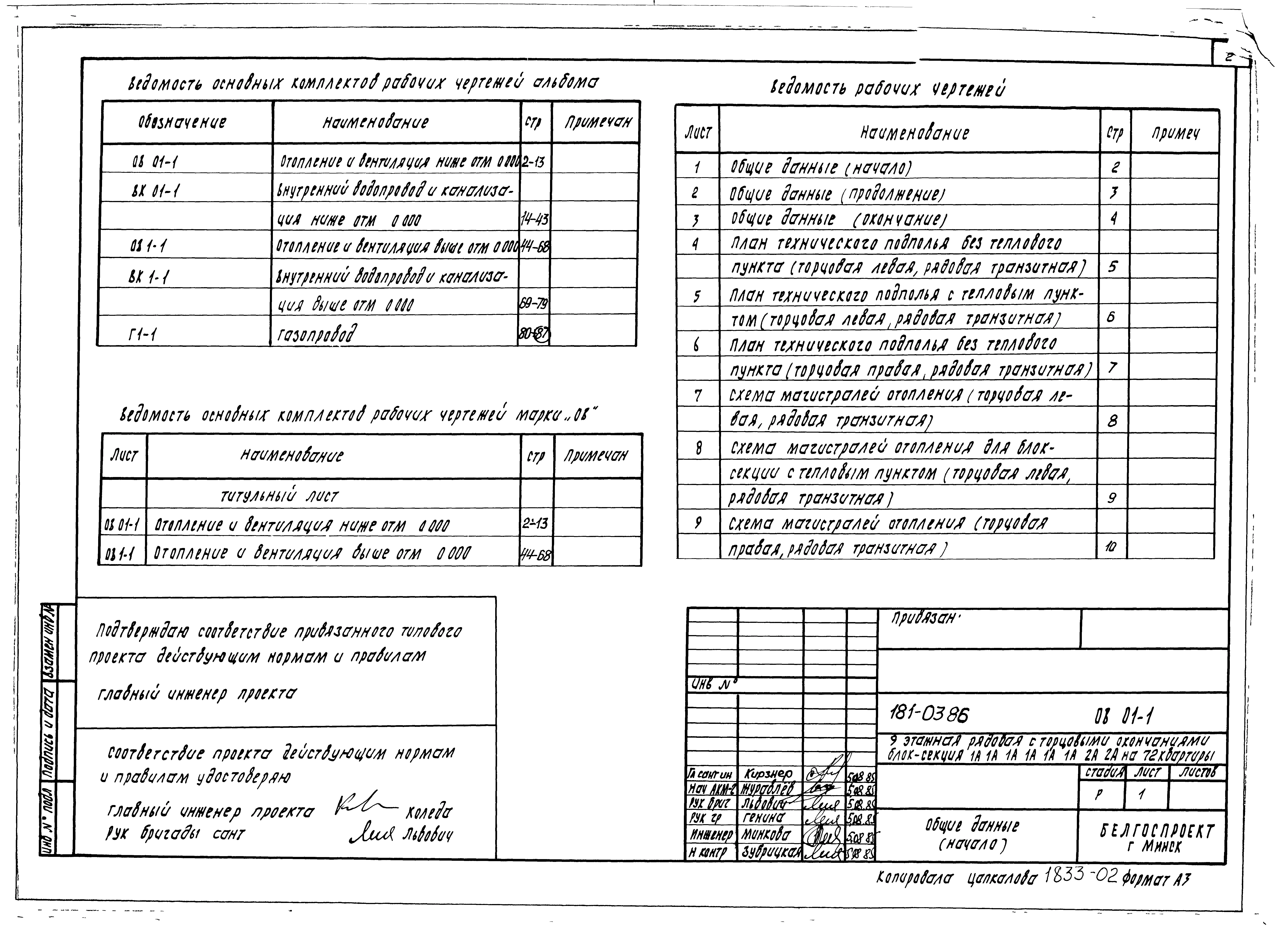 Типовой проект 181-03.86 Девятиэтажная блок-секция рядовая с торцевыми окончаниями для малосемейных на 72 квартиры
