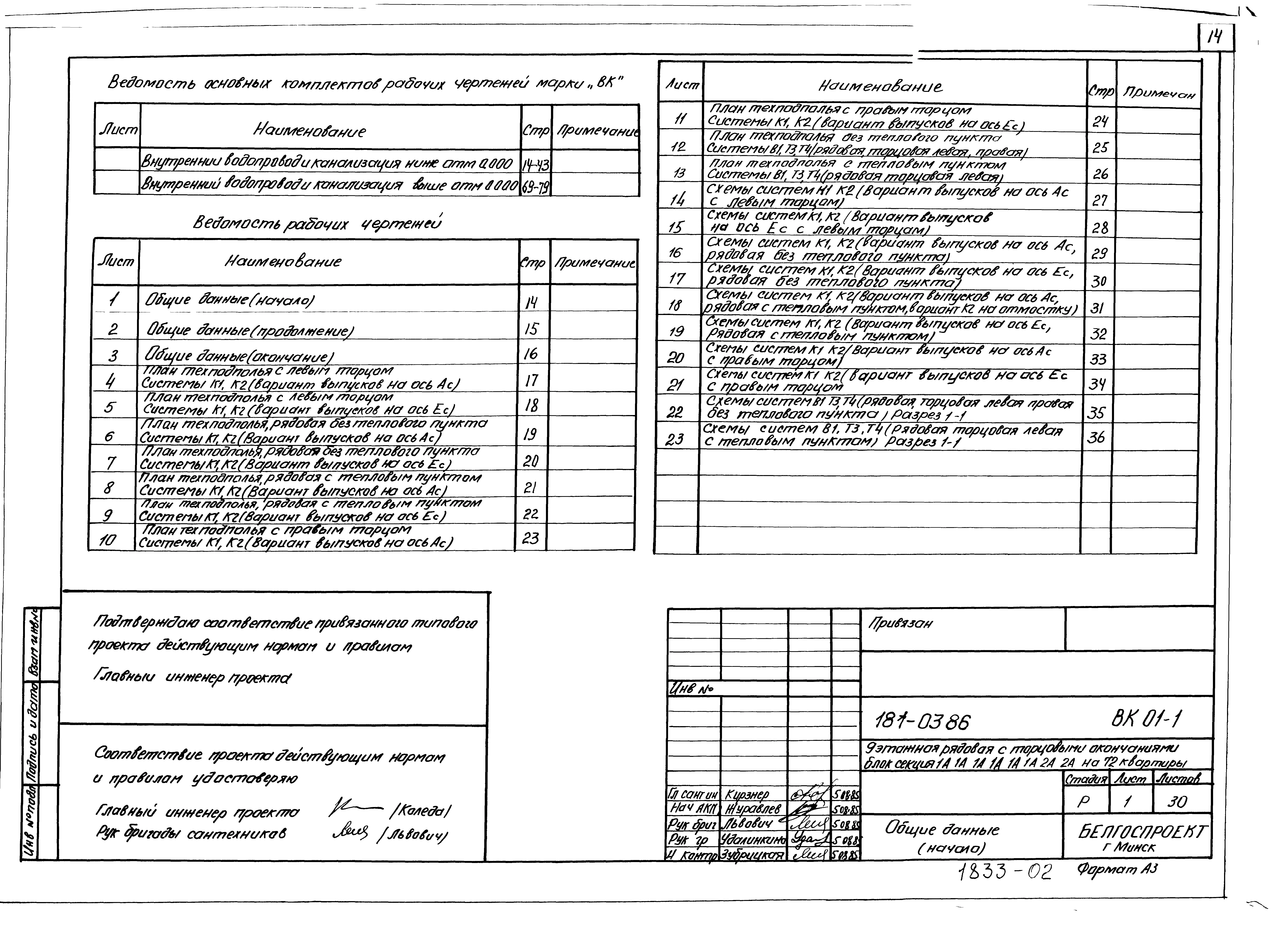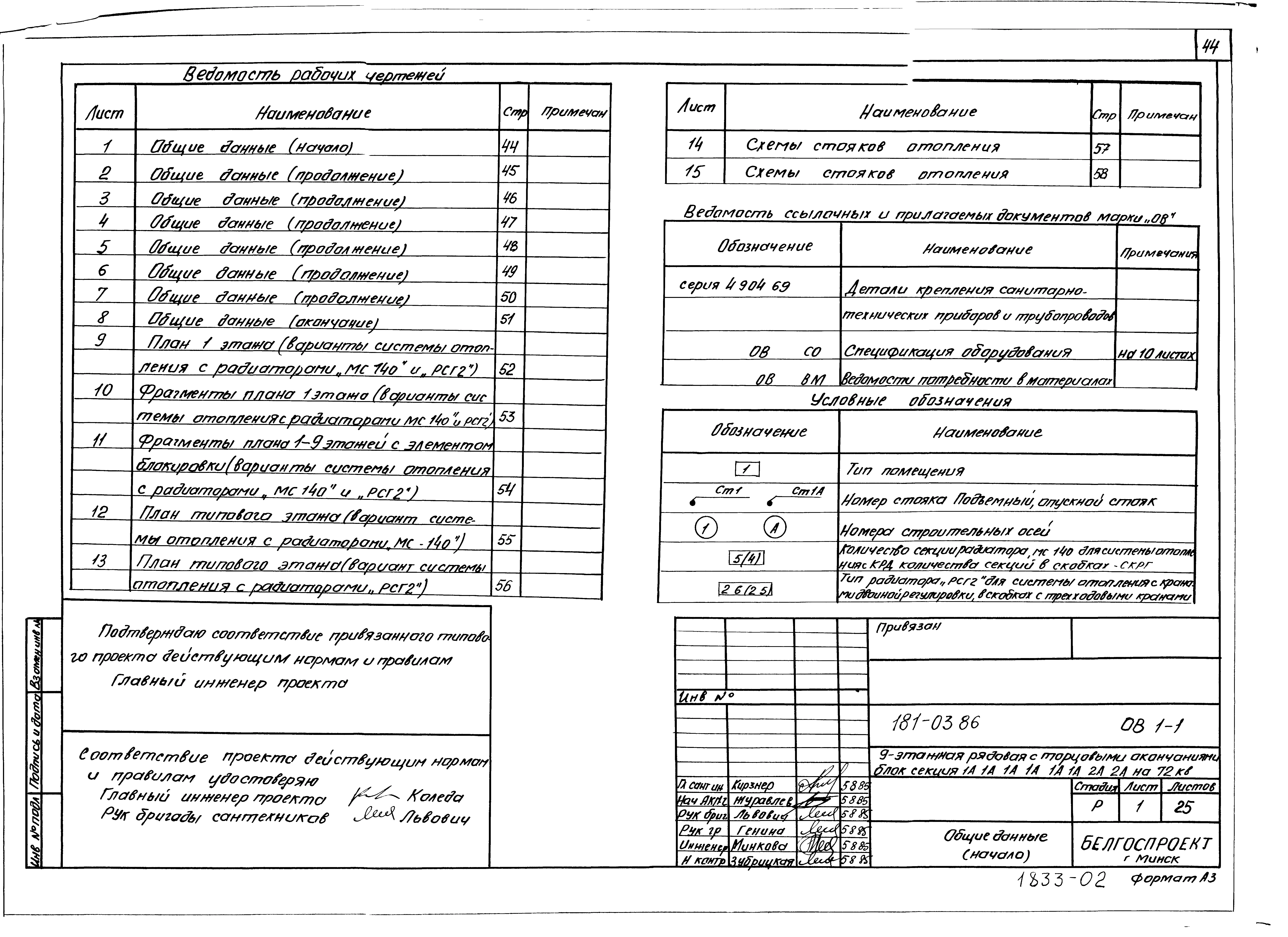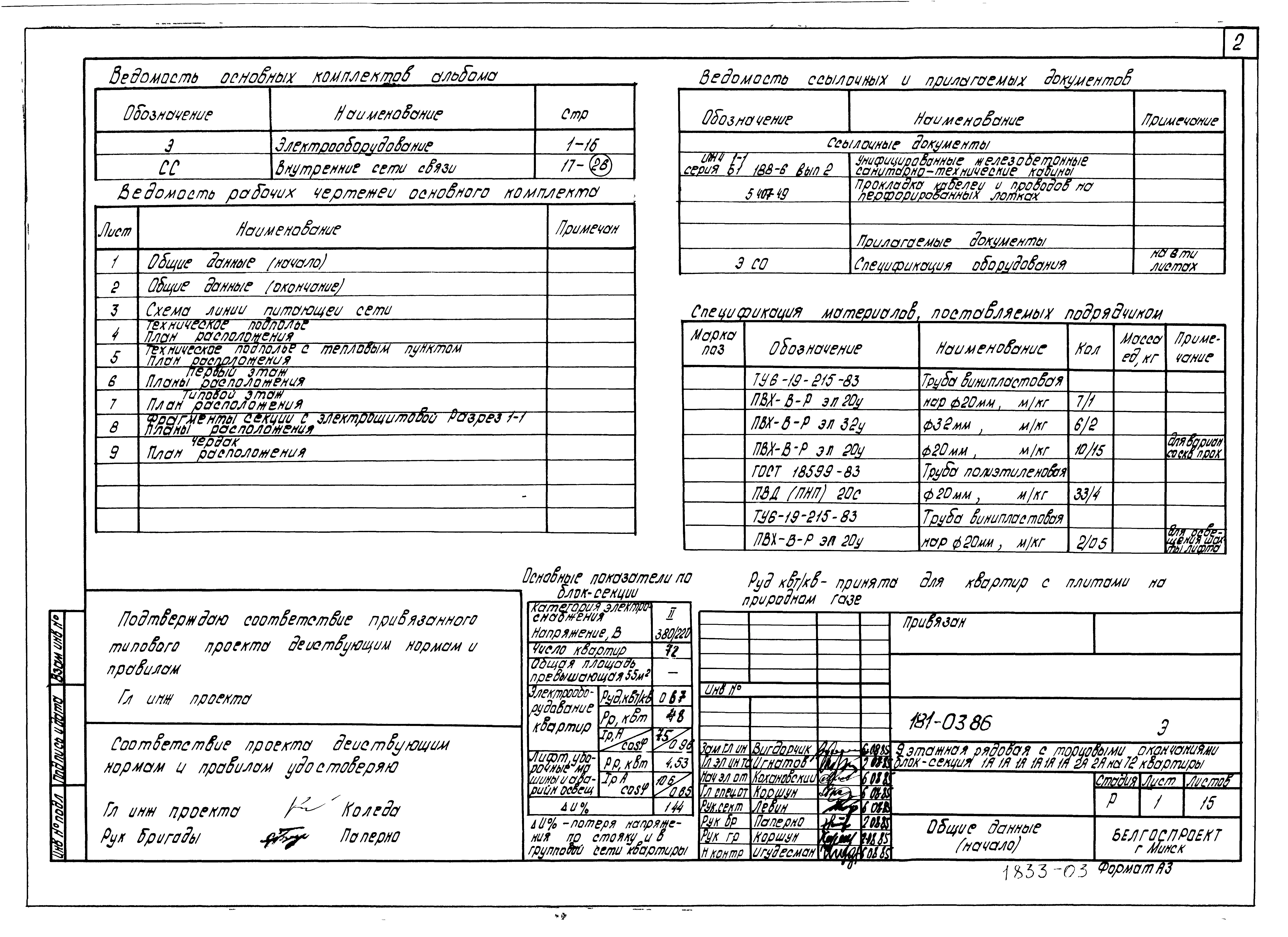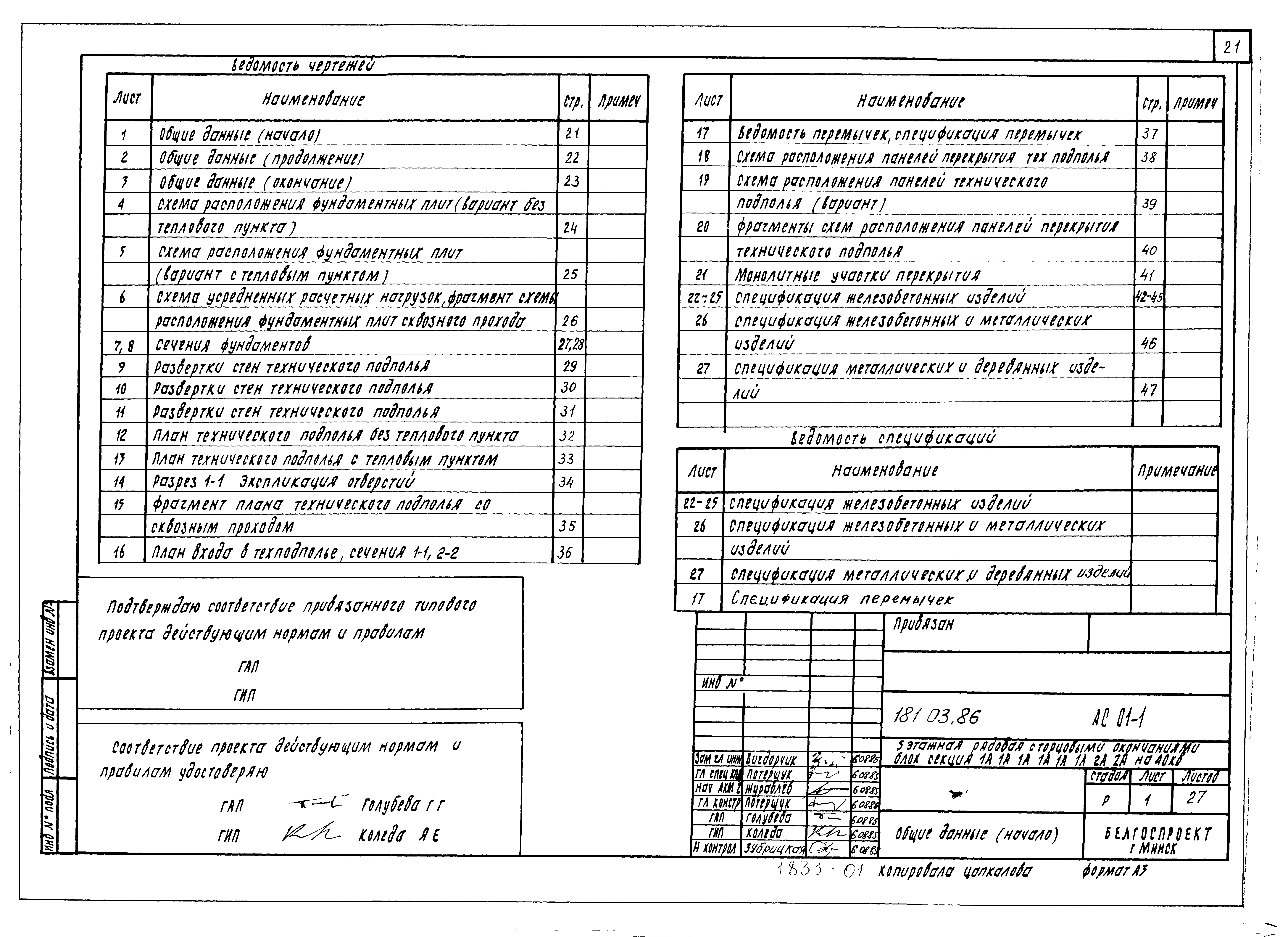 Типовой проект 181-03.86 Девятиэтажная блок-секция рядовая с торцевыми окончаниями для малосемейных на 72 квартиры