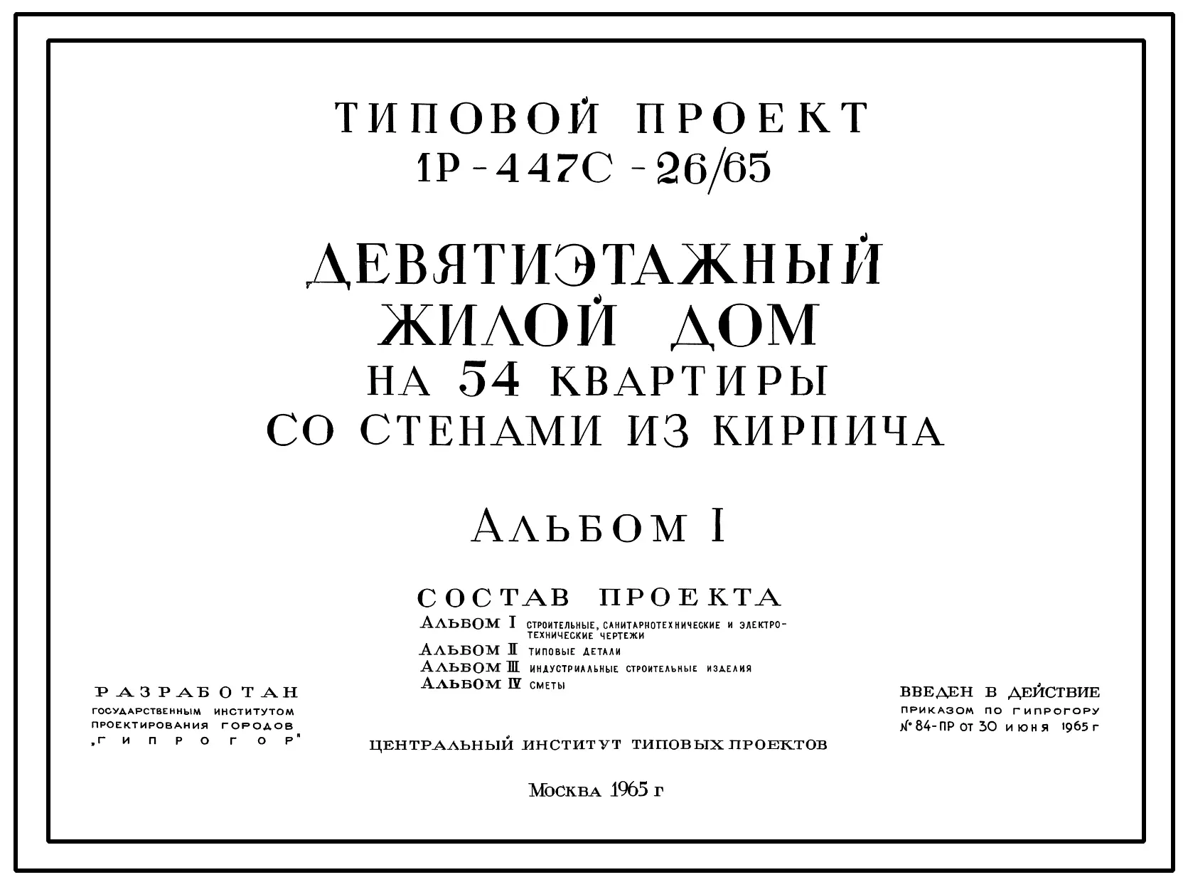 Типовой проект 1Р-447С-26/65 Девятиэтажный жилой дом на 54 квартир со стенами из кирпича