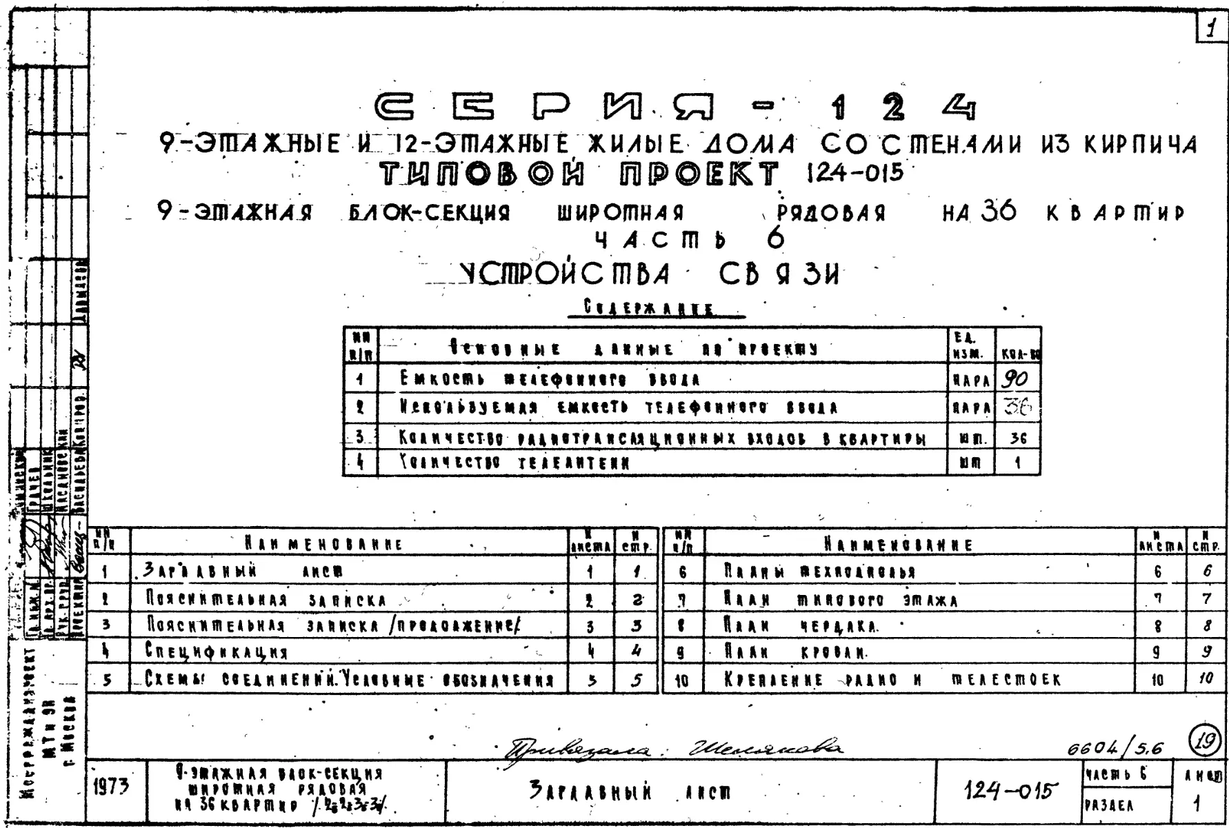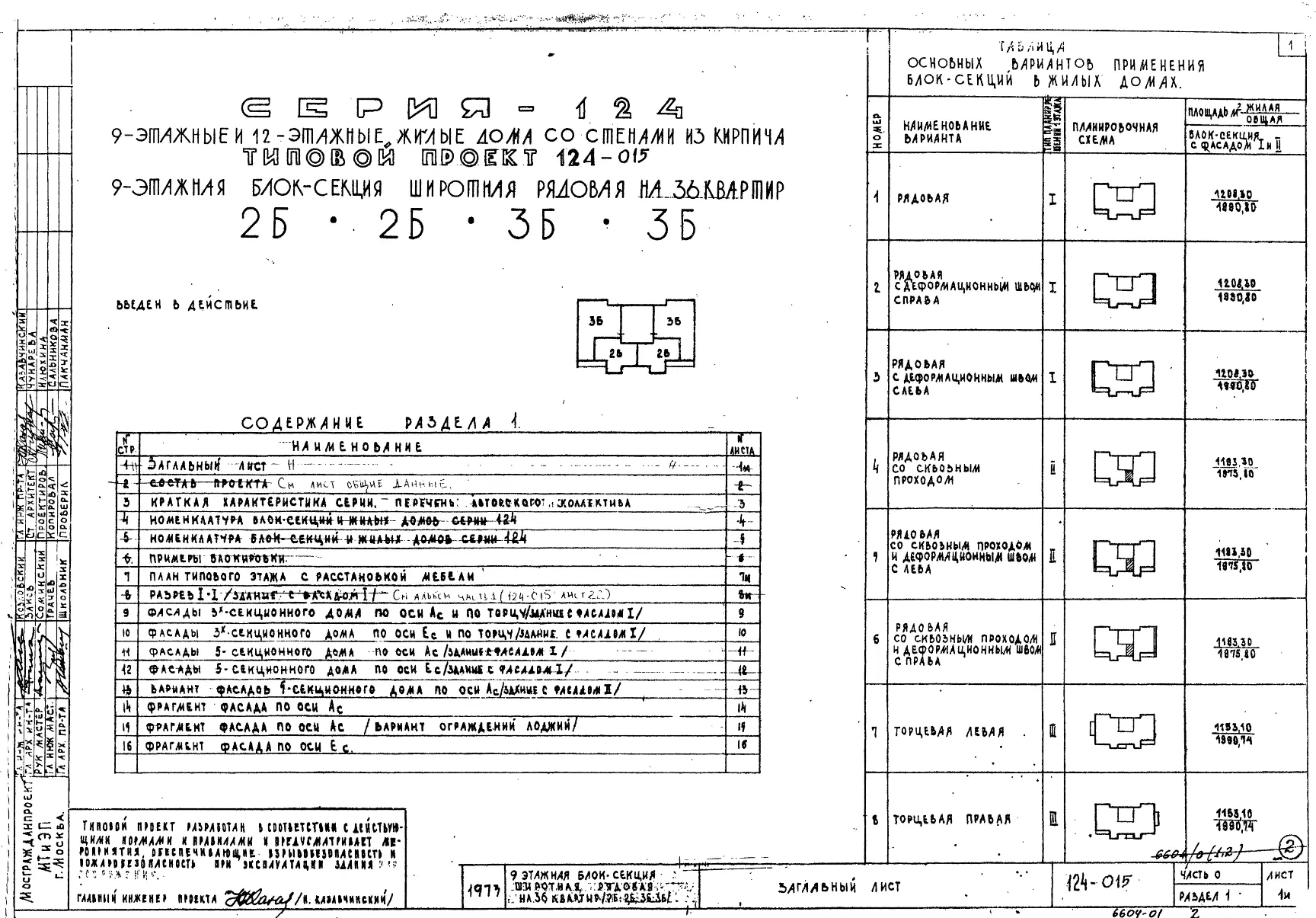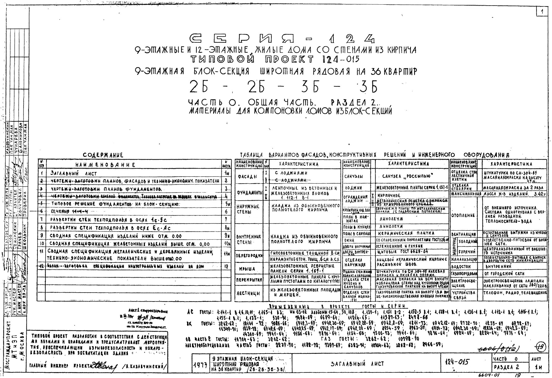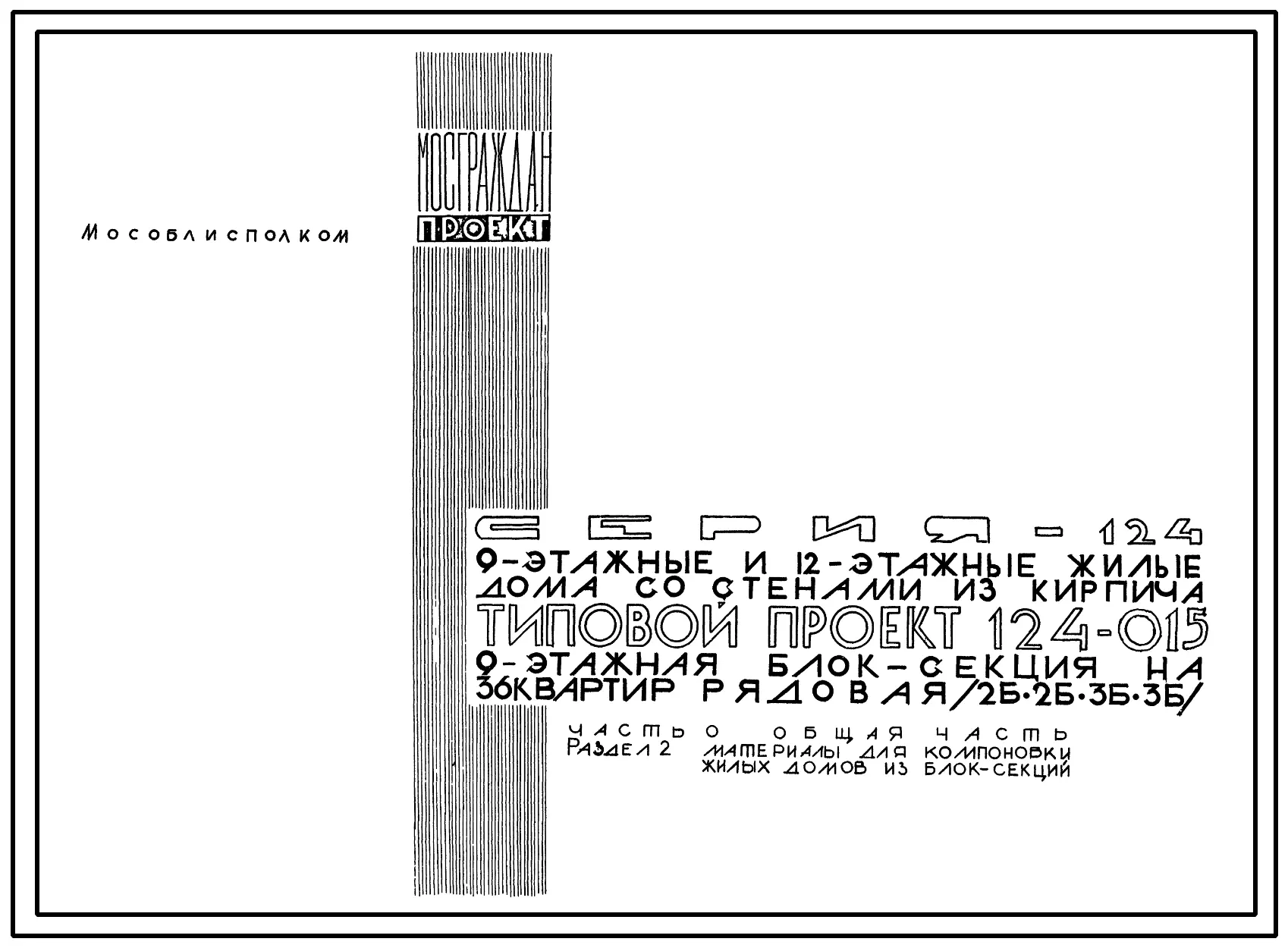 Типовой проект 124-015 Девятиэтажная блок-секция рядовая на 36 квартир (двухкомнатных 2Б-18; трехкомнатных 3Б-18). Для строительства во 2В климатическом подрайоне