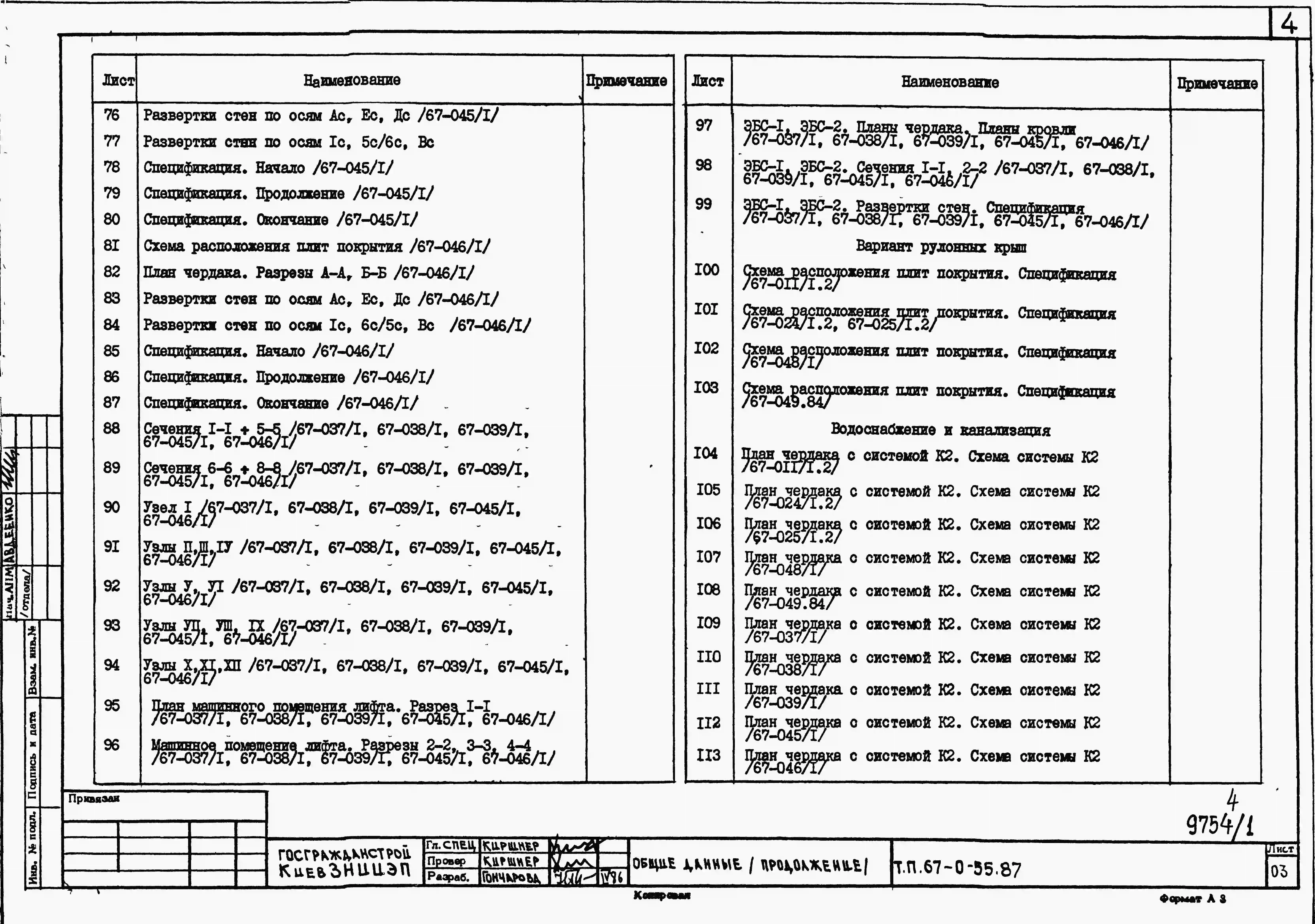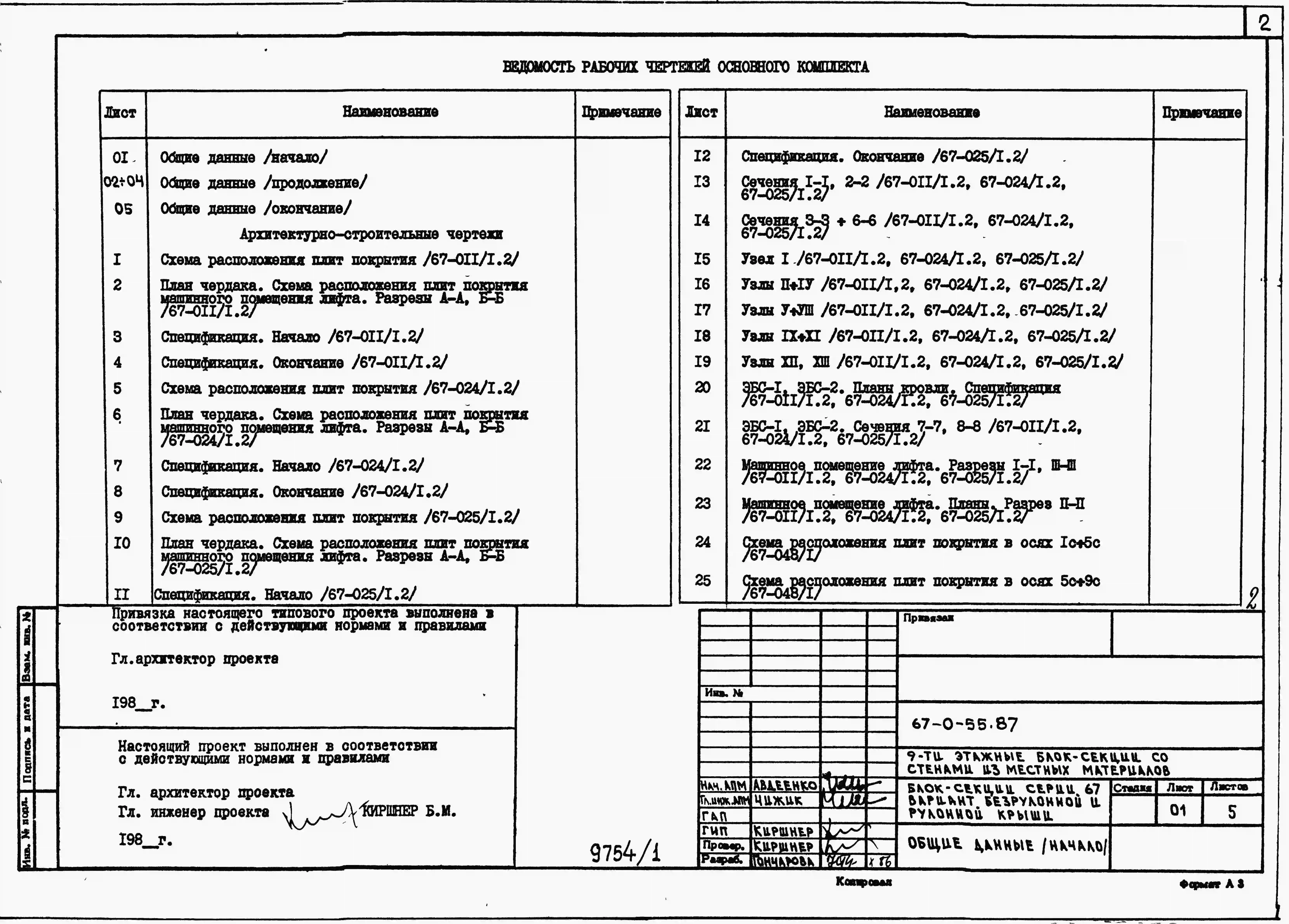 Типовой проект 67-0-55.87 Конструкции безрулонных и рулонных крыш к типовым проектам 9-этажных блок-секций серии 67 для обычных условий строительства для проектов 67-011/1.2, 67-024/1.2, 67-025/1.2, 67-048/1, 67-048/1.2, 67-049.84, 67-037/1, 67-038/1, 67-
