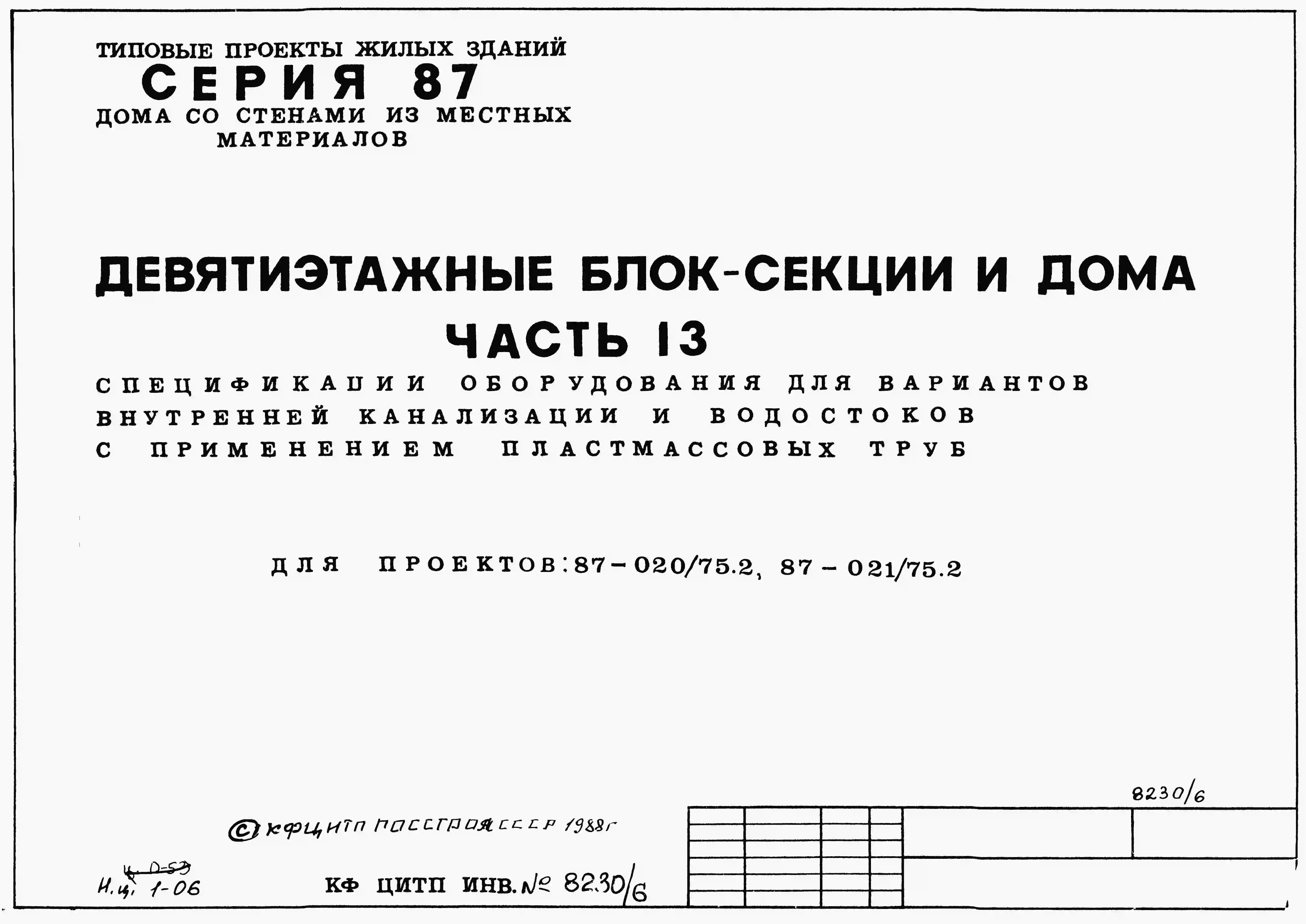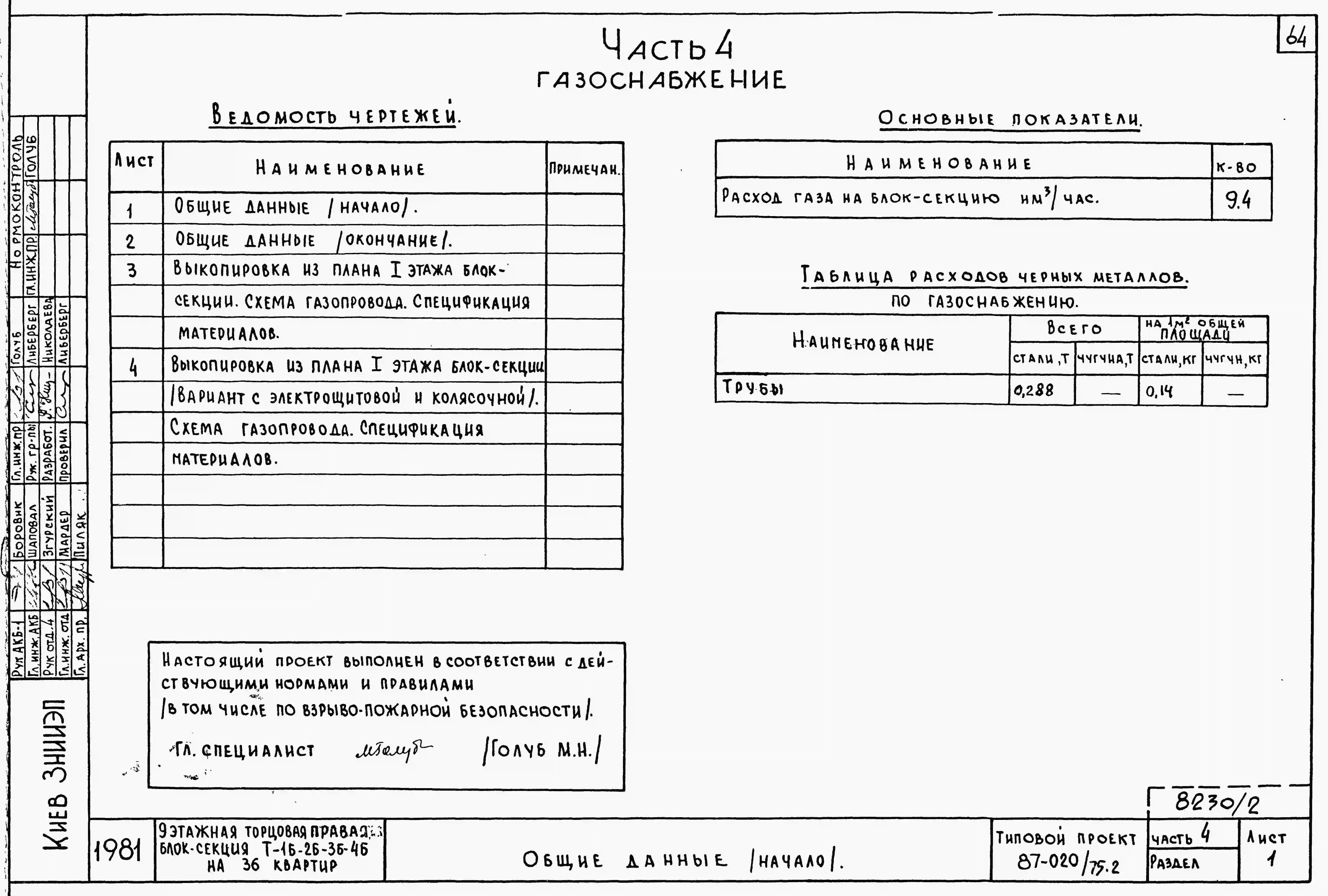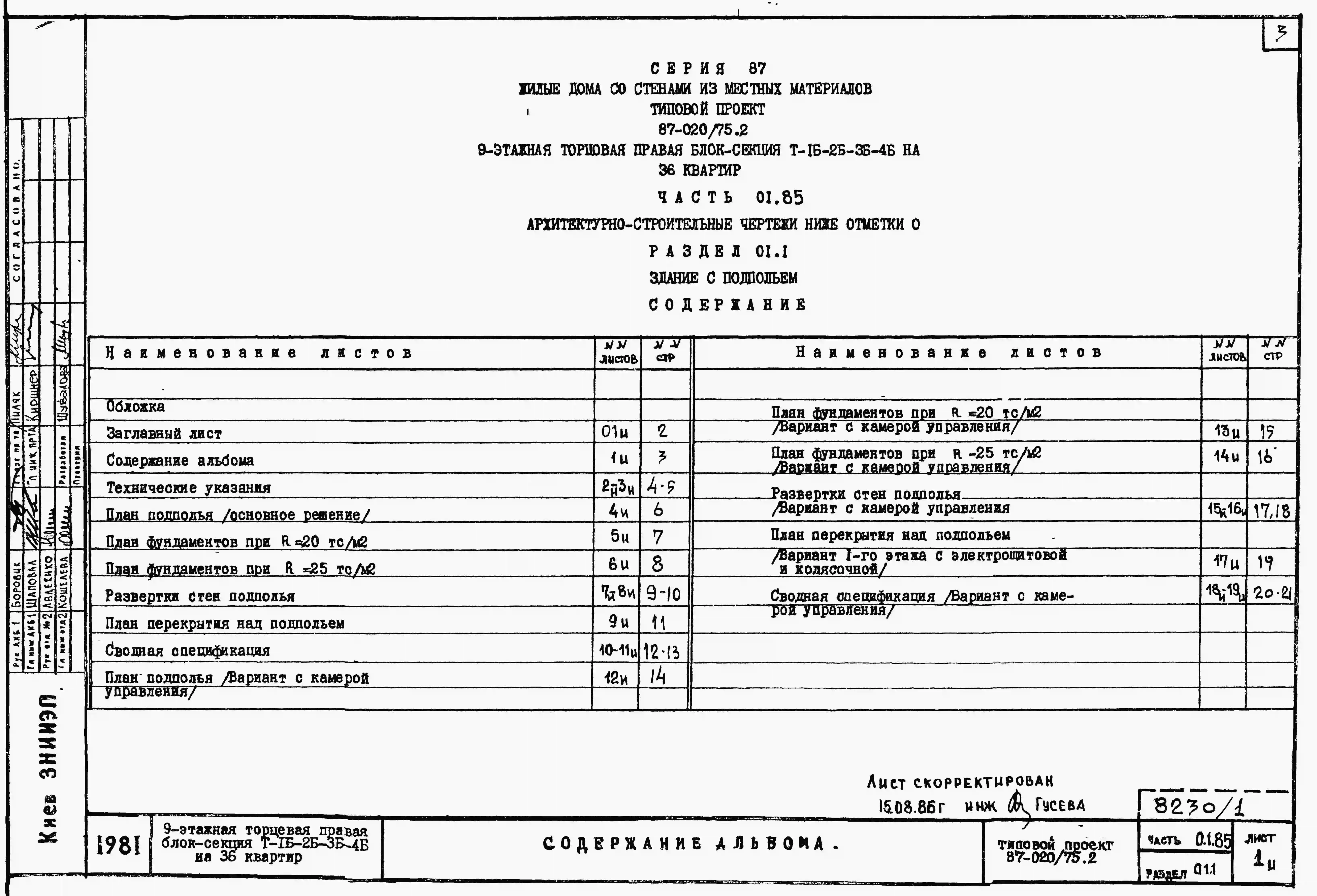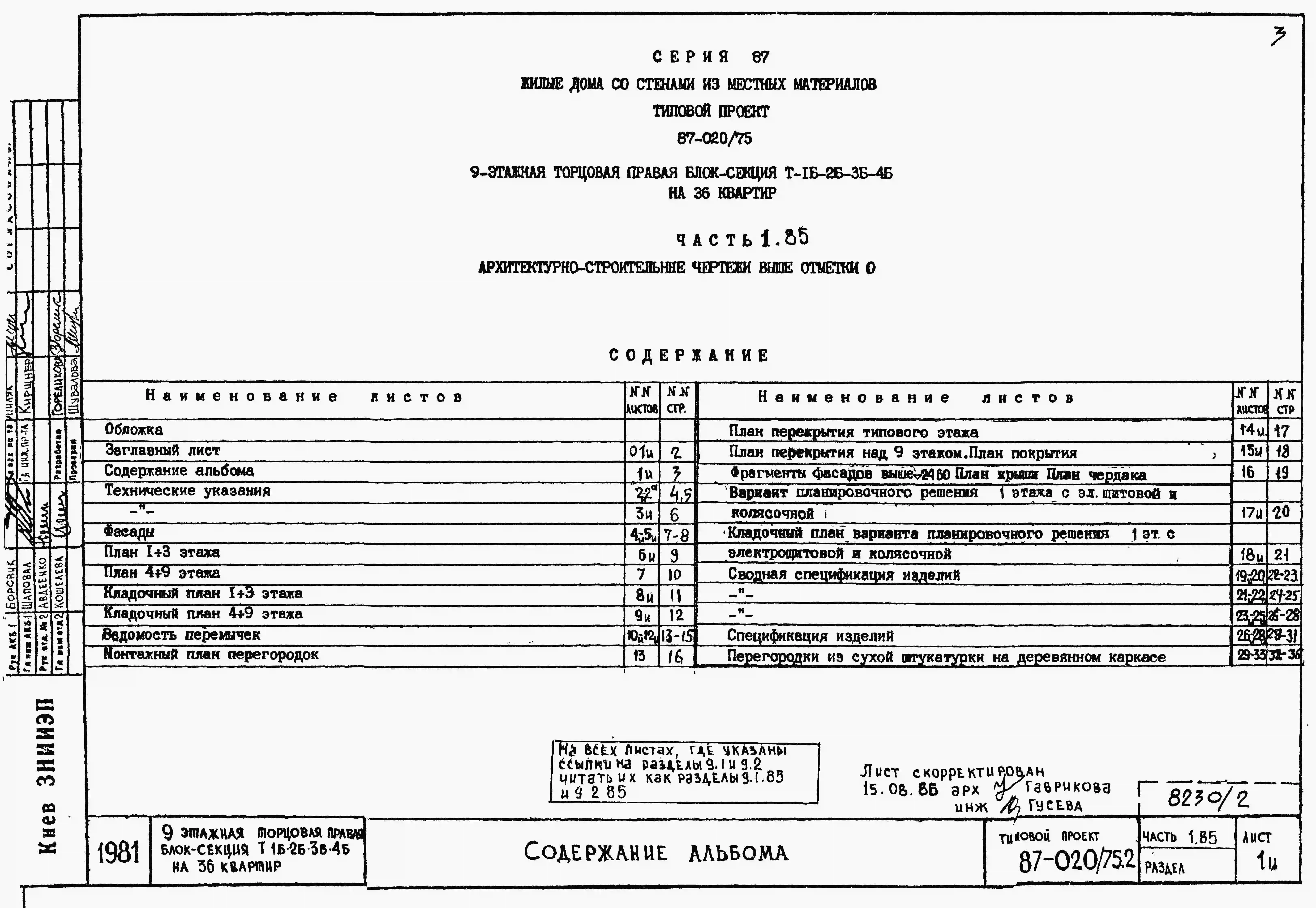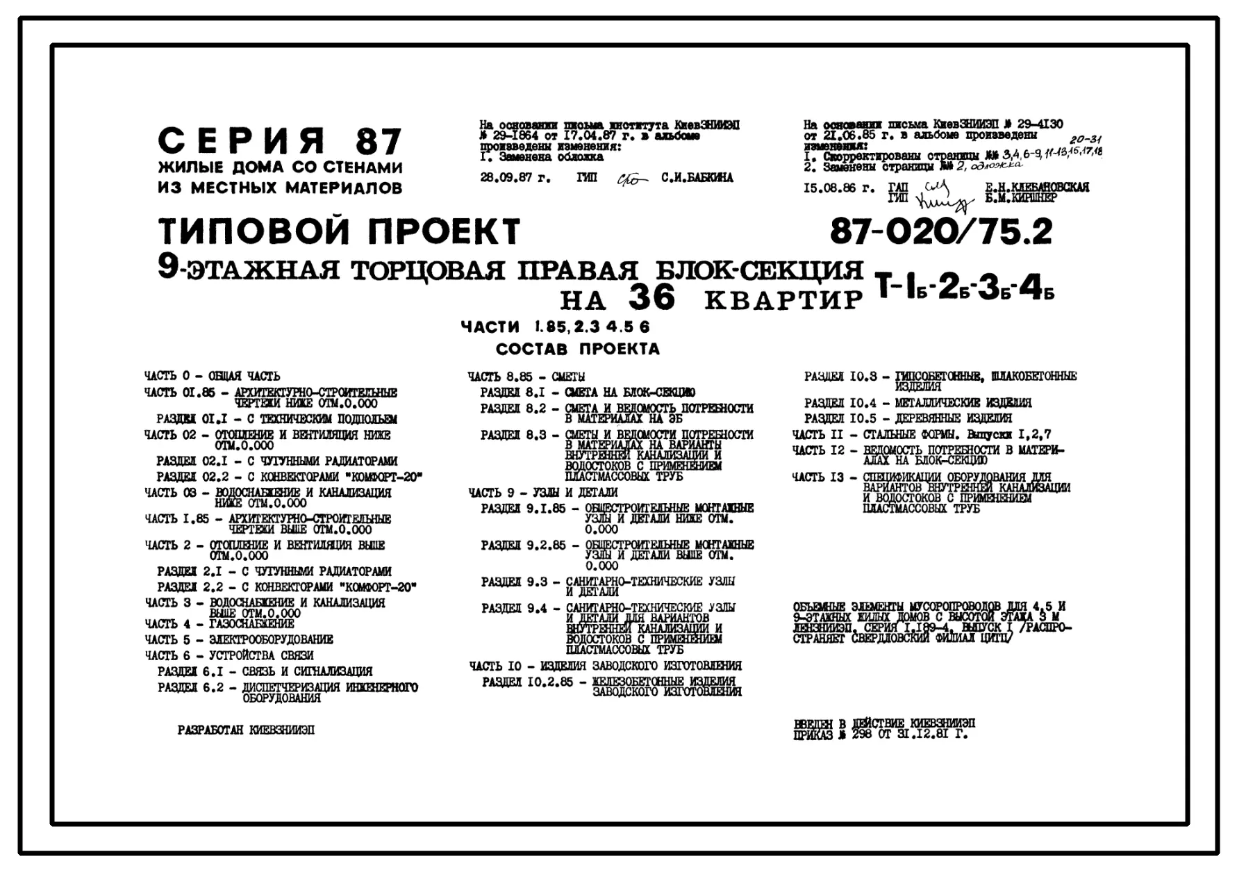 Типовой проект 87-020/75.2 9-этажная торцовая правая блок-секция Р-1Б-2Б-3Б-4Б на 36 квартир. Паспорт проекта (формат PDF) Чертежи (формат TIF)