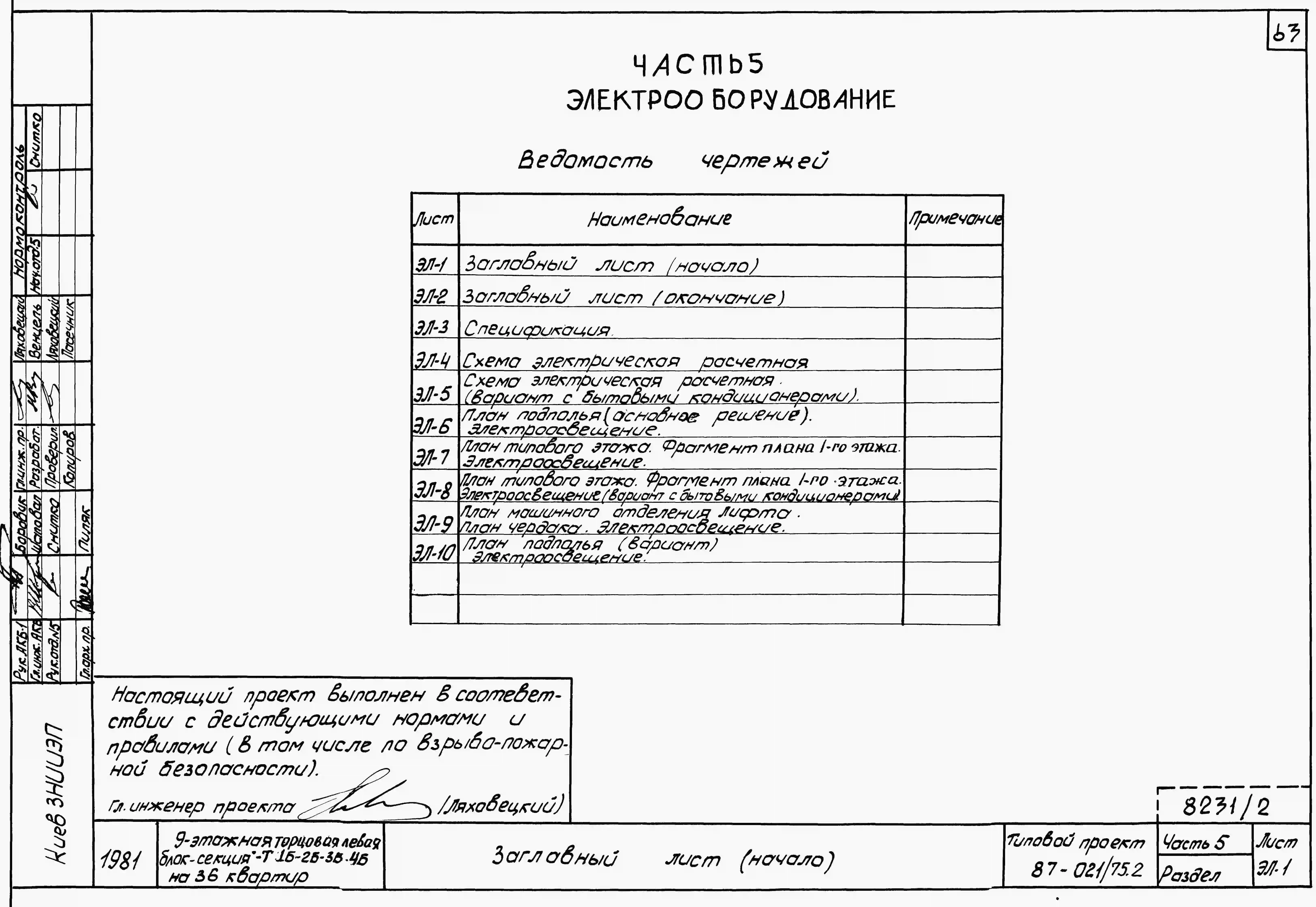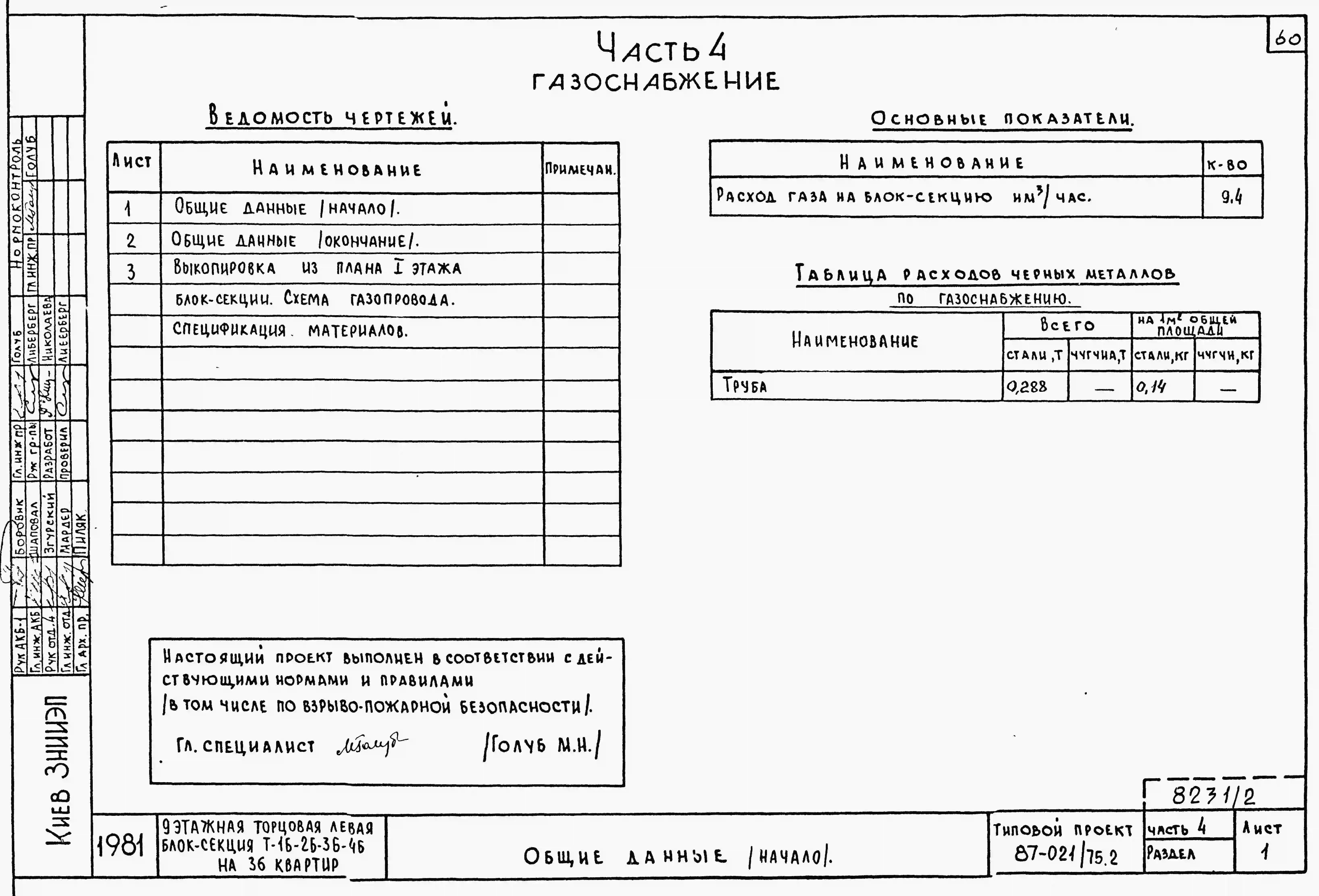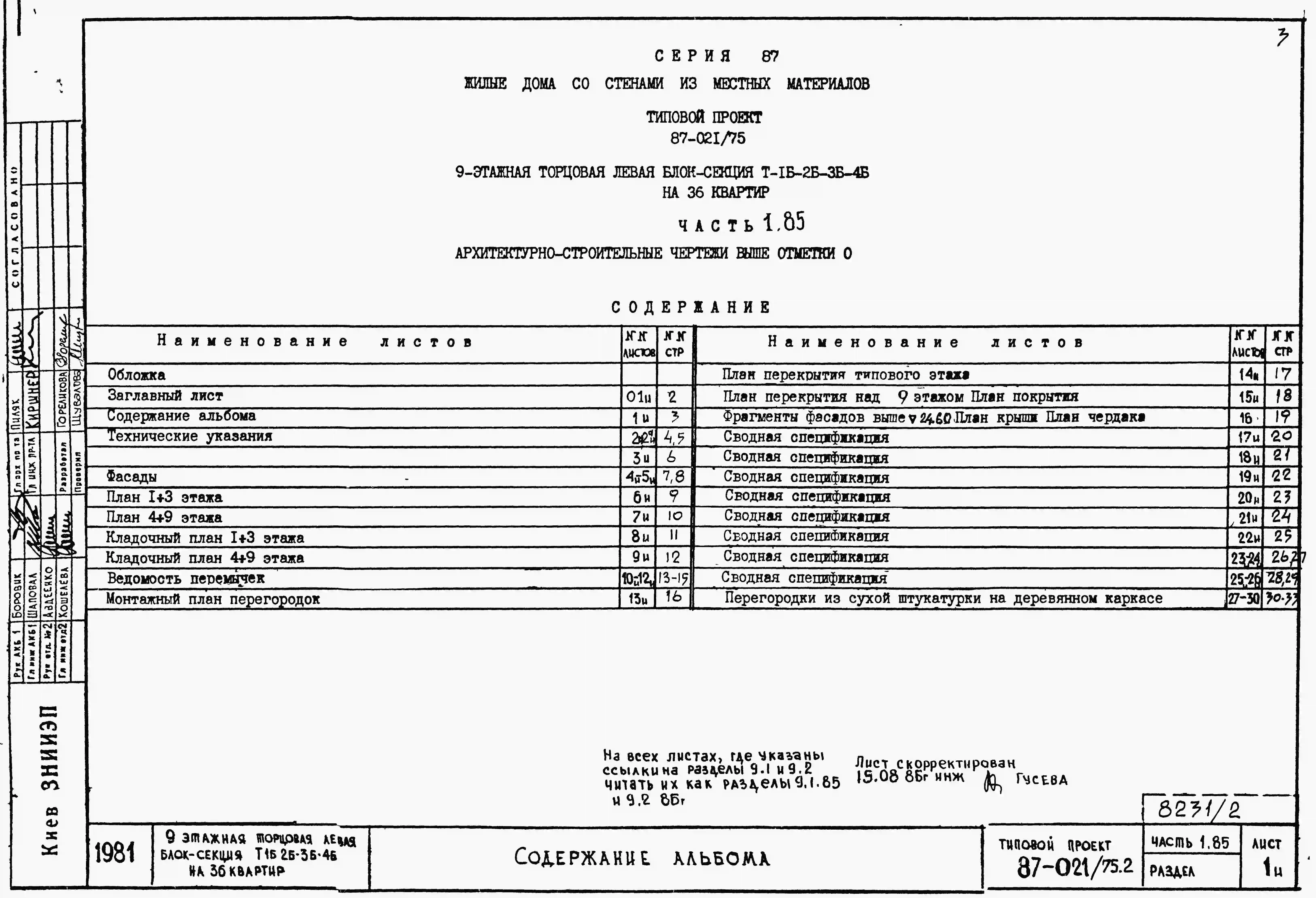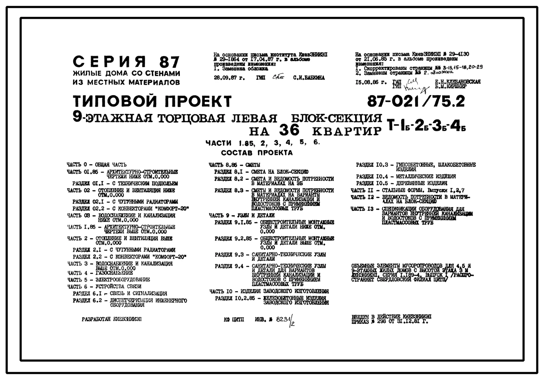 Типовой проект 87-021/75.2 9-этажная торцовая левая блок-секция Р-1Б-2Б-3Б-4Б на 36 квартир. Паспорт проекта (формат PDF) Чертежи (формат TIF)