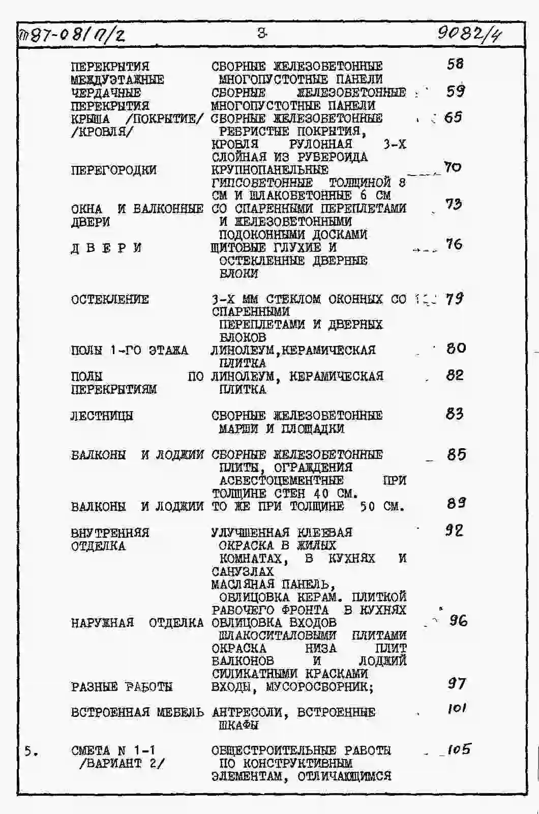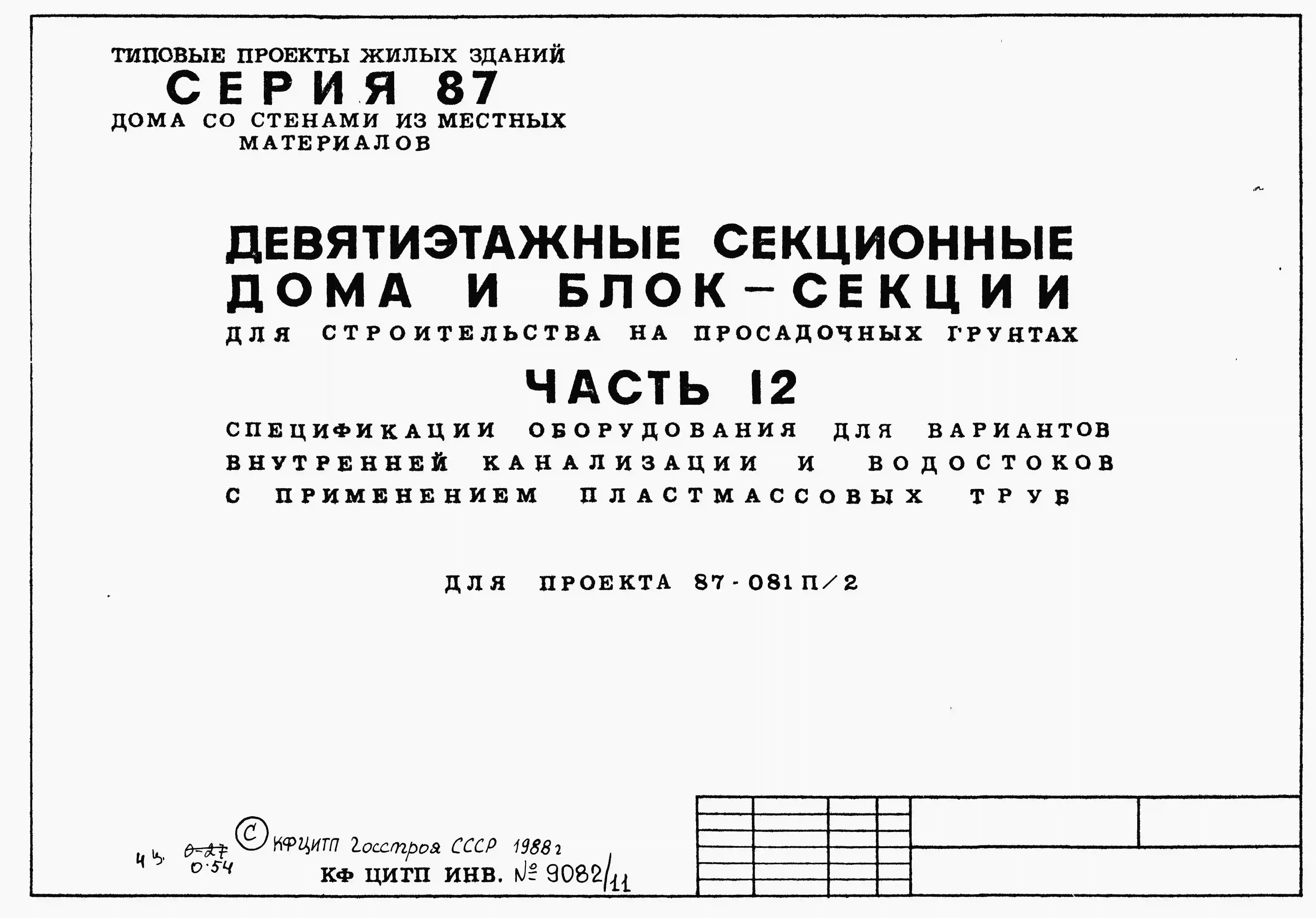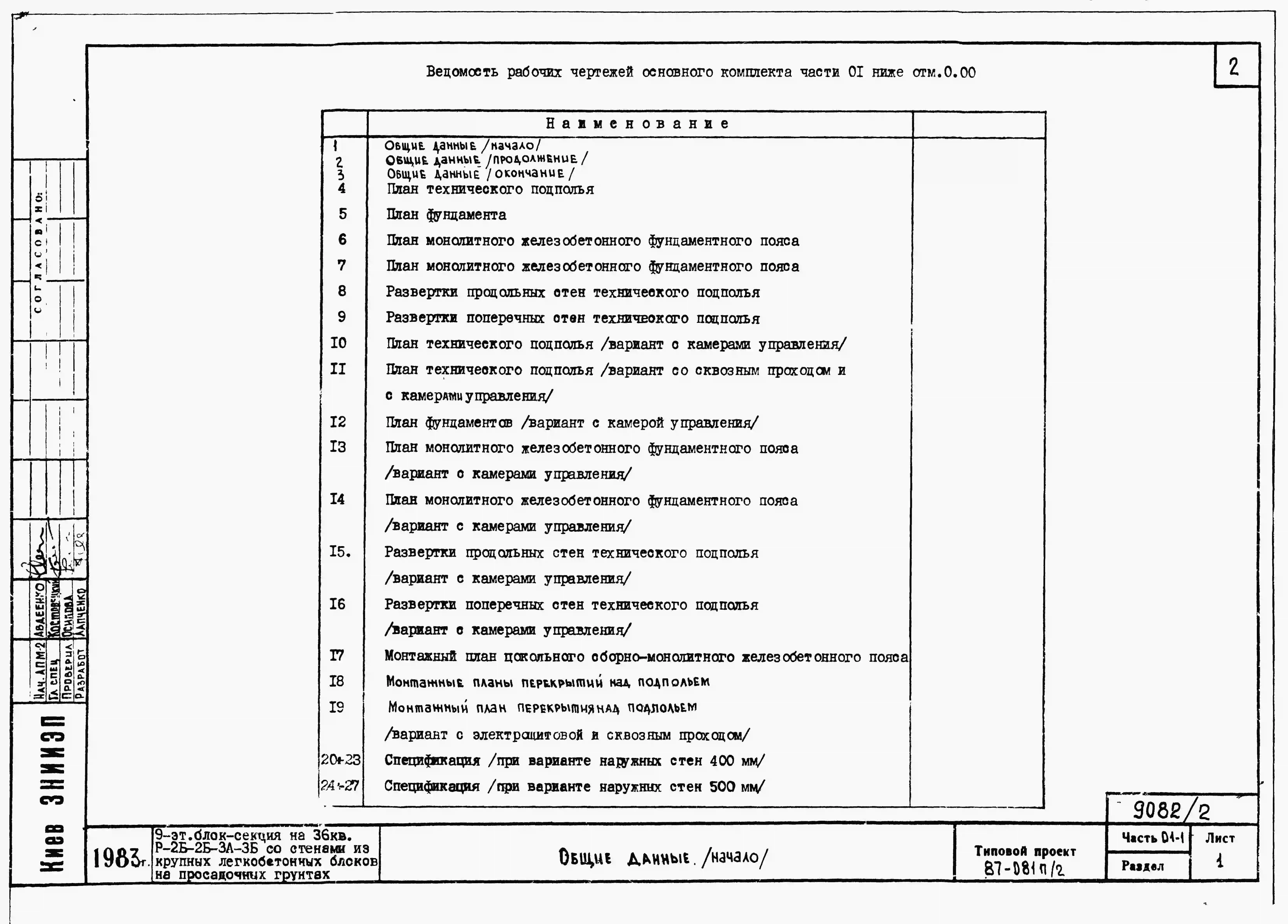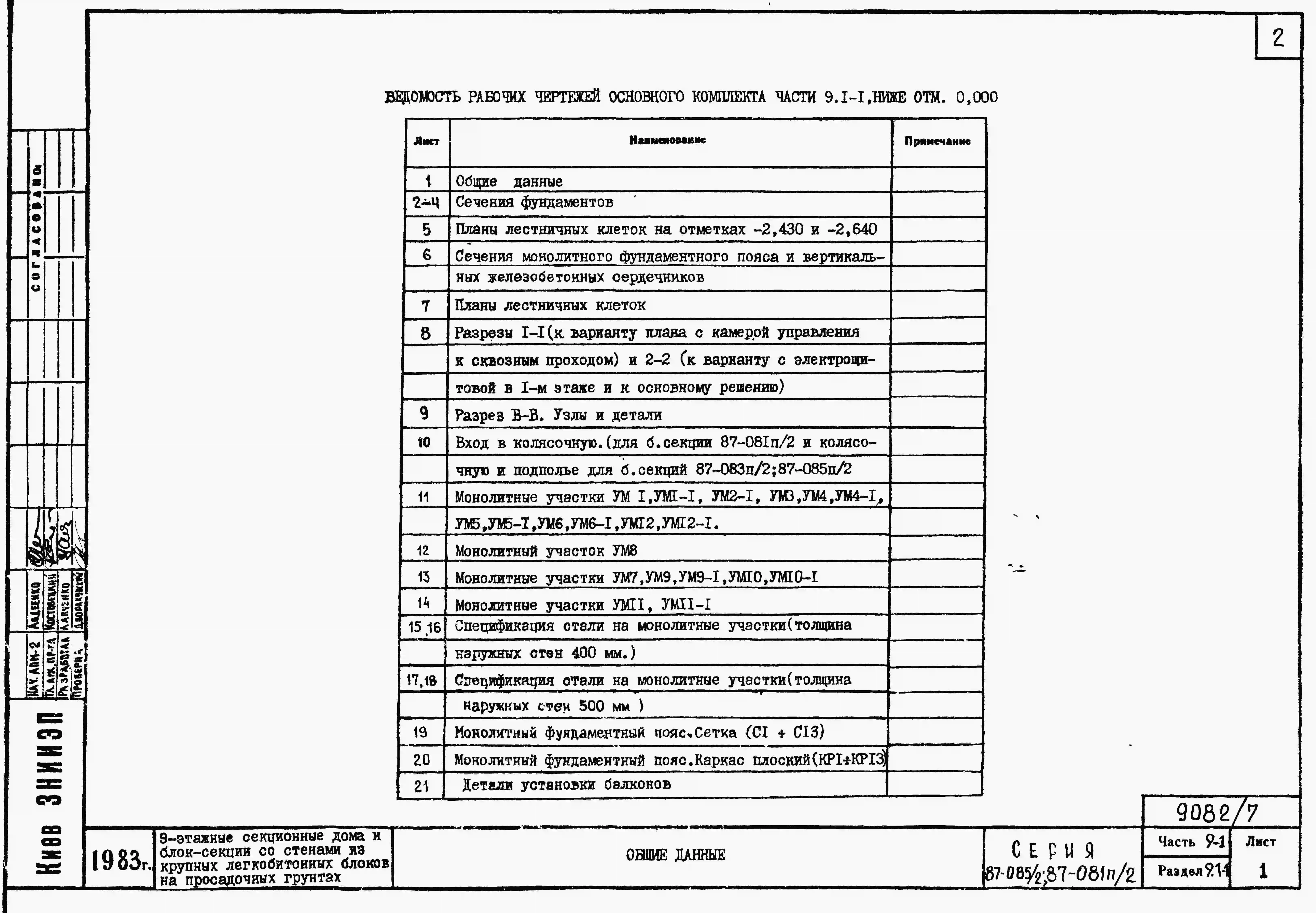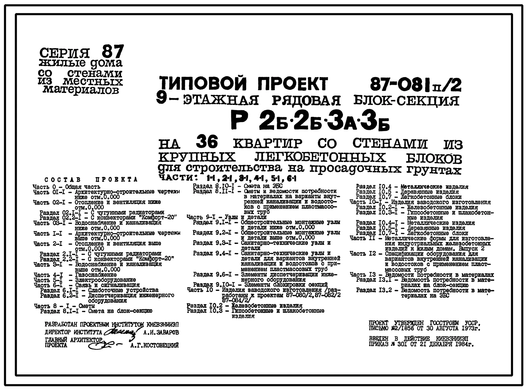 Типовой проект 87-081п/2 Блок-секция рядовая 9-этажная 36-квартирная Р-2Б-2Б-3А-3Б со стенами из крупных легкобетонных блоков