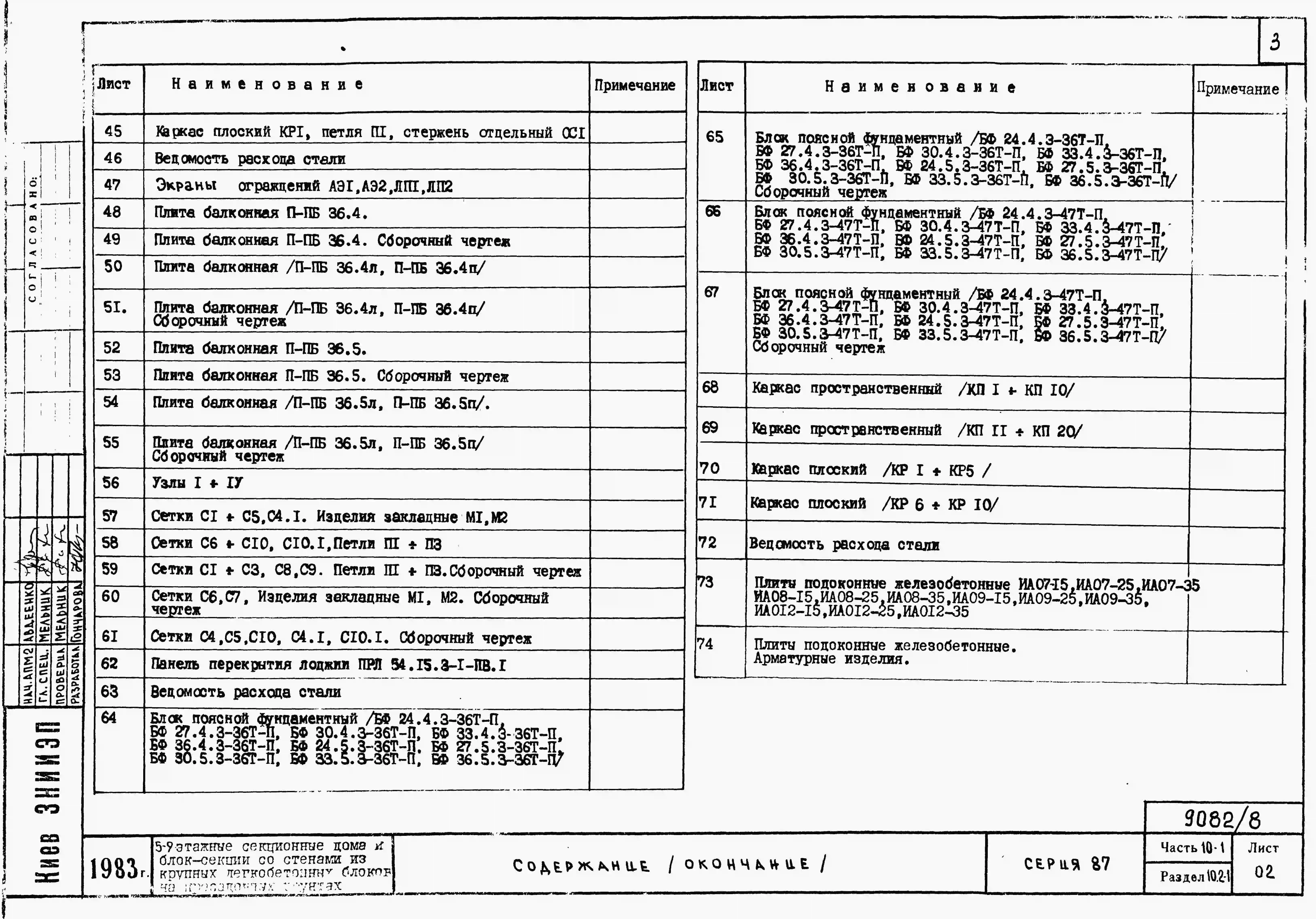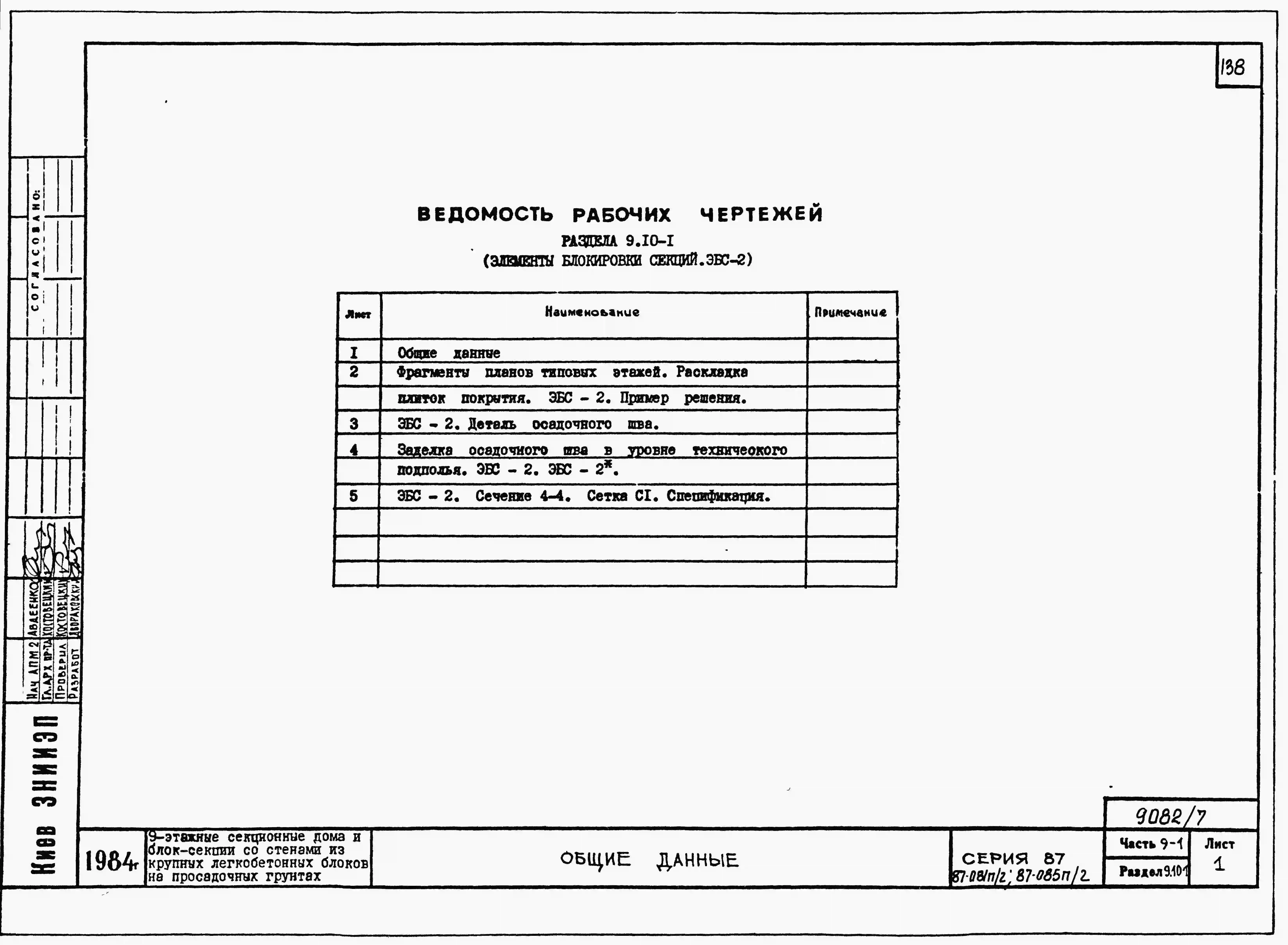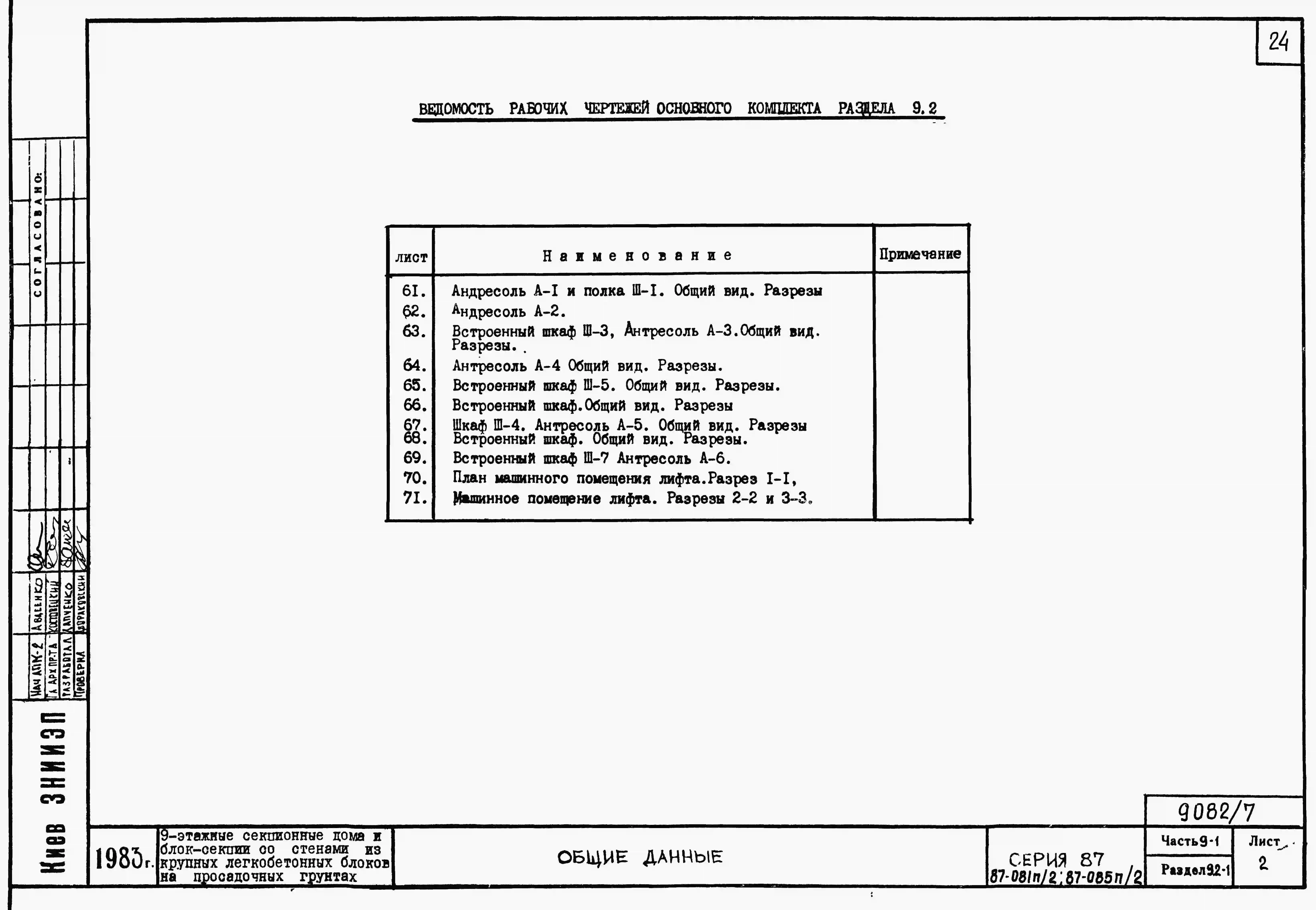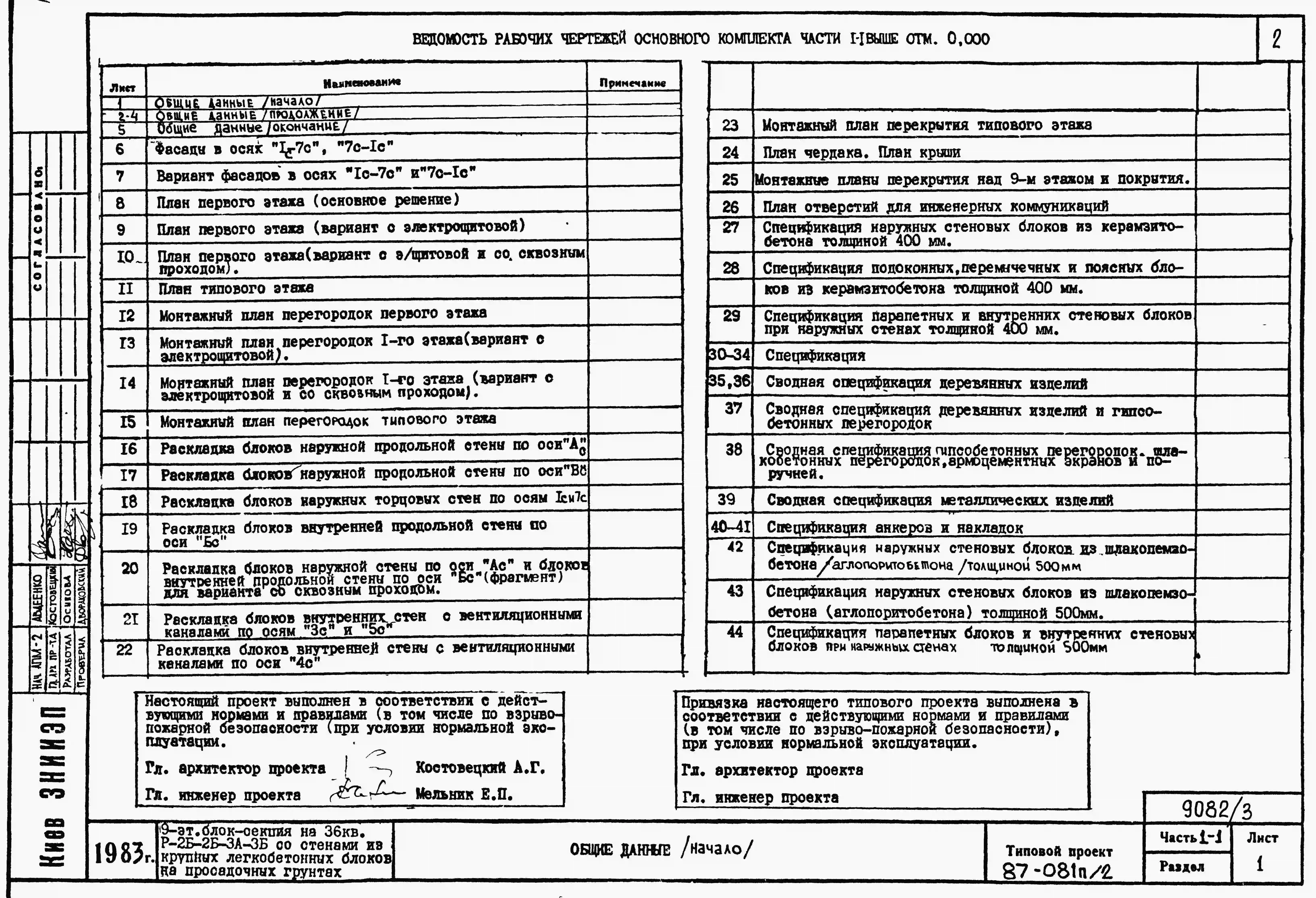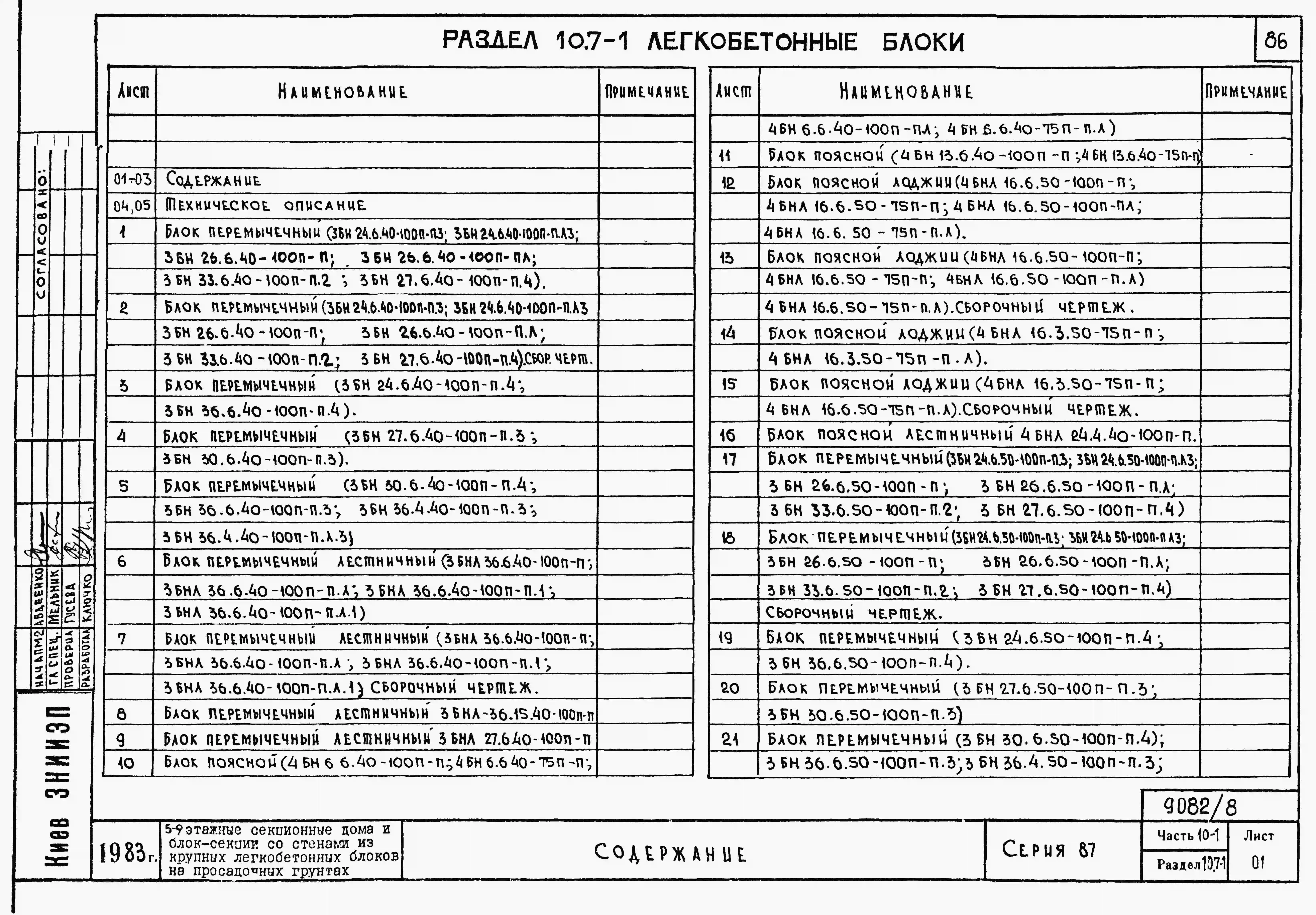 Типовой проект 87-081п/2 Блок-секция рядовая 9-этажная 36-квартирная Р-2Б-2Б-3А-3Б со стенами из крупных легкобетонных блоков