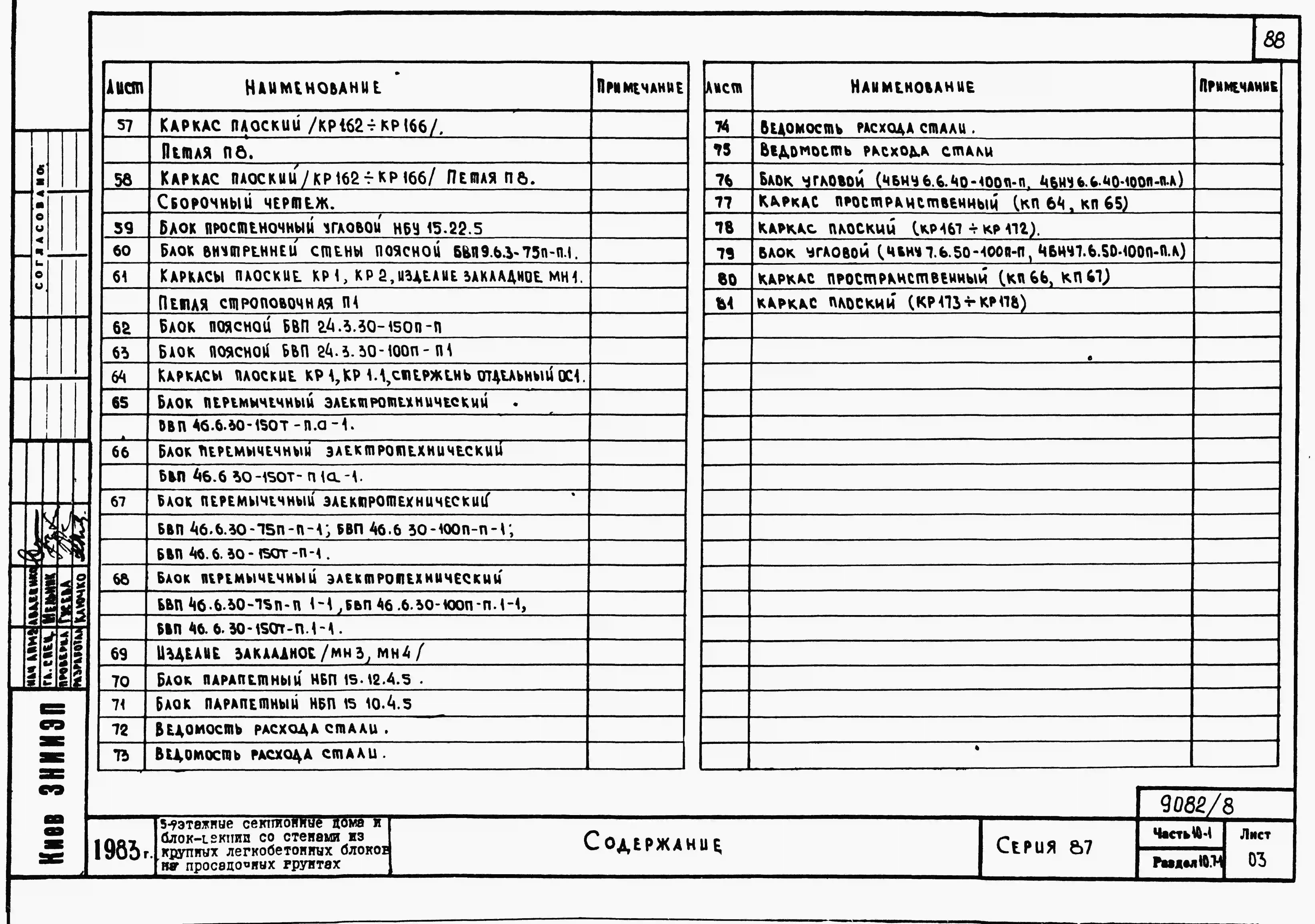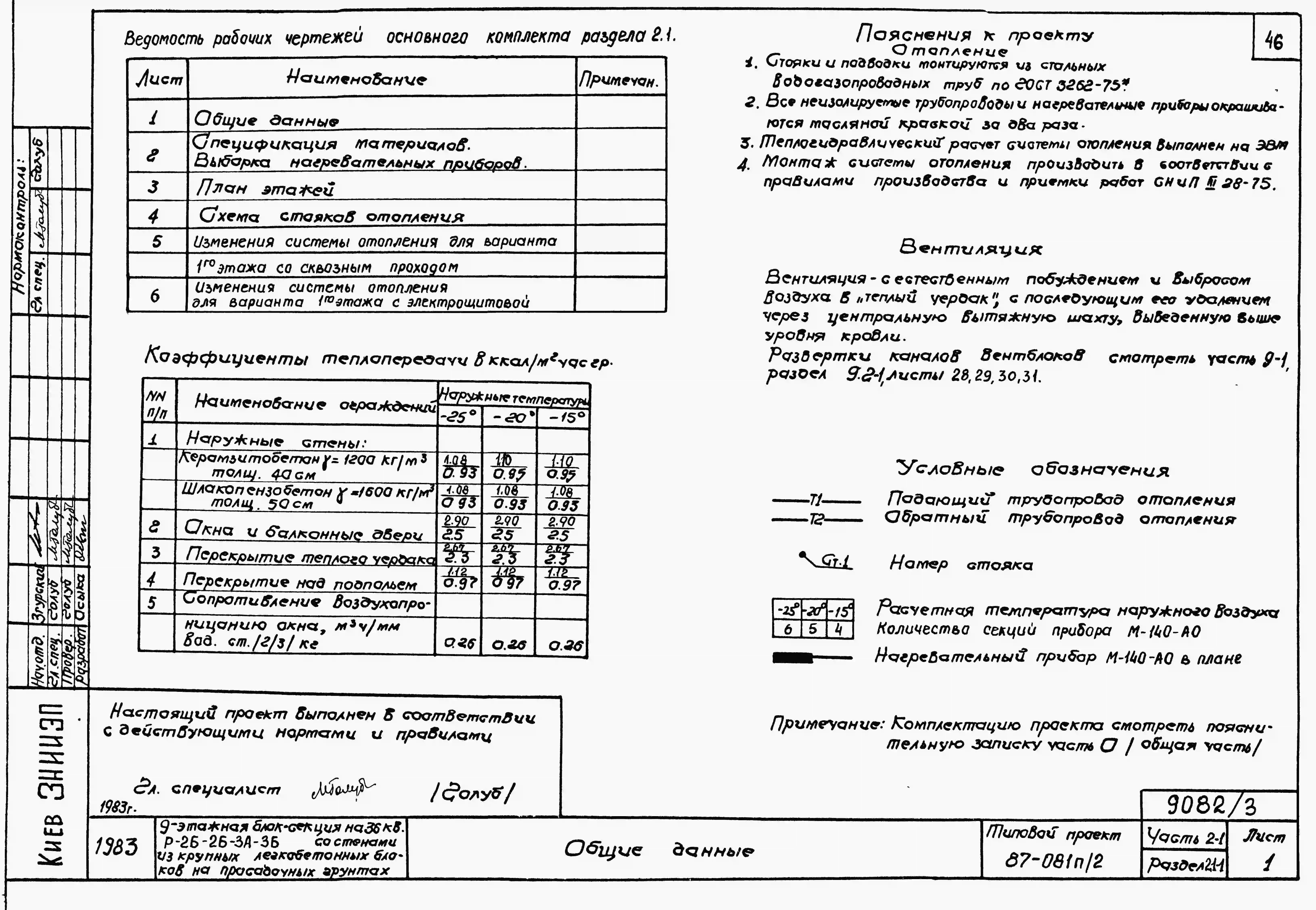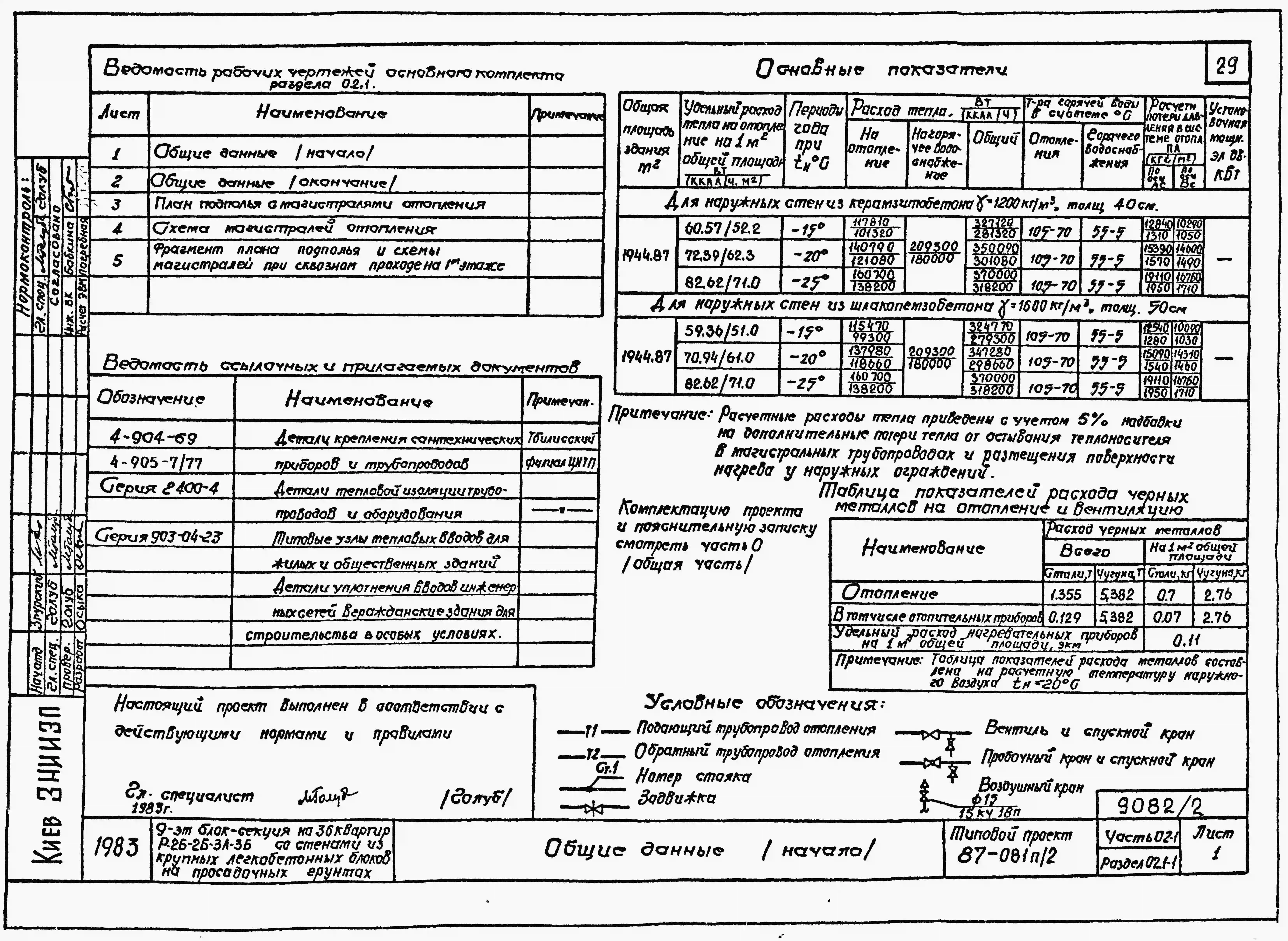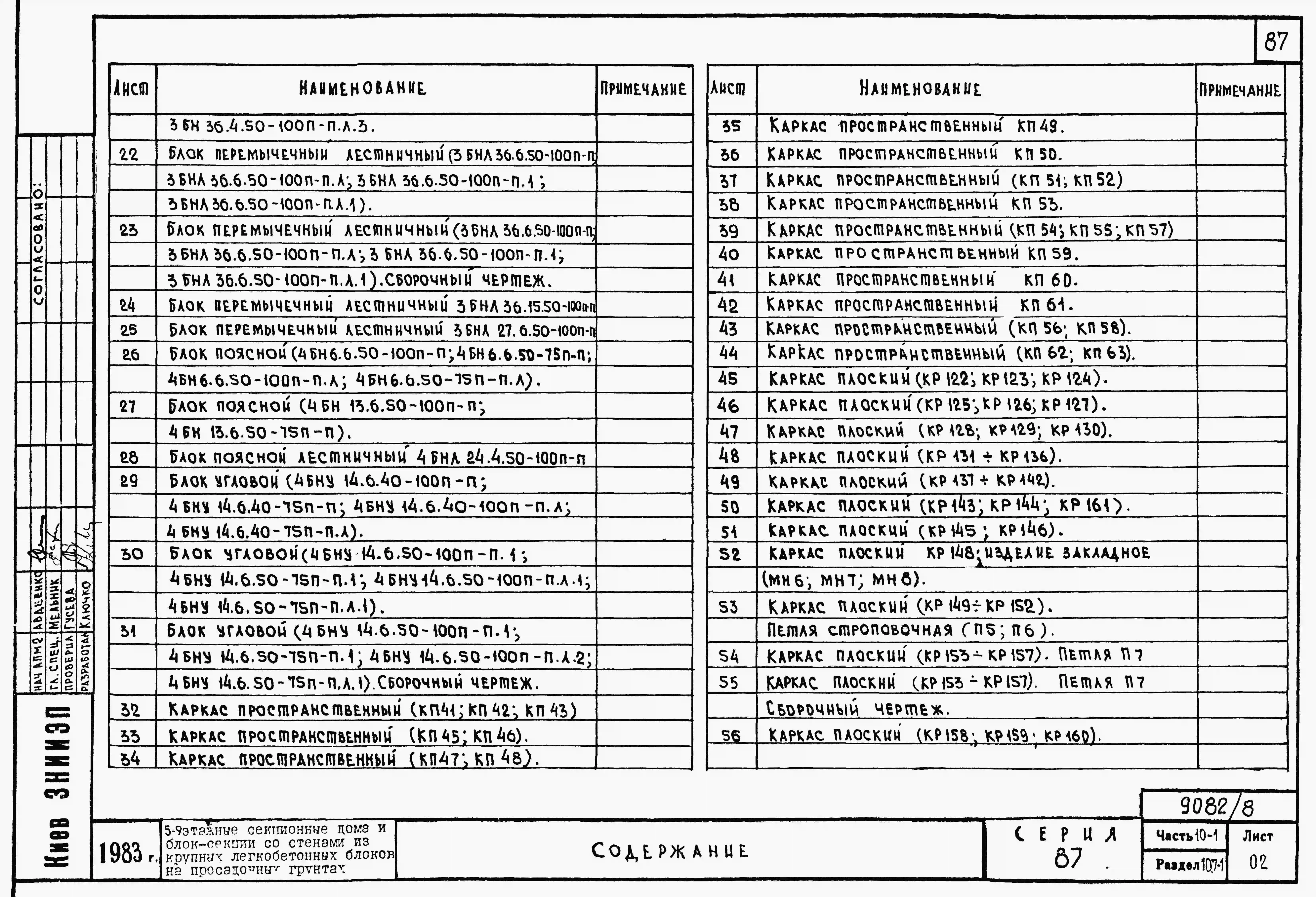 Типовой проект 87-081п/2 Блок-секция рядовая 9-этажная 36-квартирная Р-2Б-2Б-3А-3Б со стенами из крупных легкобетонных блоков