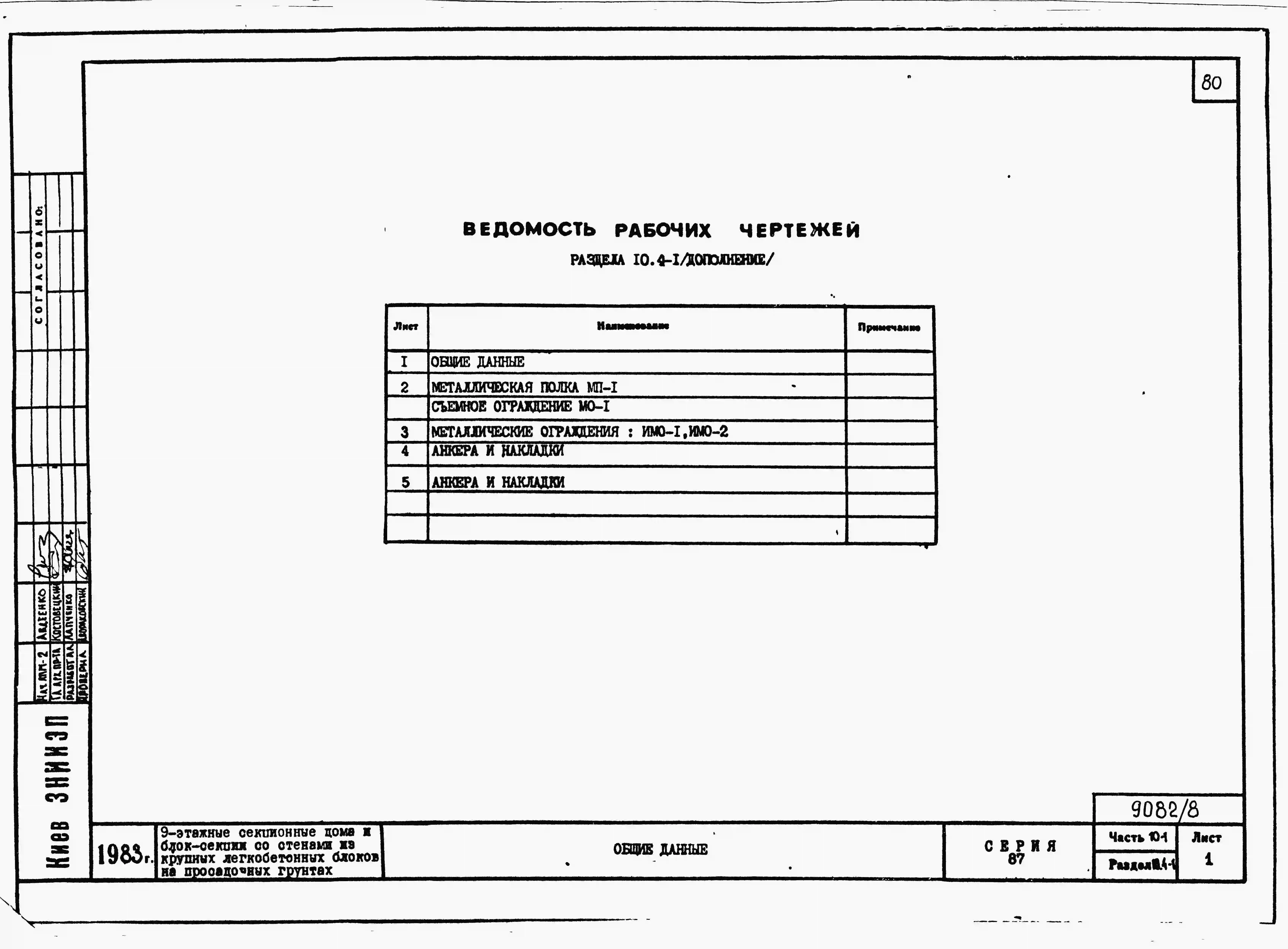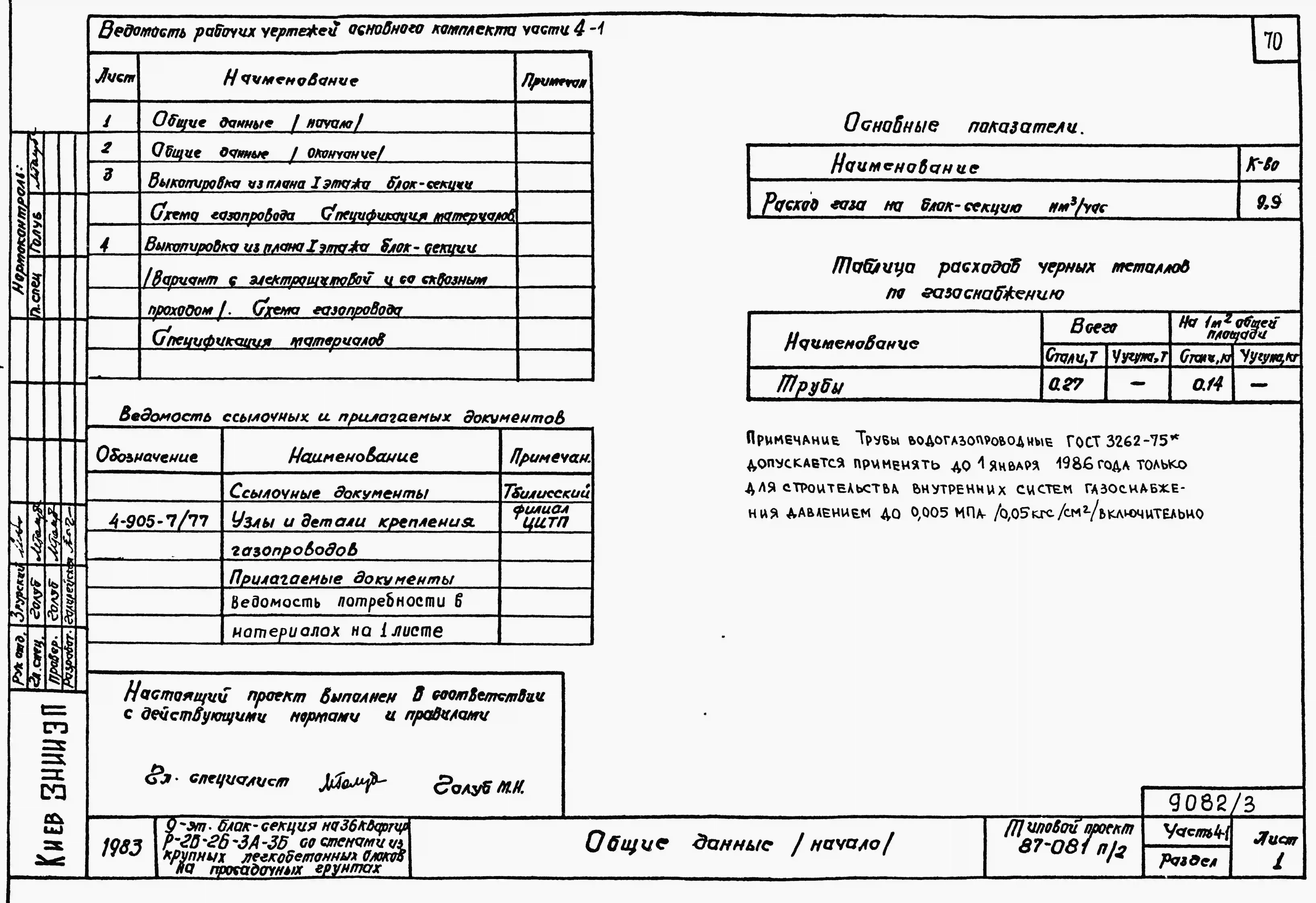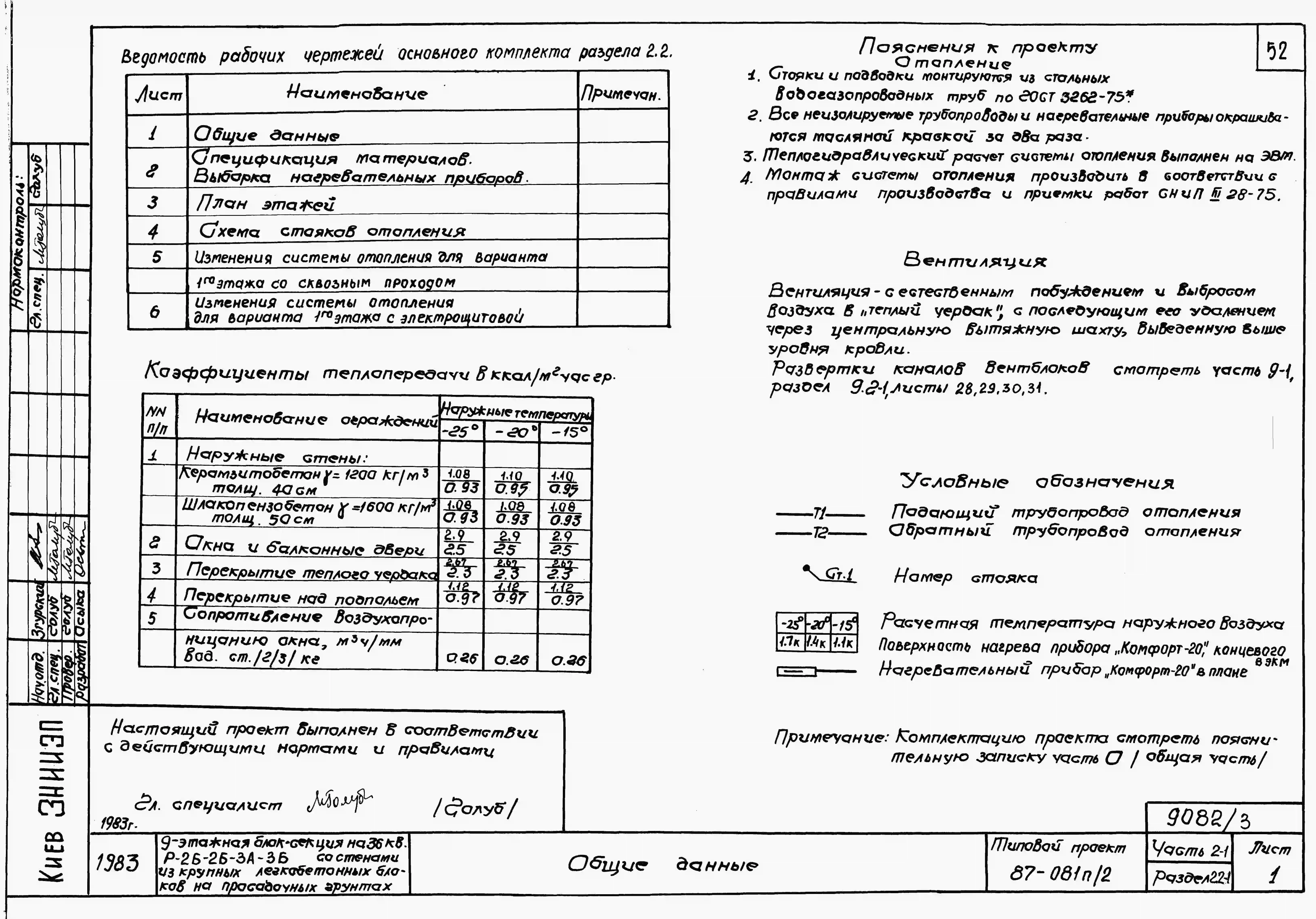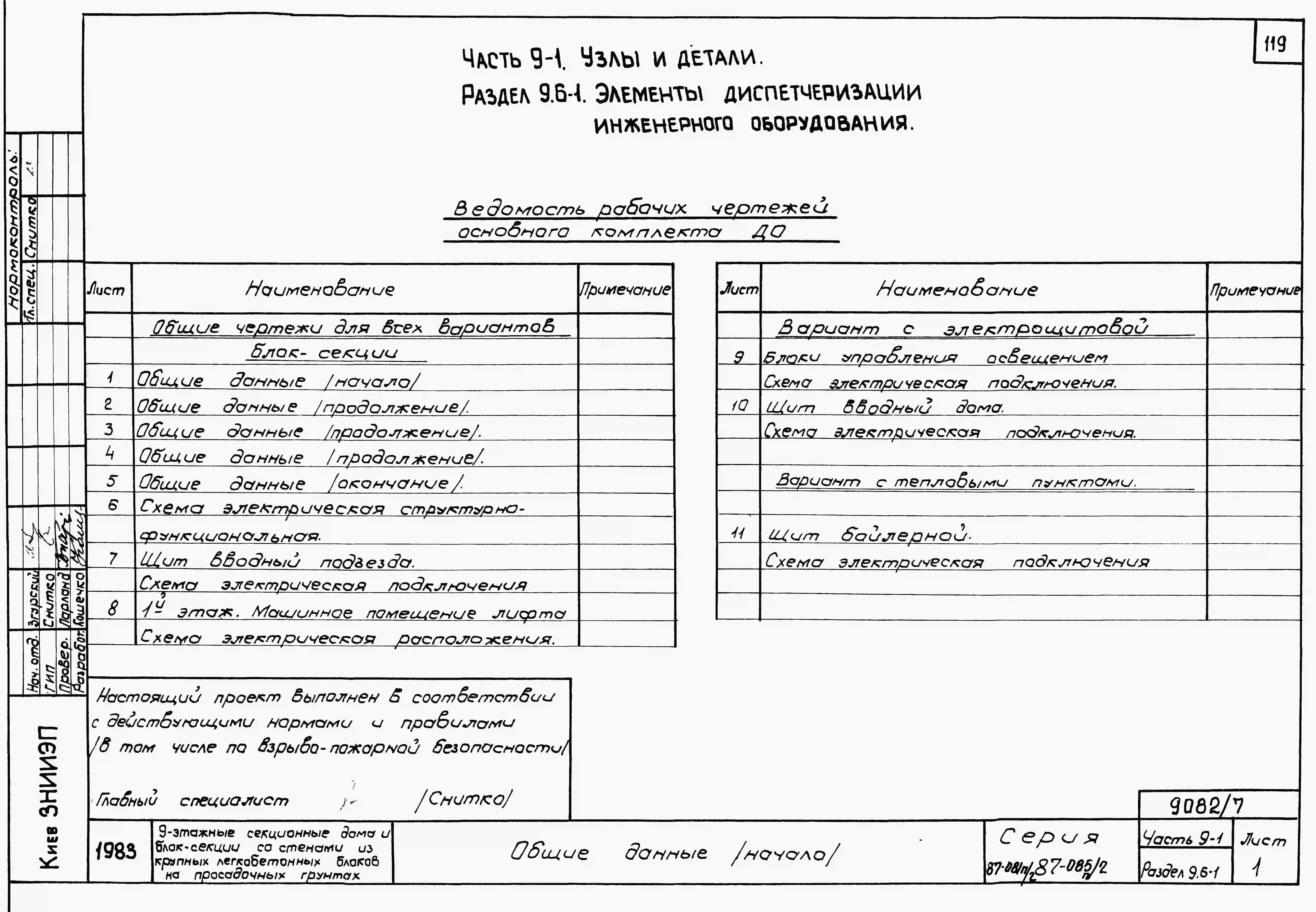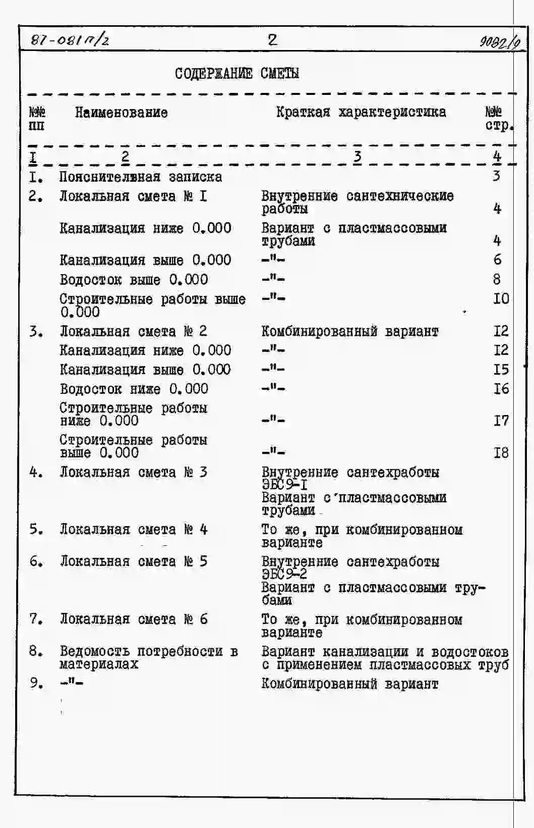 Типовой проект 87-081п/2 Блок-секция рядовая 9-этажная 36-квартирная Р-2Б-2Б-3А-3Б со стенами из крупных легкобетонных блоков