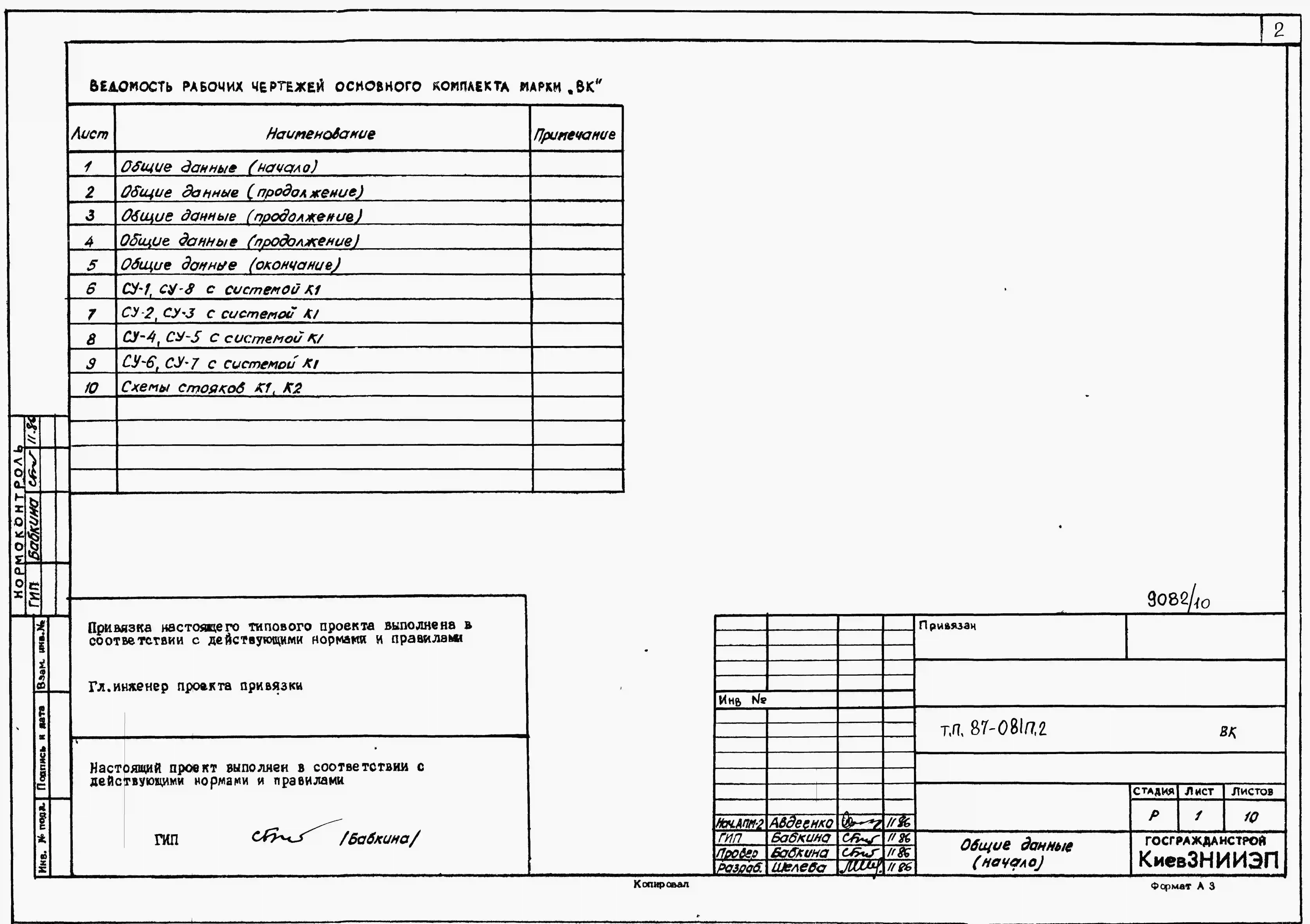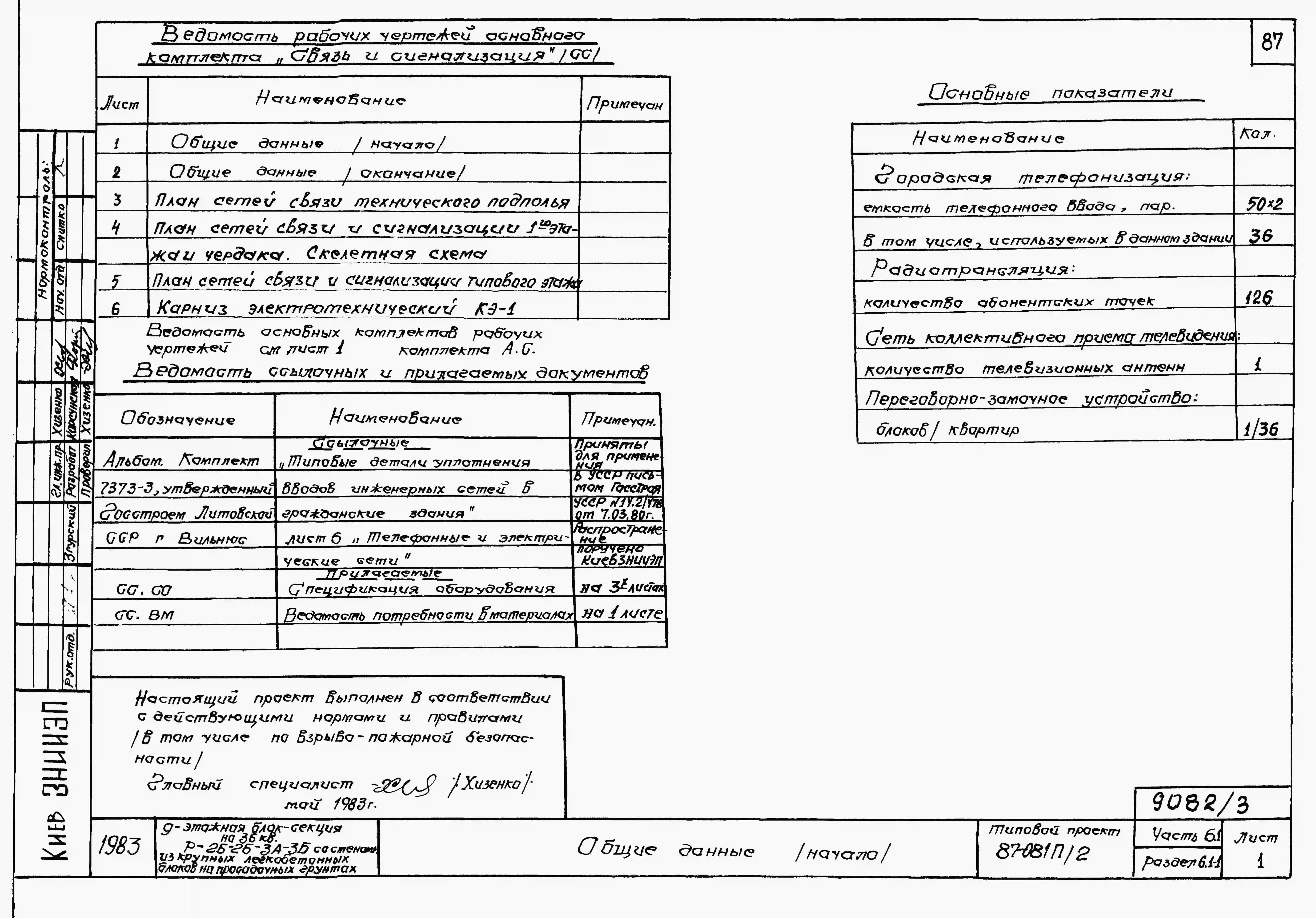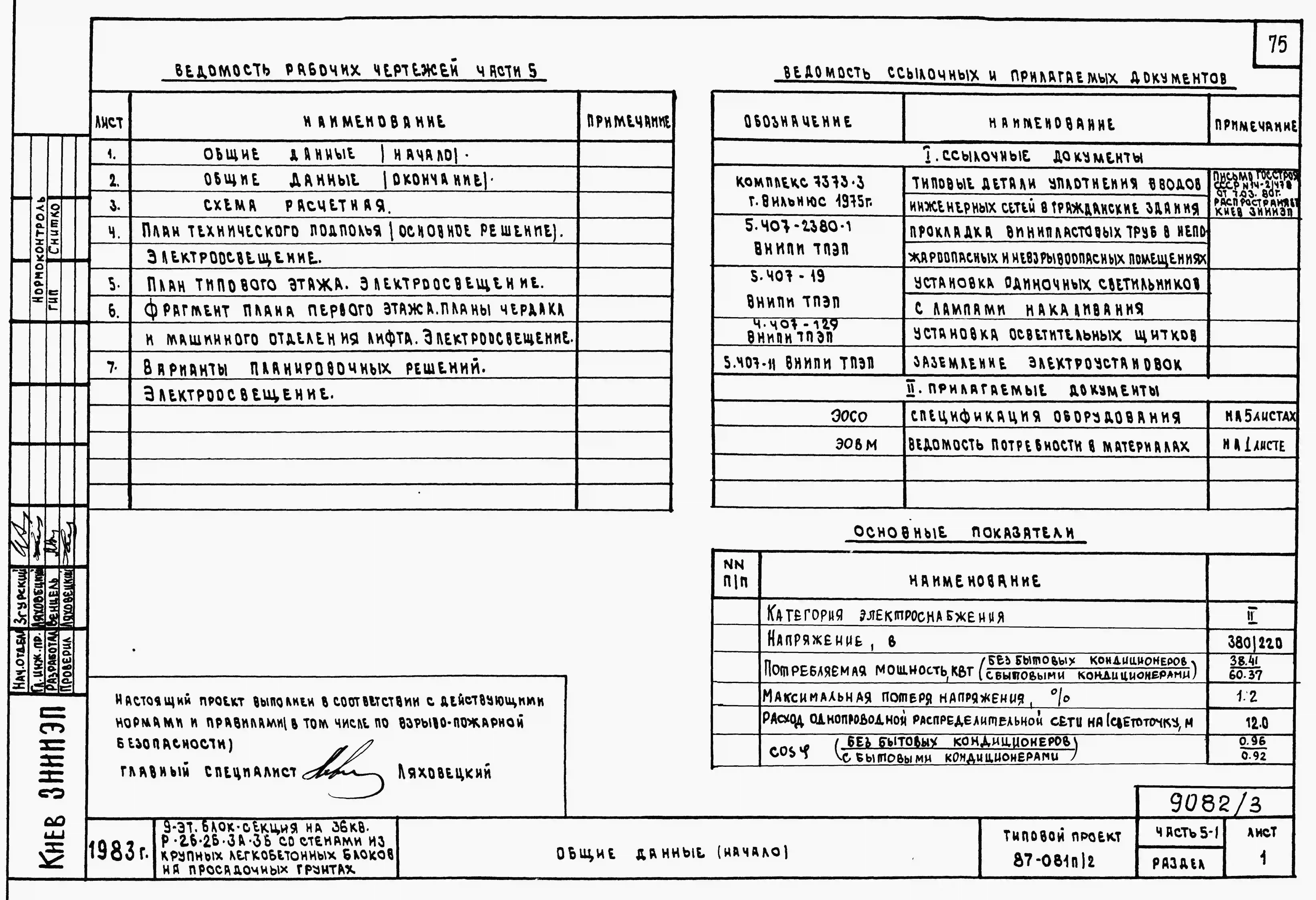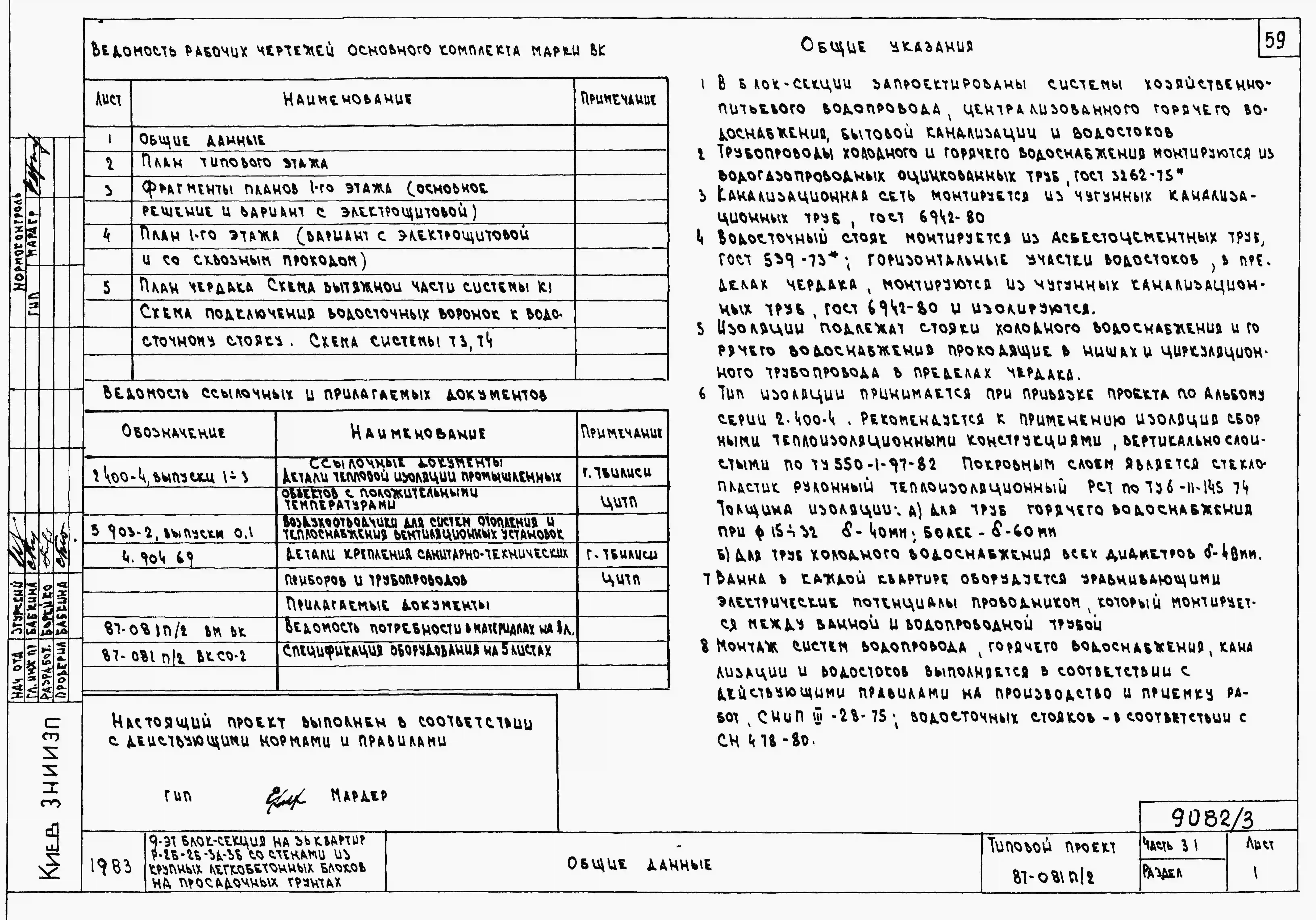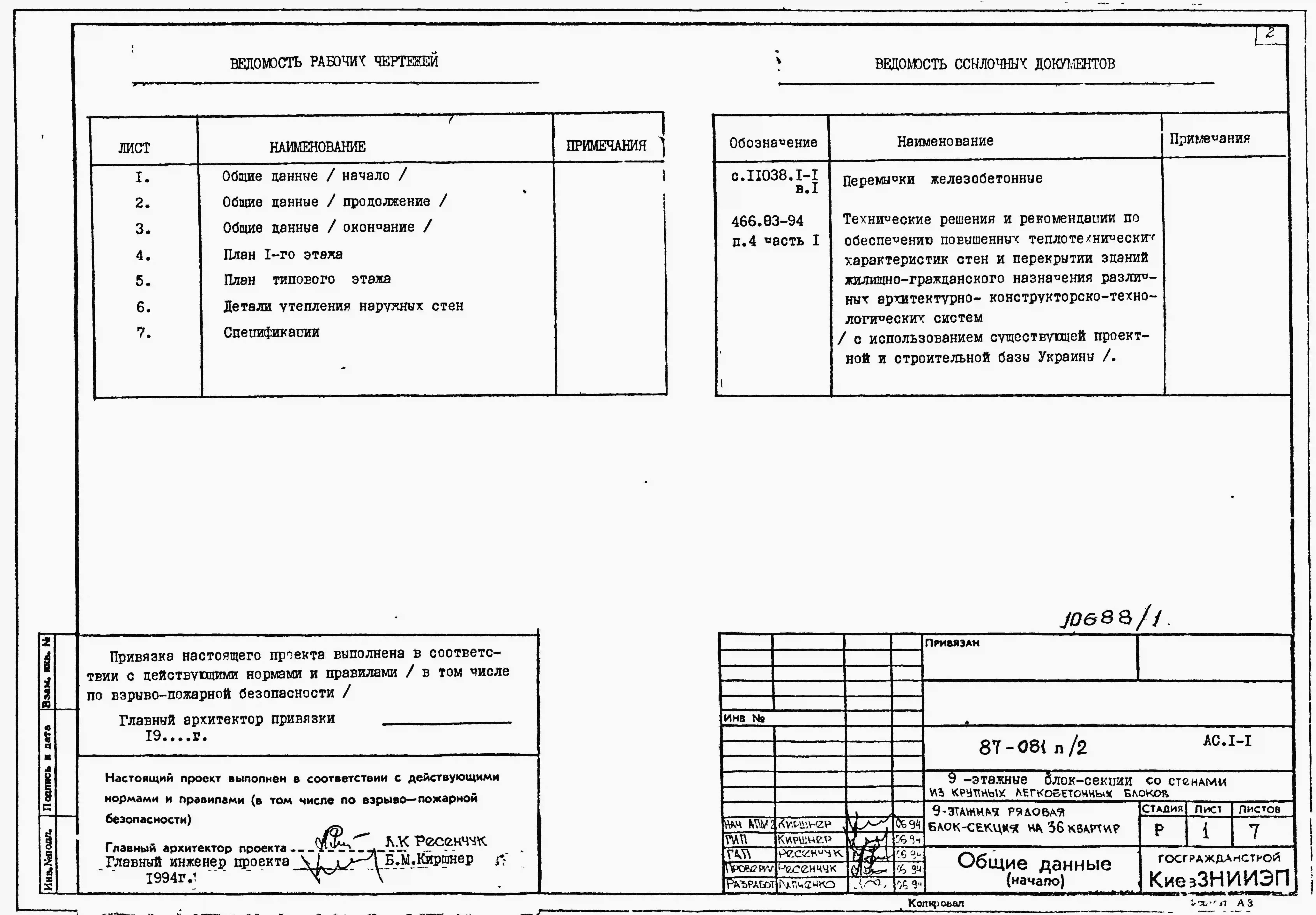 Типовой проект 87-081п/2 Блок-секция рядовая 9-этажная 36-квартирная Р-2Б-2Б-3А-3Б со стенами из крупных легкобетонных блоков