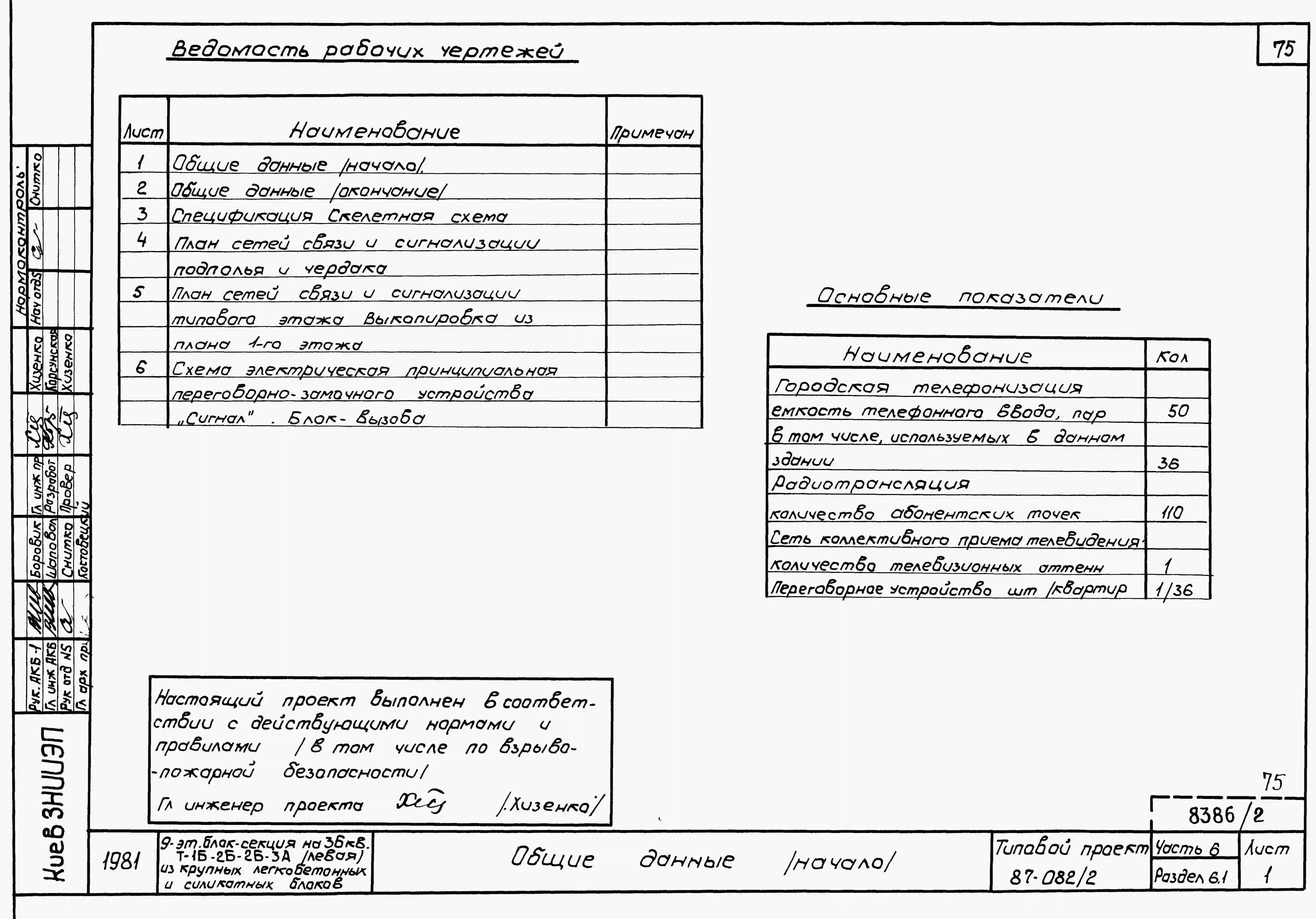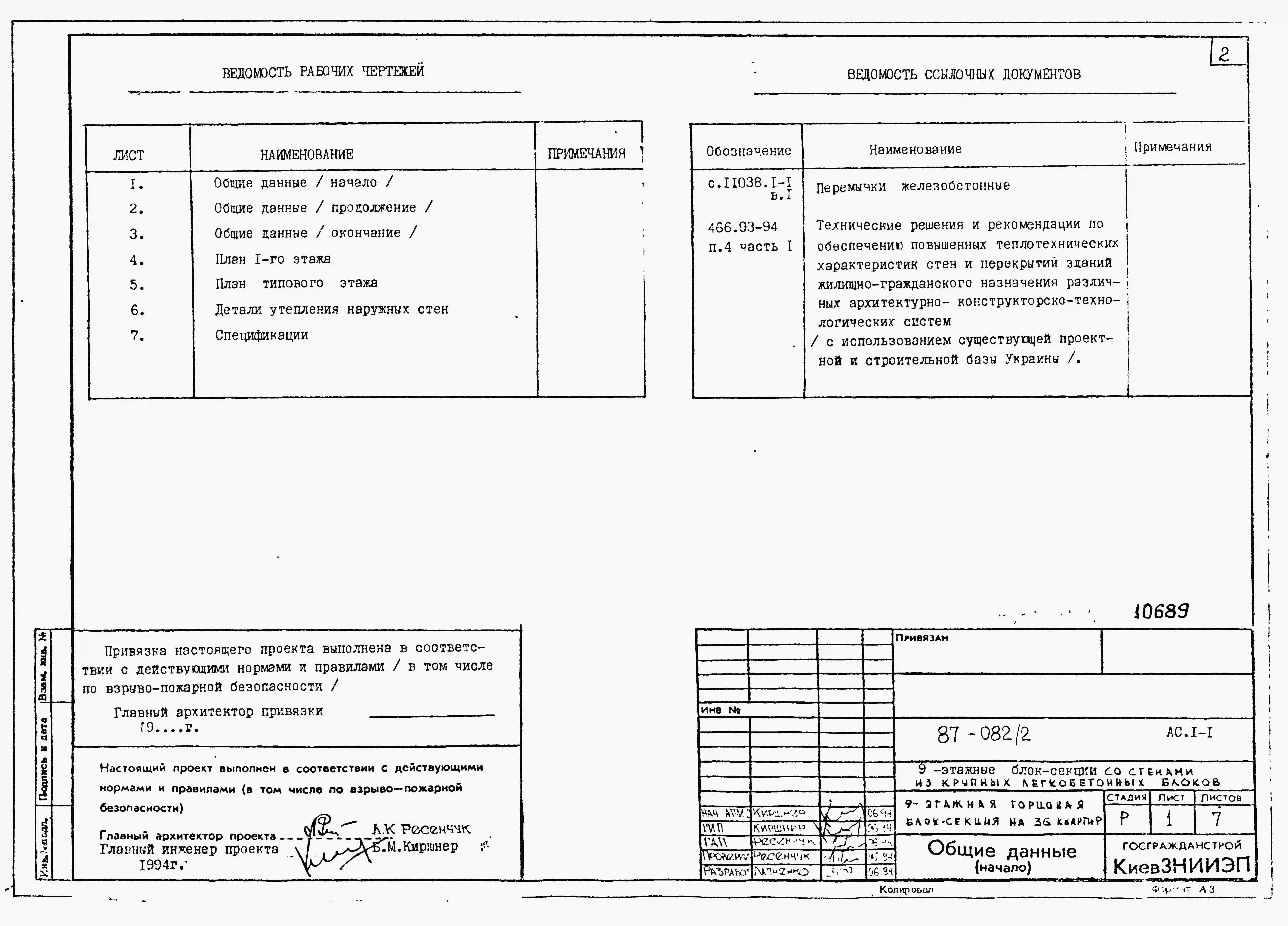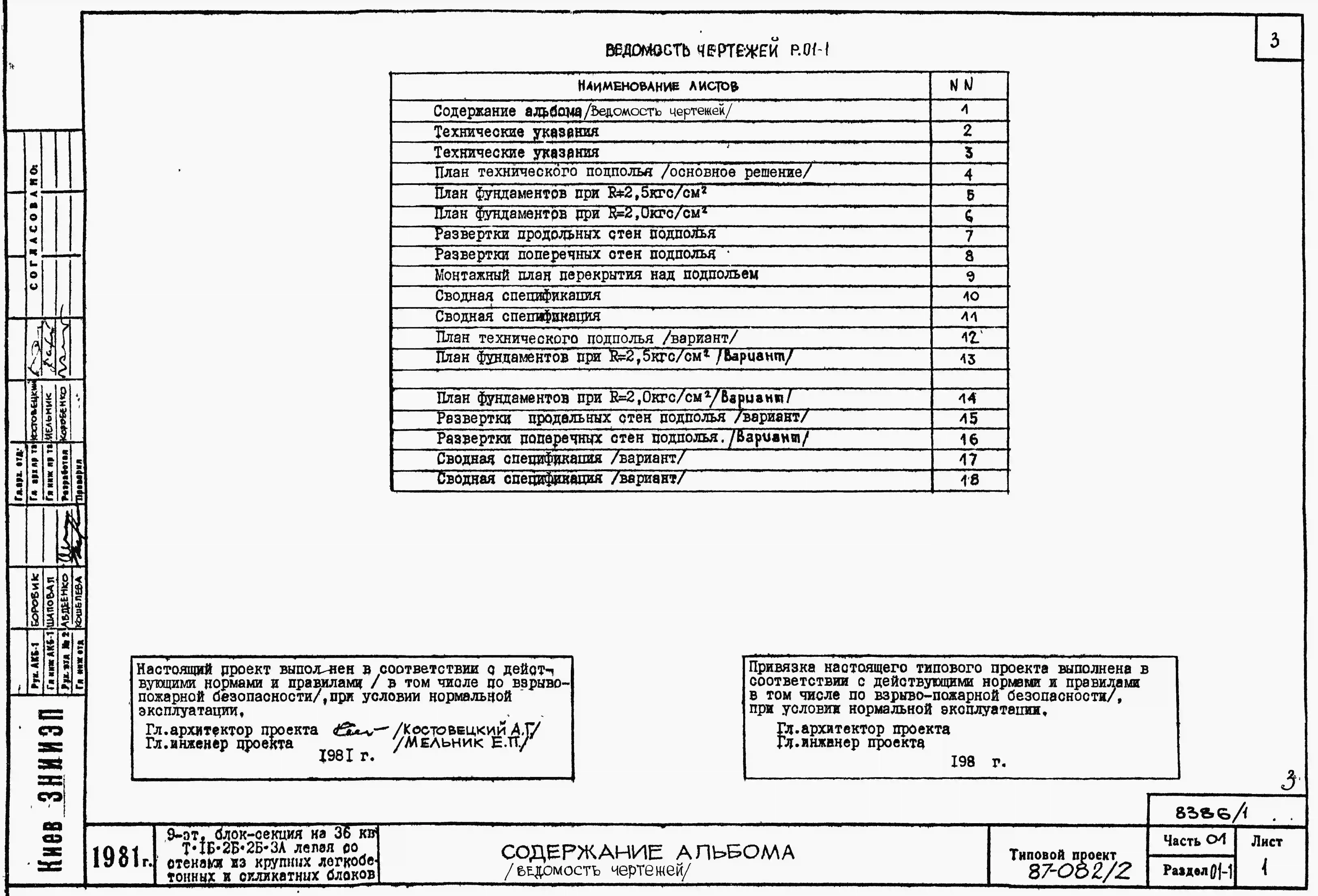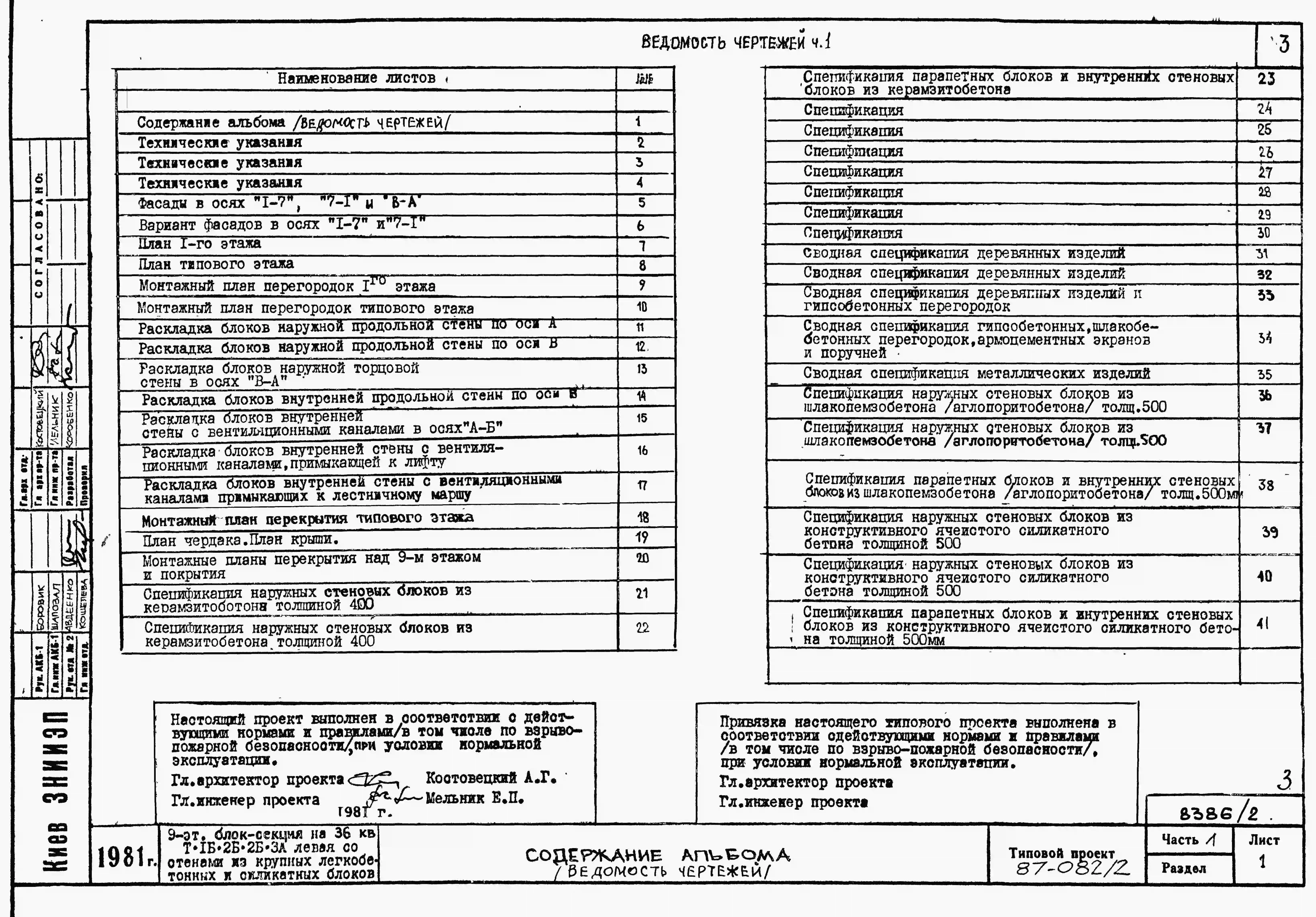 Типовой проект 87-082/2 Девятиэтажная торцовая левая блок-секция на 36 квартир Т-1Б-2Б-2Б-3А. Паспорт проекта (формат PDF) Чертежи (формат TIF)