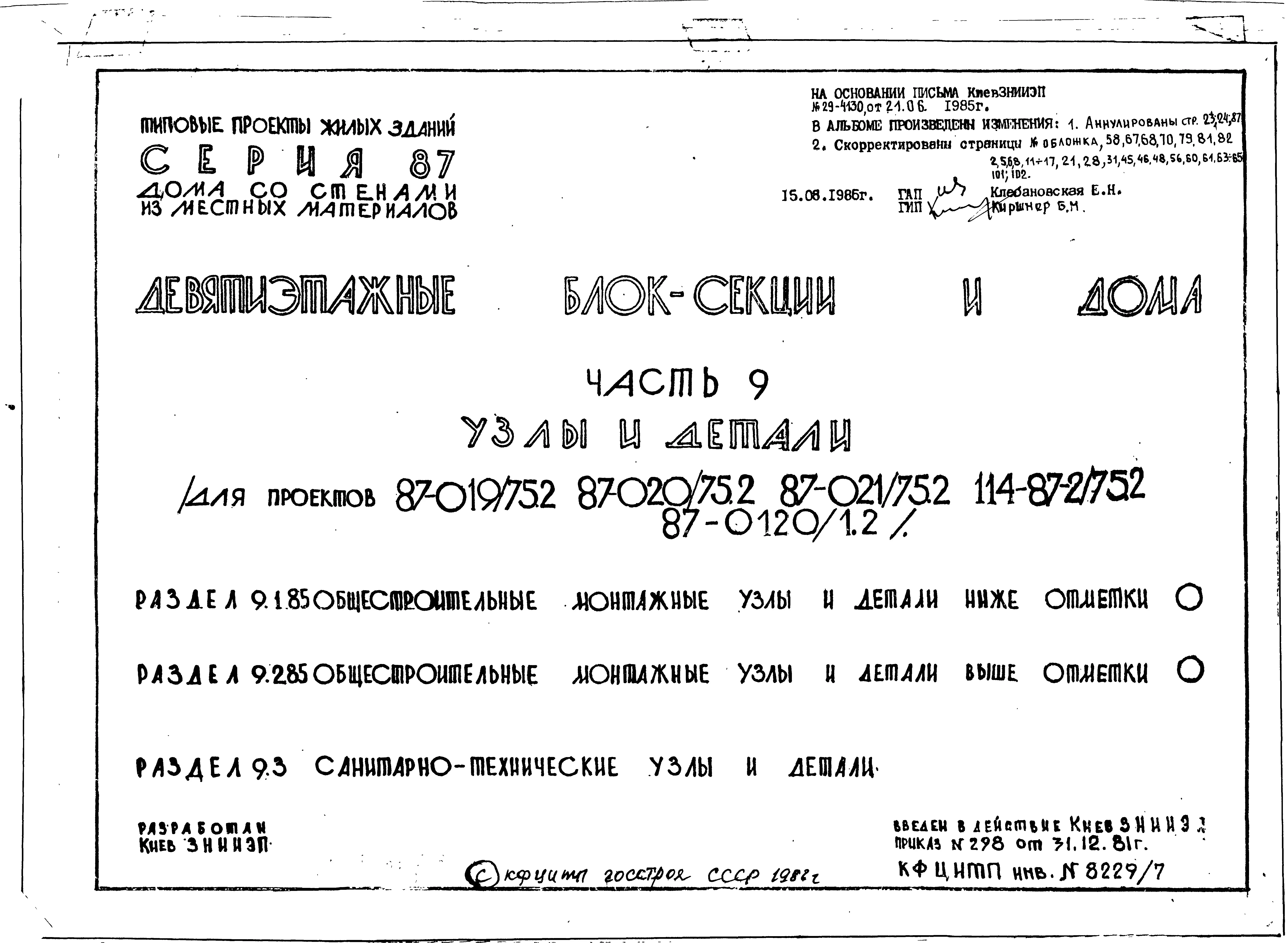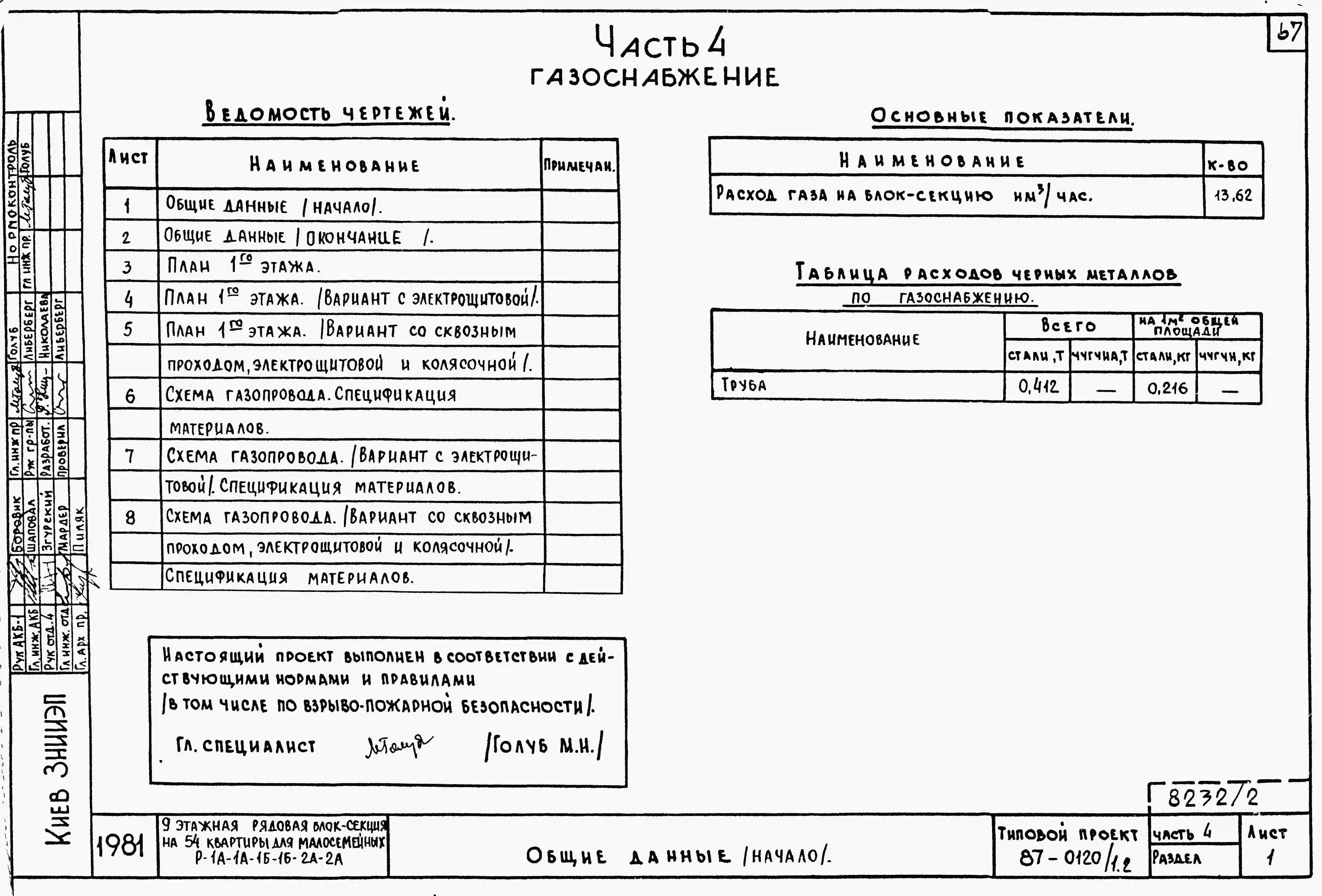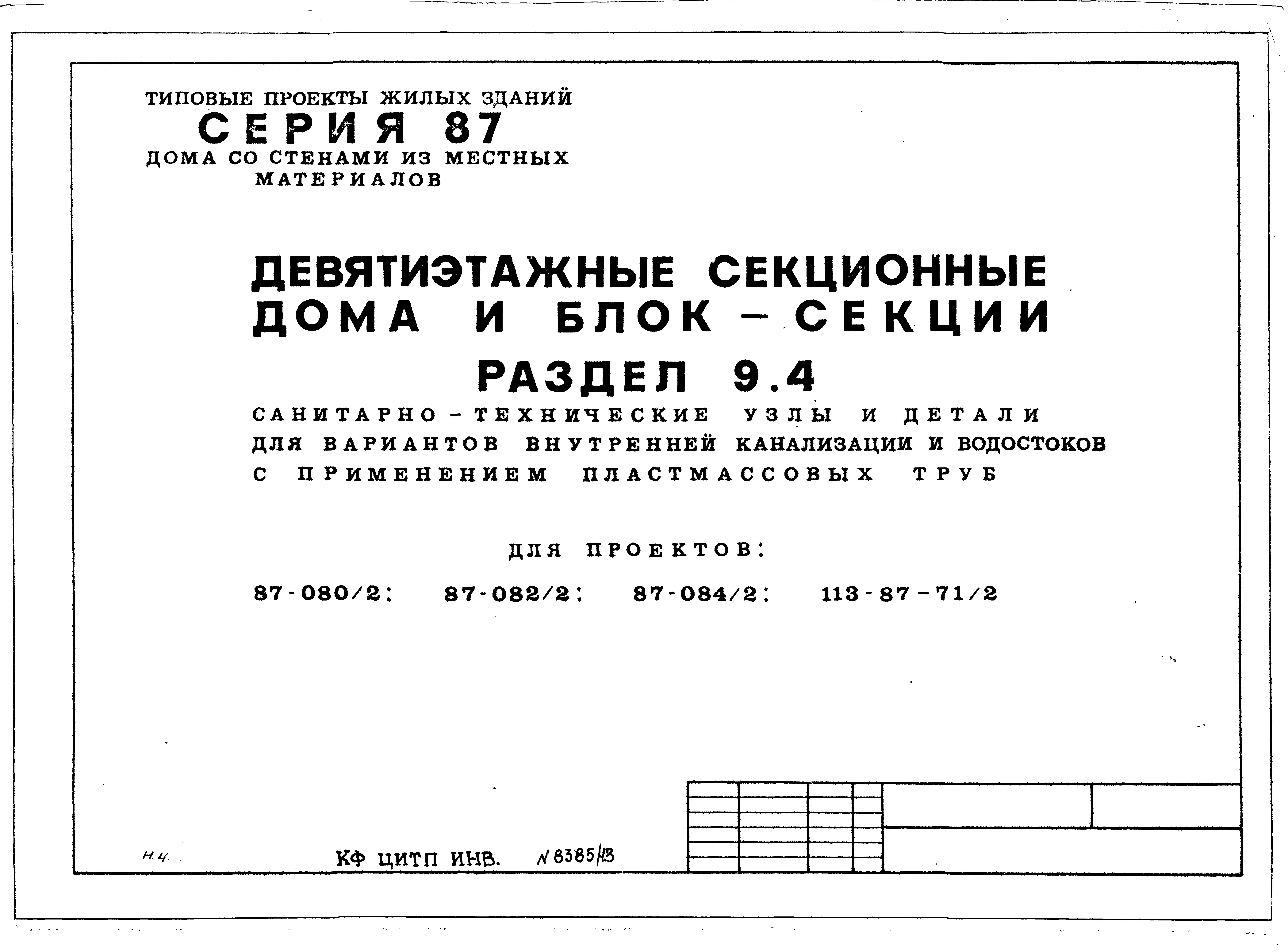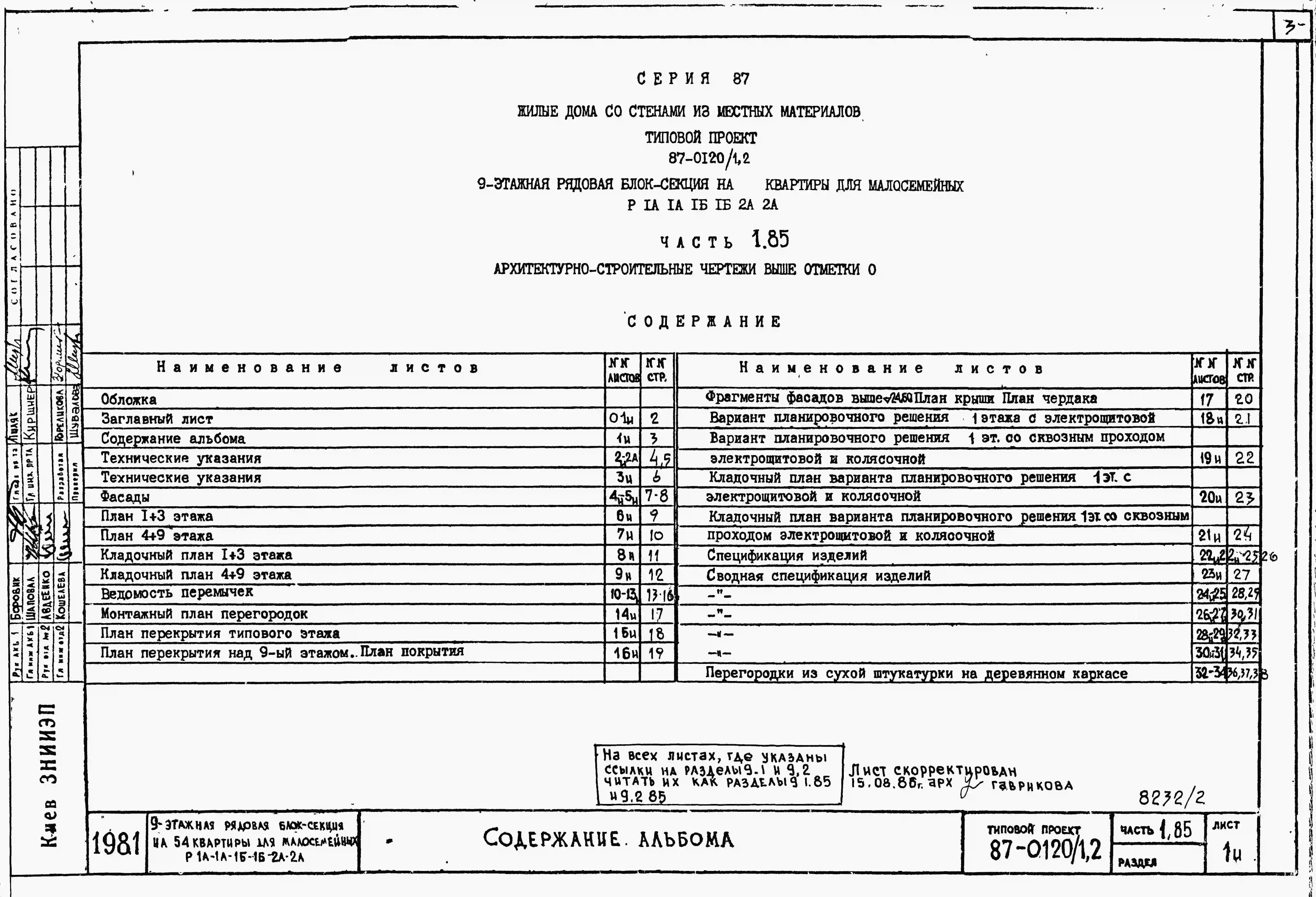 Типовой проект 87-0120/1.2 9-этажная рядовая блок-секция на 54 квартиры для малосемейных Р-1А-1А-1Б-1Б-2А-2А