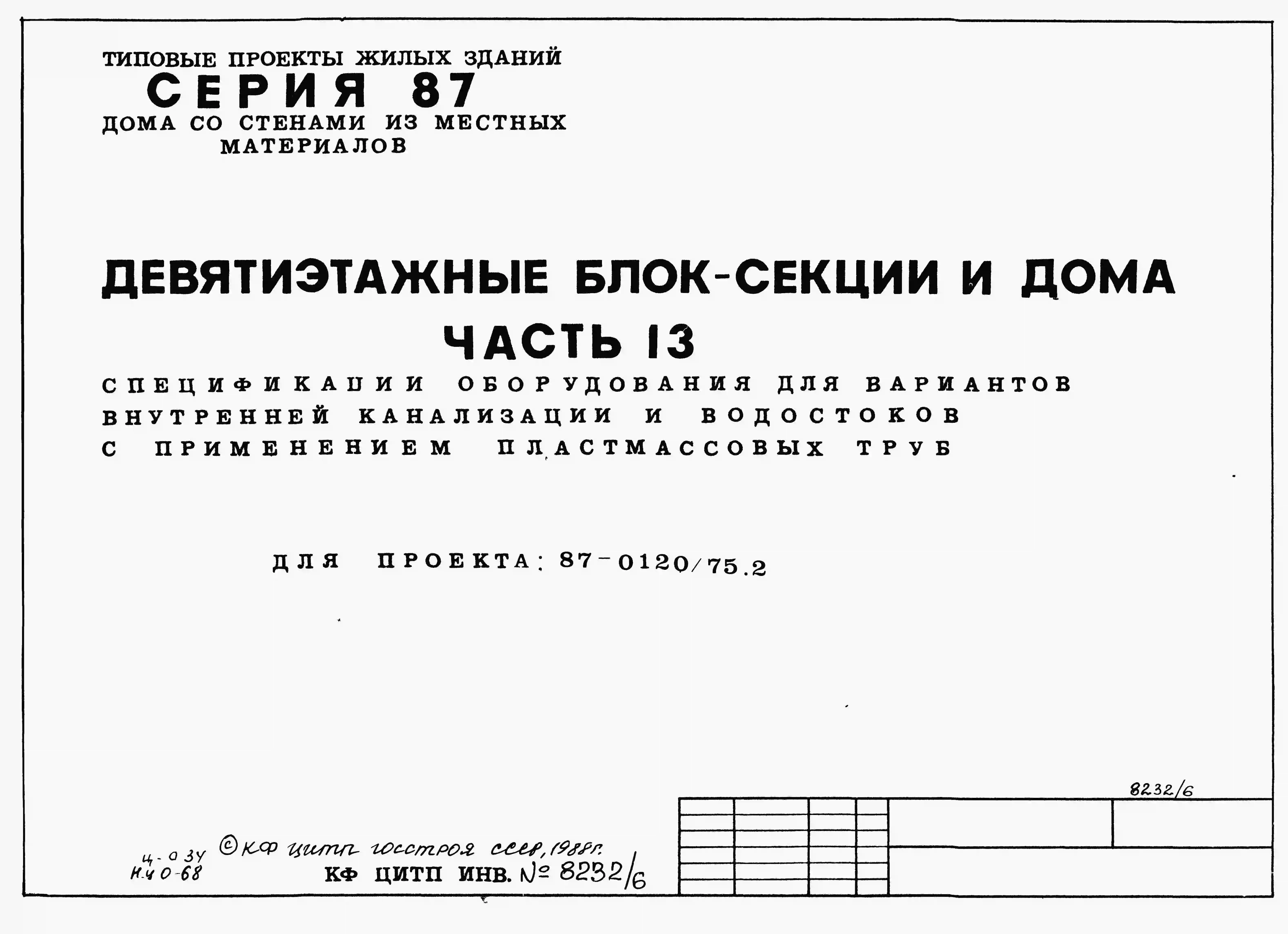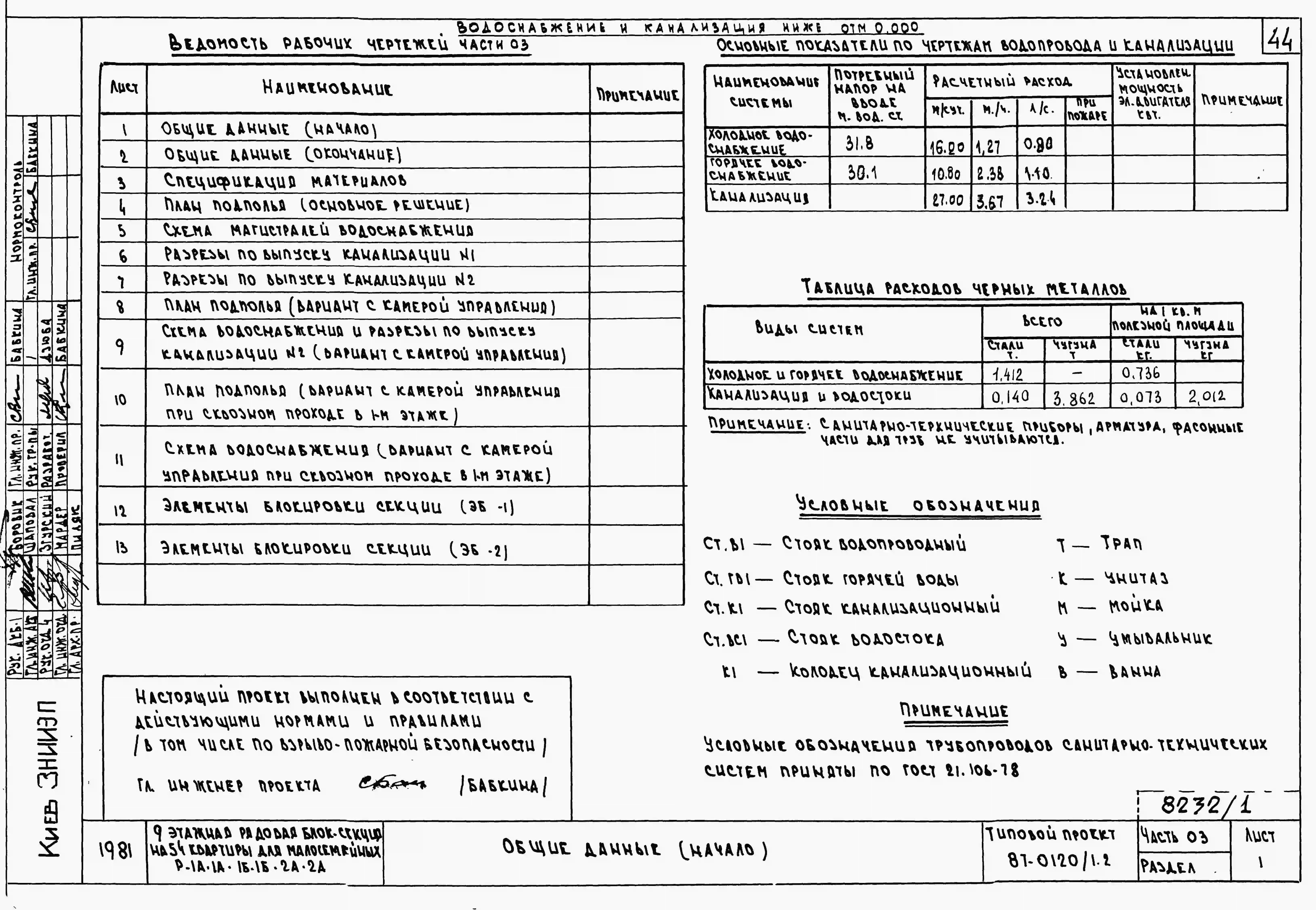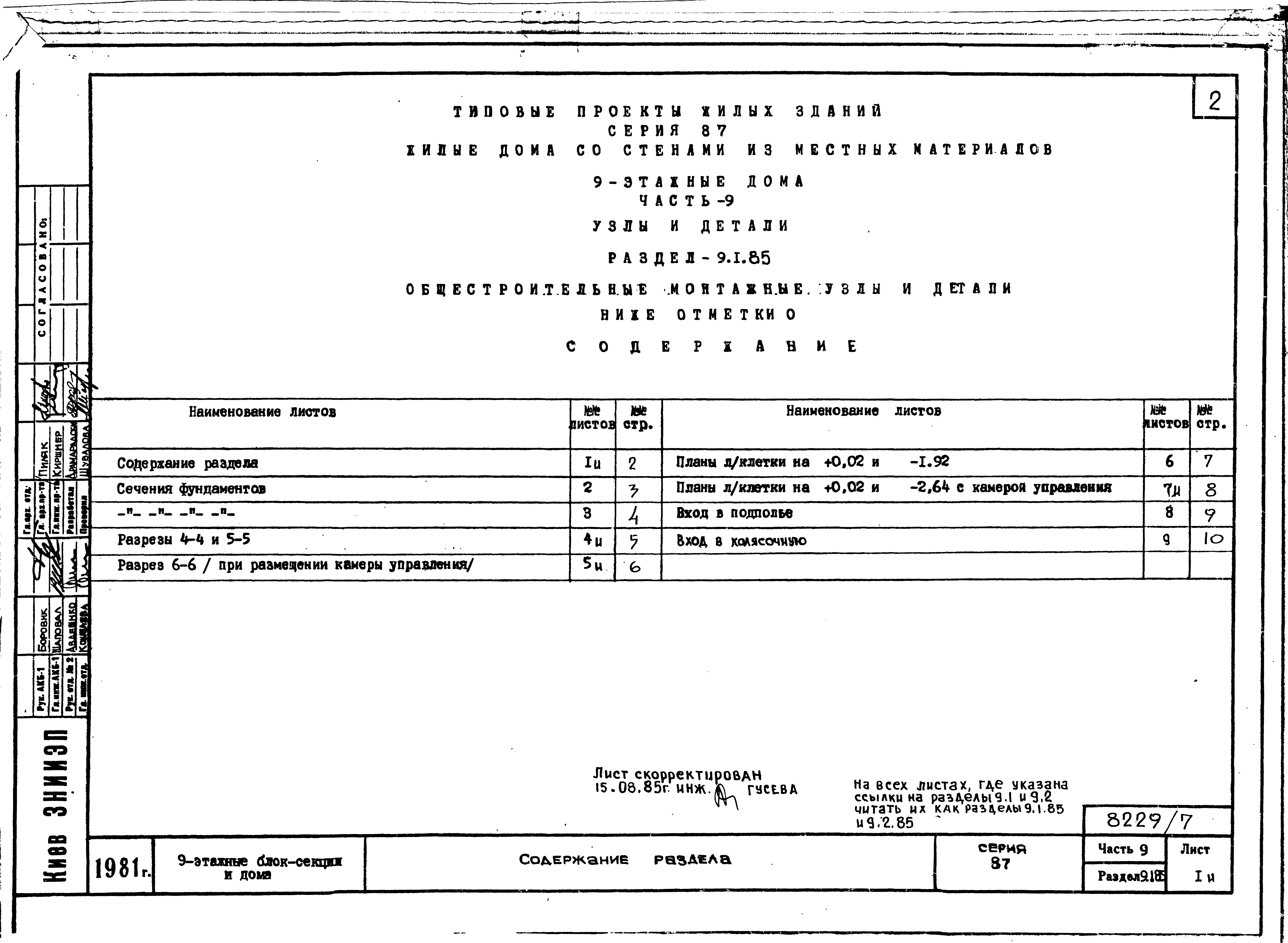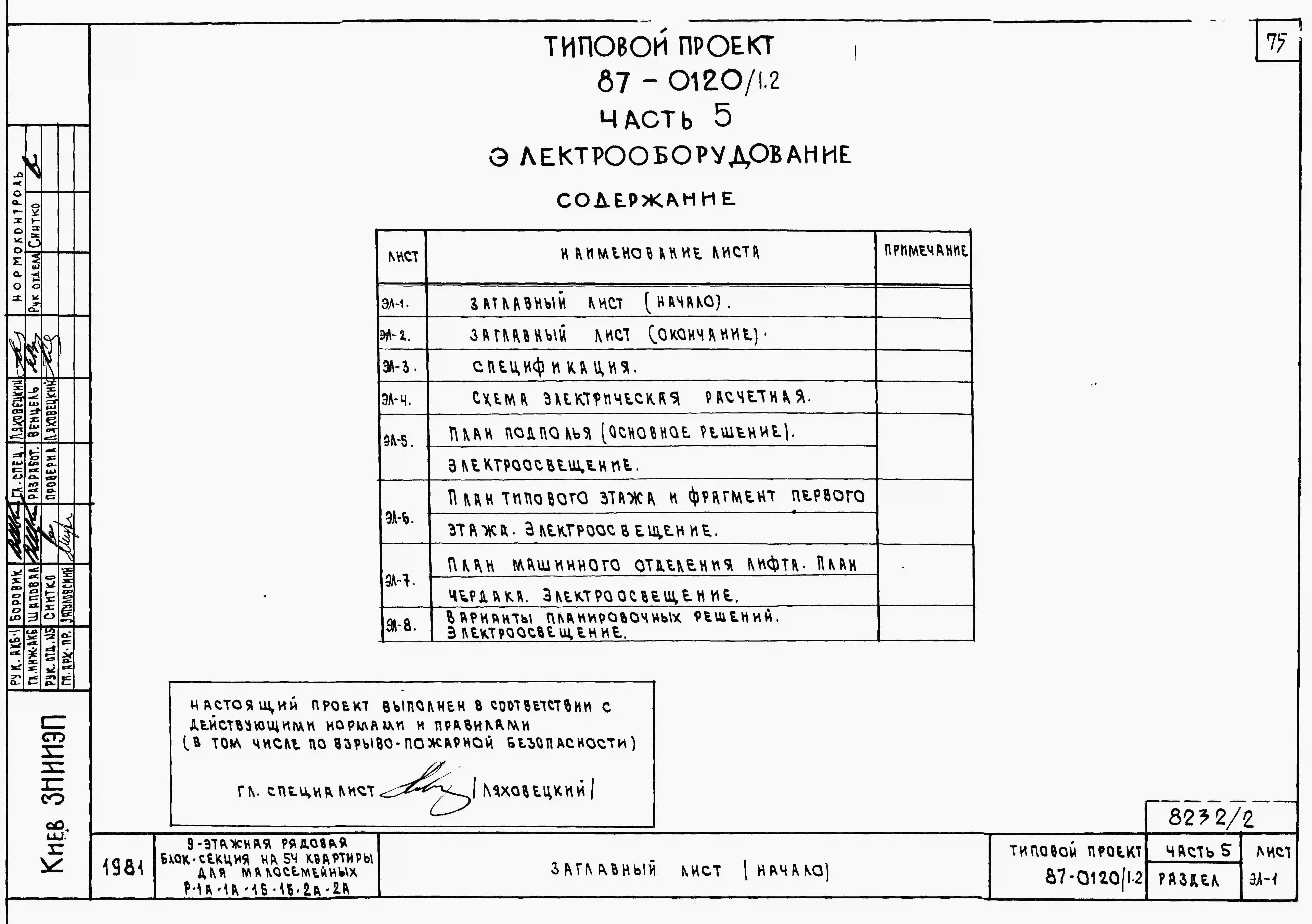Типовой проект 87-0120/1.2 9-этажная рядовая блок-секция на 54 квартиры для малосемейных Р-1А-1А-1Б-1Б-2А-2А