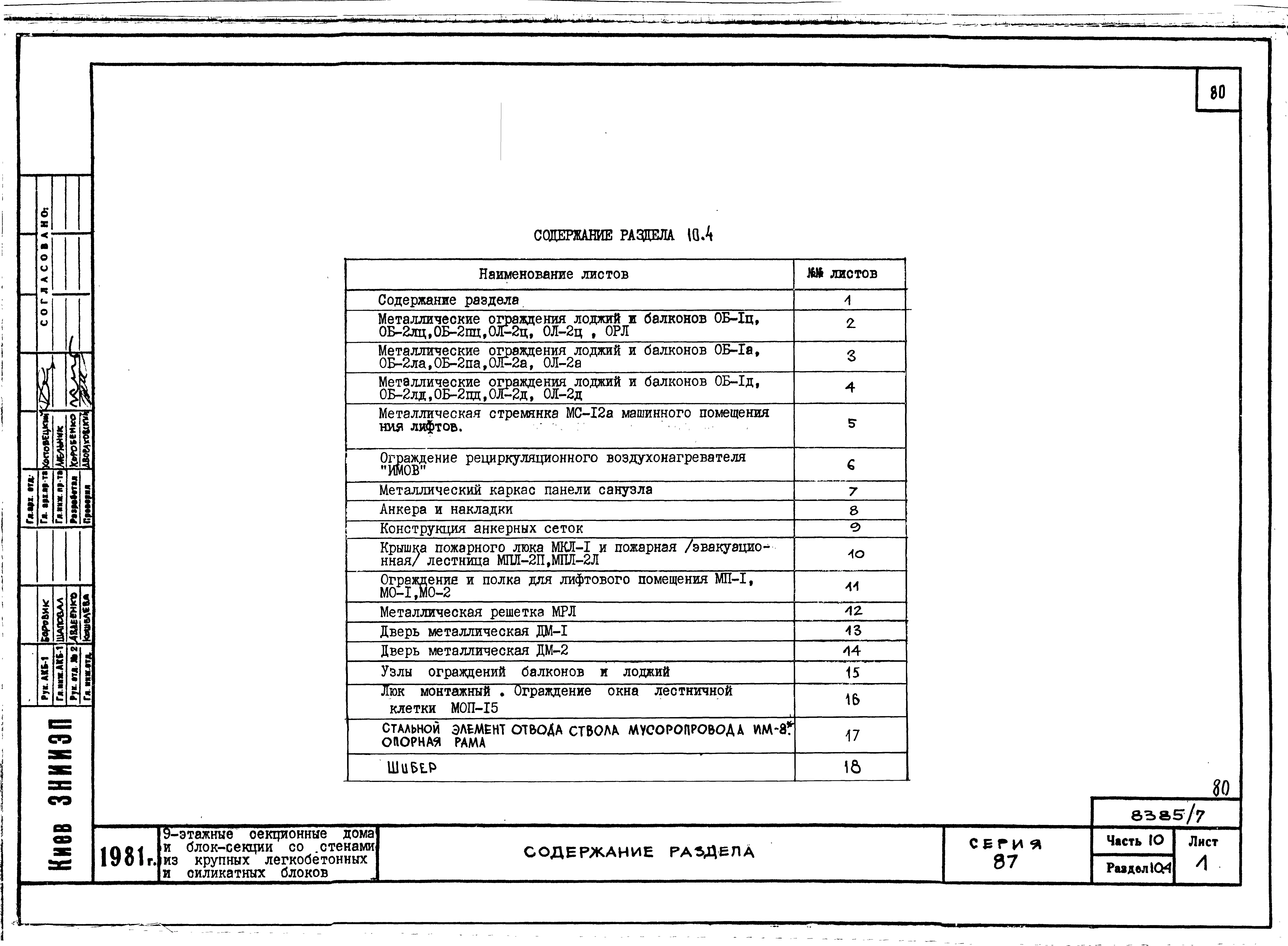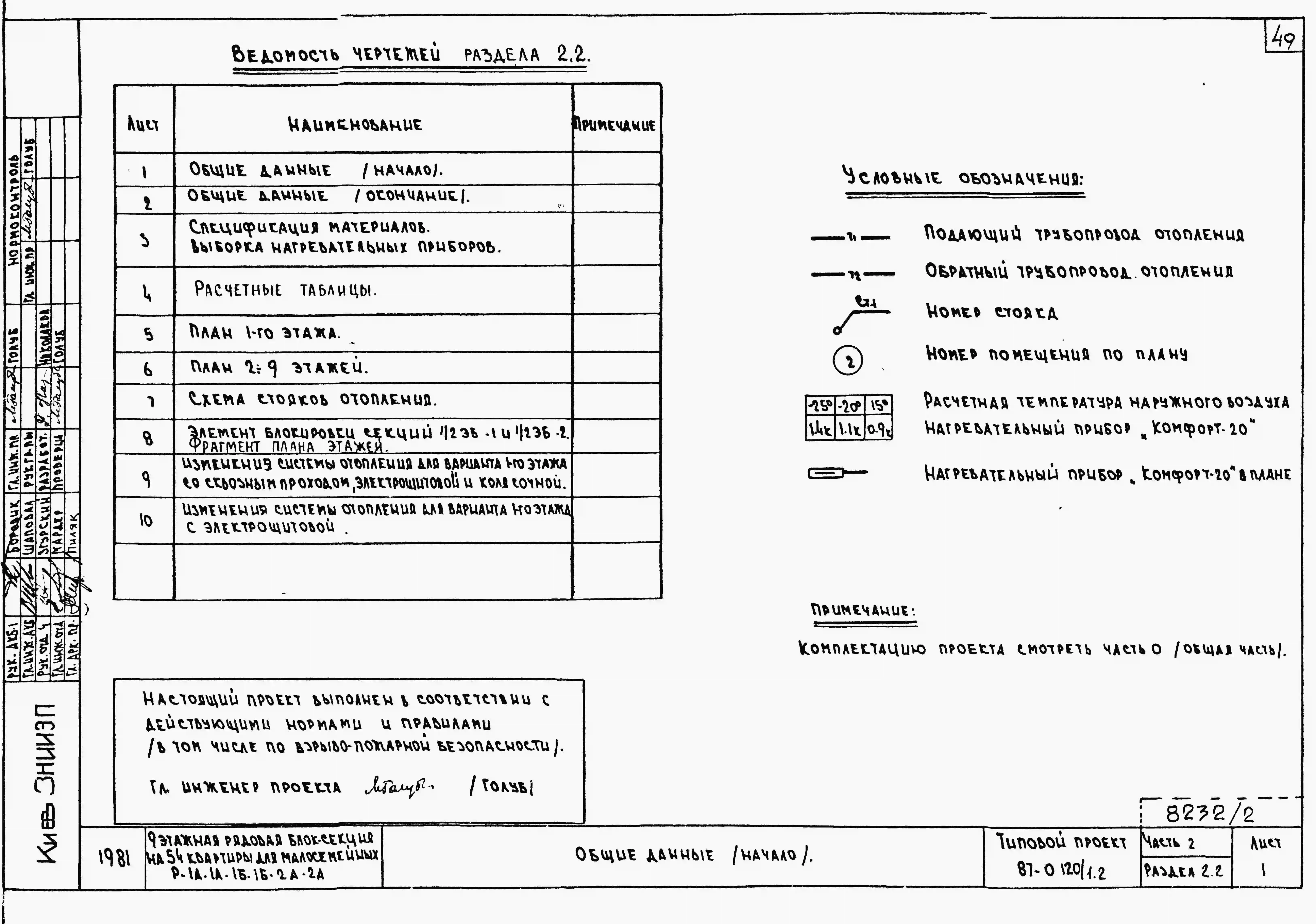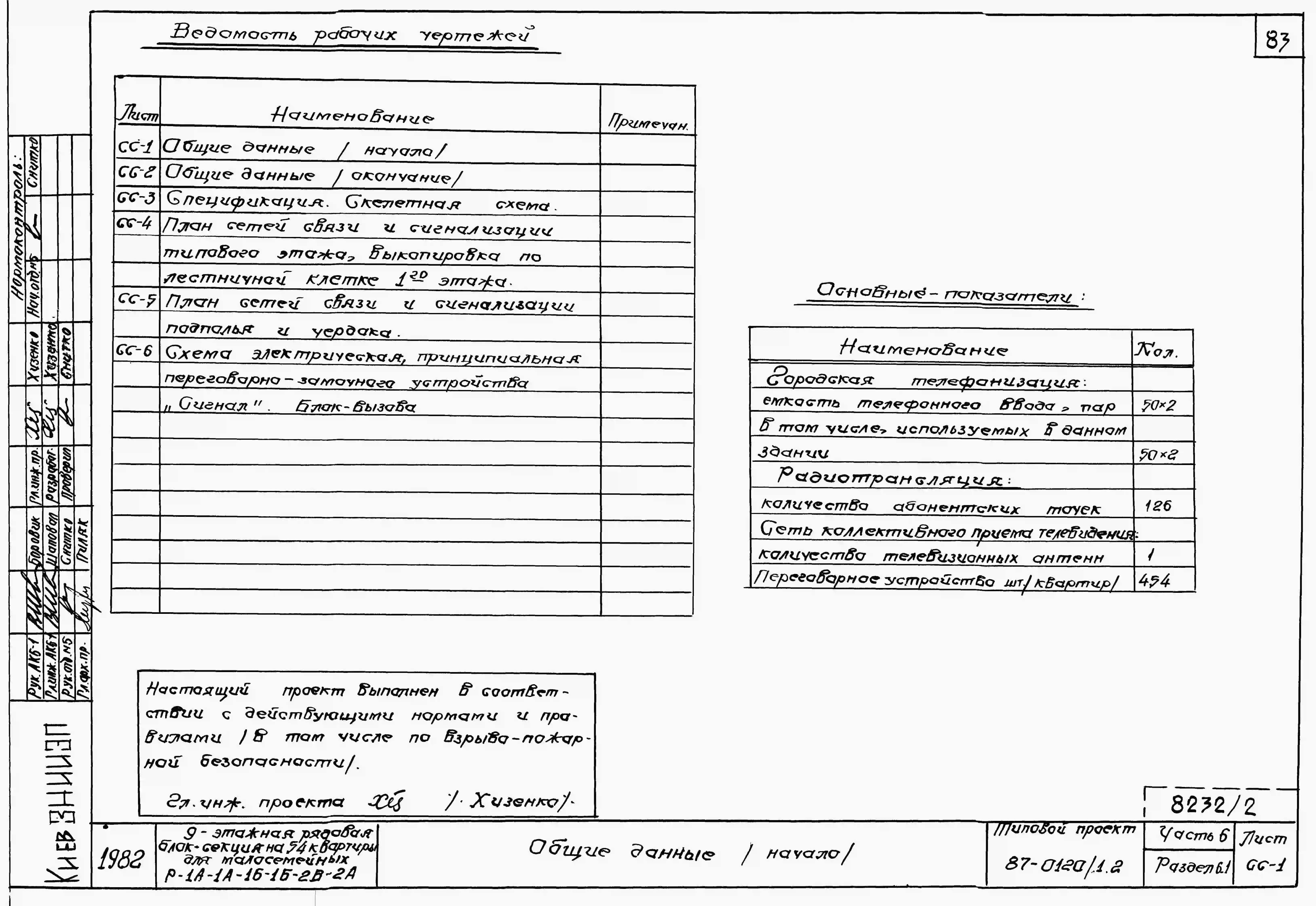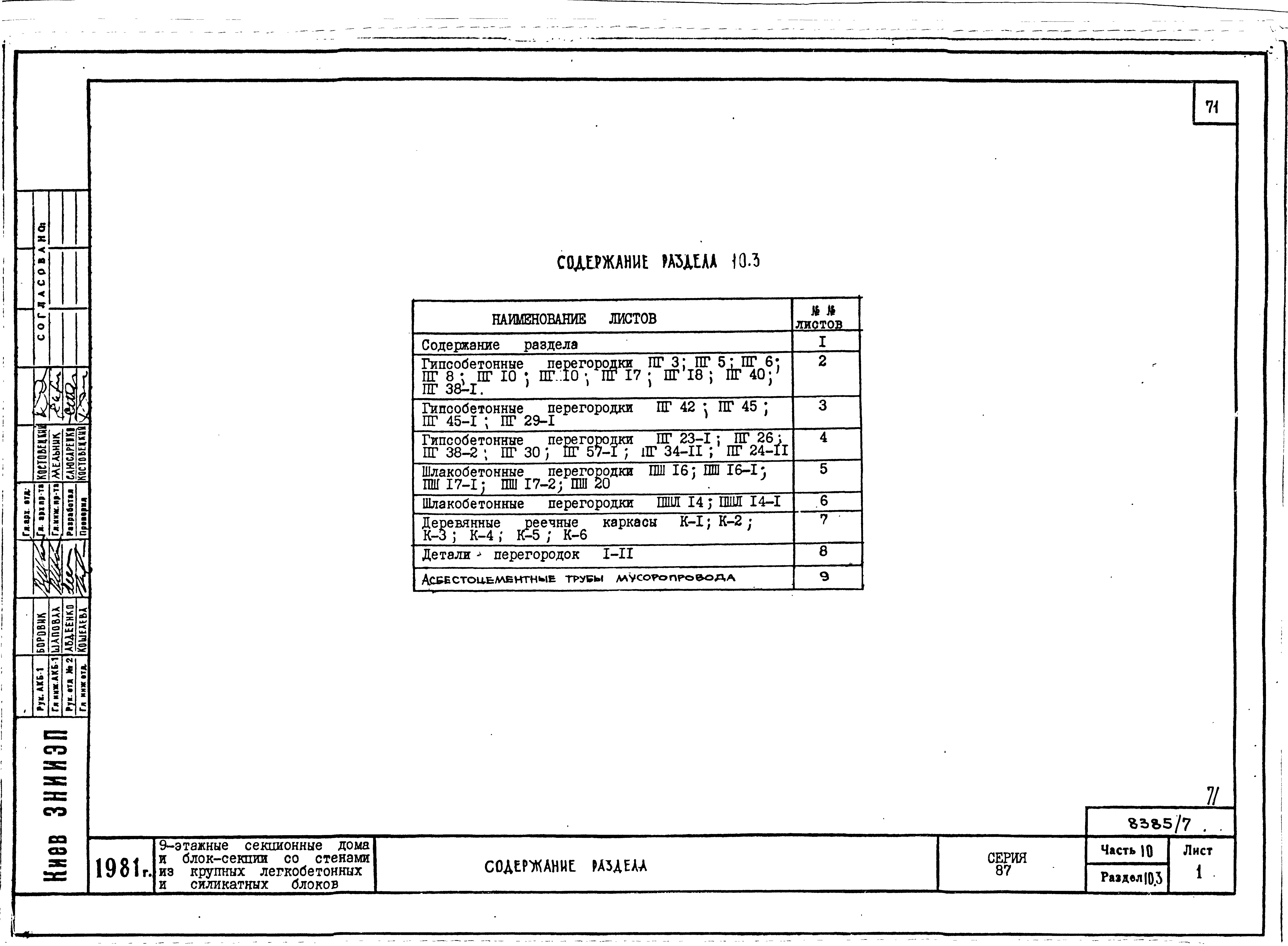 Типовой проект 87-0120/1.2 9-этажная рядовая блок-секция на 54 квартиры для малосемейных Р-1А-1А-1Б-1Б-2А-2А