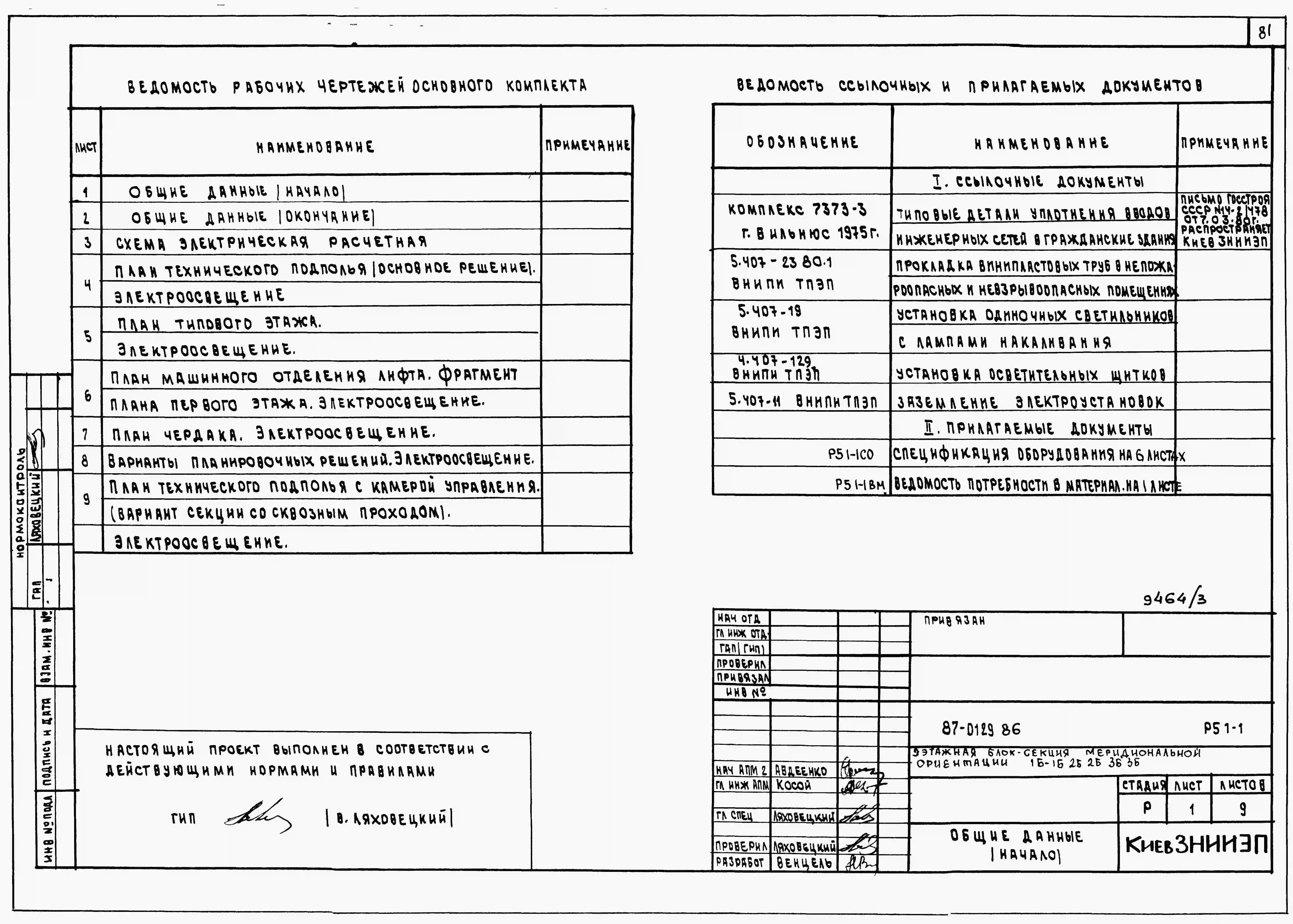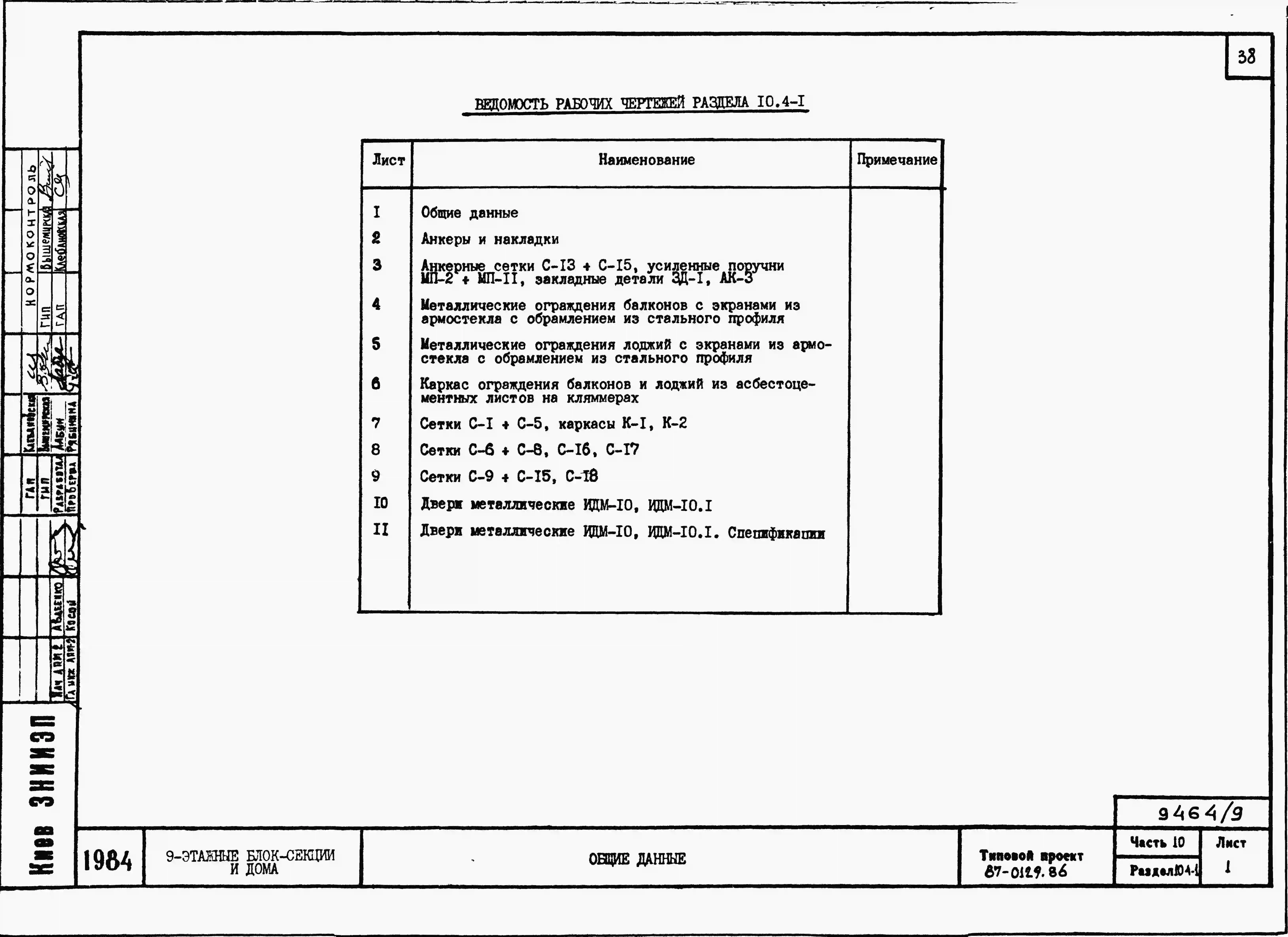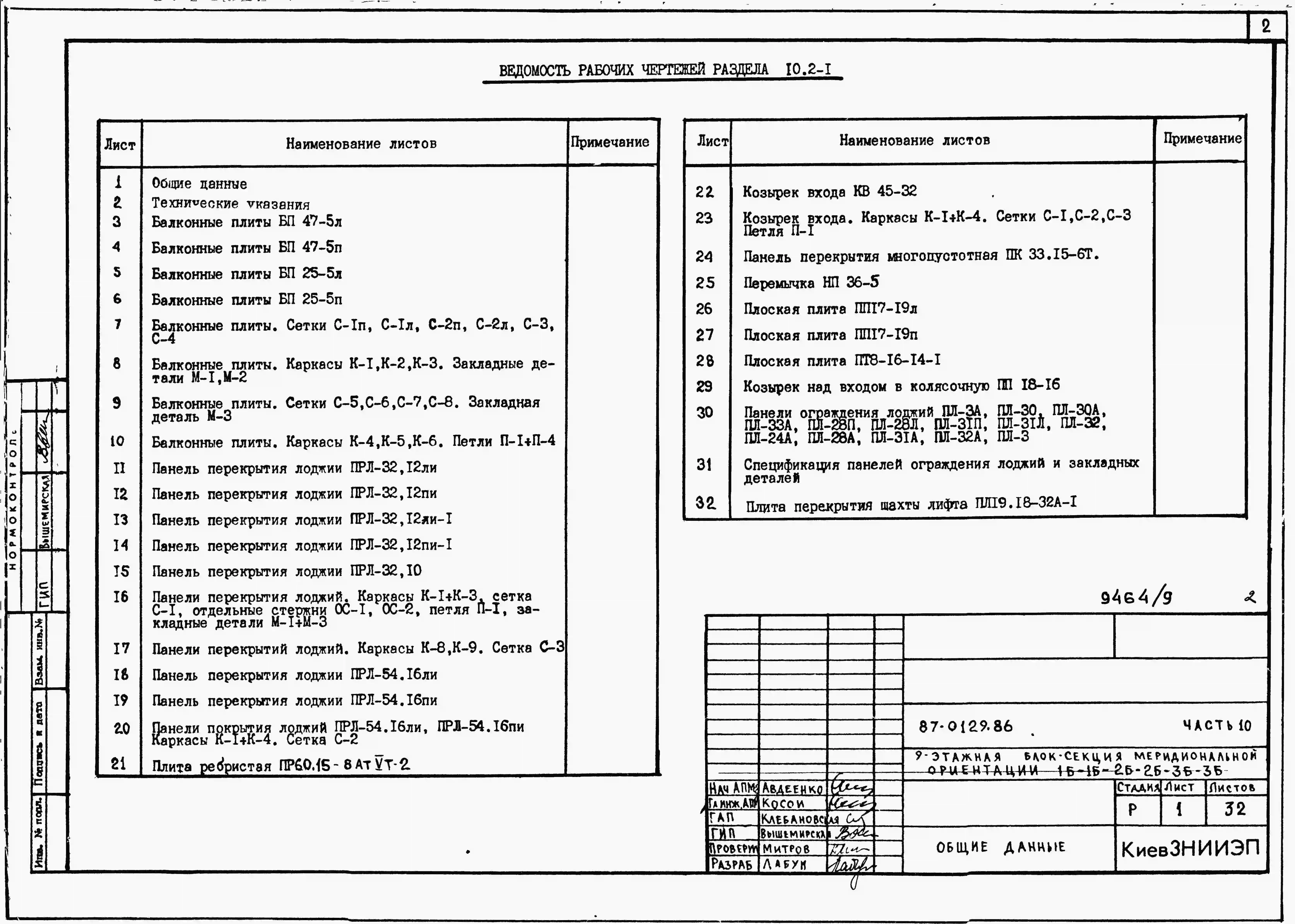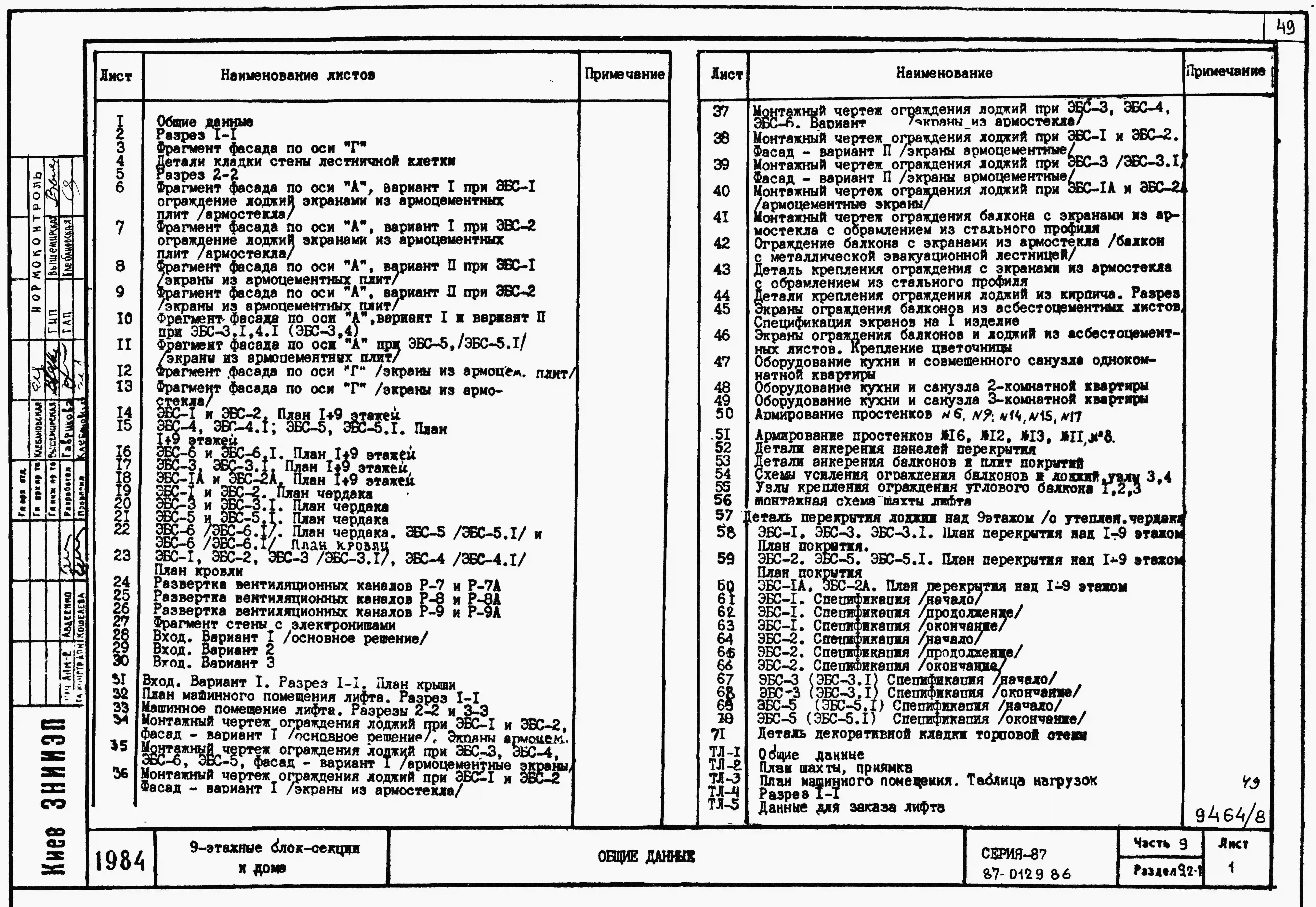 Типовой проект 87-0129.86 Девятиэтажная блок-секция меридиальной ориентации на 54 квартиры 1Б-1Б-2Б-2Б-3Б-3Б