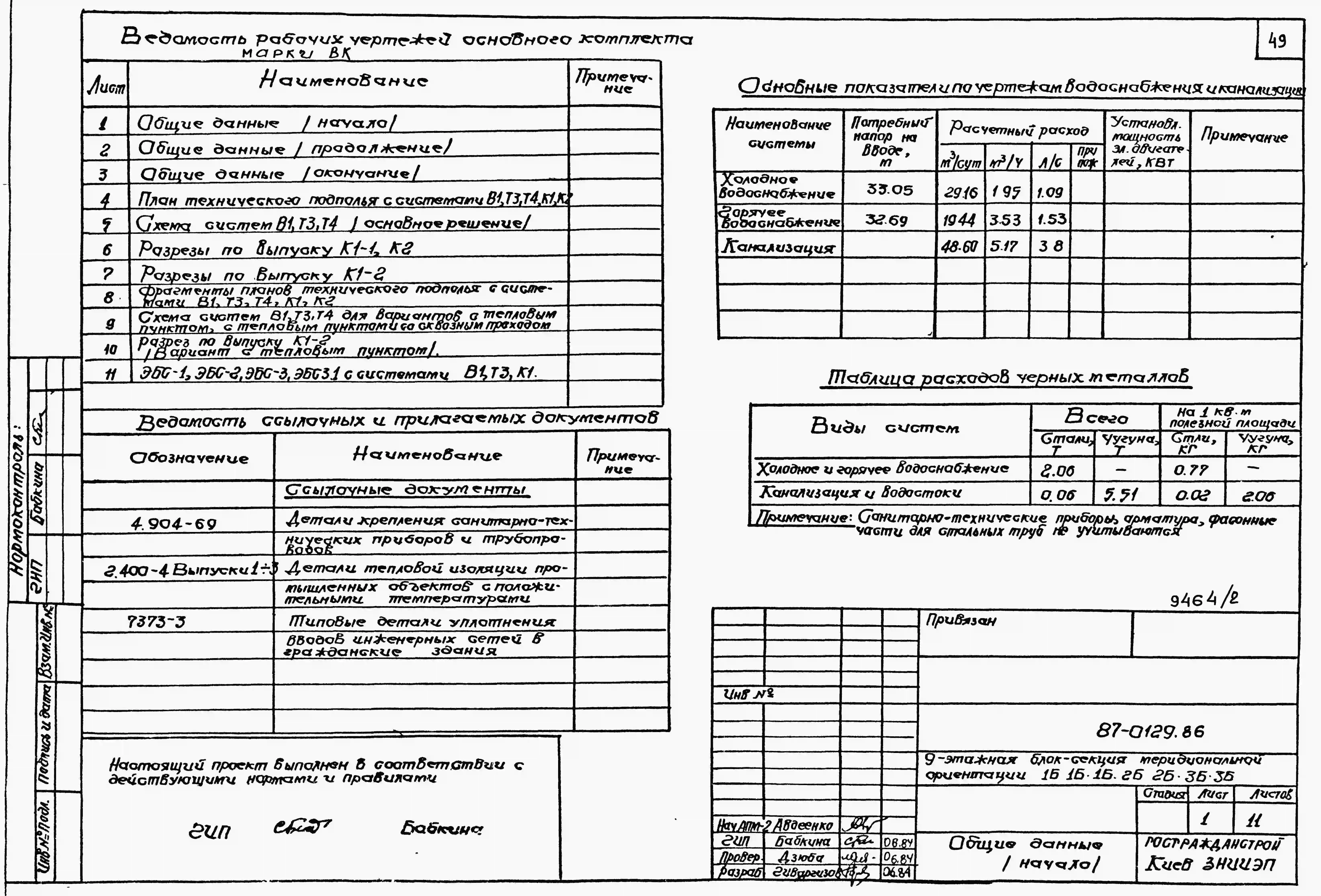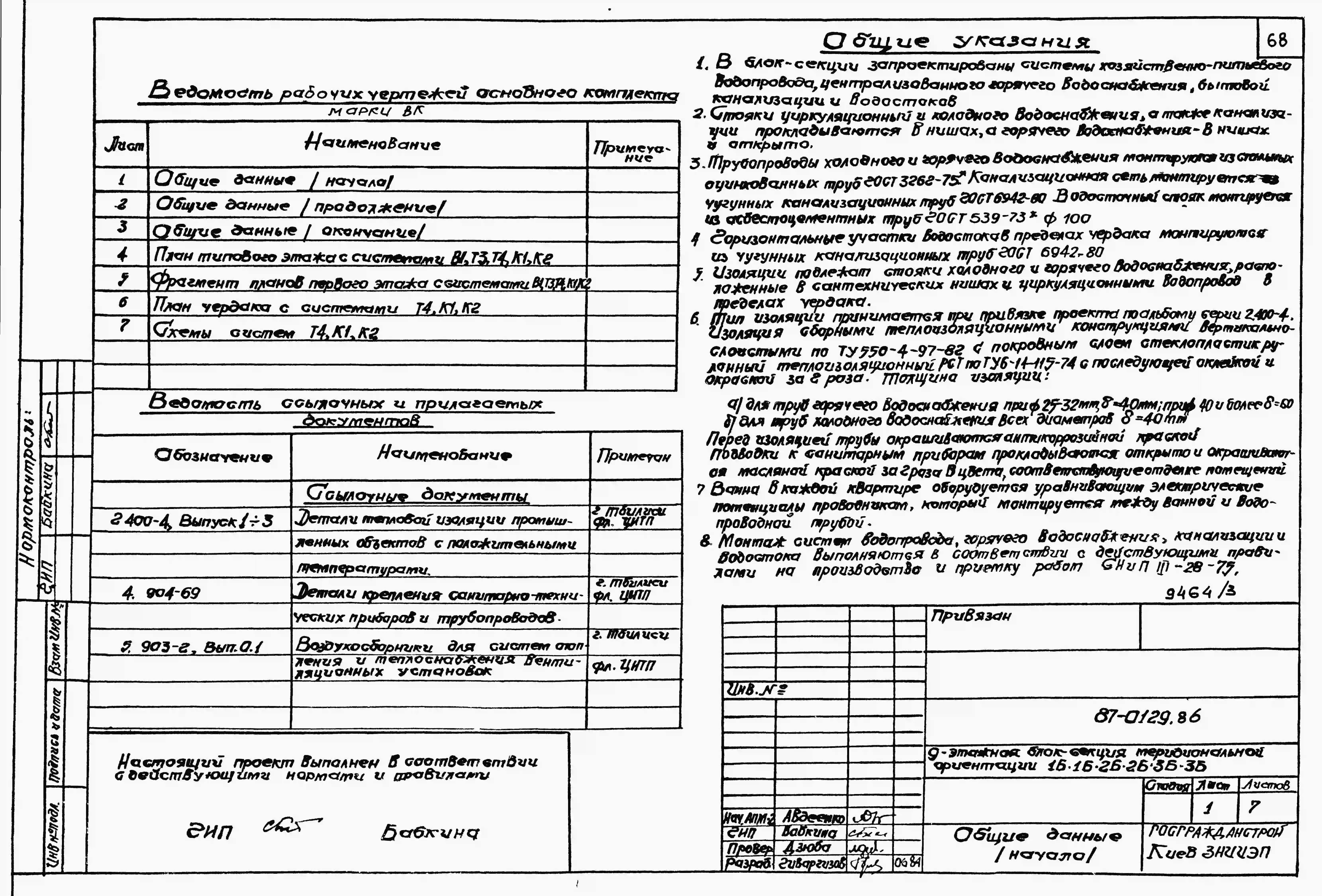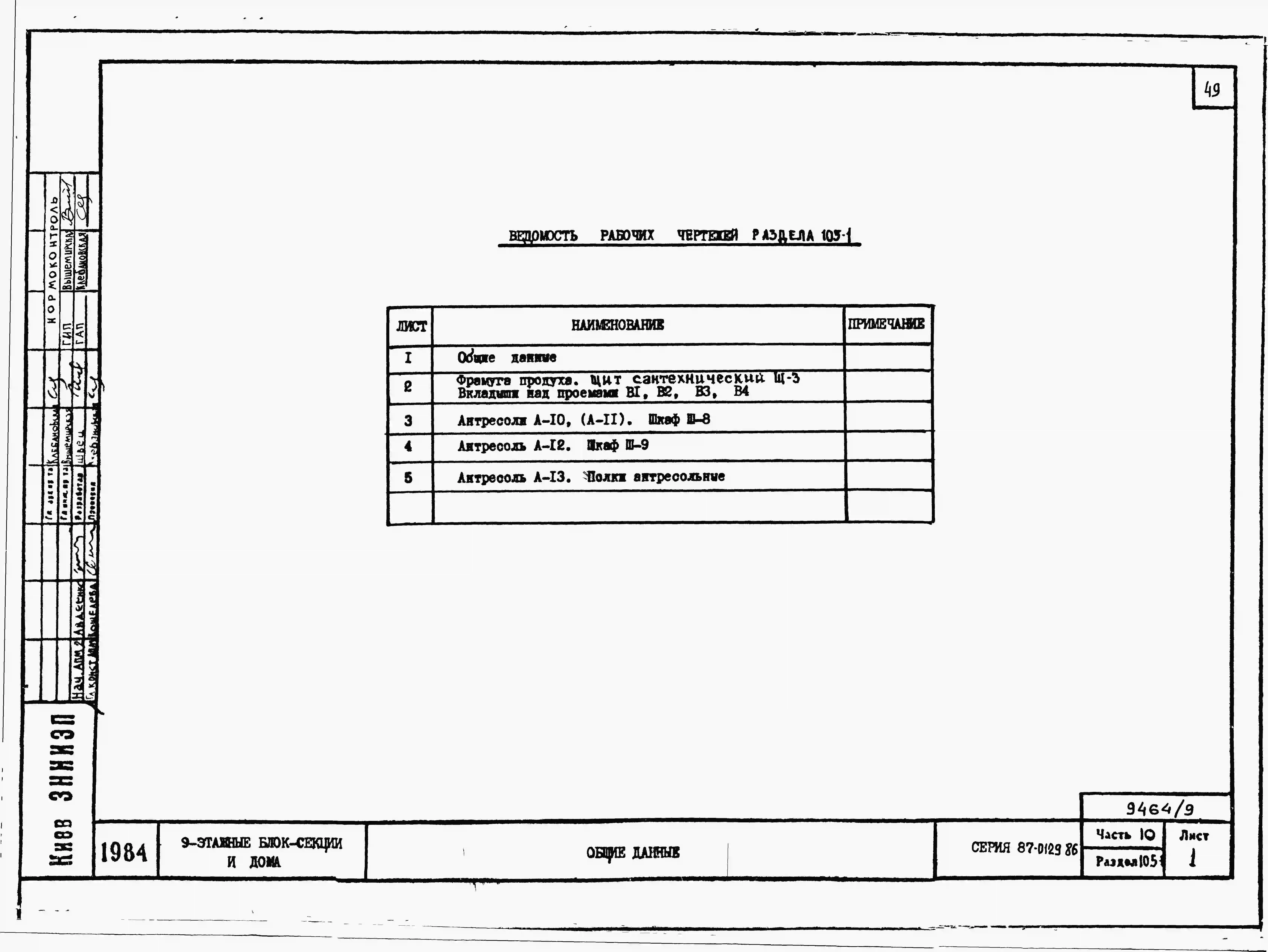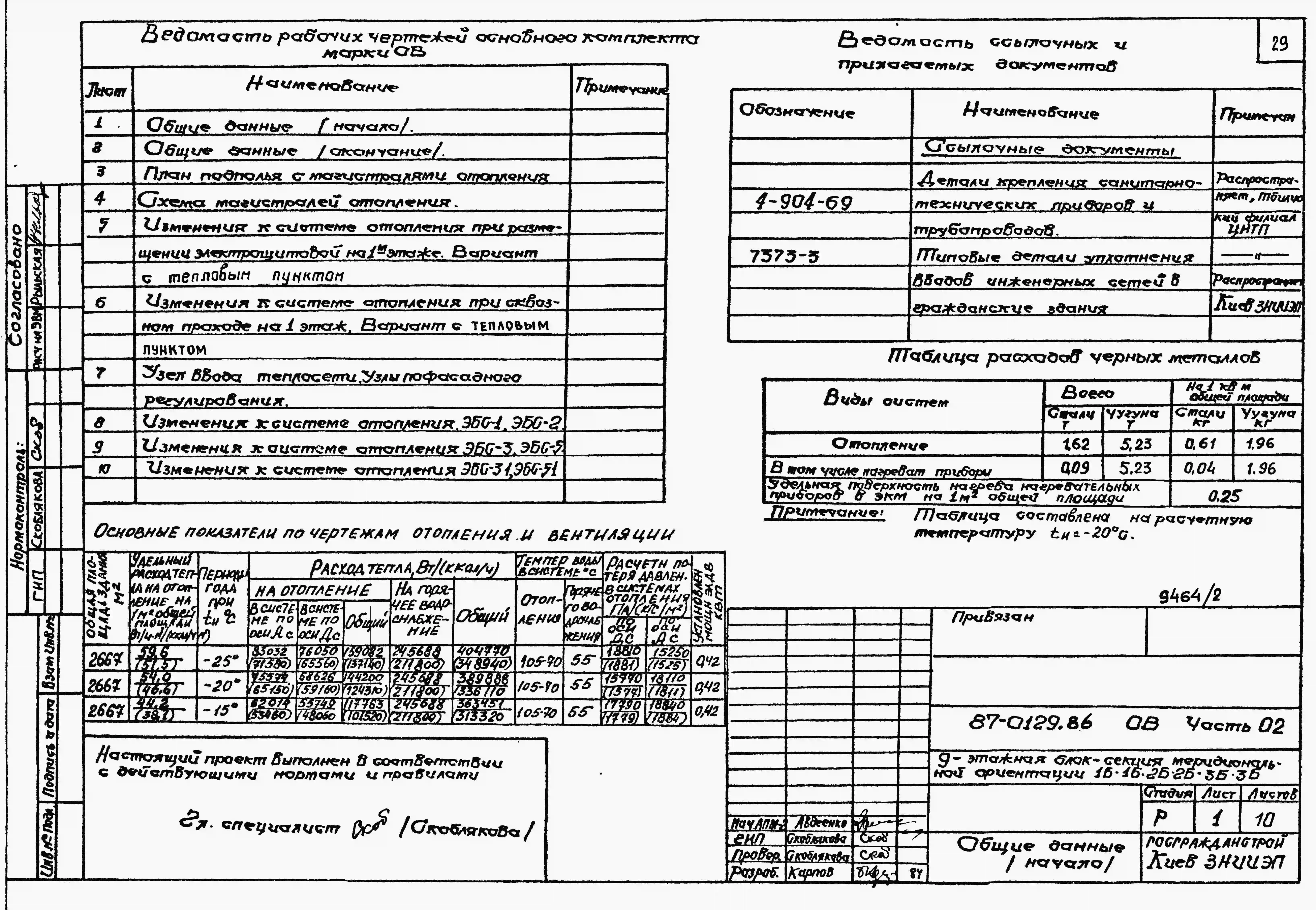 Типовой проект 87-0129.86 Девятиэтажная блок-секция меридиальной ориентации на 54 квартиры 1Б-1Б-2Б-2Б-3Б-3Б