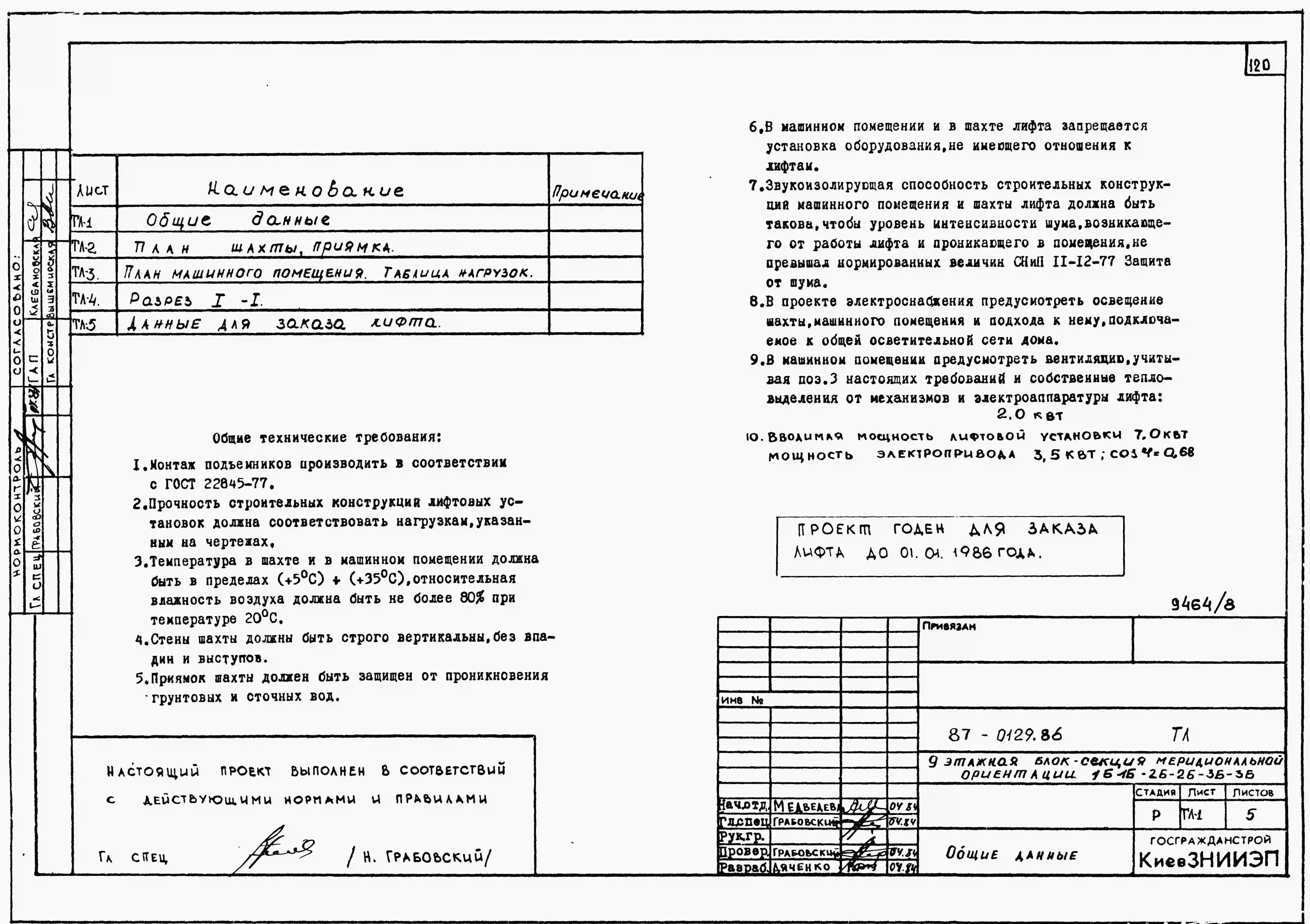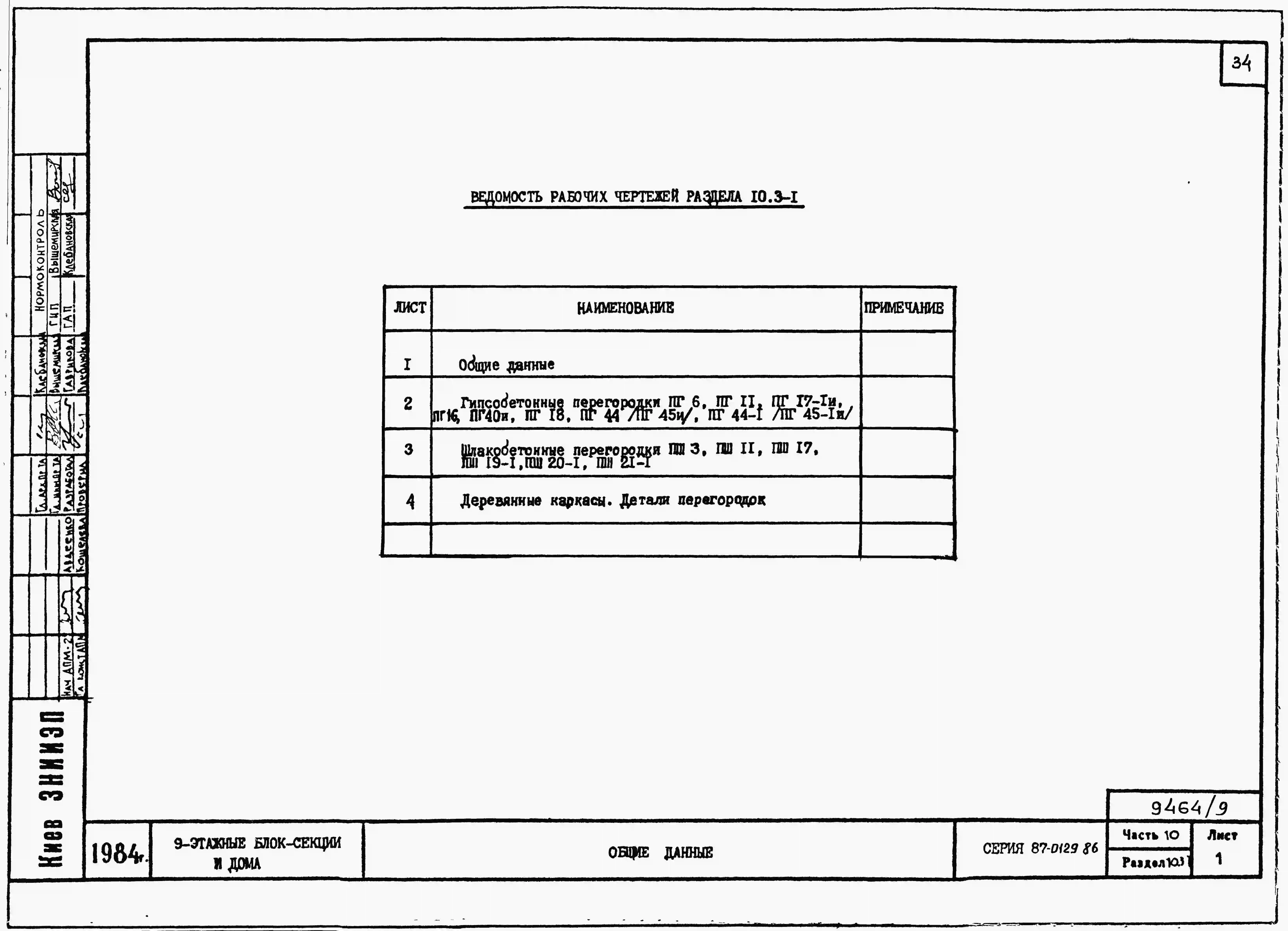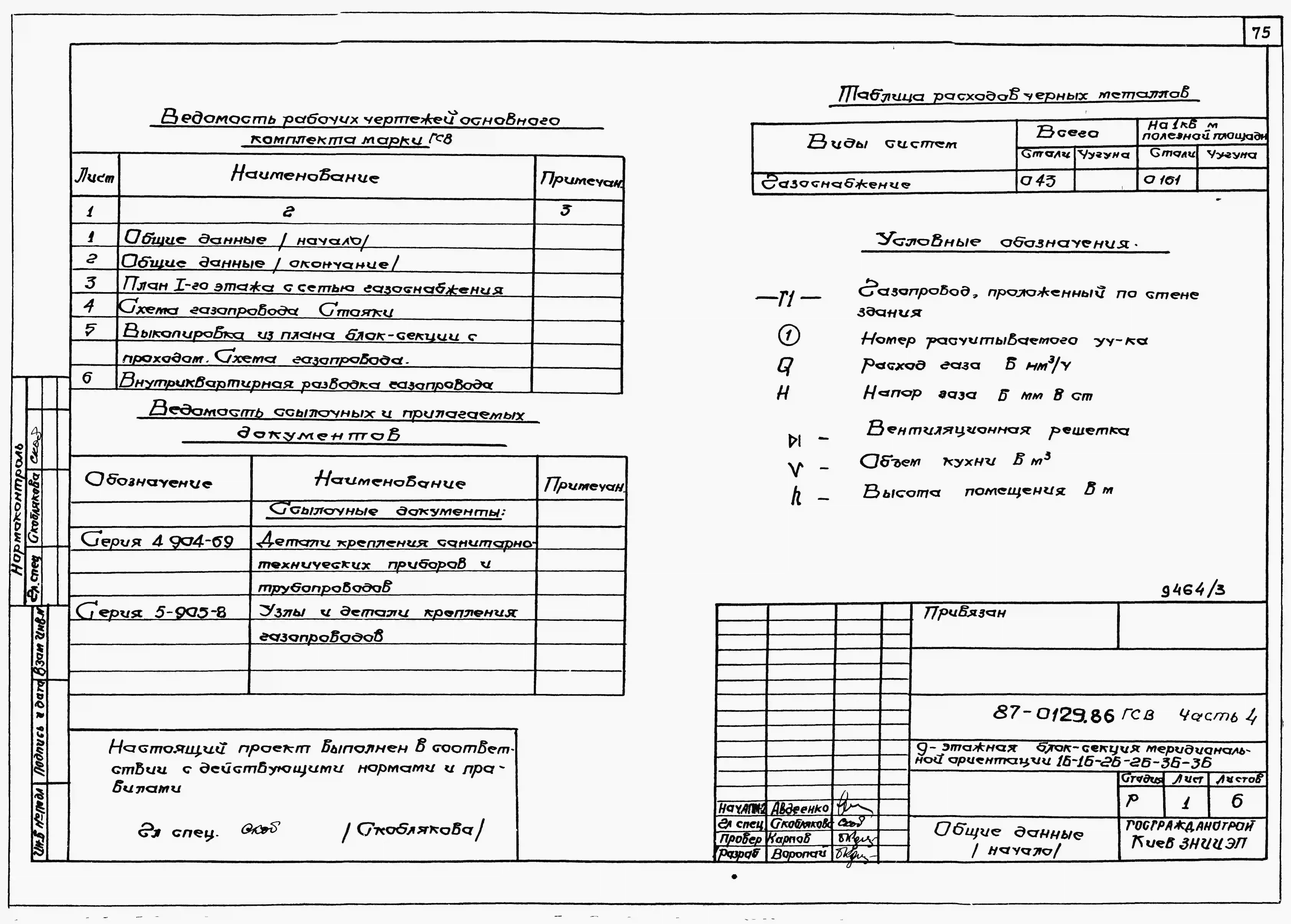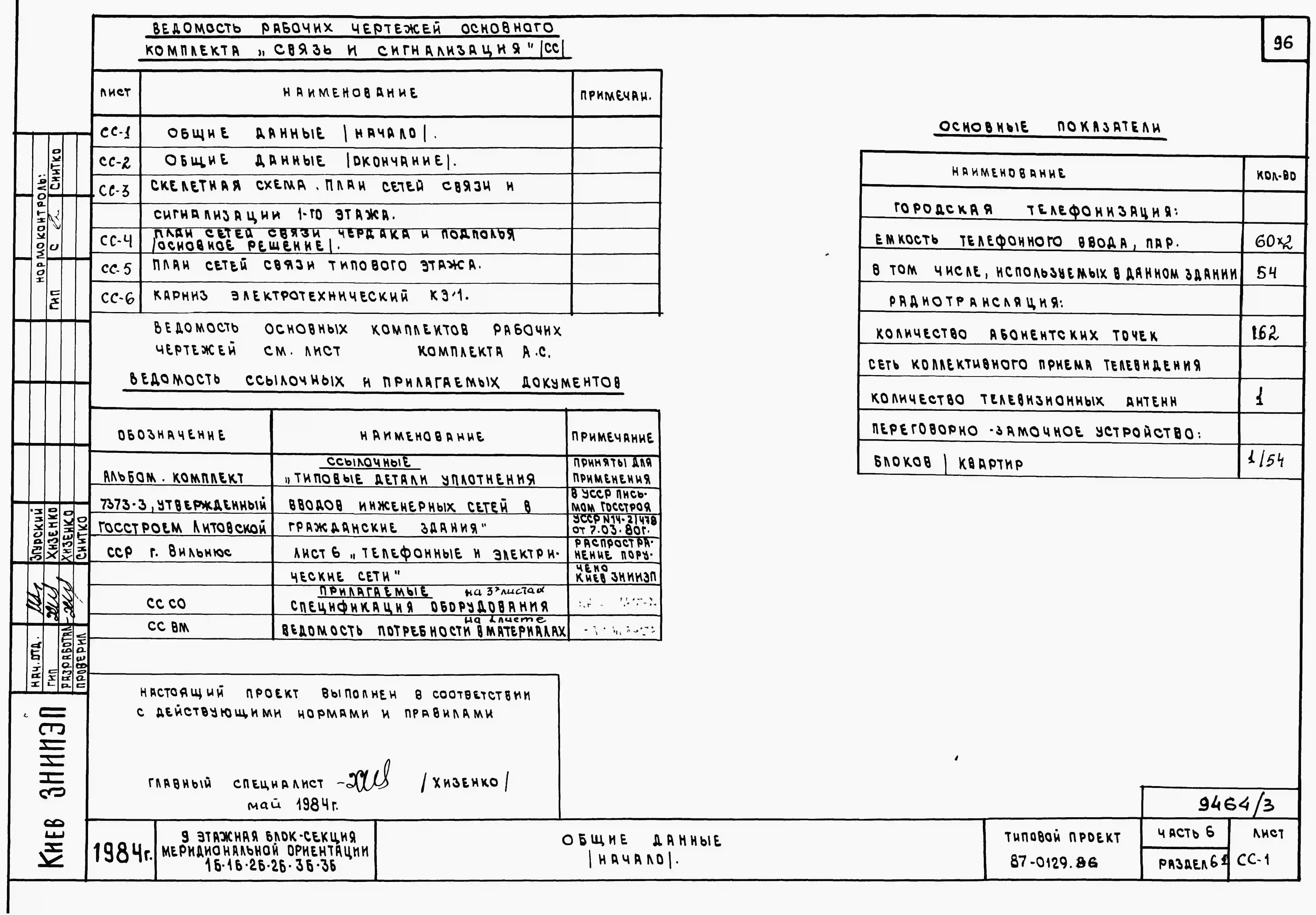 Типовой проект 87-0129.86 Девятиэтажная блок-секция меридиальной ориентации на 54 квартиры 1Б-1Б-2Б-2Б-3Б-3Б